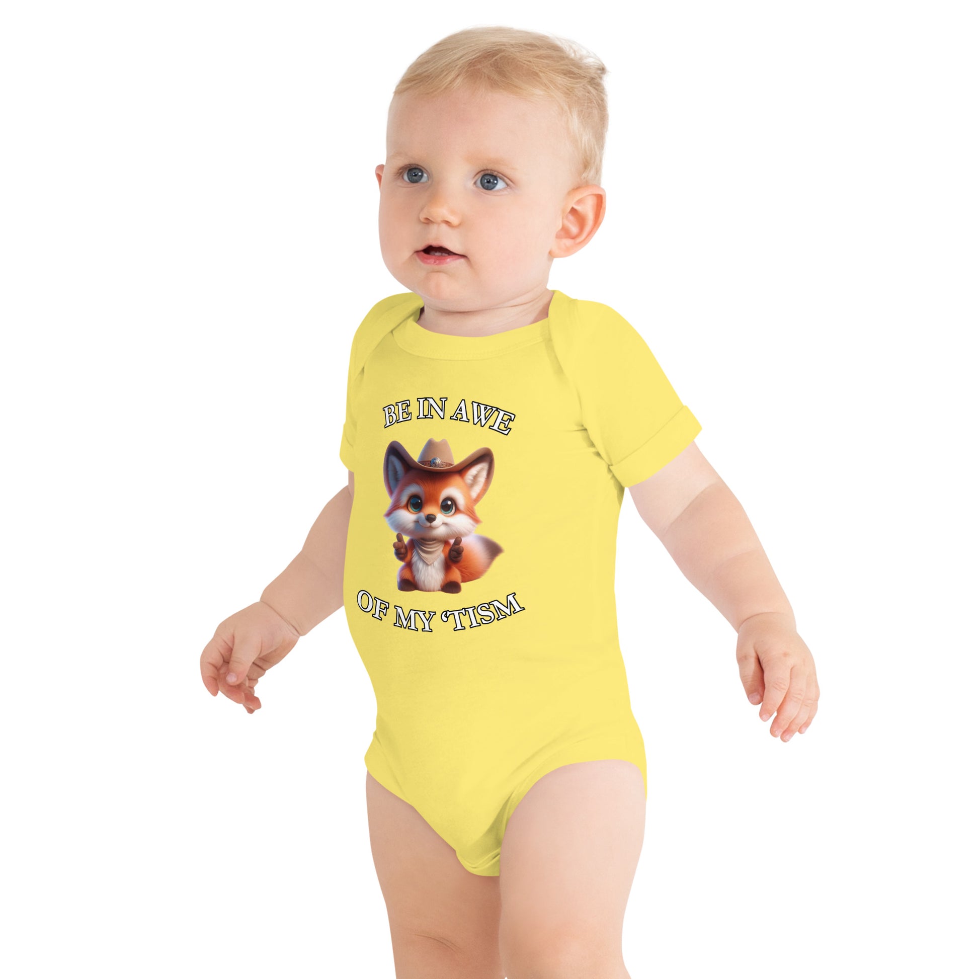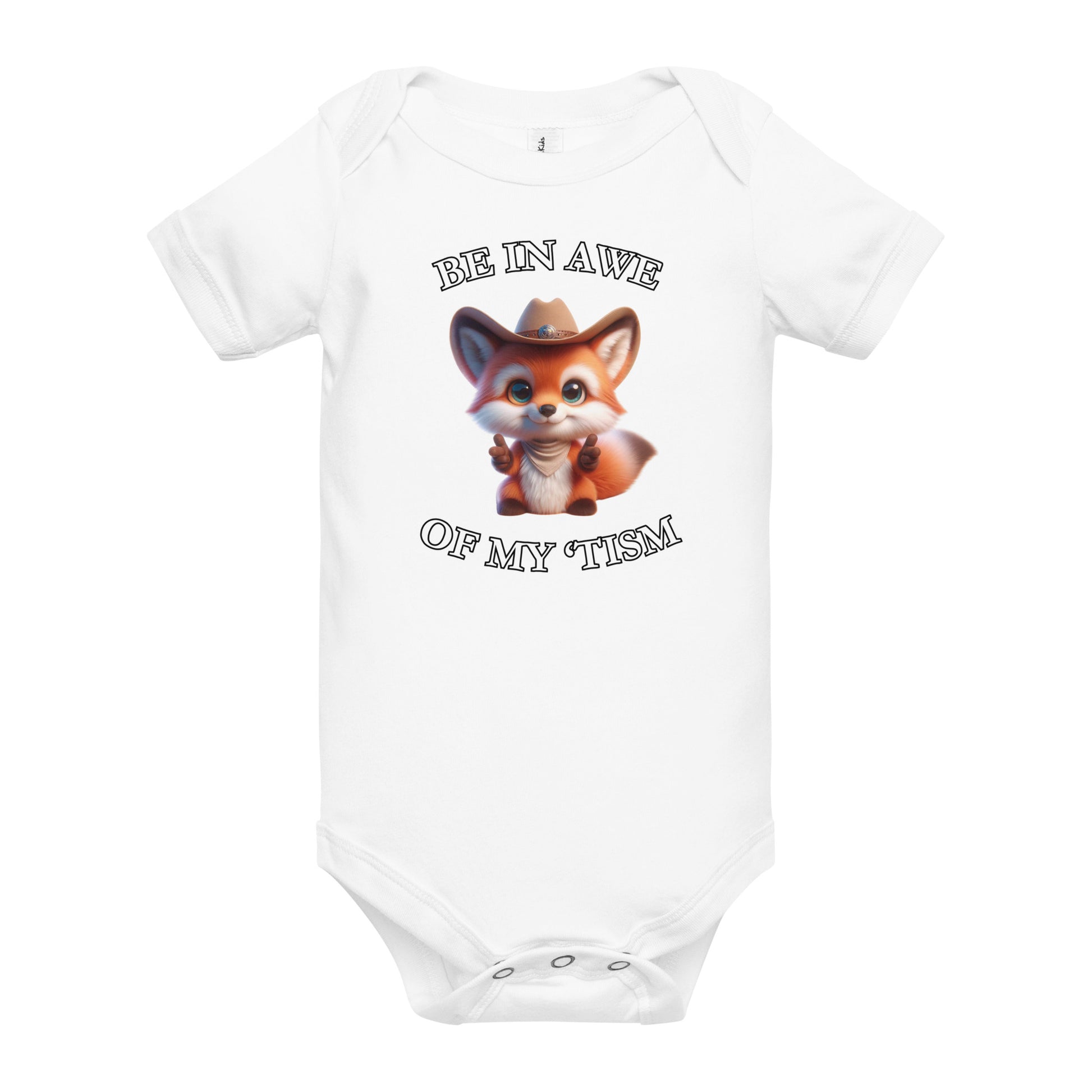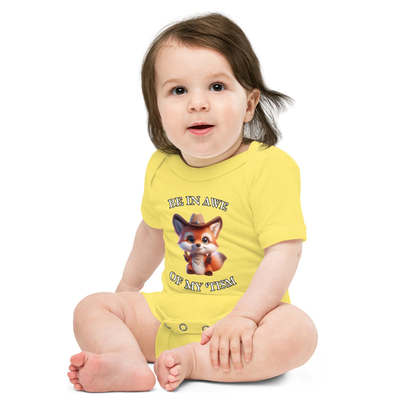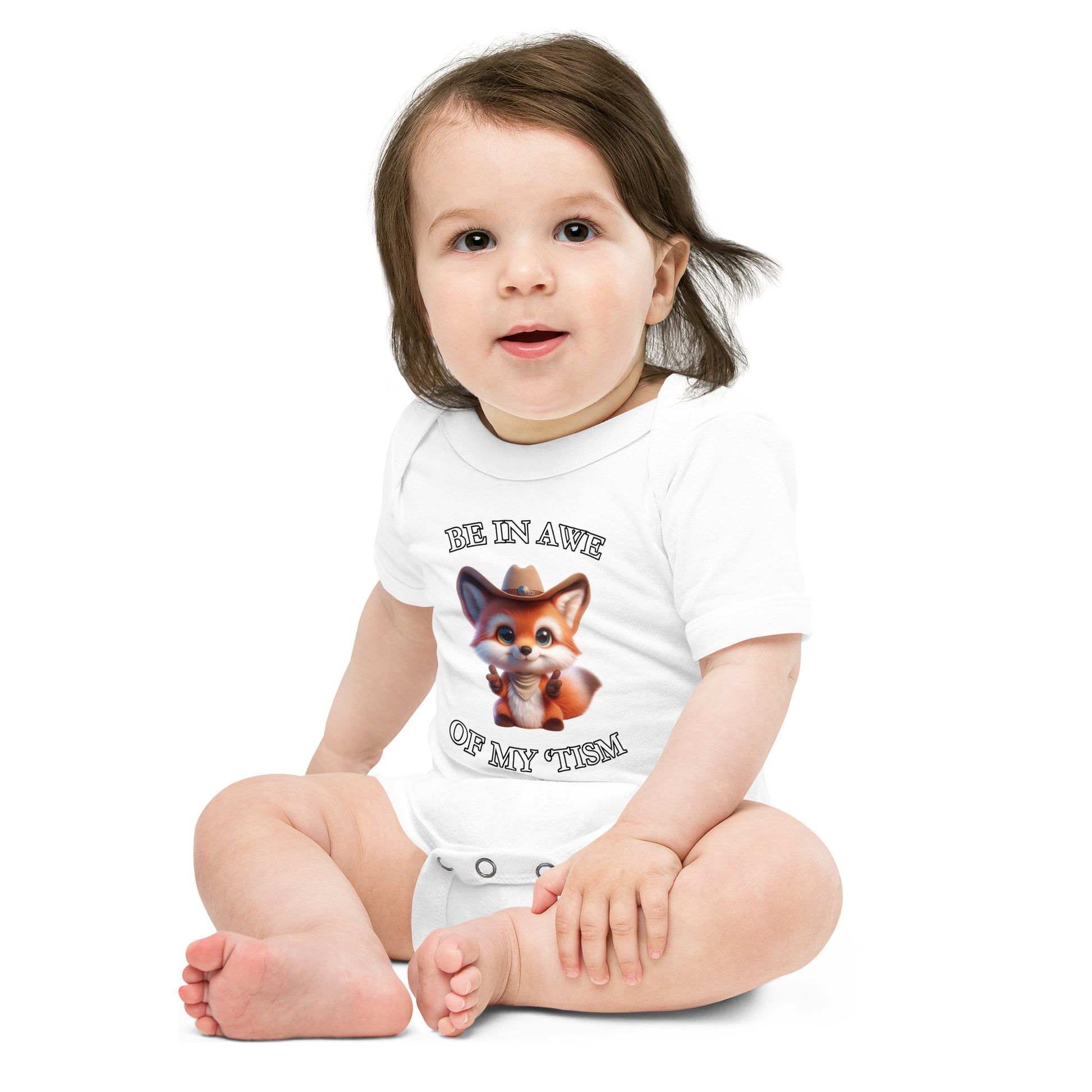 Dress your little one in a bundle of joy and positivity with the 'Tiny 'Tism Wonder Onesie'. Adorned with an irresistibly cute fox and an uplifting message, this onesie celebrates the awe-inspiring journey of growth and discovery. Crafted for comfort and smiles, it's perfect for playtime, naptime, and those adorable moments in between. This onesie isn't just clothing; it's a warm embrace for your little one's individuality and the extraordinary moments you'll share. Made of 100% cotton, it has three snap leg closure for easy changing, a comfortable envelope neckline, and a beautiful print that's bound to get the baby all happy and giggling.