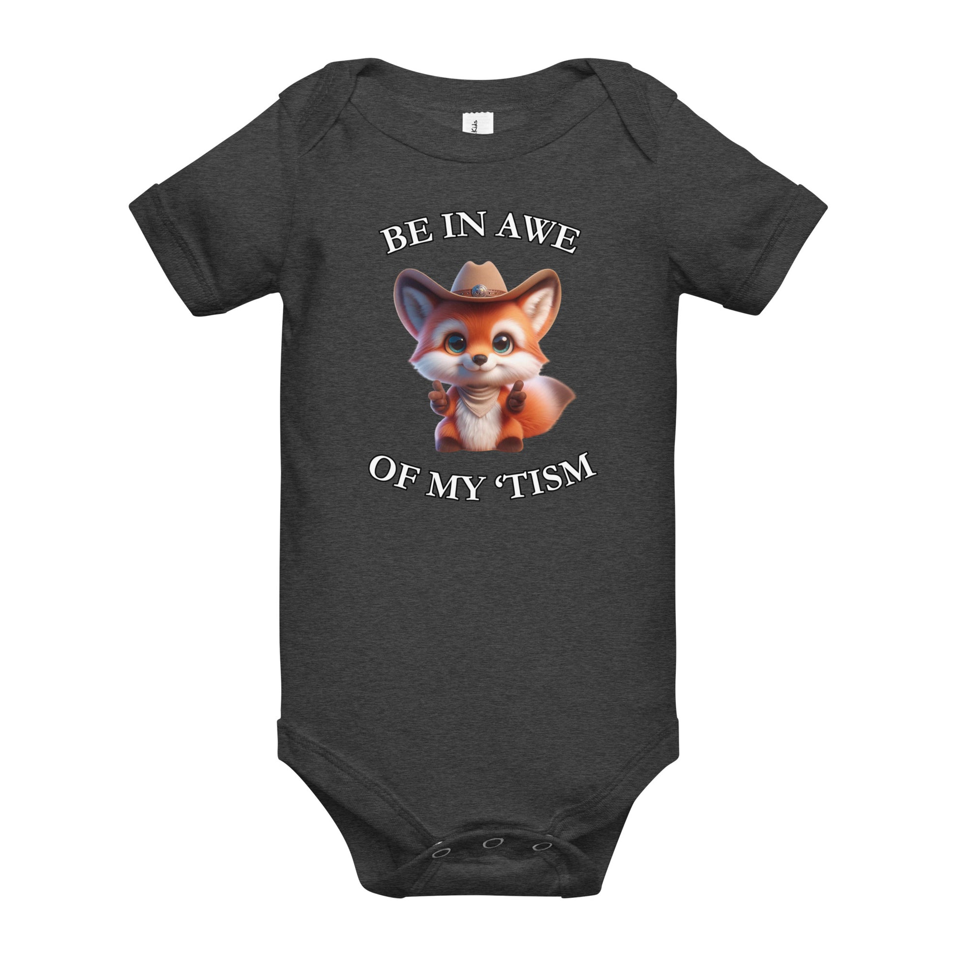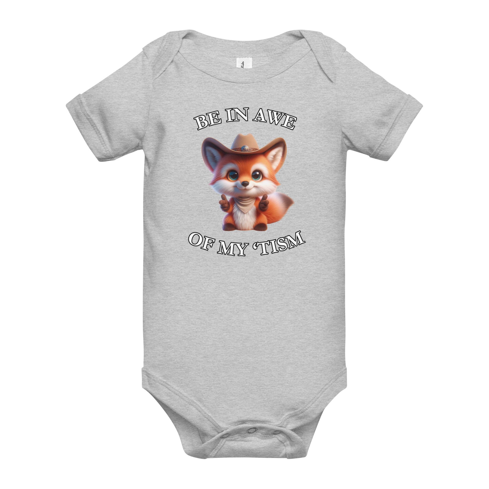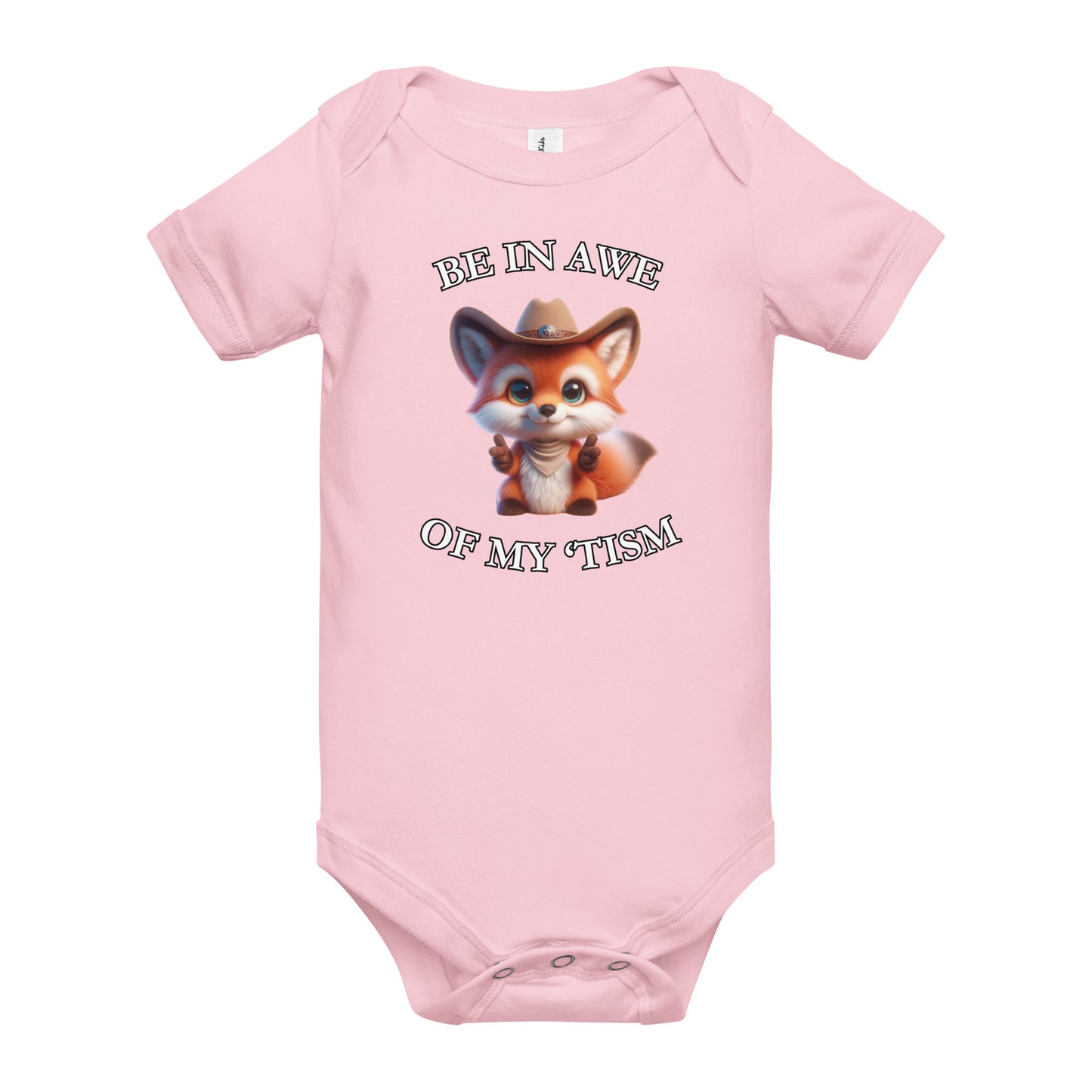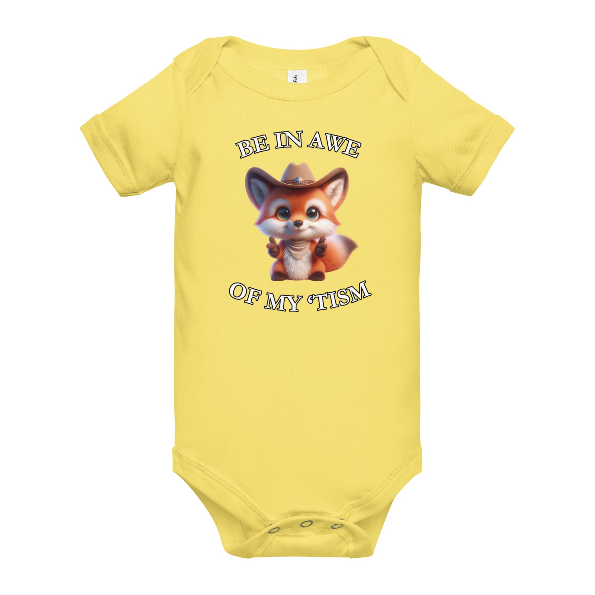 Dress your little one in a bundle of joy and positivity with the 'Tiny 'Tism Wonder Onesie'. Adorned with an irresistibly cute fox and an uplifting message, this onesie celebrates the awe-inspiring journey of growth and discovery. Crafted for comfort and smiles, it's perfect for playtime, naptime, and those adorable moments in between. This onesie isn't just clothing; it's a warm embrace for your little one's individuality and the extraordinary moments you'll share. Made of 100% cotton, it has three snap leg closure for easy changing, a comfortable envelope neckline, and a beautiful print that's bound to get the baby all happy and giggling.