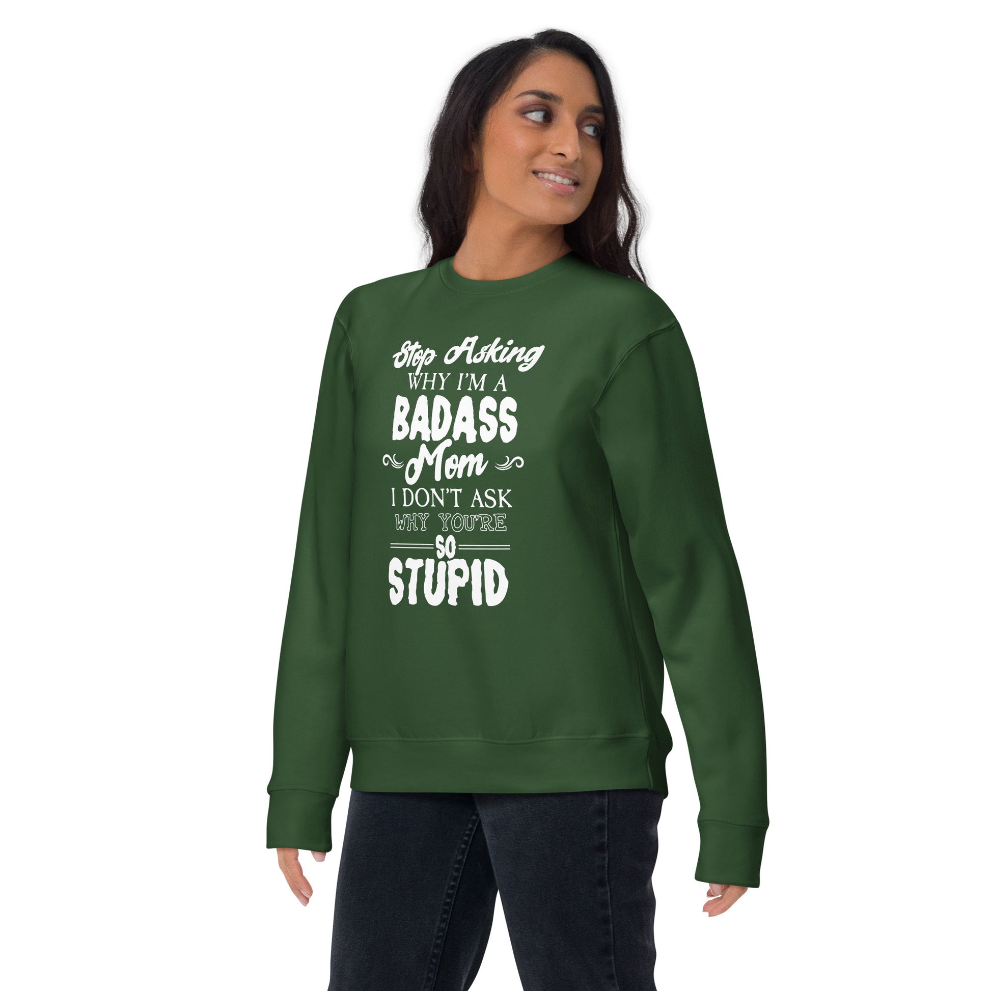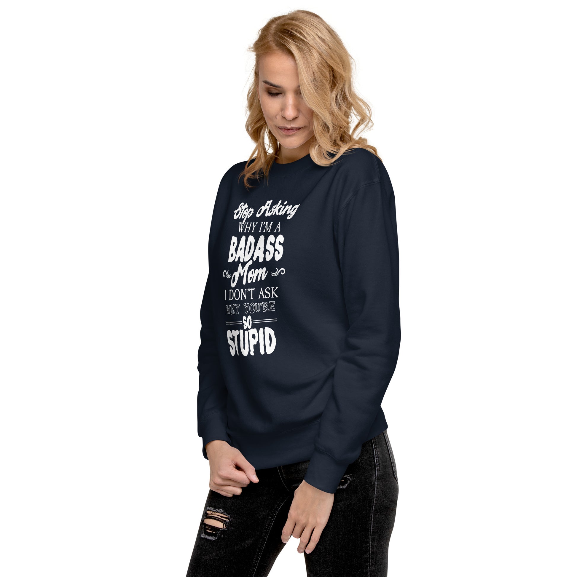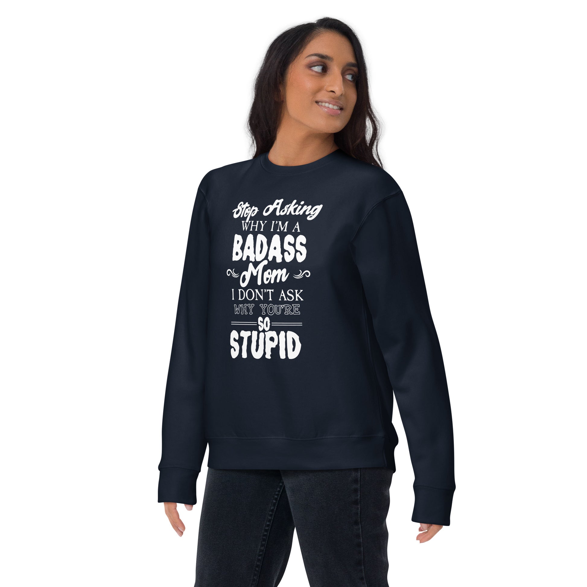 Our "Badass Mom Sweatshirt" is the ultimate nod to those with a strong will and a sharp tongue. It's comfort with a side of confrontation, for the days when you feel like broadcasting your inner strength to the world. Pull this on and let it be known: you're here, you're uncompromising, and you're absolutely unstoppable. Rock a classic sweatshirt silhouette with ribbed crew neck, long sleeve cuffs, and a flat hem. Layer it up or wear it on its own for a contemporary streetwear look. With the soft fleece inside and comfortable fit, it’s sure to become your favorite everyday sweater right away!