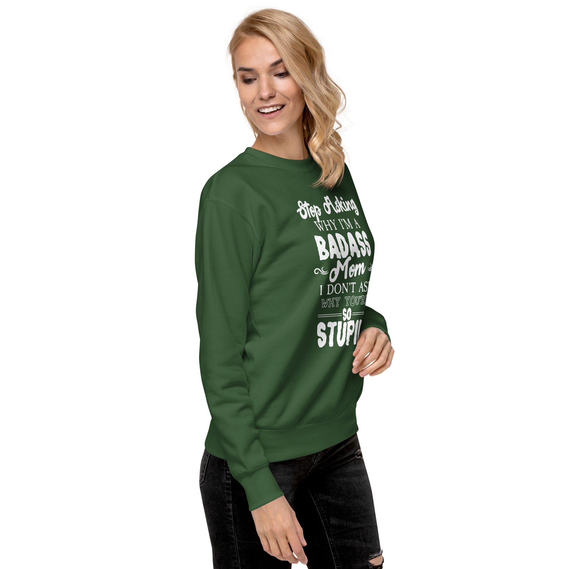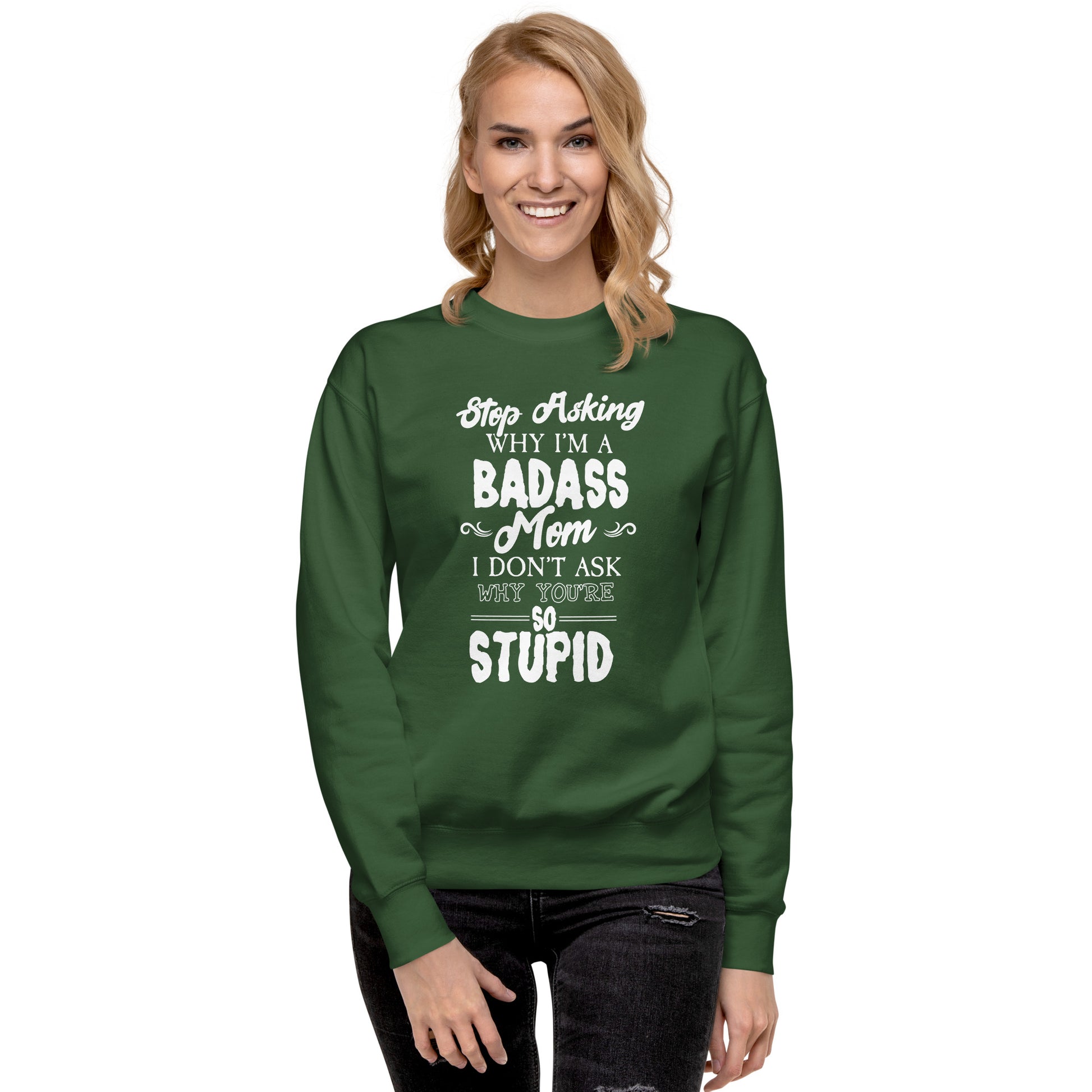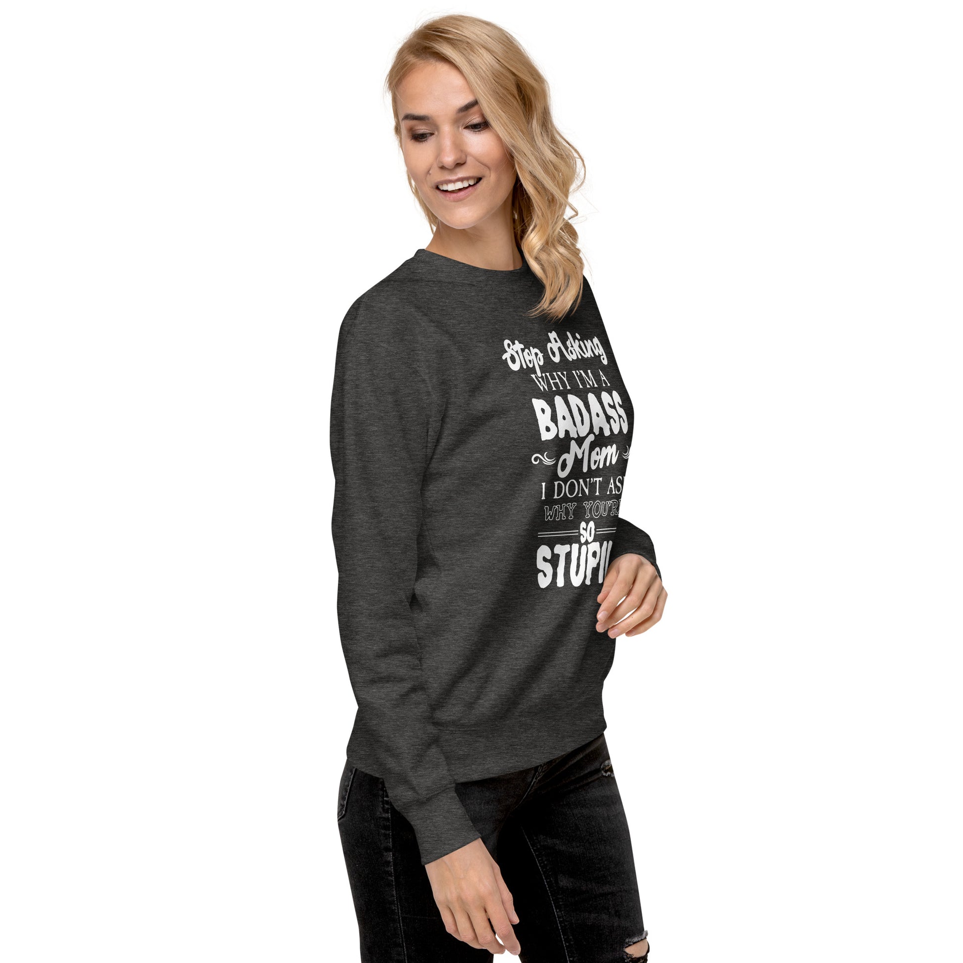 Our "Badass Mom Sweatshirt" is the ultimate nod to those with a strong will and a sharp tongue. It's comfort with a side of confrontation, for the days when you feel like broadcasting your inner strength to the world. Pull this on and let it be known: you're here, you're uncompromising, and you're absolutely unstoppable. Rock a classic sweatshirt silhouette with ribbed crew neck, long sleeve cuffs, and a flat hem. Layer it up or wear it on its own for a contemporary streetwear look. With the soft fleece inside and comfortable fit, it’s sure to become your favorite everyday sweater right away!