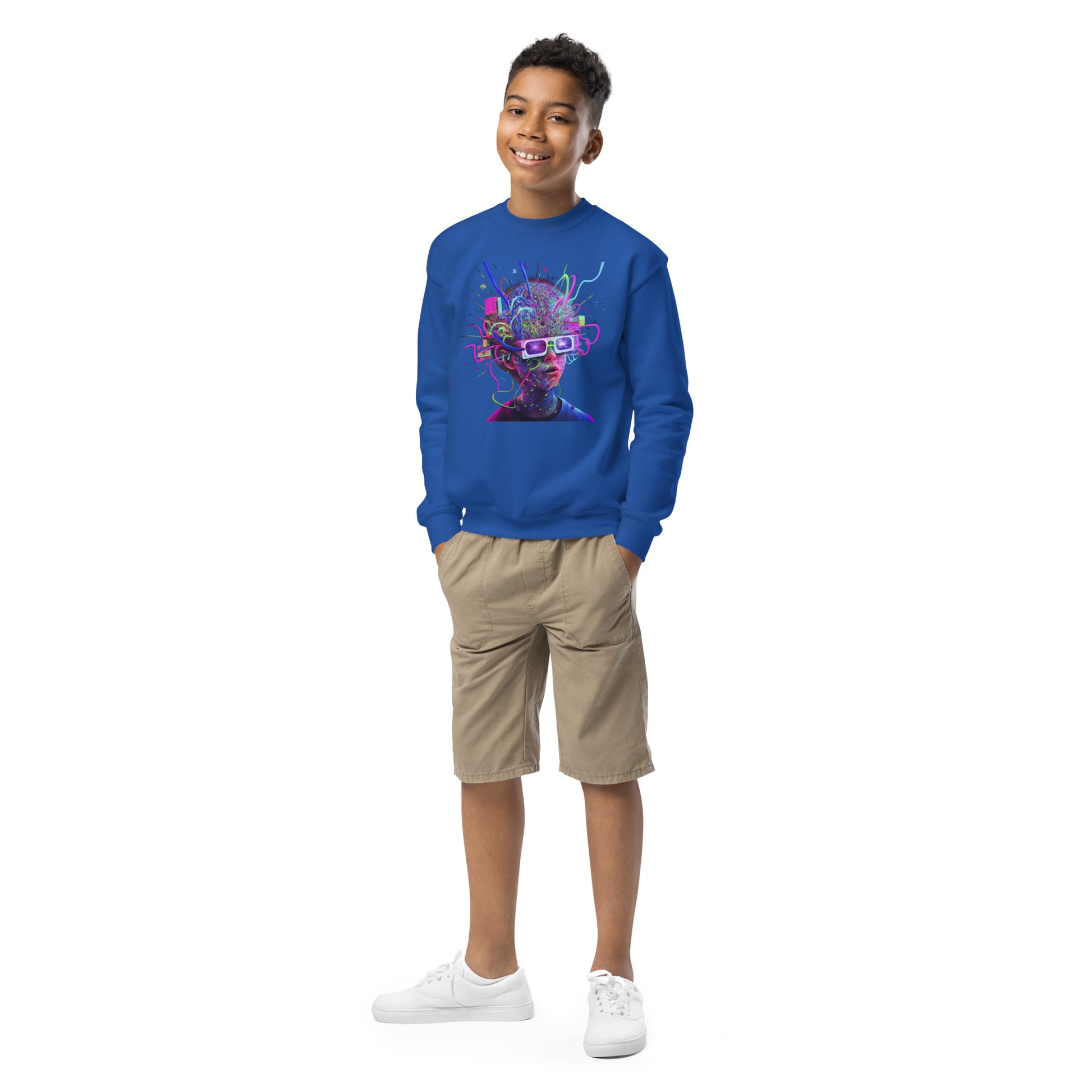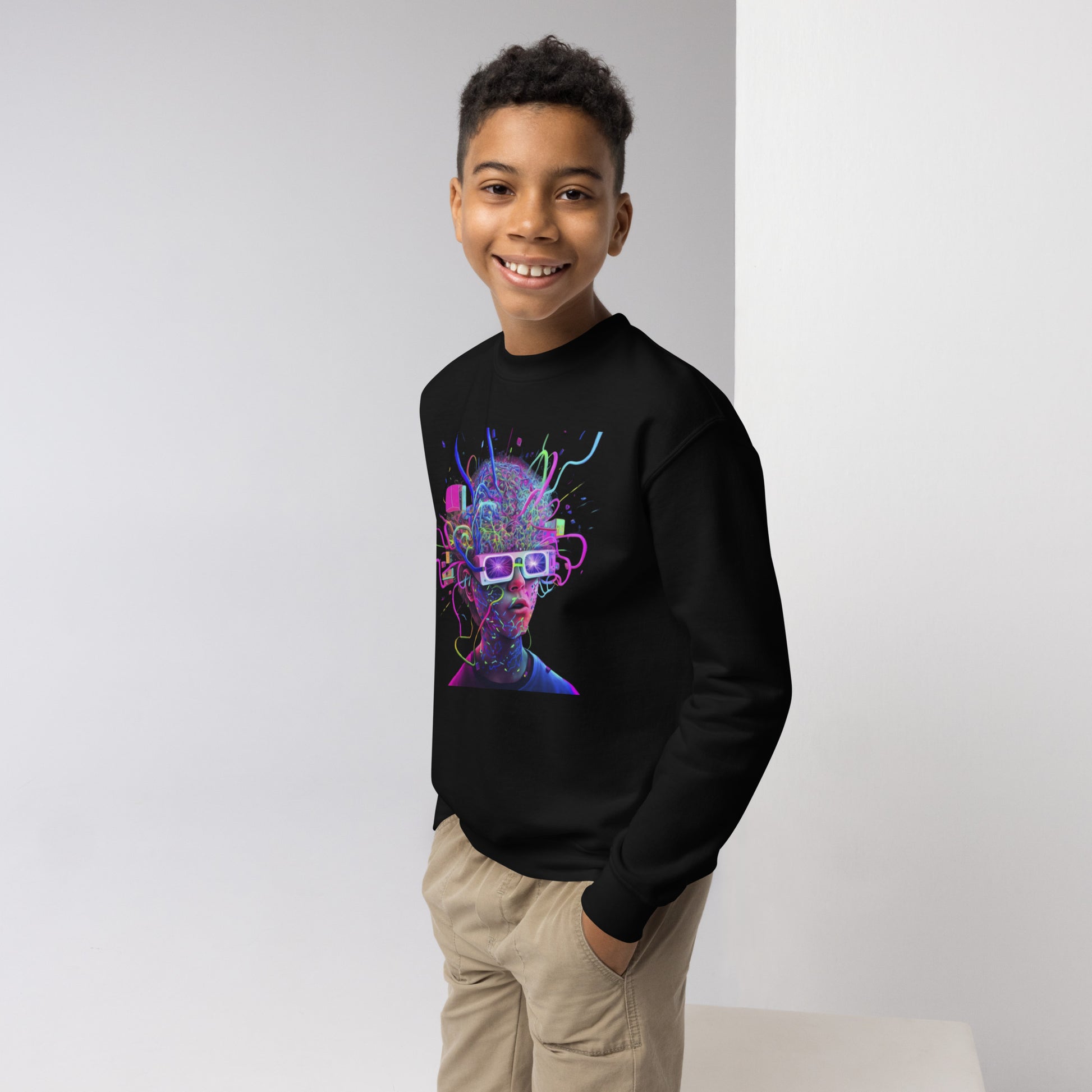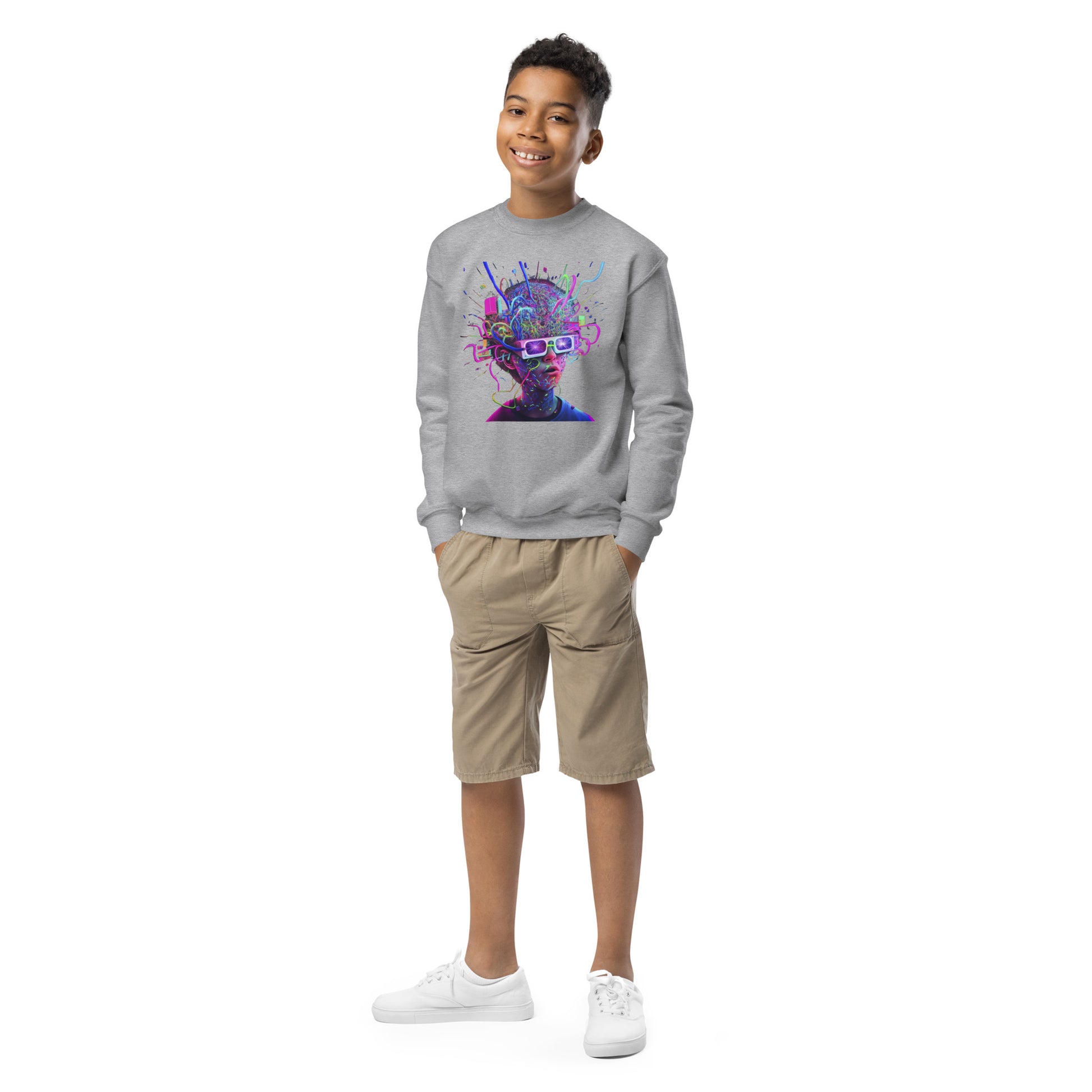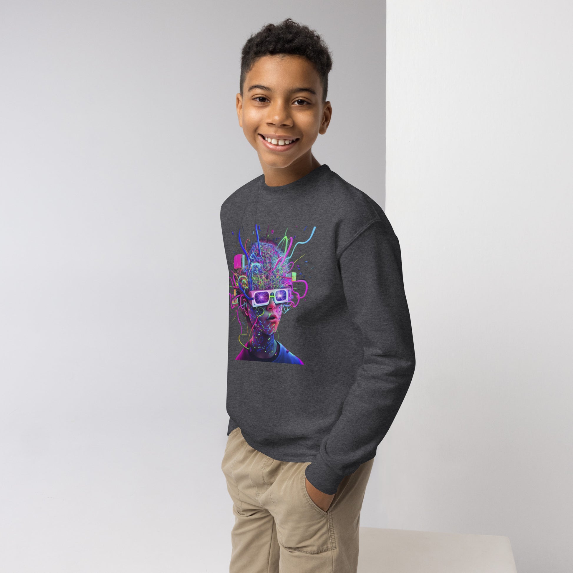 This is an expression of pure joy and dynamic energy of youth with "Beautiful 3D Chaos by Fanzo." The design, featuring a burst of colorful 3D elements, is printed on a classic sweatshirt that's paired with a whimsical tulle skirt, showcasing the creativity and freedom of children's fashion. This image radiates happiness and movement, as the young girl leaps with a backdrop that's just as playful and bright as her outfit, perfectly blending the lines between everyday wear and the imagination-fueled playtime of childhood. Cozy and cool, this youth crewneck sweatshirt is designed for every adventure. Made from soft fleece fabric, it’s easy to wear and hassle-free to wash. Whether headed out or snuggled up on the couch, the younger crowd will love the look and feel of this sweatshirt.