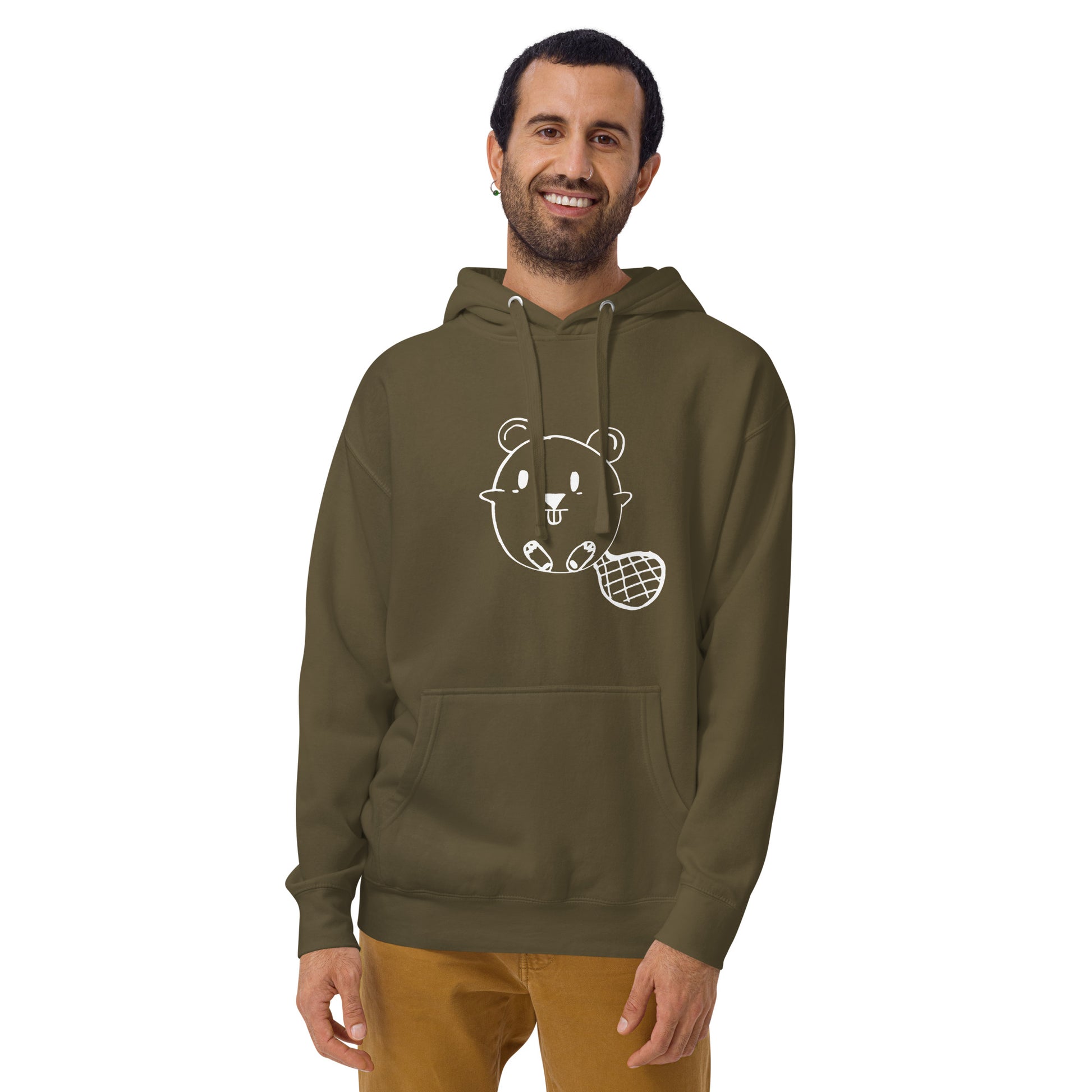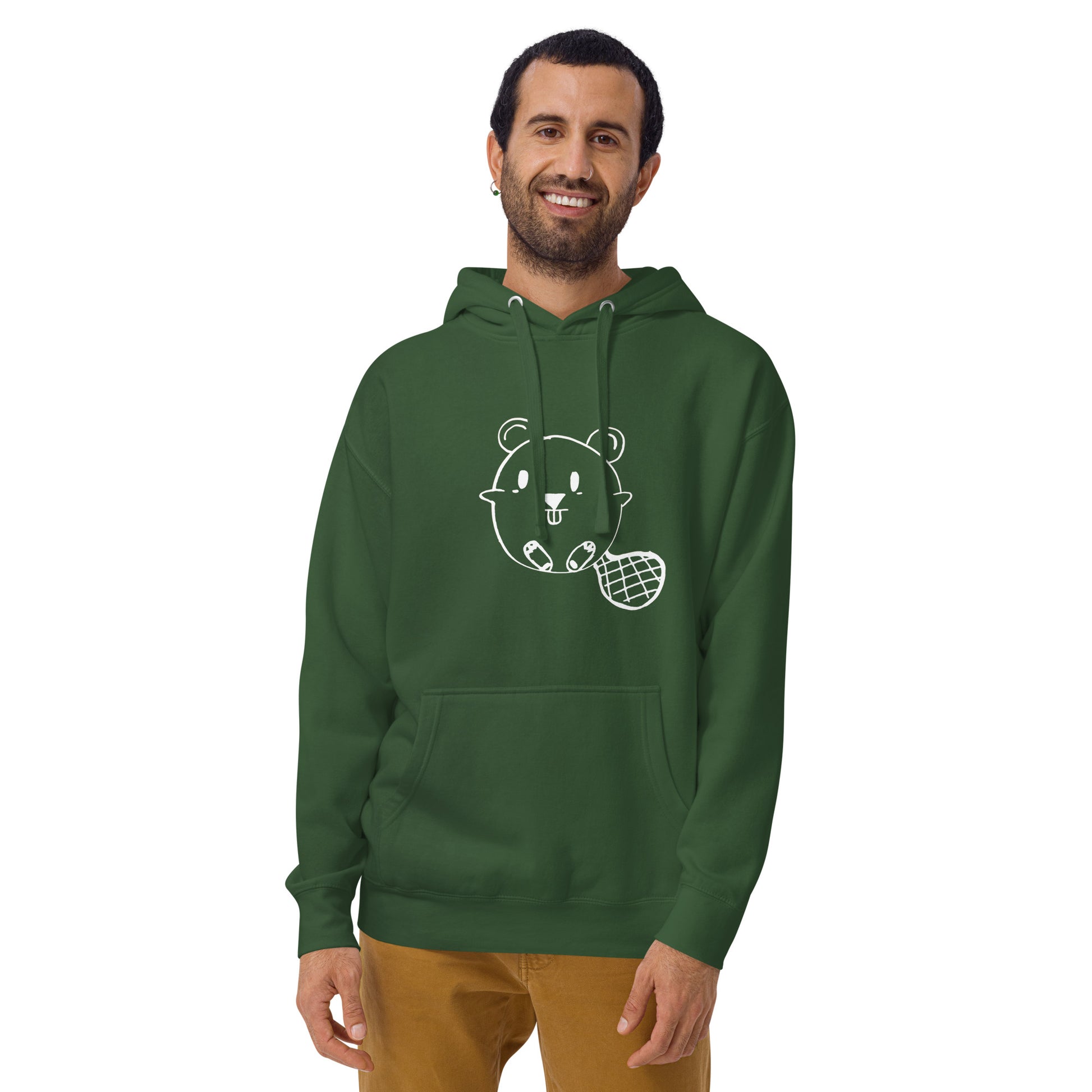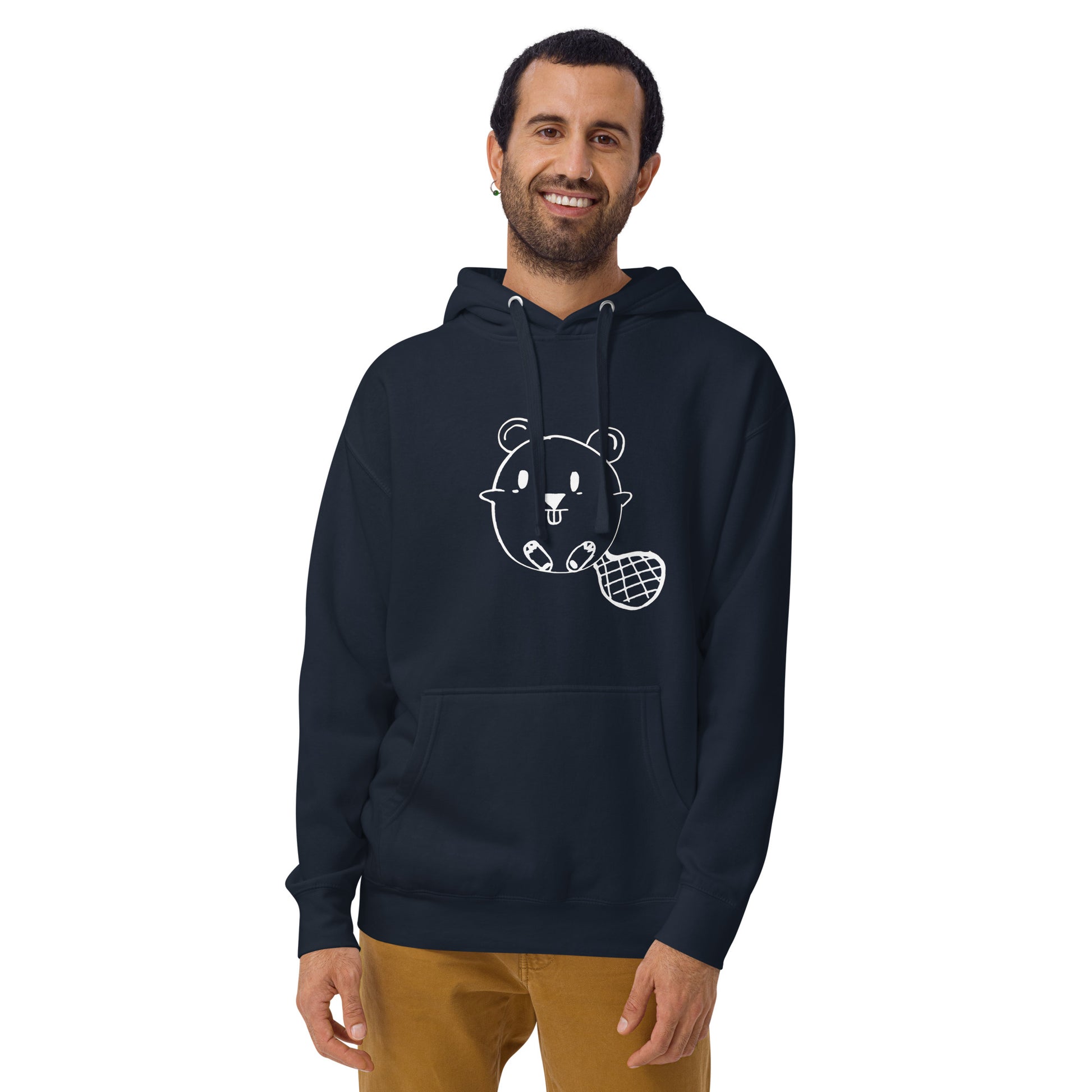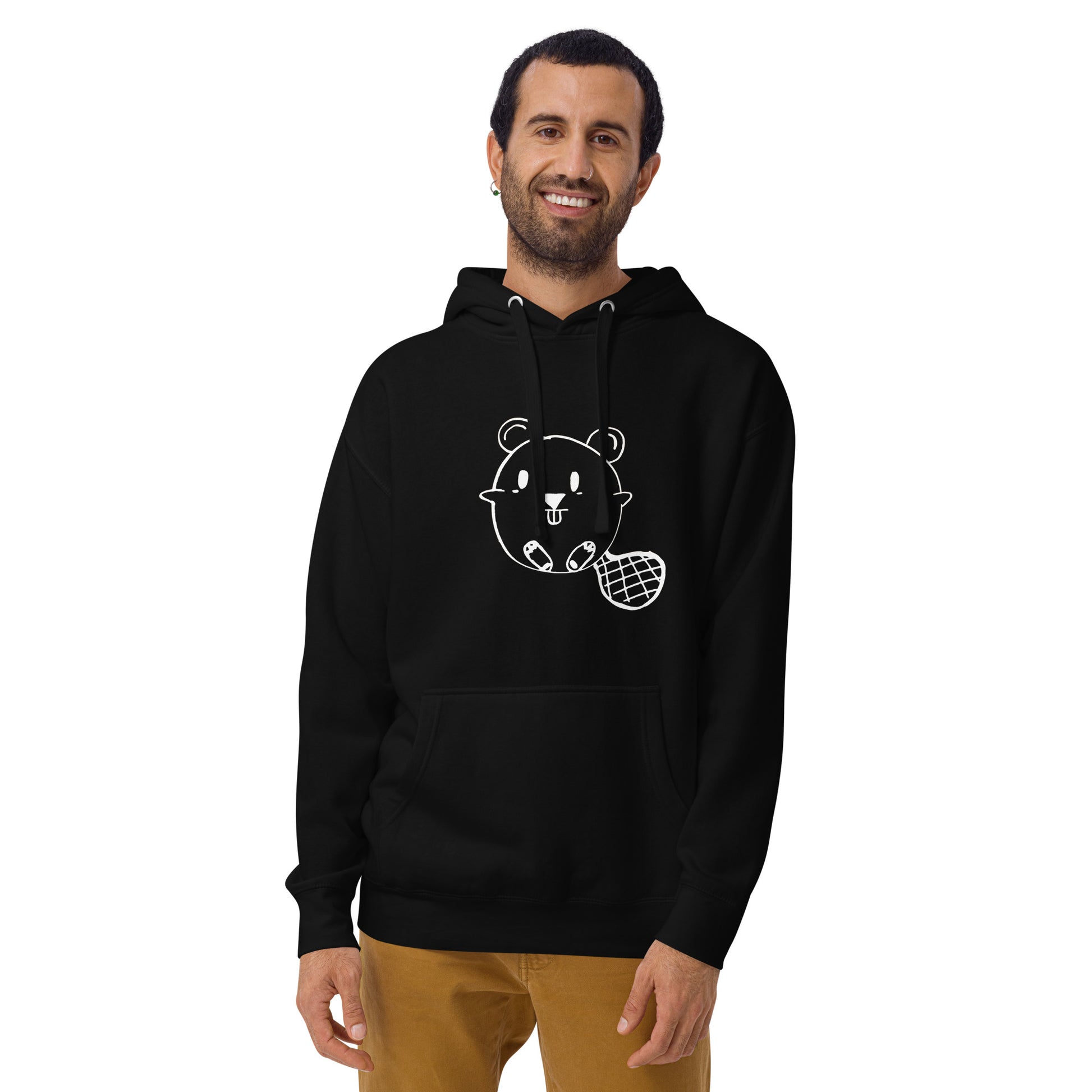 Who doesn't love a Beaver? Get ready to charm the crowd with our "Beaver Buddy Hoodie." This isn't just a hoodie; it's a playful twist on everyday wear. The front of the hoodie showcases a delightful white line drawing of a beaver, complete with a cheeky grin and a stylish, checkered tail. This minimalist yet whimsical design is perfect for those who love to wear their playful side on their sleeve—or, in this case, on their chest! Who knew that the softest hoodie you'll ever own comes with such a cool design. You won't regret buying this classic streetwear piece of apparel with a convenient pouch pocket and warm hood for chilly evenings.