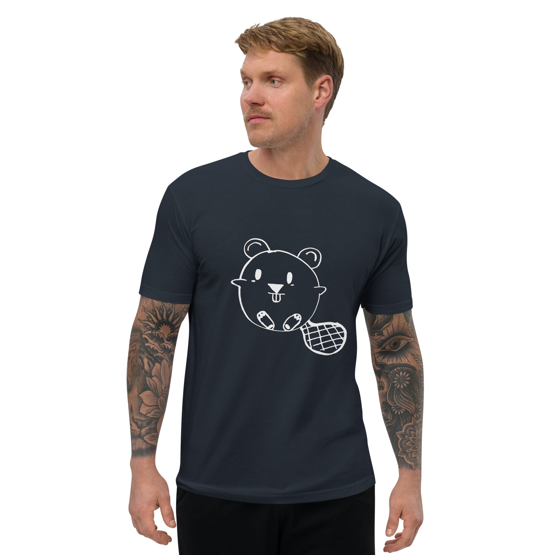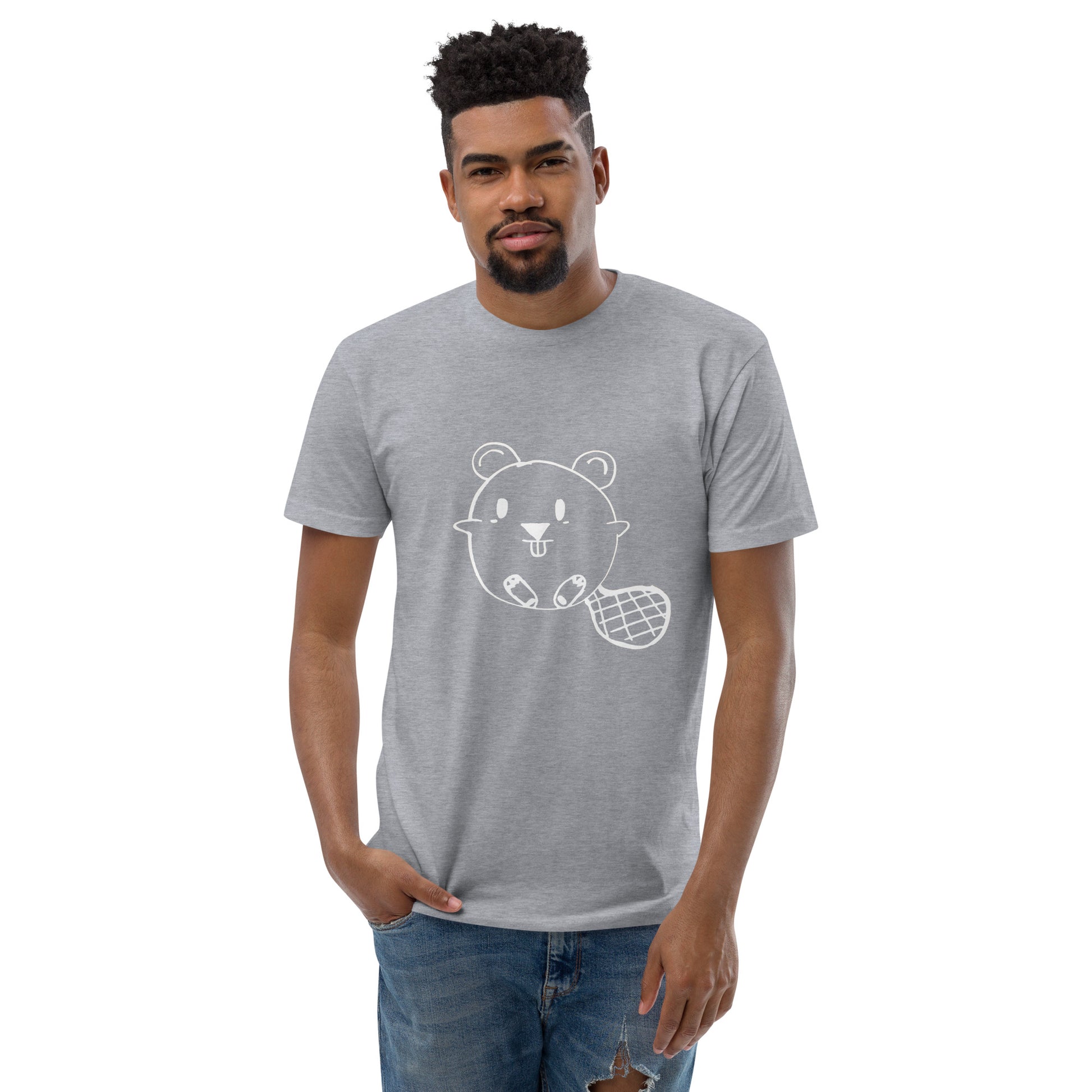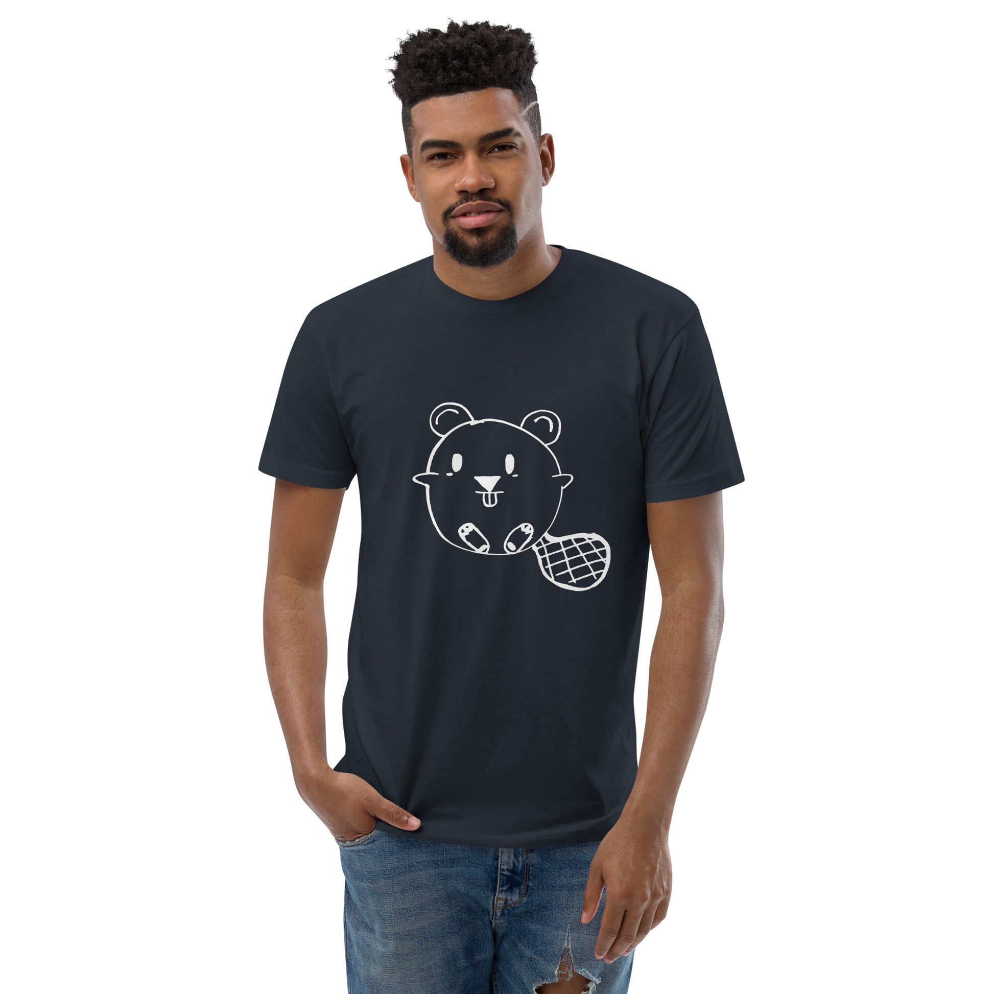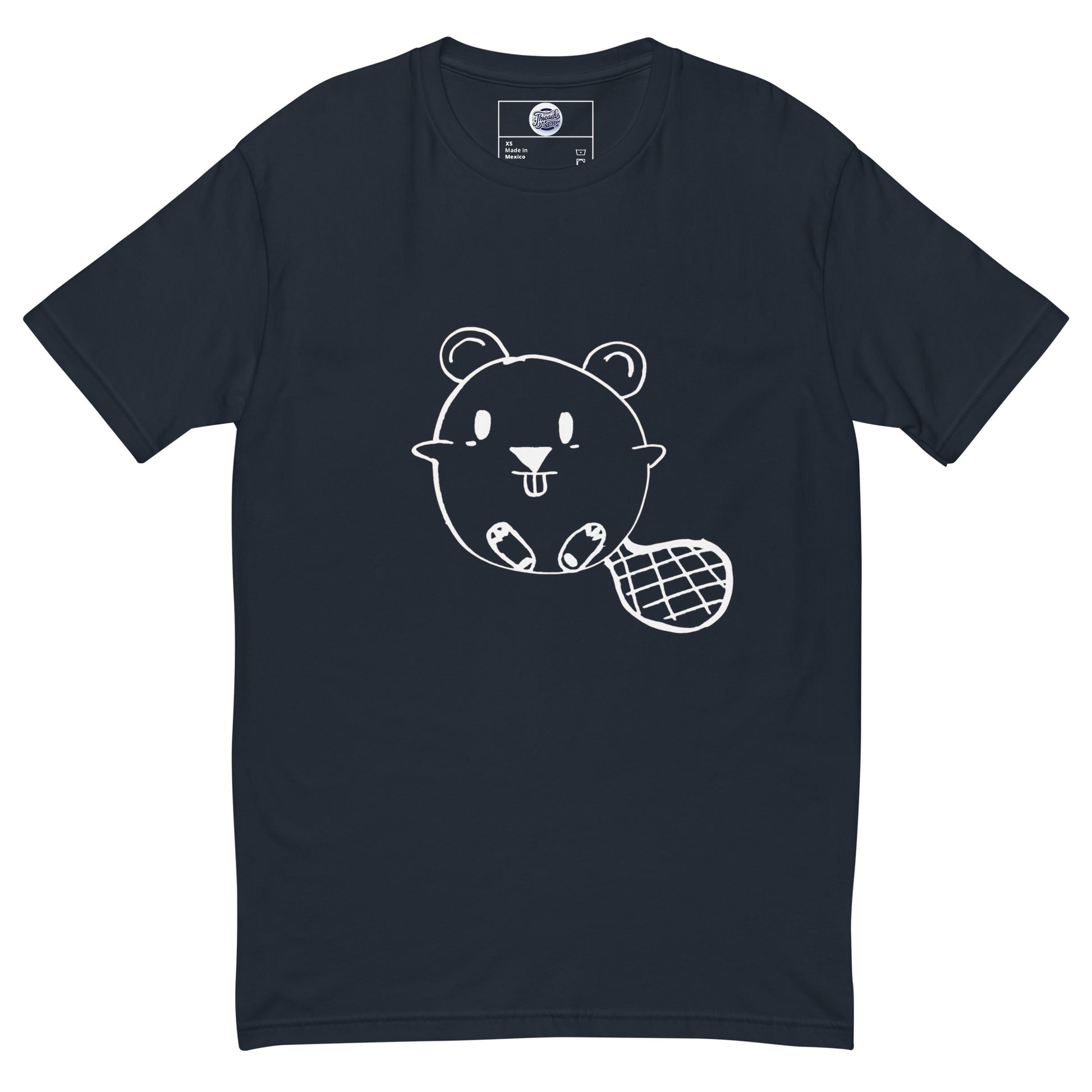 Who doesn't love a Beaver? Get ready to charm the crowd with our "Beaver Buddy Tee." This isn't just a t-shirt; it's a playful twist on everyday wear. The front of the tee showcases a delightful white line drawing of a beaver, complete with a cheeky grin and a stylish, checkered tail. This minimalist yet whimsical design is perfect for those who love to wear their playful side on their sleeve—or, in this case, on their chest!