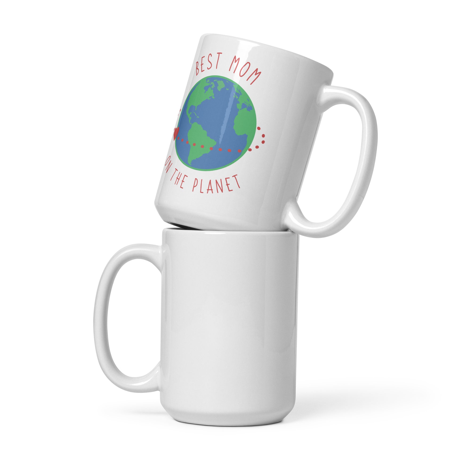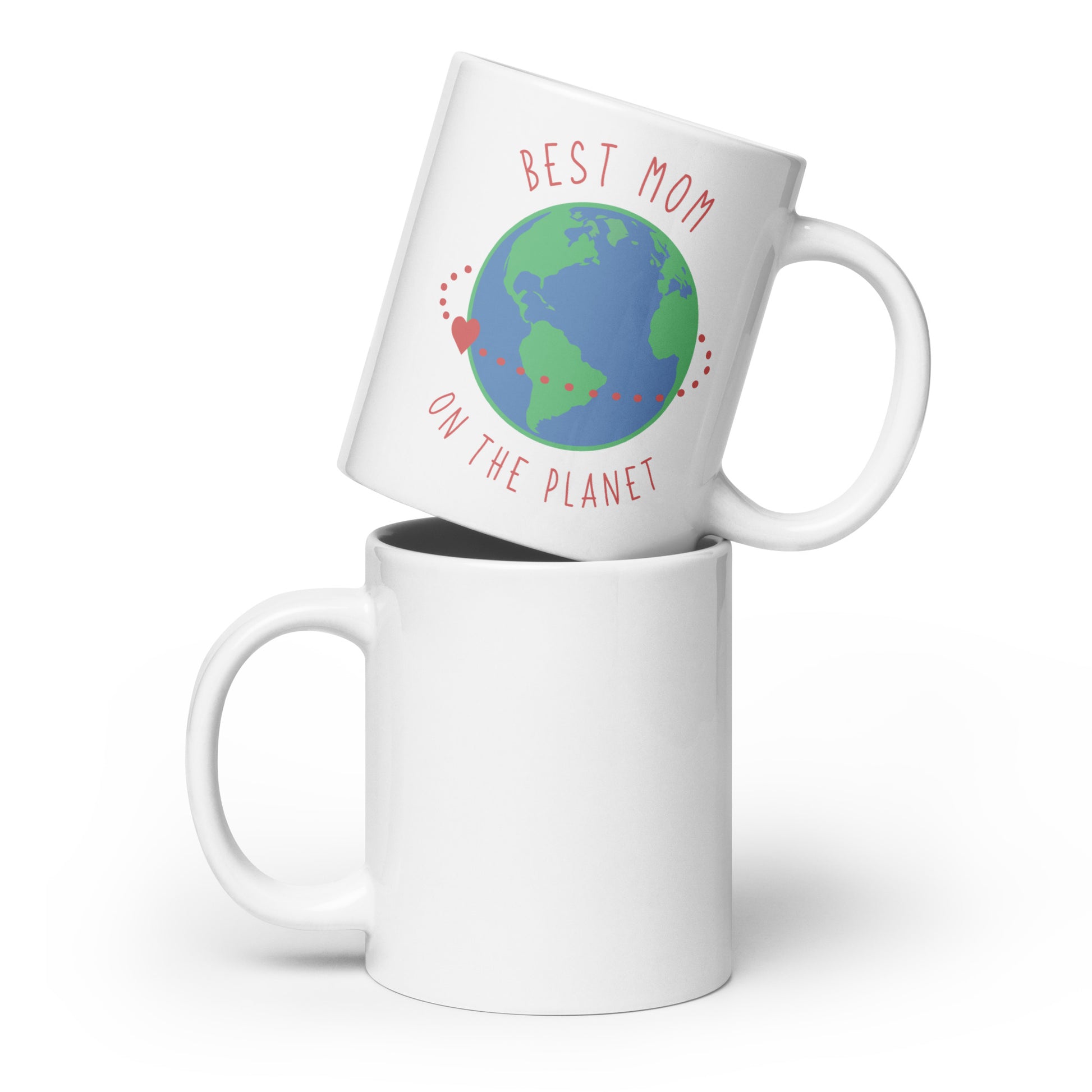 Show your mom she means the world to you with our "Best Mom on the Planet" mug. This charming white ceramic mug features a beautifully illustrated globe with a heartwarming orbit of love, highlighting the phrase that circles your mom's role in your life – she's truly the best. The playful red and green accents offer a pop of color, making this cup a joyful addition to any morning routine. It's perfect for coffee, tea, or any beverage that warms her heart. Easy to clean and convenient for daily use, this mug is microwave and dishwasher safe. It’s an ideal gift to remind your mom, every day, that her love is as boundless as the earth itself. Whether you're drinking your morning coffee, evening tea, or something in between—this mug's for you! It's sturdy and glossy with a vivid print that'll withstand the microwave and dishwasher.
