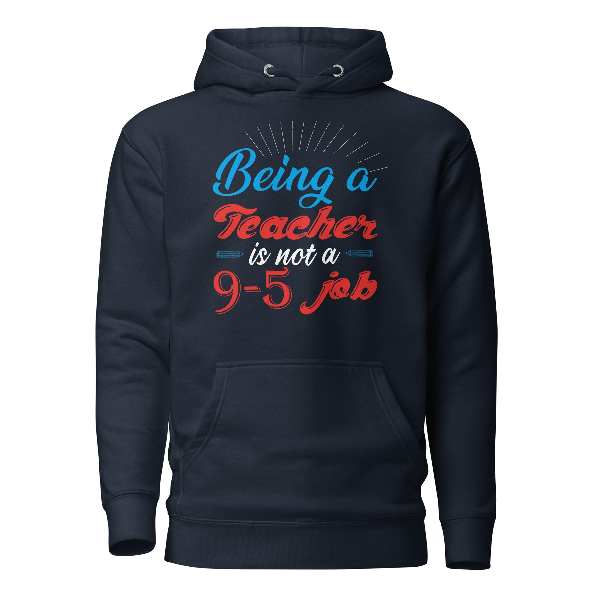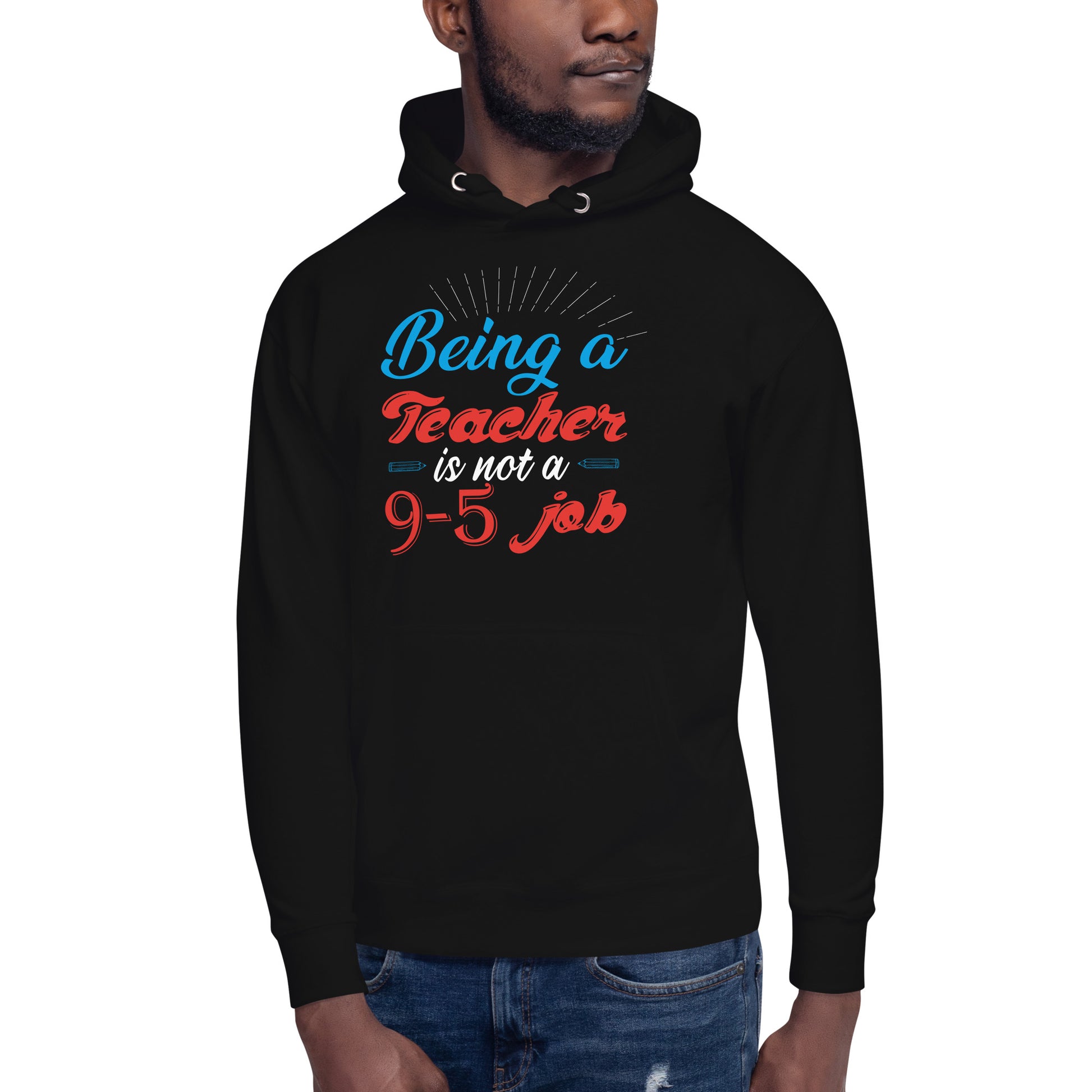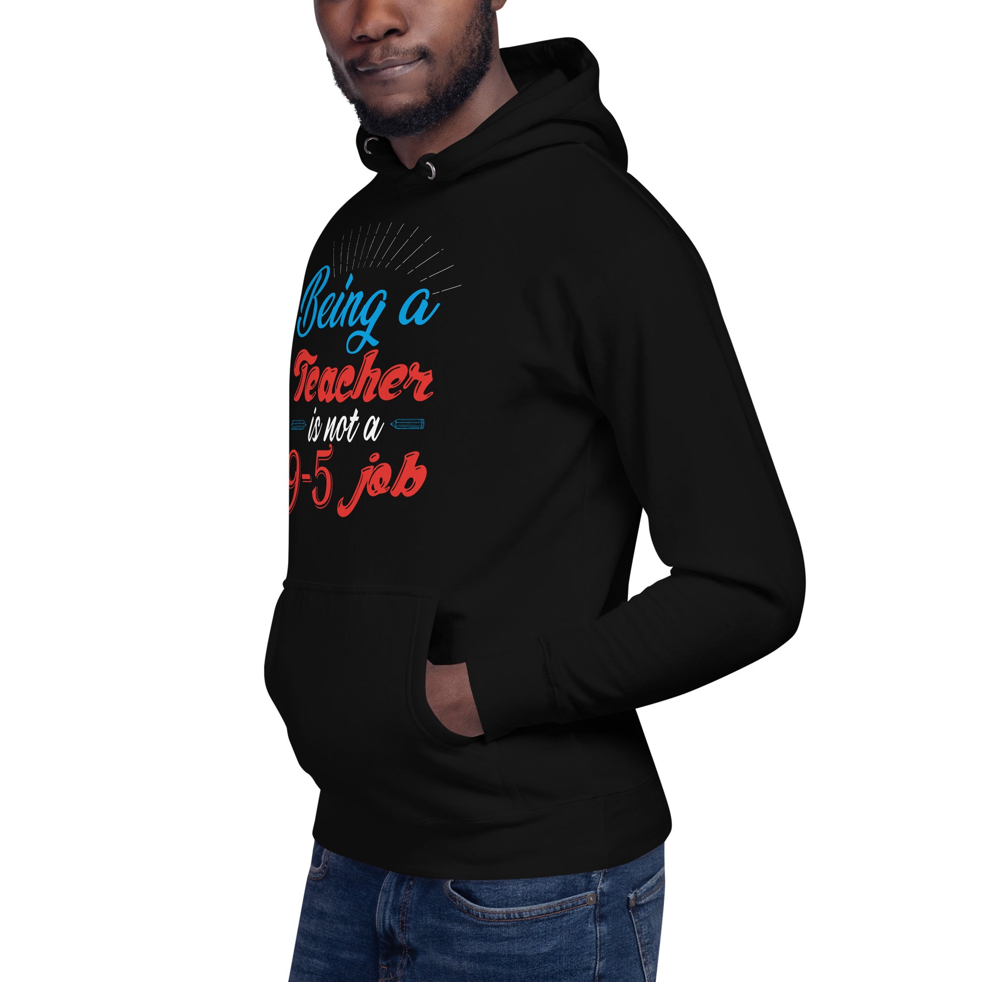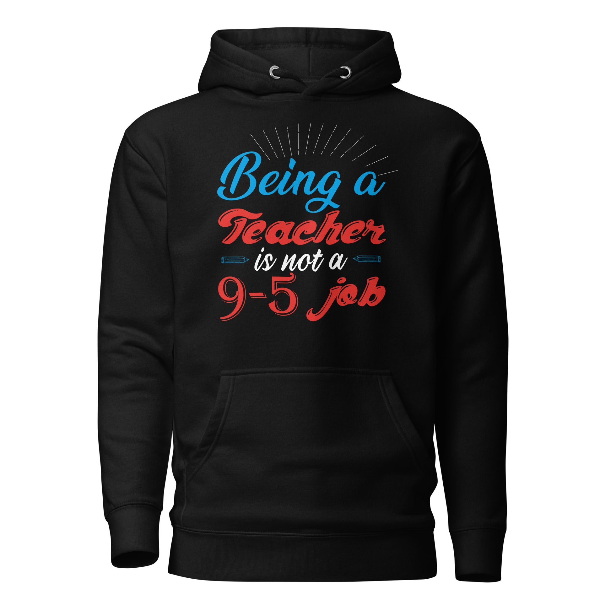 Celebrate the dedication that extends beyond the final bell with our "Beyond the Bell" hoodie. Boldly stating, "Being a Teacher is not a 9-5 job," this tee is a salute to the passion and commitment that educators carry with them, long after the classroom is empty. The vibrant lettering pops against the classic black background, symbolizing the energy and tireless spirit of teachers who work around the clock to enlighten young minds. This shirt isn't just a piece of clothing; it's a badge of honor for those who lesson plan by moonlight, grade by the glow of a laptop, and are always thinking of ways to inspire their students. Perfect for teacher's lounges, weekend errands, or school events, this tee is for the heroes without capes who know that education is not bound by the clock. Who knew that the softest hoodie you'll ever own comes with such a cool design. You won't regret buying this classic streetwear piece of apparel with a convenient pouch pocket and warm hood for chilly evenings.