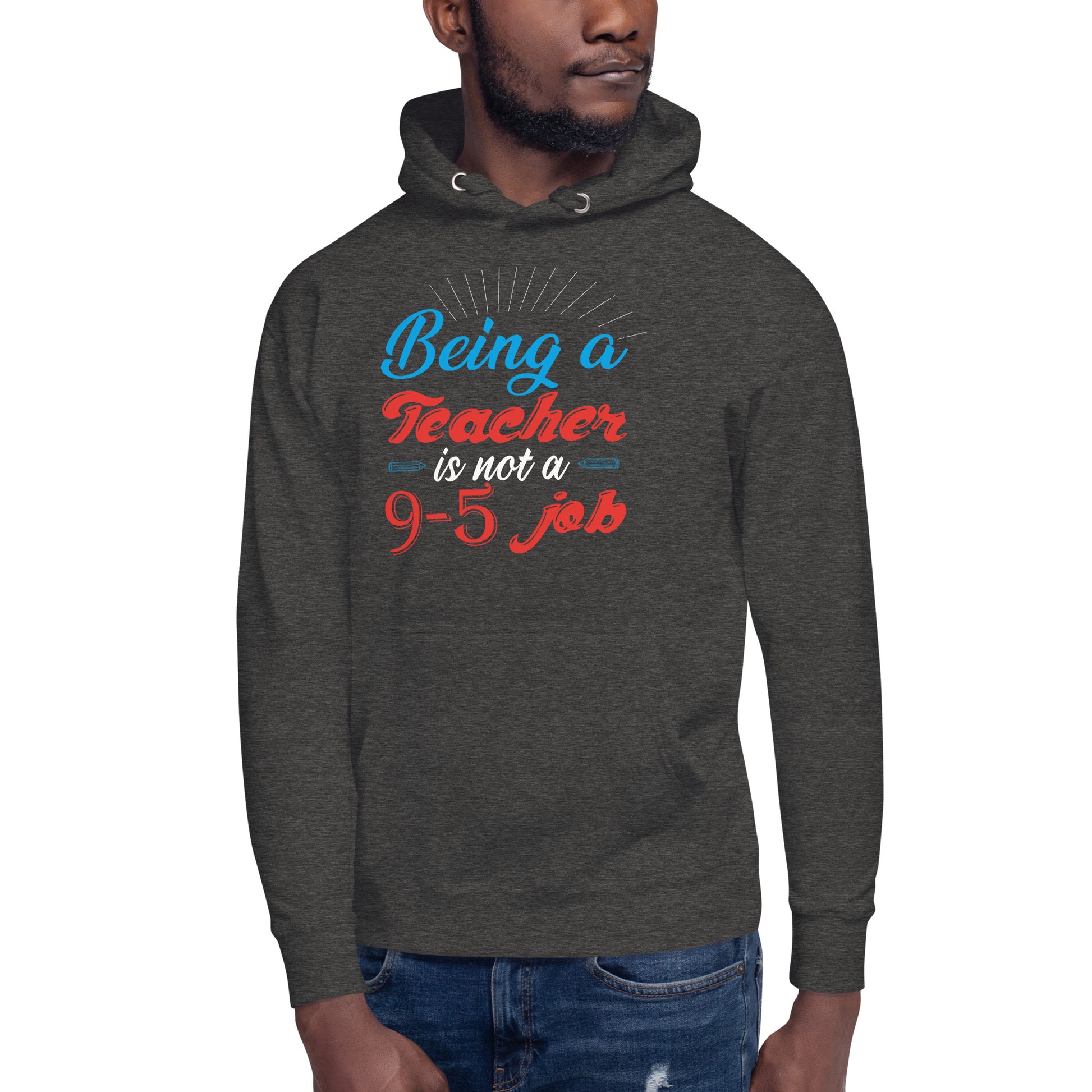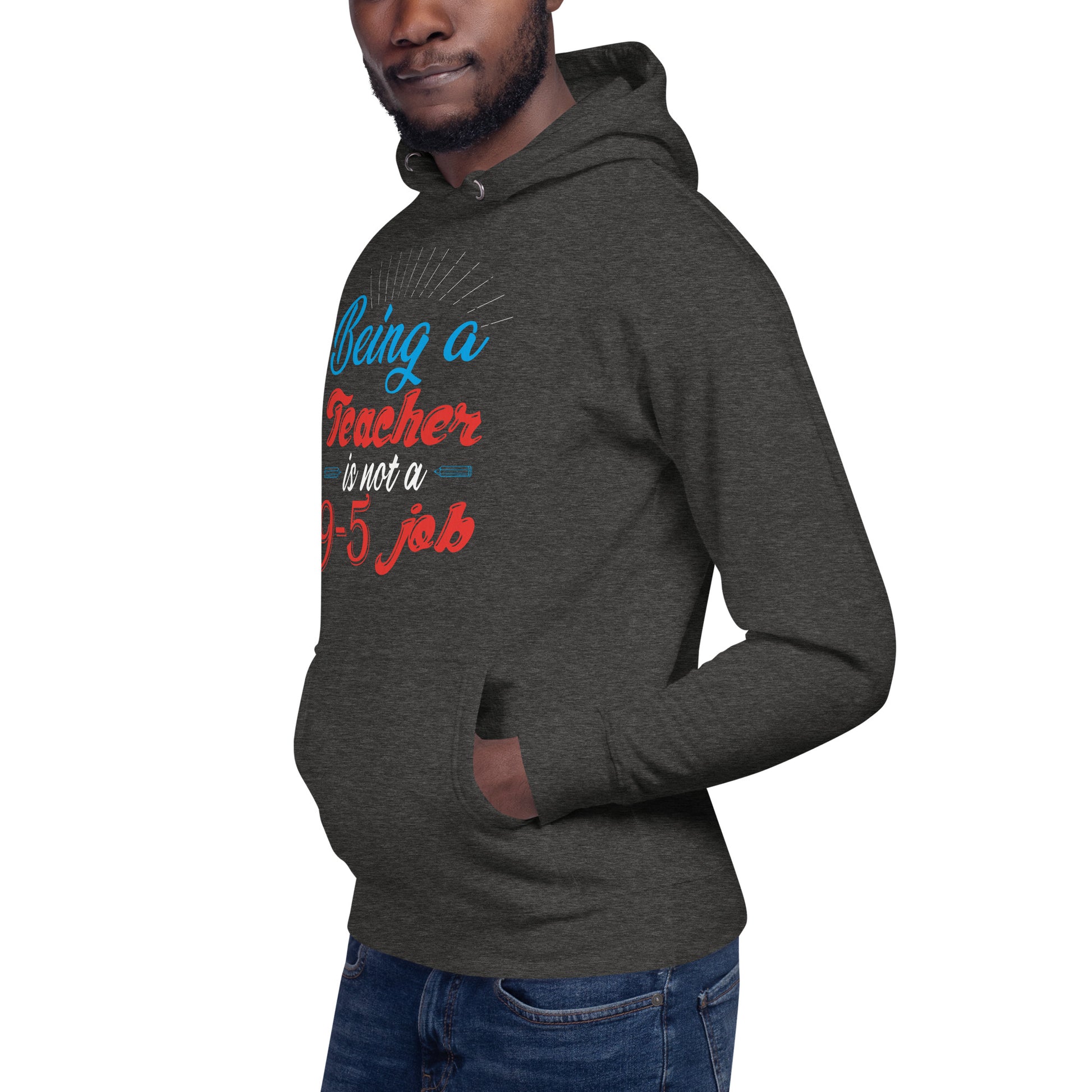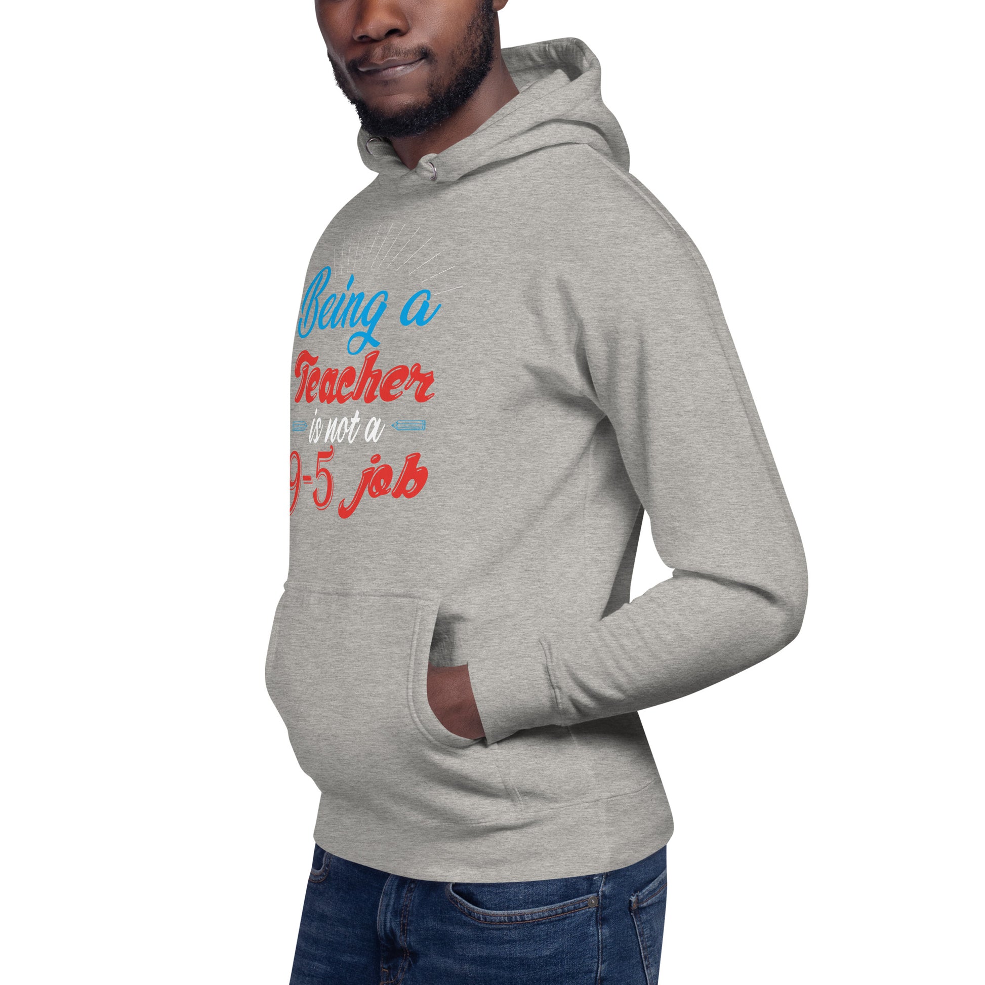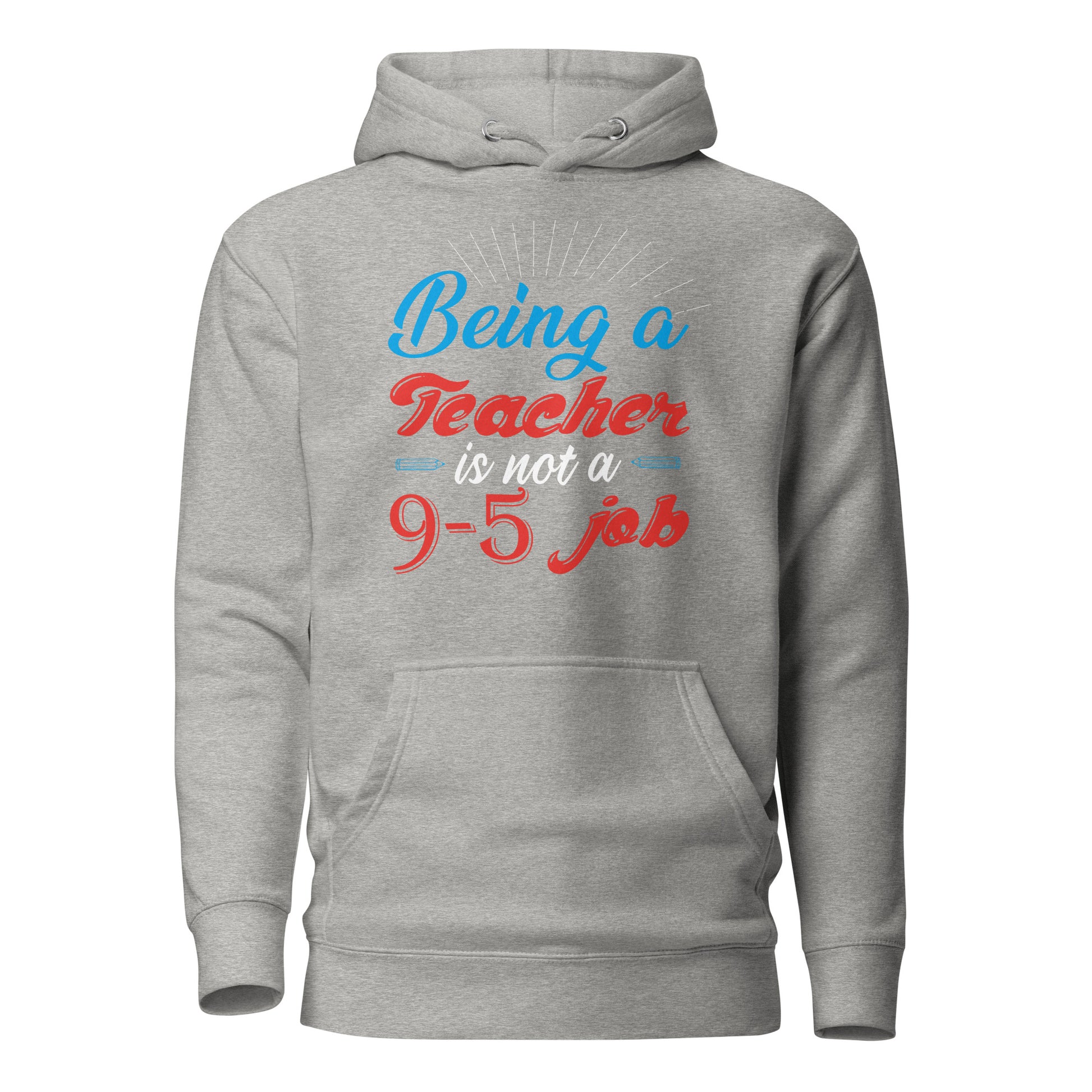 Celebrate the dedication that extends beyond the final bell with our "Beyond the Bell" hoodie. Boldly stating, "Being a Teacher is not a 9-5 job," this tee is a salute to the passion and commitment that educators carry with them, long after the classroom is empty. The vibrant lettering pops against the classic black background, symbolizing the energy and tireless spirit of teachers who work around the clock to enlighten young minds. This shirt isn't just a piece of clothing; it's a badge of honor for those who lesson plan by moonlight, grade by the glow of a laptop, and are always thinking of ways to inspire their students. Perfect for teacher's lounges, weekend errands, or school events, this tee is for the heroes without capes who know that education is not bound by the clock. Who knew that the softest hoodie you'll ever own comes with such a cool design. You won't regret buying this classic streetwear piece of apparel with a convenient pouch pocket and warm hood for chilly evenings.