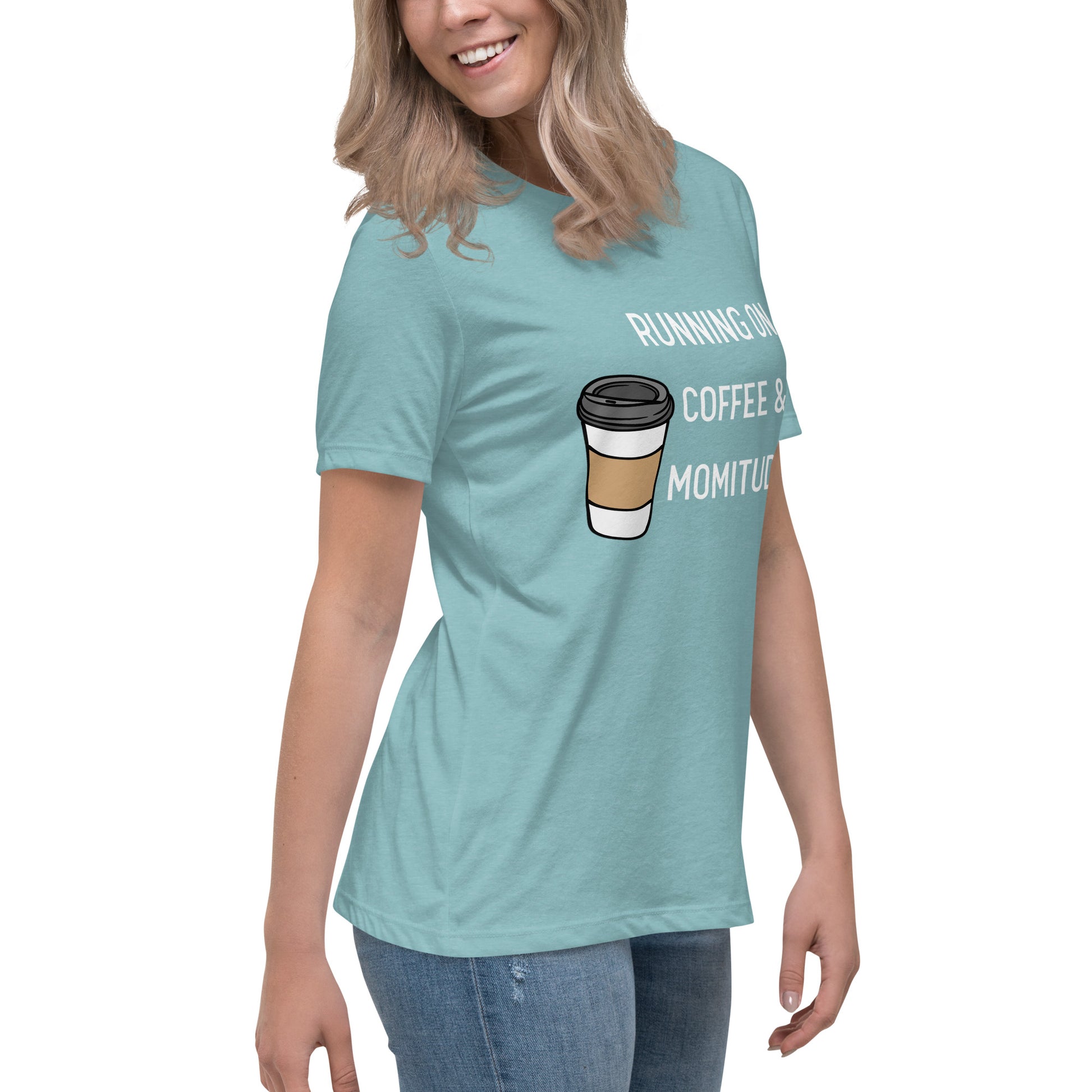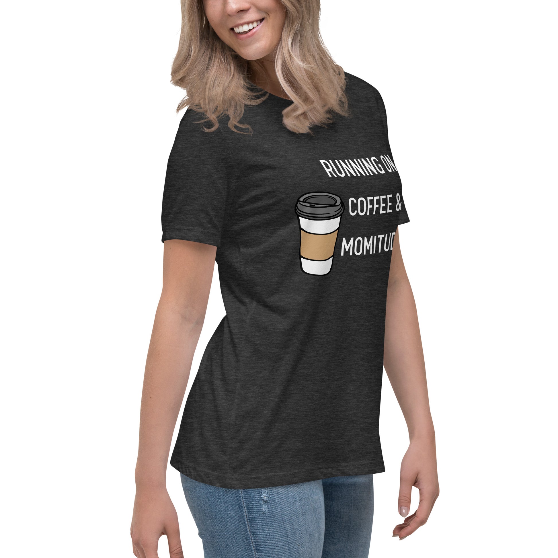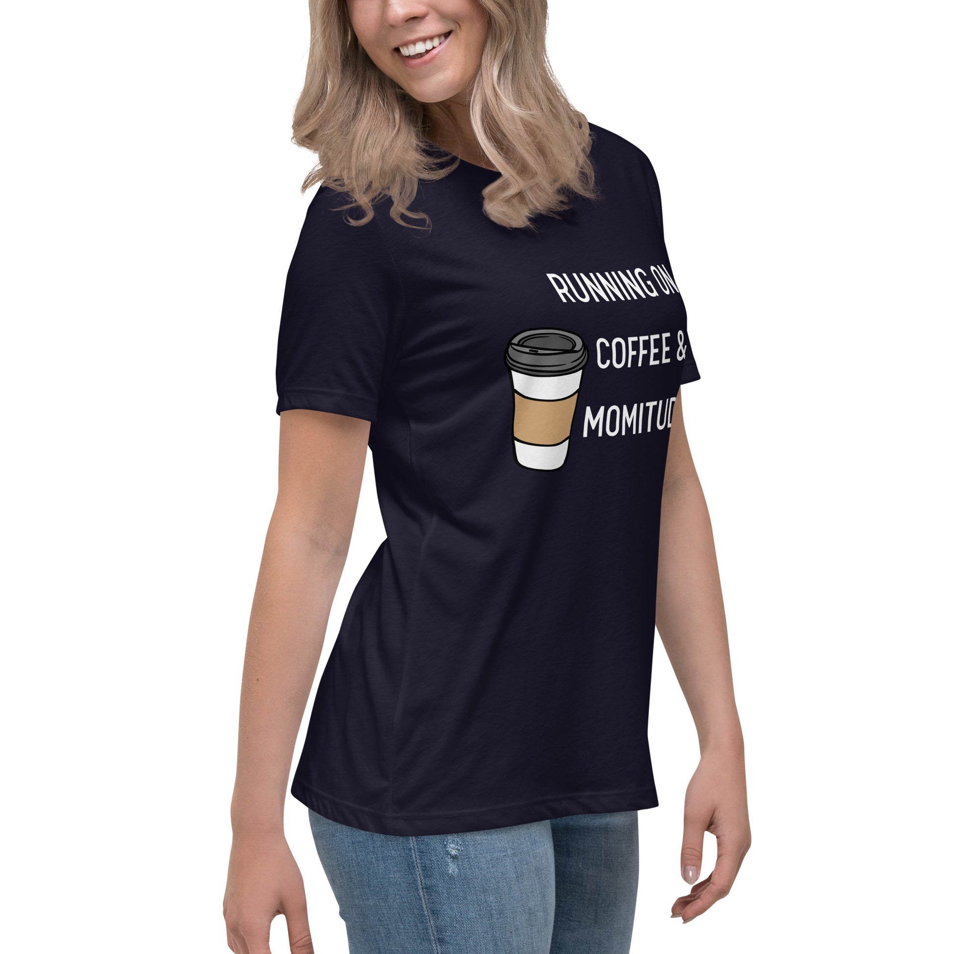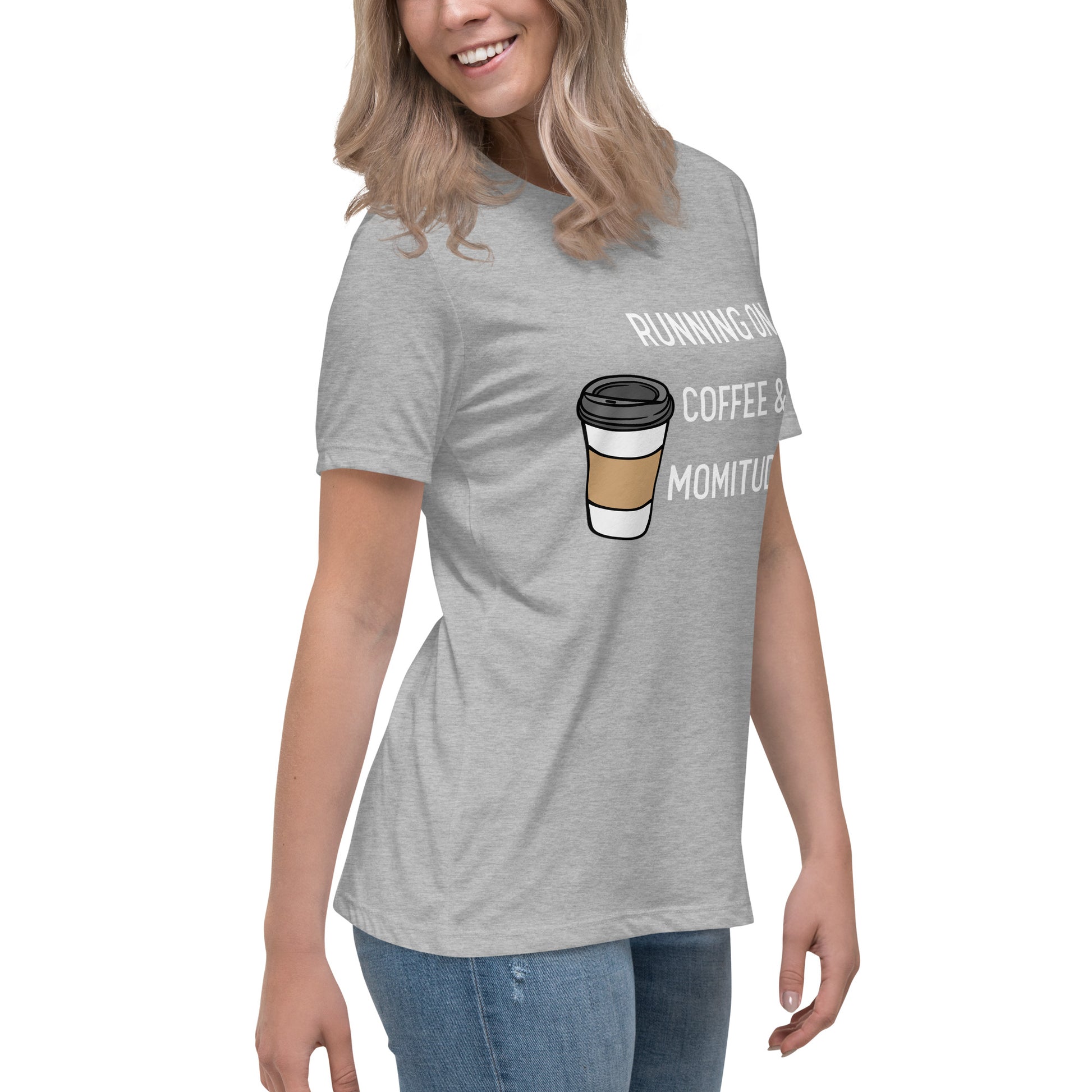 Embrace your inner supermom powers with this hilarious "Running on Coffee & Momitude" shirt! Whether you're wrangling kids, conquering errands, or just savoring a sacred sip of java, this comfy top gets it. Fuel up and get 'er done - because motherhood requires serious momitude. This just might be the softest and most comfortable women's t-shirt you'll ever own. Combine the relaxed fit and smooth fabric of this tee with jeans to create an effortless every-day outfit, or dress it up with a jacket and dress pants for a business casual look.