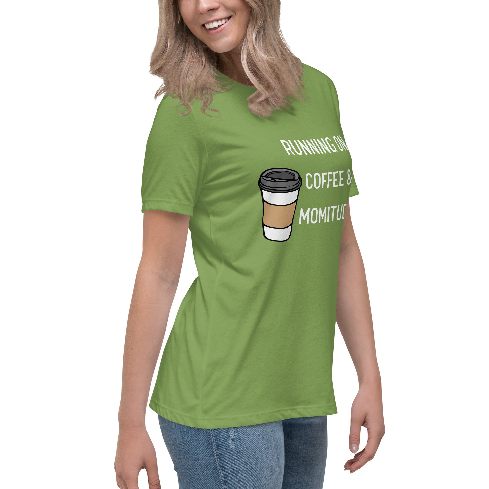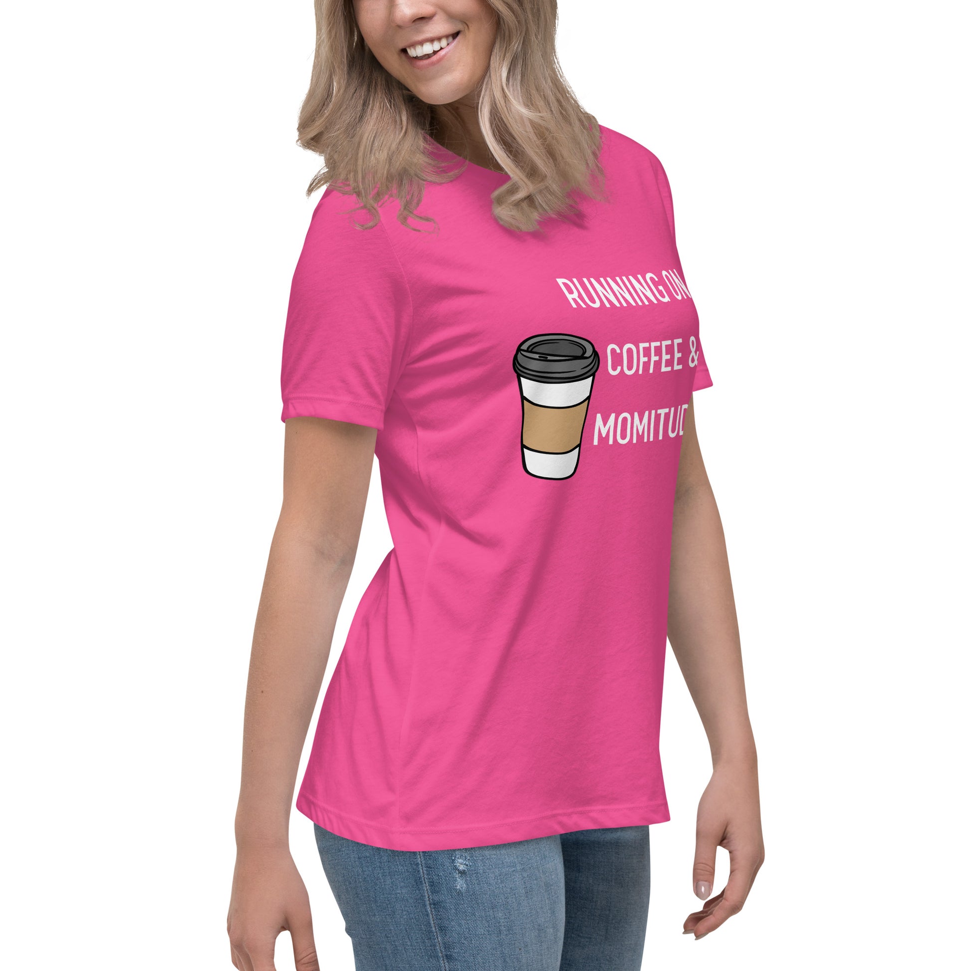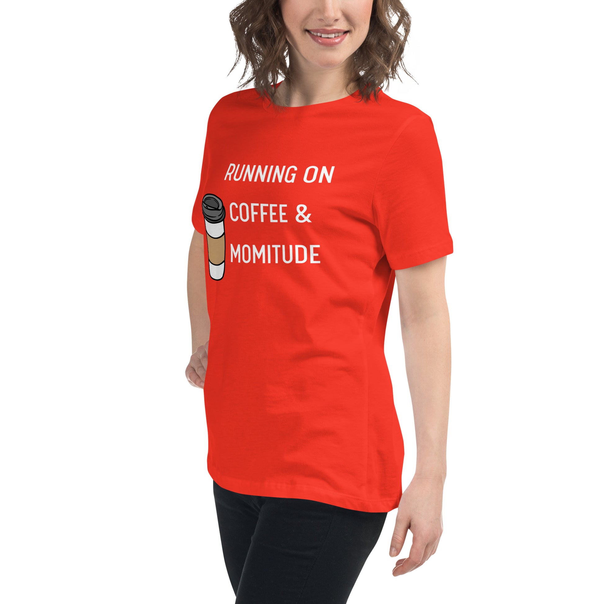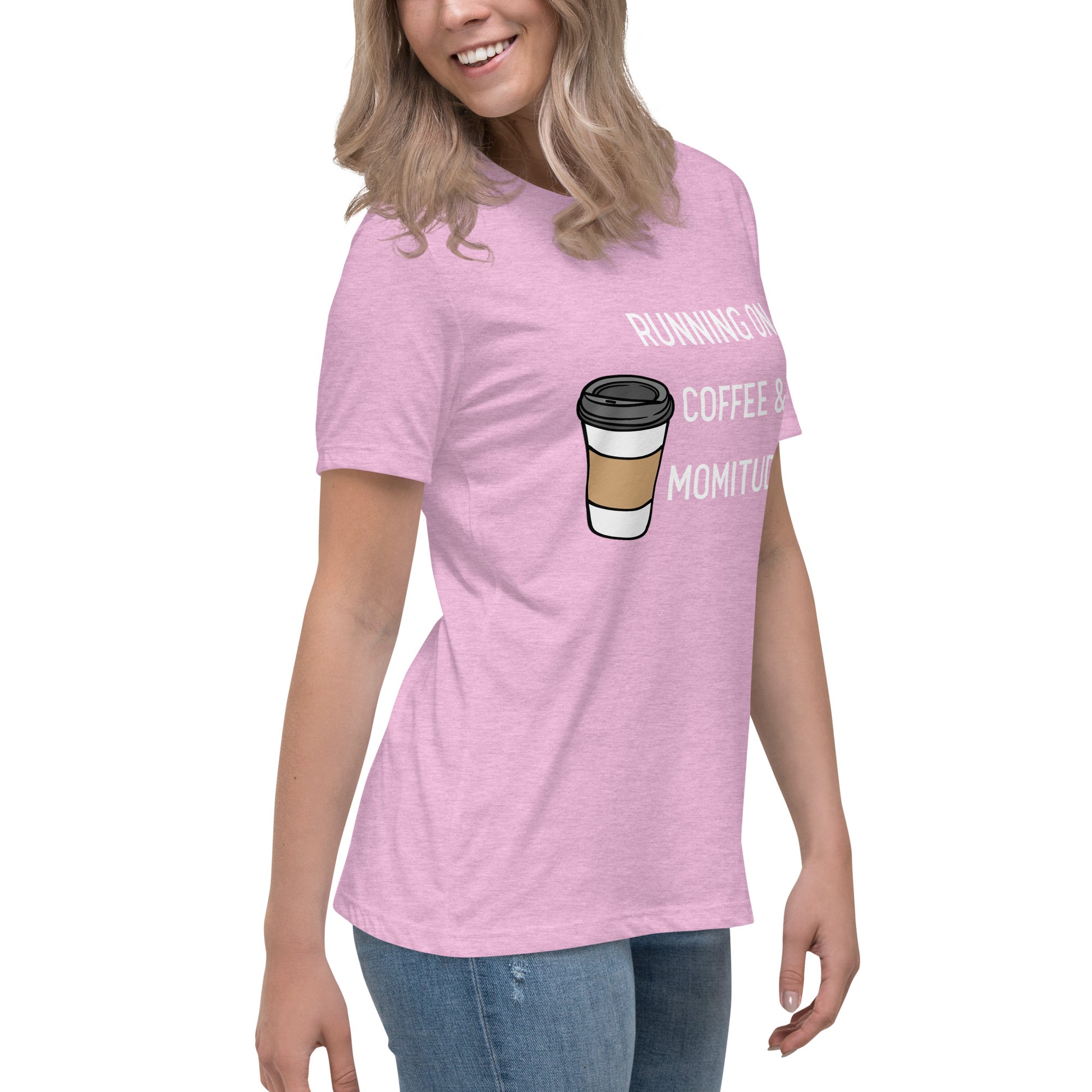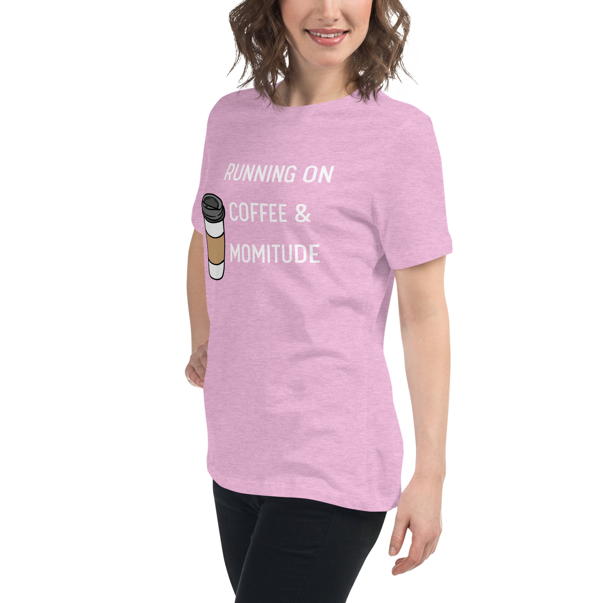 Embrace your inner supermom powers with this hilarious "Running on Coffee & Momitude" shirt! Whether you're wrangling kids, conquering errands, or just savoring a sacred sip of java, this comfy top gets it. Fuel up and get 'er done - because motherhood requires serious momitude. This just might be the softest and most comfortable women's t-shirt you'll ever own. Combine the relaxed fit and smooth fabric of this tee with jeans to create an effortless every-day outfit, or dress it up with a jacket and dress pants for a business casual look.