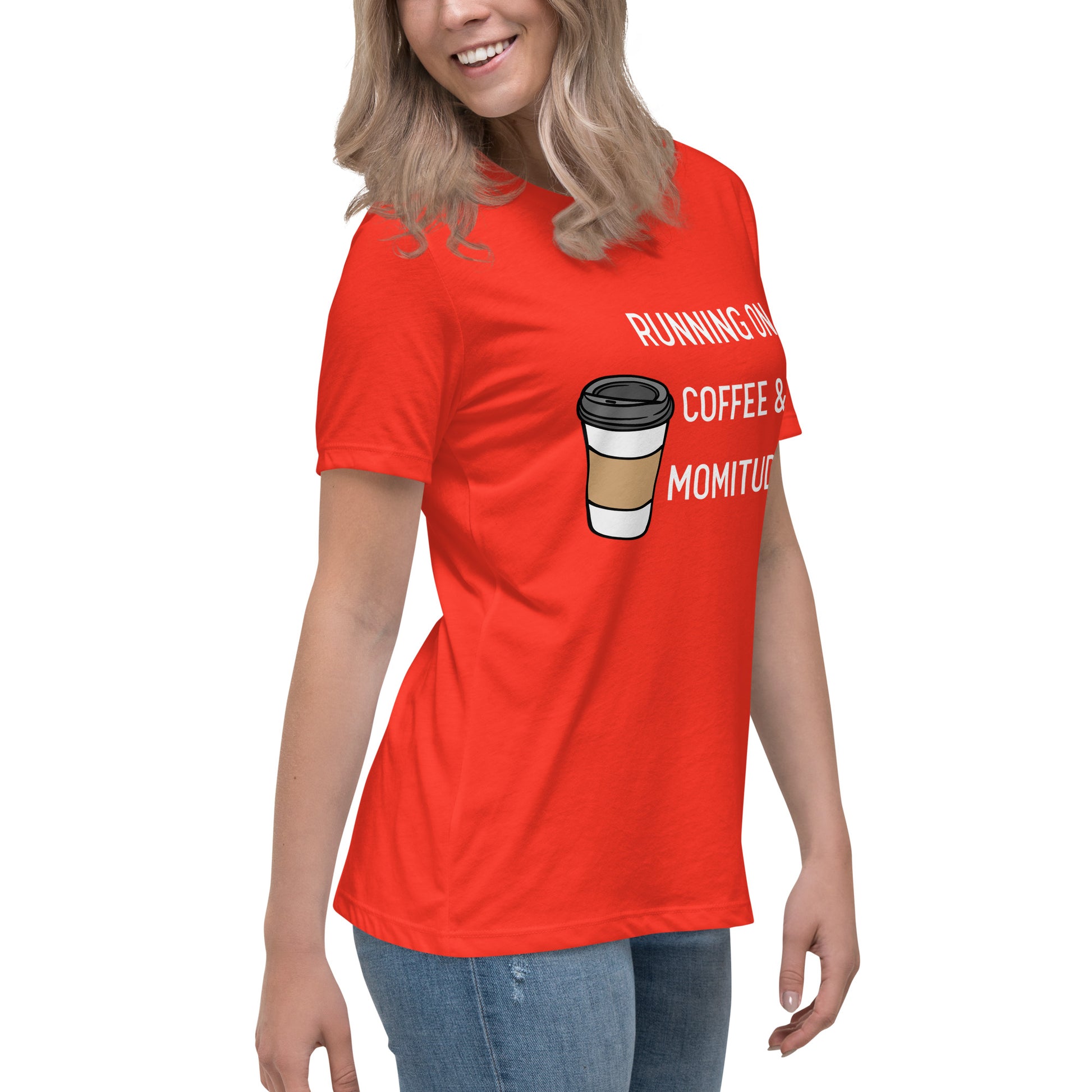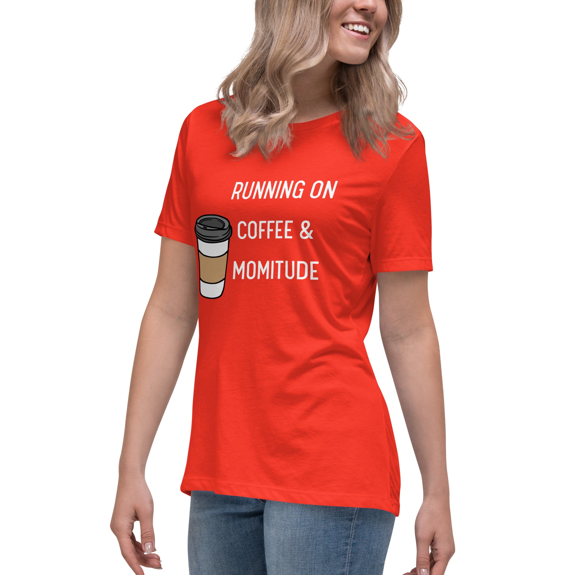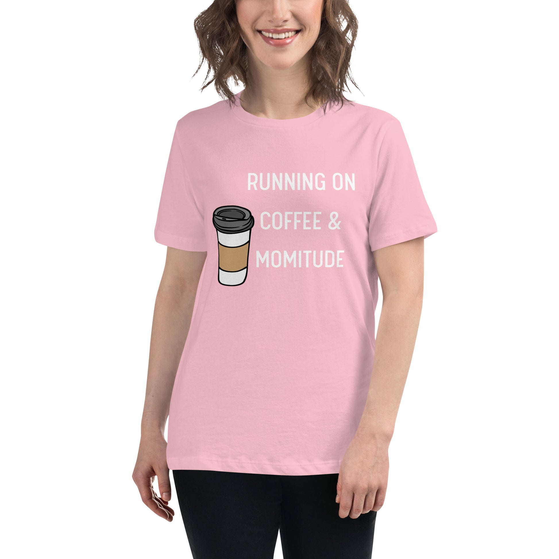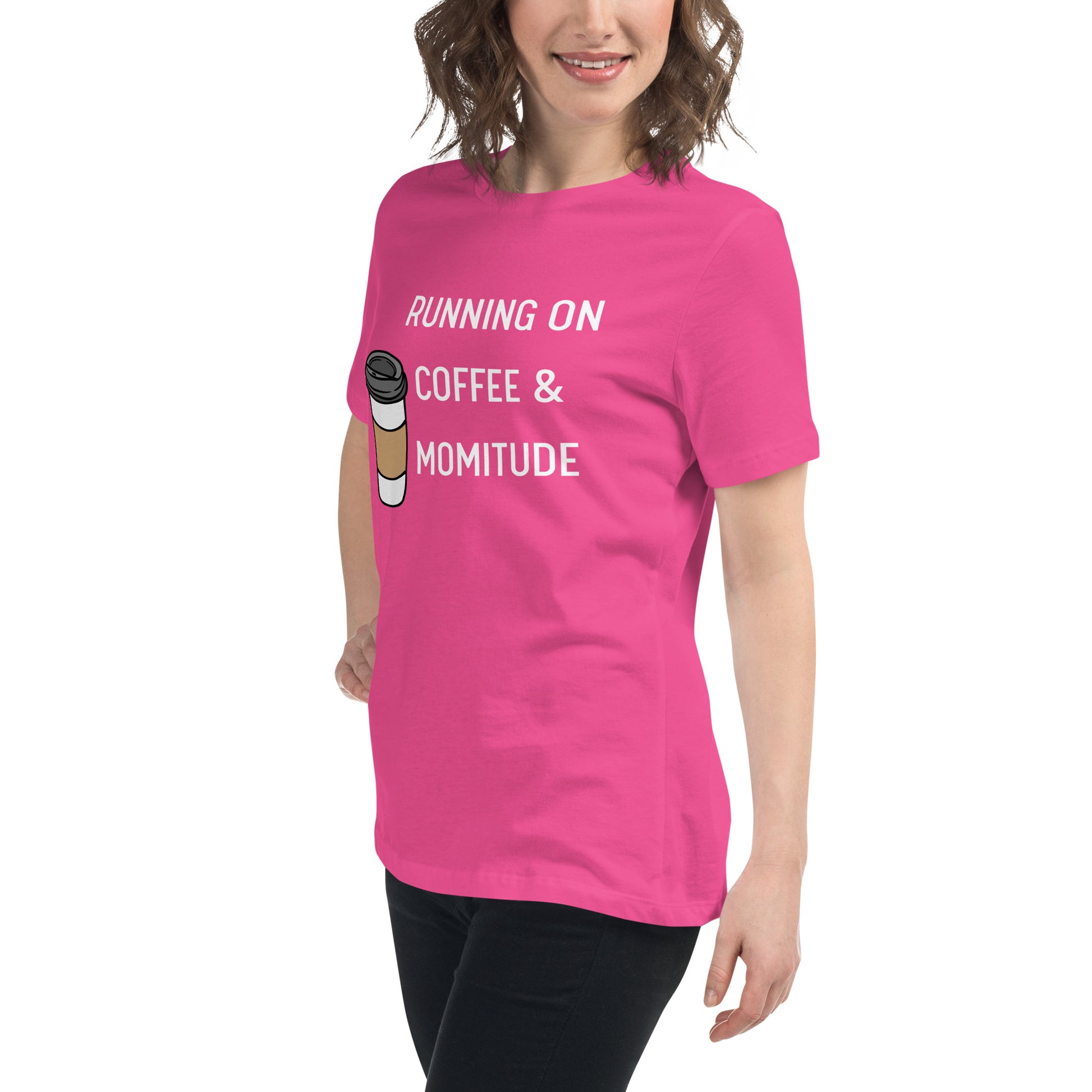 Embrace your inner supermom powers with this hilarious "Running on Coffee & Momitude" shirt! Whether you're wrangling kids, conquering errands, or just savoring a sacred sip of java, this comfy top gets it. Fuel up and get 'er done - because motherhood requires serious momitude. This just might be the softest and most comfortable women's t-shirt you'll ever own. Combine the relaxed fit and smooth fabric of this tee with jeans to create an effortless every-day outfit, or dress it up with a jacket and dress pants for a business casual look.