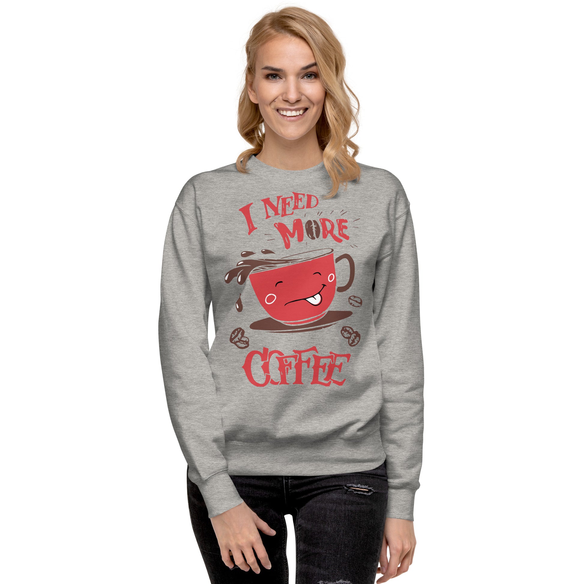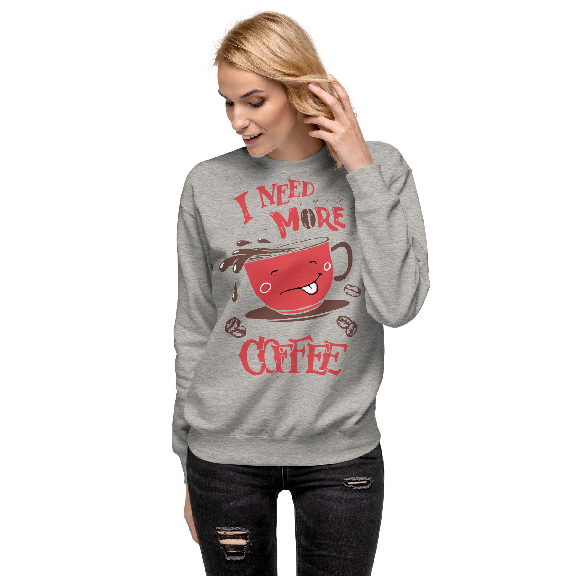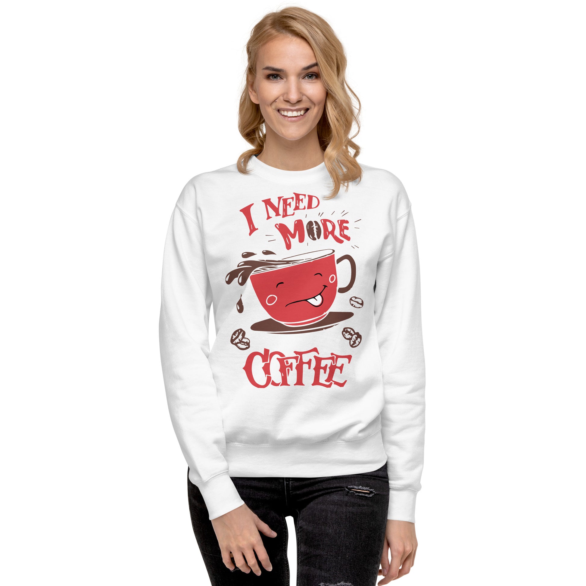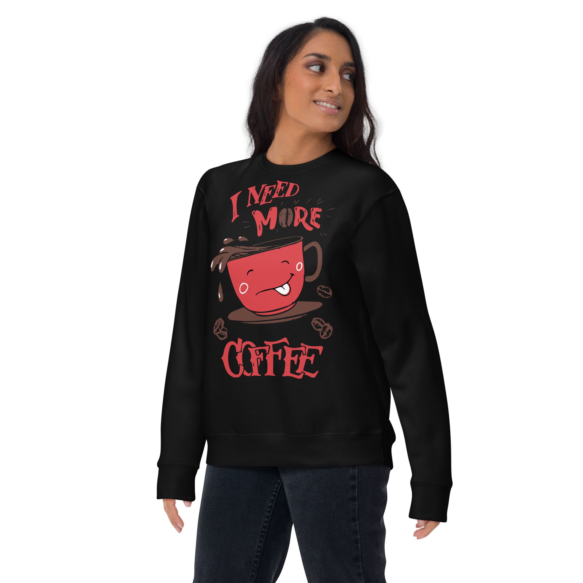For the bean buffs who feel that one cup is never enough, our "Caffeine Craving Sweatshirt" sweatshirt is a must-have. With a bold statement that shouts "I Need More Coffee," this top is perfect for those whose blood type is Coffee+. It's a cozy confidant that understands your relentless pursuit for that next caffeine fix. So, if your coffee mug is your loyal sidekick, and 'refill' is your favorite word, this sweatshirt will fit you like a glove — or like a warm hug from your favorite barista. Rock a classic sweatshirt silhouette with ribbed crew neck, long sleeve cuffs, and a flat hem. Layer it up or wear it on its own for a contemporary streetwear look. With the soft fleece inside and comfortable fit, it’s sure to become your favorite everyday sweater right away!