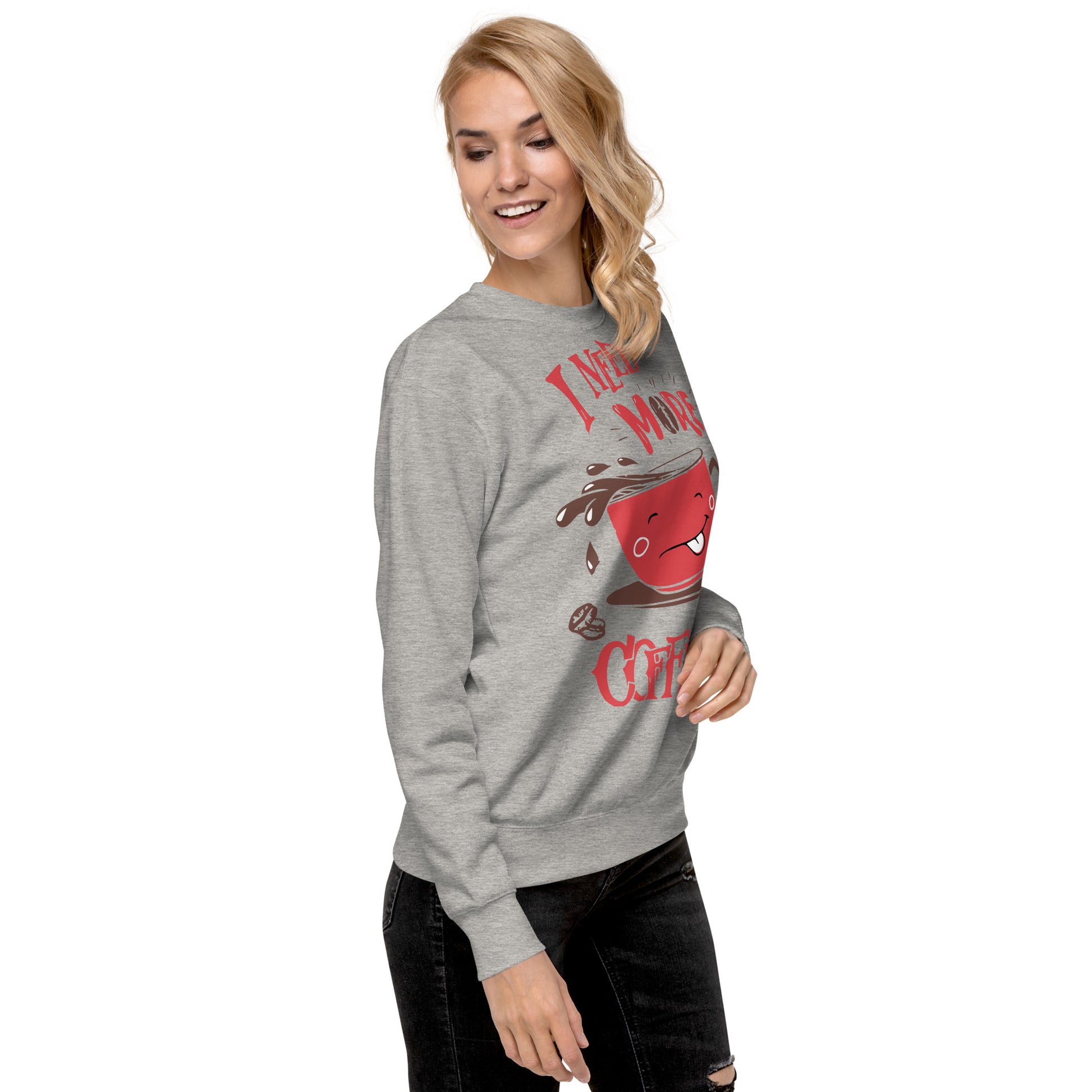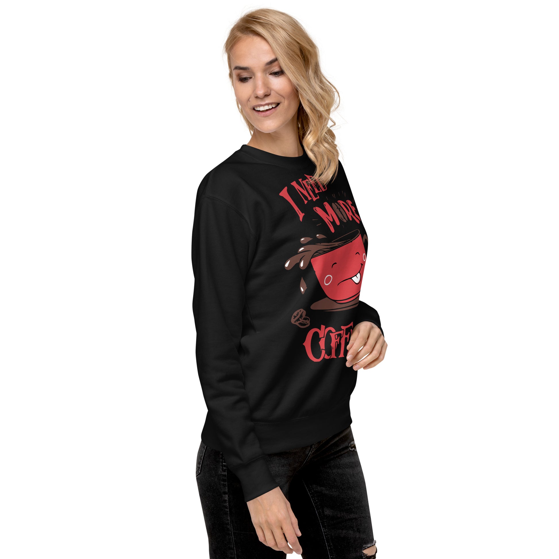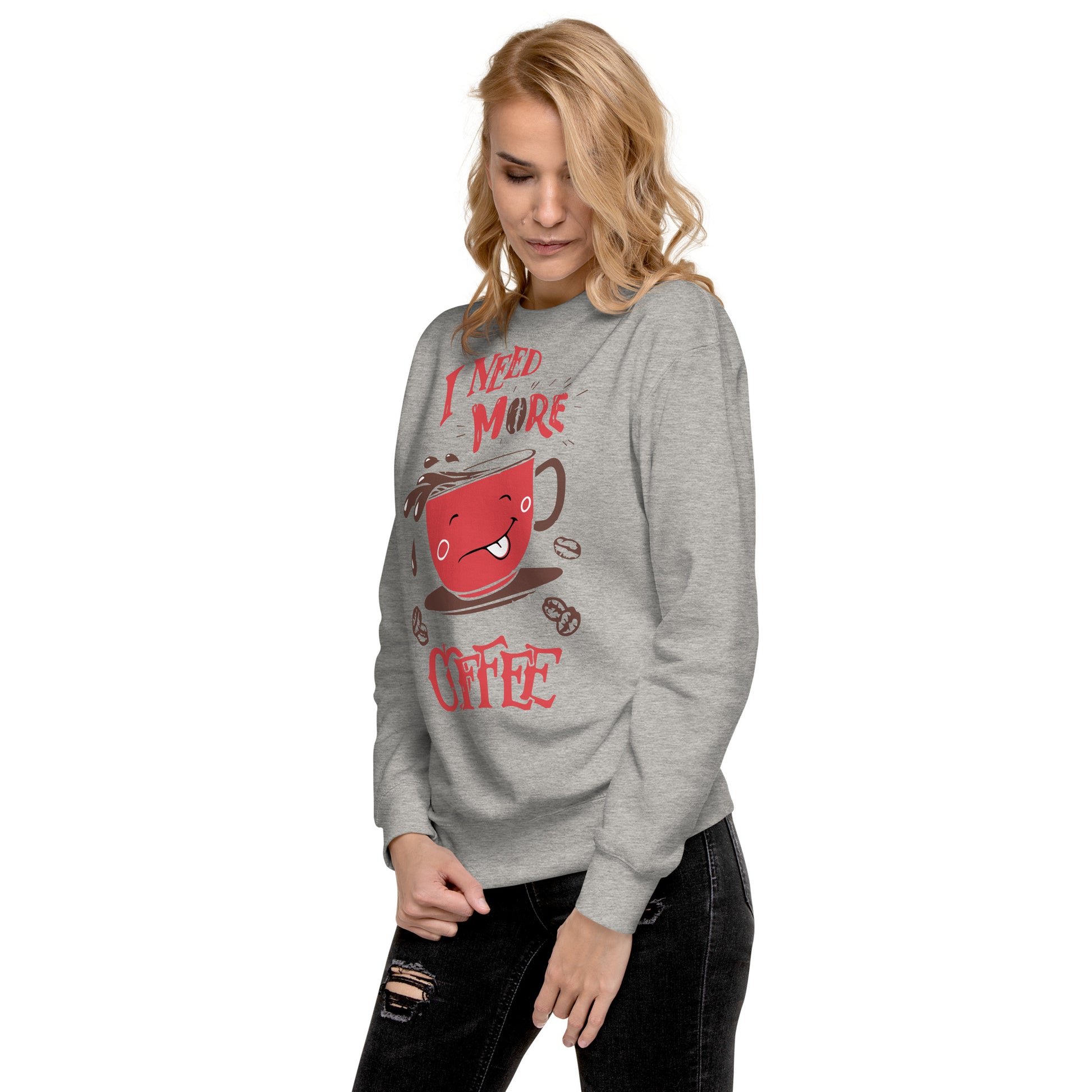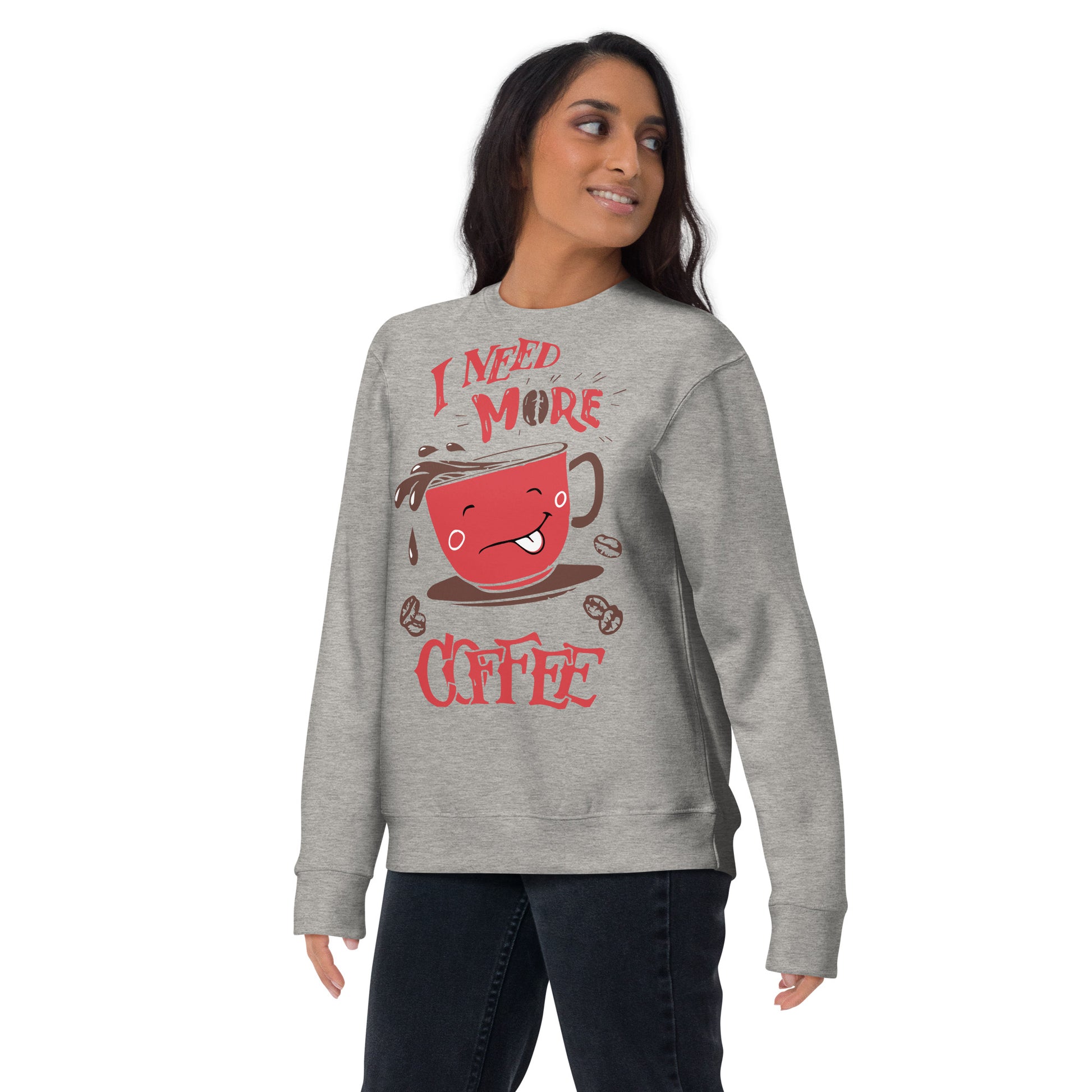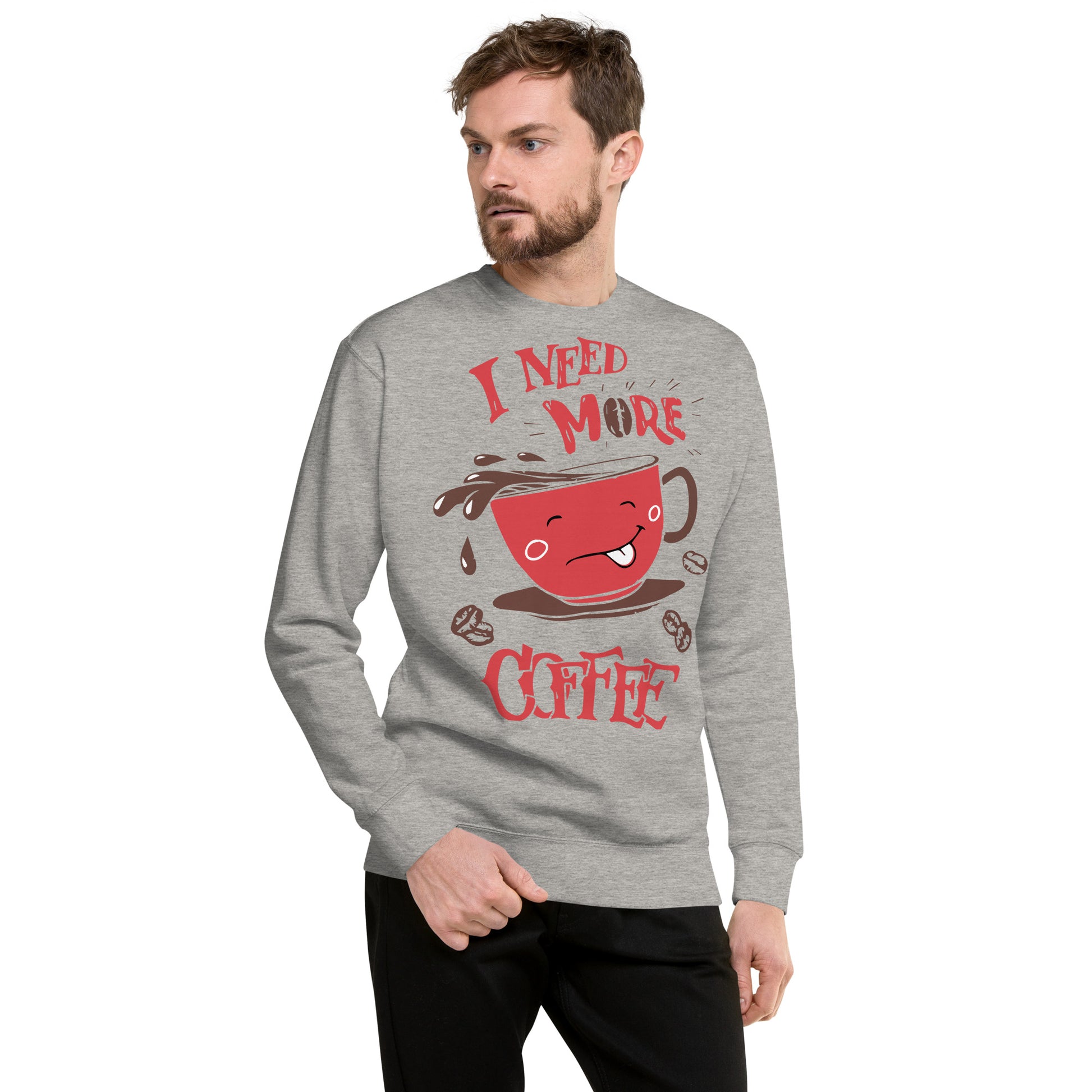 For the bean buffs who feel that one cup is never enough, our "Caffeine Craving Sweatshirt" sweatshirt is a must-have. With a bold statement that shouts "I Need More Coffee," this top is perfect for those whose blood type is Coffee+. It's a cozy confidant that understands your relentless pursuit for that next caffeine fix. So, if your coffee mug is your loyal sidekick, and 'refill' is your favorite word, this sweatshirt will fit you like a glove — or like a warm hug from your favorite barista. Rock a classic sweatshirt silhouette with ribbed crew neck, long sleeve cuffs, and a flat hem. Layer it up or wear it on its own for a contemporary streetwear look. With the soft fleece inside and comfortable fit, it’s sure to become your favorite everyday sweater right away!
