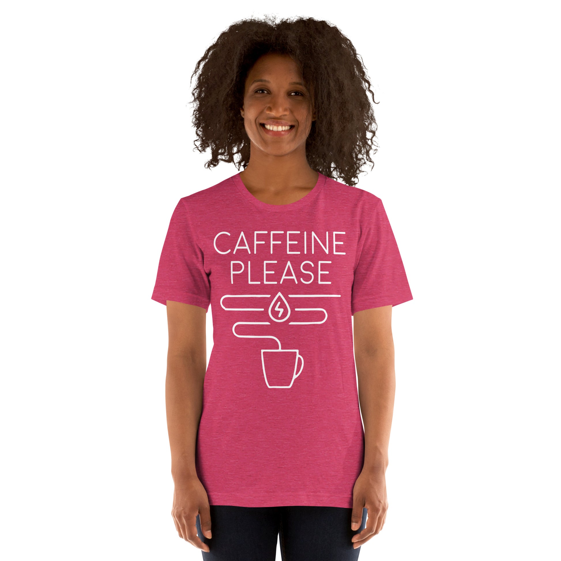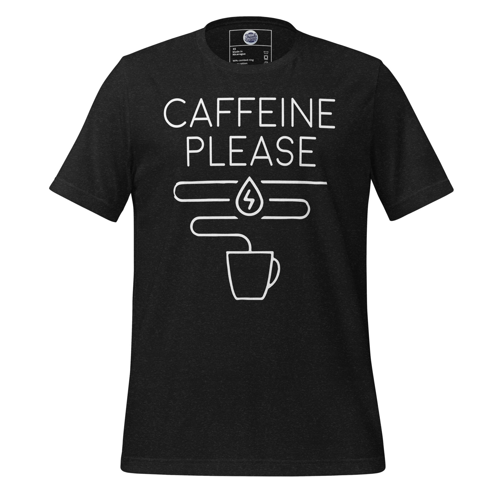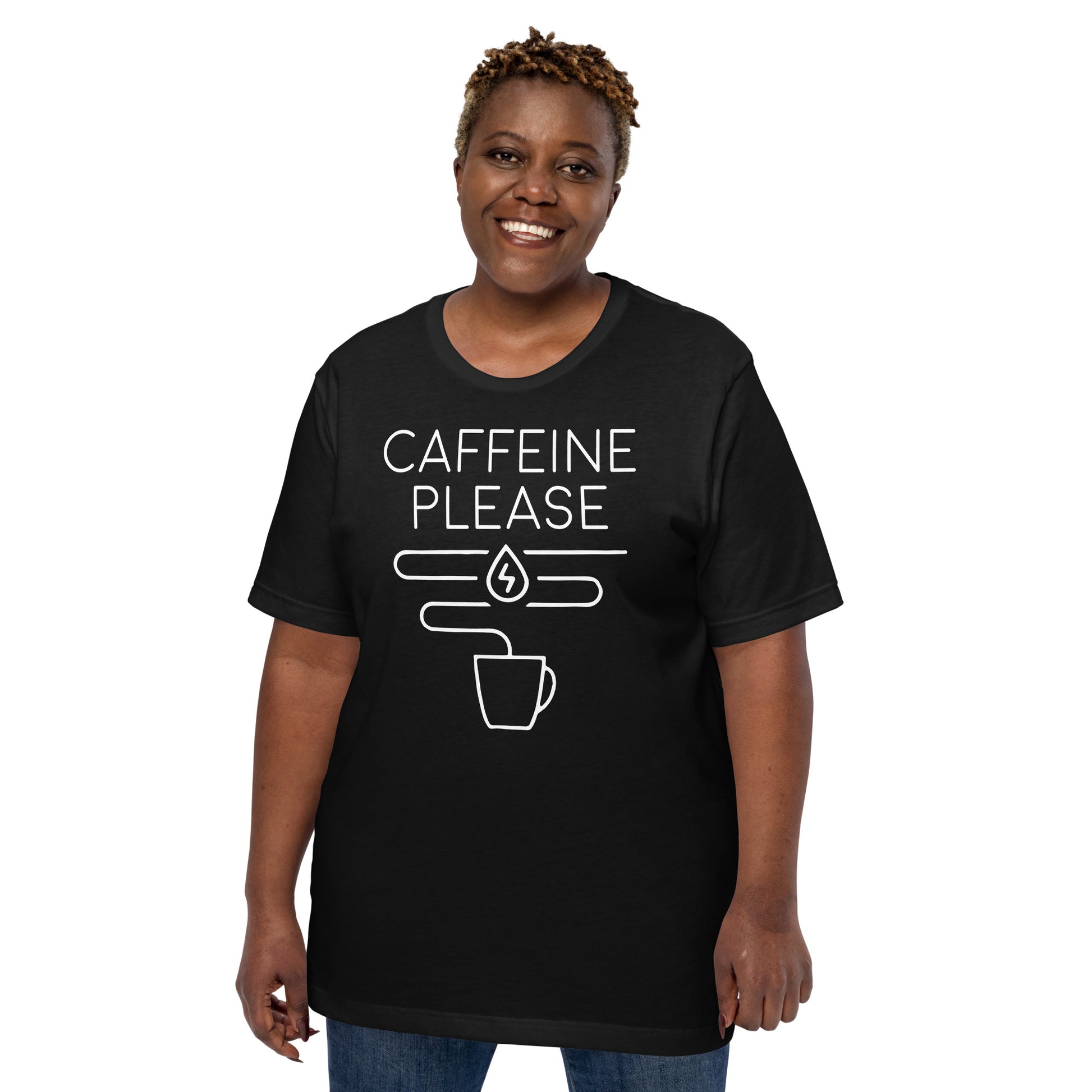 The "Caffeine Request Tee" is your straightforward appeal to the universe for that essential molecule of motivation. Tailored for the minimalist with a message that resonates with every coffee lover's core desire, this tee is the epitome of your daily decree: more caffeine, please! It’s more than just cotton; it’s a conversation starter, a mood enhancer, and the perfect complement to your caffeine ritual. This t-shirt is everything you've dreamed of and more. It feels soft and lightweight, with the right amount of stretch. It's comfortable and flattering for all.