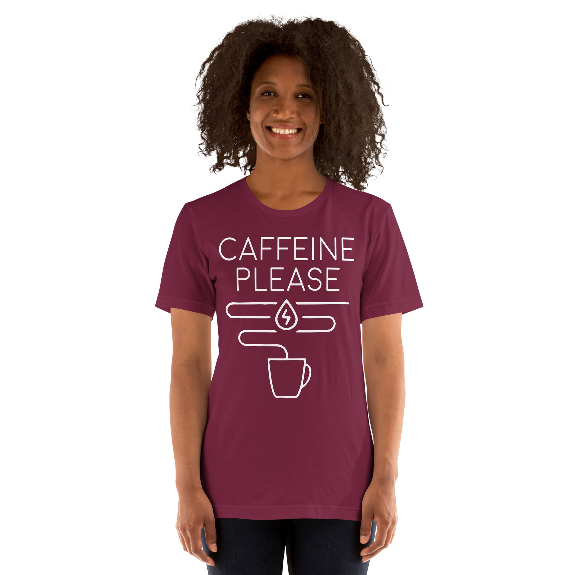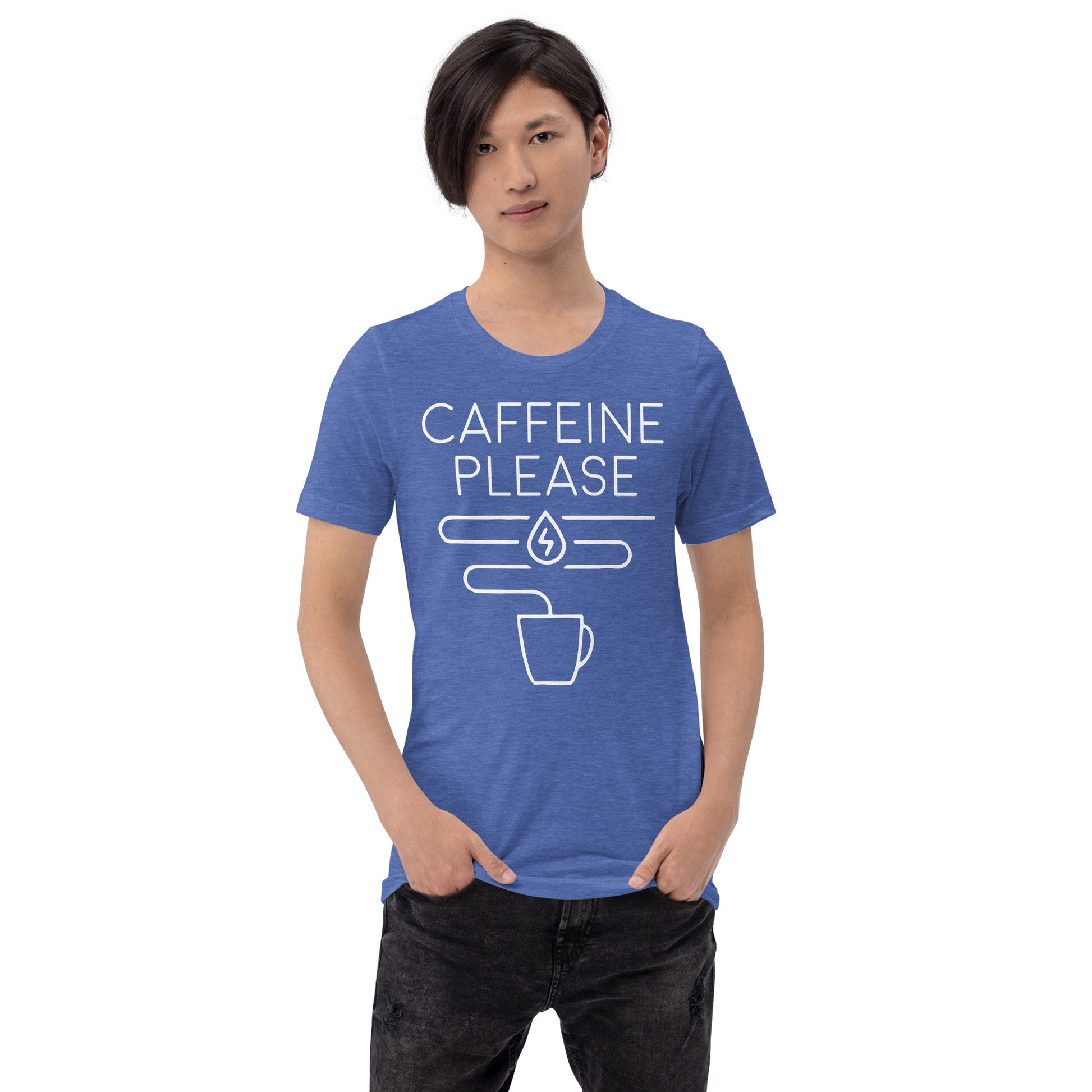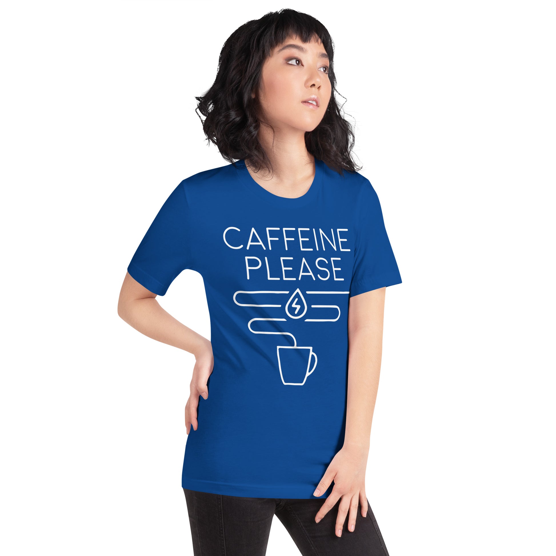 The "Caffeine Request Tee" is your straightforward appeal to the universe for that essential molecule of motivation. Tailored for the minimalist with a message that resonates with every coffee lover's core desire, this tee is the epitome of your daily decree: more caffeine, please! It’s more than just cotton; it’s a conversation starter, a mood enhancer, and the perfect complement to your caffeine ritual. This t-shirt is everything you've dreamed of and more. It feels soft and lightweight, with the right amount of stretch. It's comfortable and flattering for all.