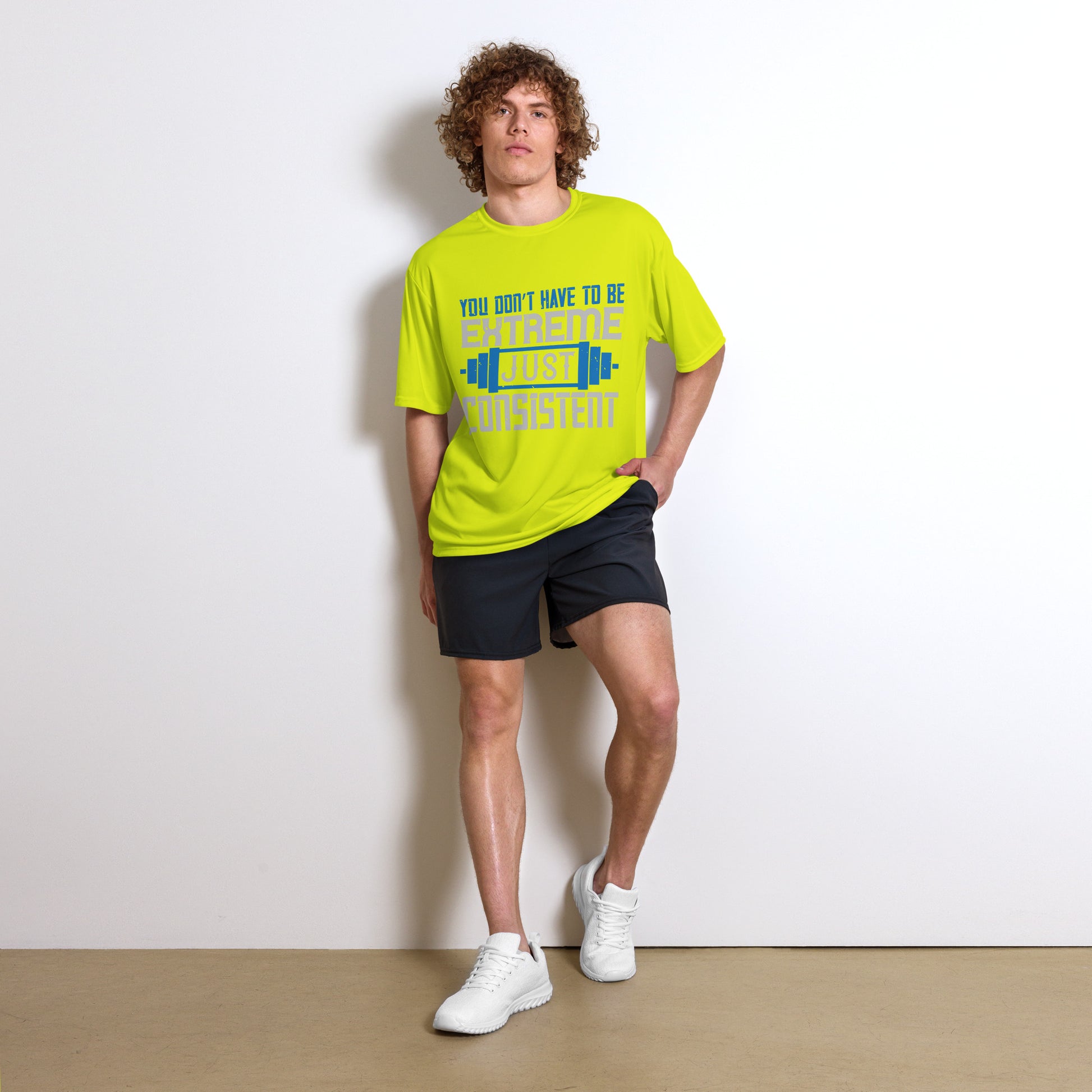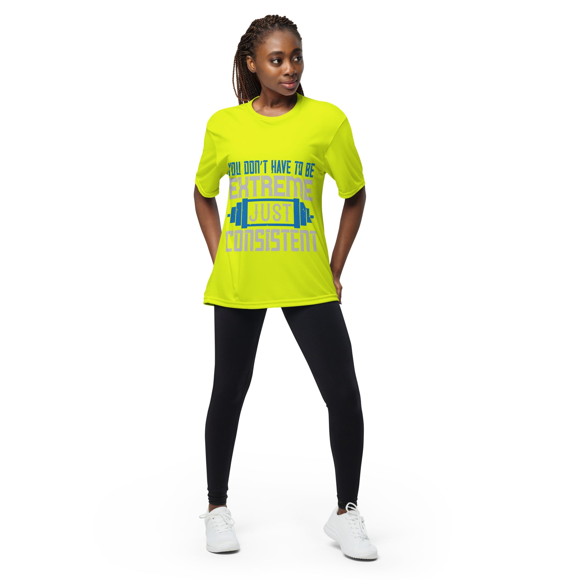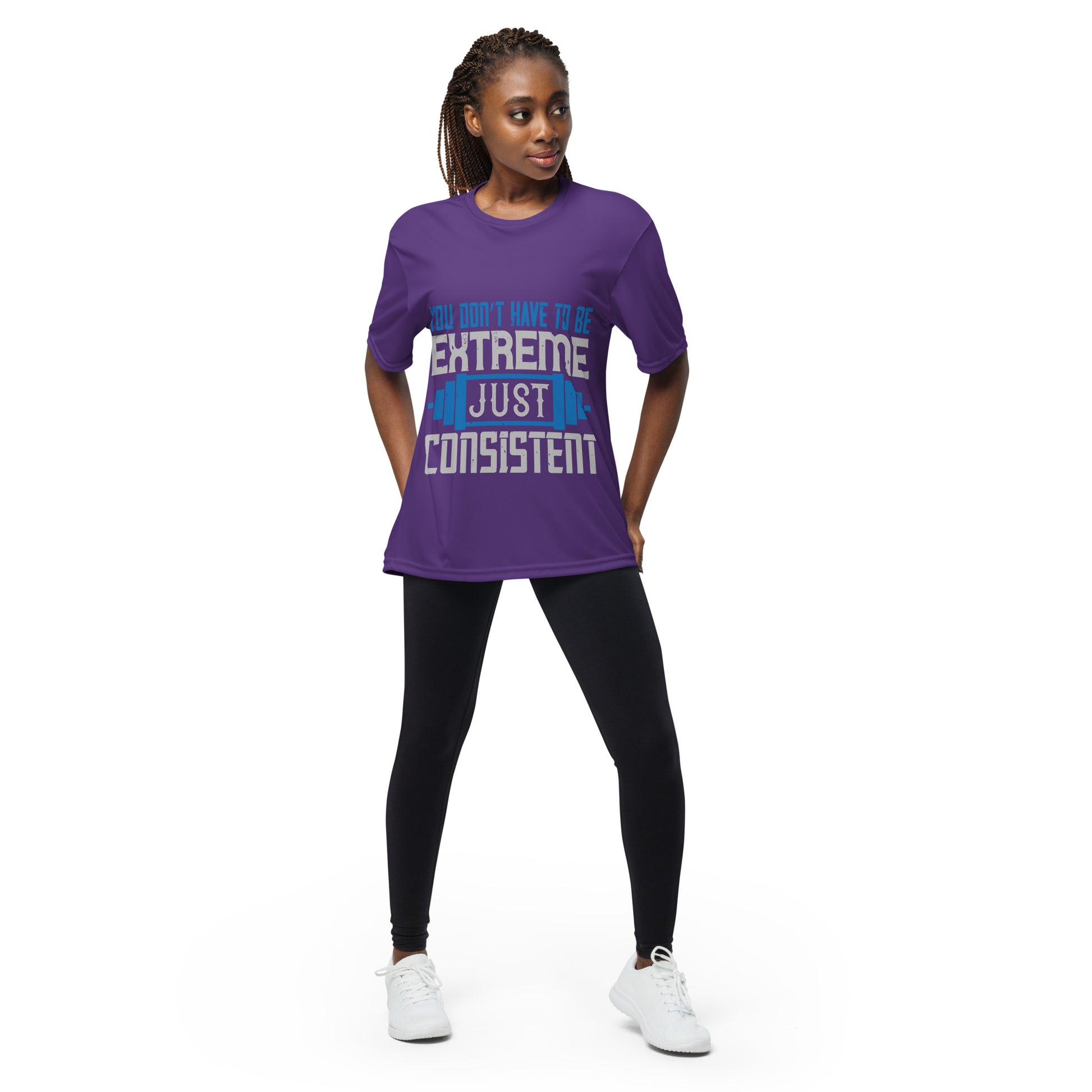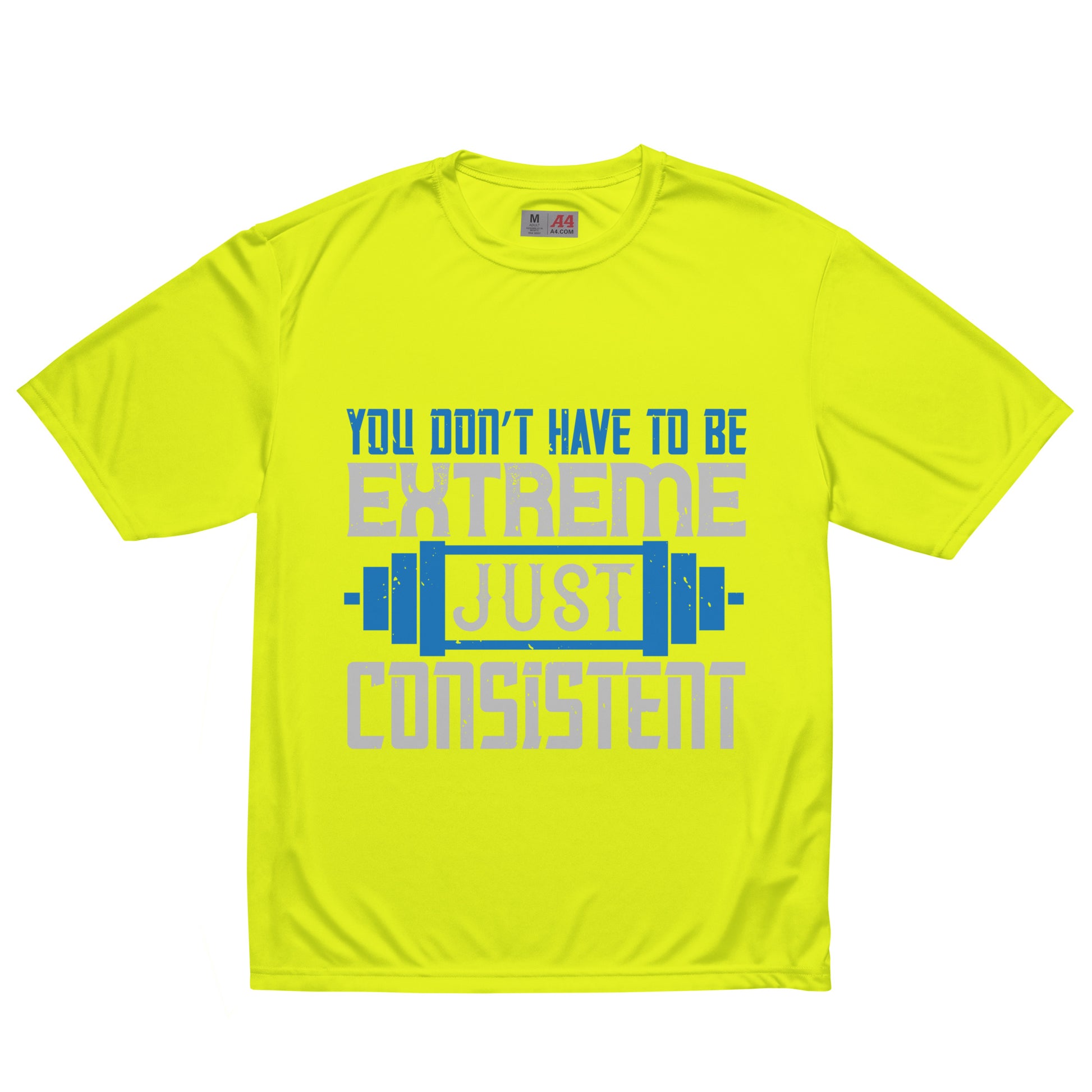 Wrap yourself in the wisdom of wellness with our "Consistency Counts" Perfromance T-Shirt, a tribute to the power of steady action over flashy extremes. This hoodie whispers a mantra for the ages: "You don't have to be extreme, just consistent." It's not just clothing; it's your daily reminder that the race is won not by the swift, but by the steady. Displayed in cool, calm blues and sharp whites against a deep black canvas, this hoodie is for those who find their strength in regularity, their power in persistence. Crafted for comfort and long-lasting wear, it's the ideal companion for your daily routine, be it grinding at the gym or grinding at life. Slip this on and let it be known—you're in it for the long haul, where every small step is a leap in building your legacy. Stay cool, dry, and confident even during the most intense activities in this unisex performance crew neck t-shirt. Made from premium, moisture-wicking fabric with odor resistance, stain release, and UV protection, this shirt’s perfect for going to the gym, playing sports, hiking, or any other activity.