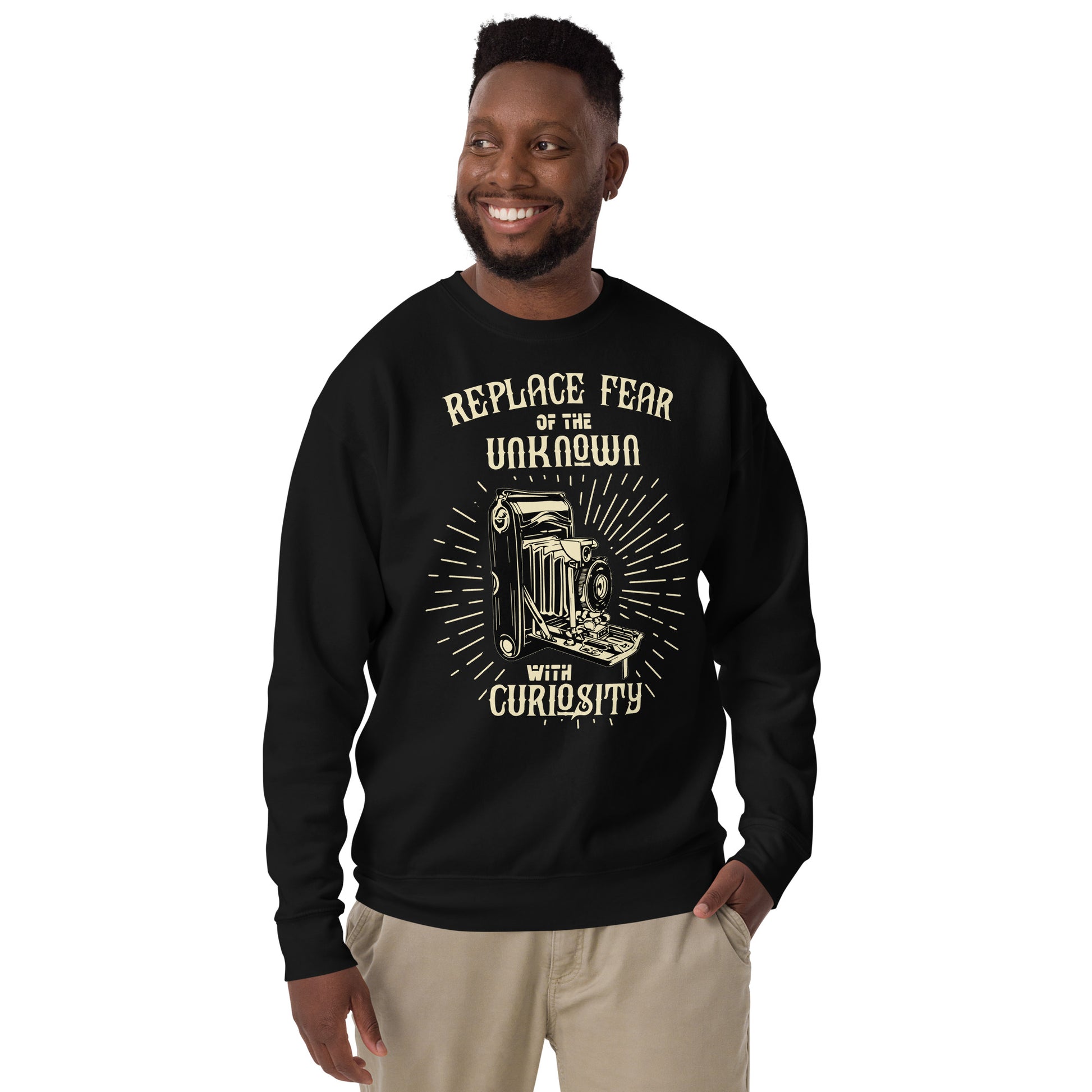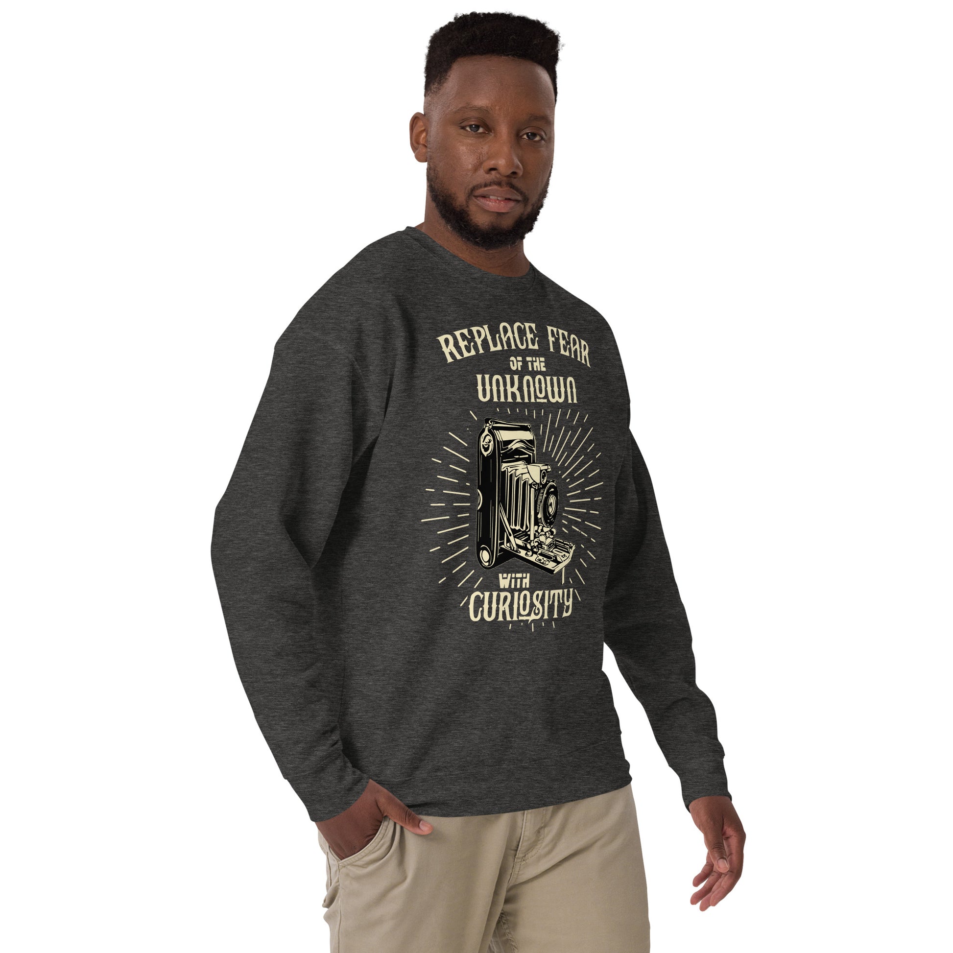 Don the "Curiosity Crew" Sweatshirt and let your quest for knowledge be as boundless as your comfort. This sweatshirt is the companion for those who turn every stone, every idea, every star in the sky, driven not by fear but by fascination. It’s the perfect gear for the thinkers, the wonderers, the eternally inquisitive who believe that every day is a new page in the grand book of the universe. Rock a classic sweatshirt silhouette with ribbed crew neck, long sleeve cuffs, and a flat hem. Layer it up or wear it on its own for a contemporary streetwear look. With the soft fleece inside and comfortable fit, it’s sure to become your favorite everyday sweater right away!