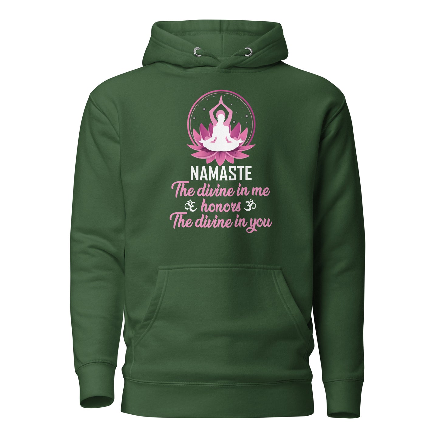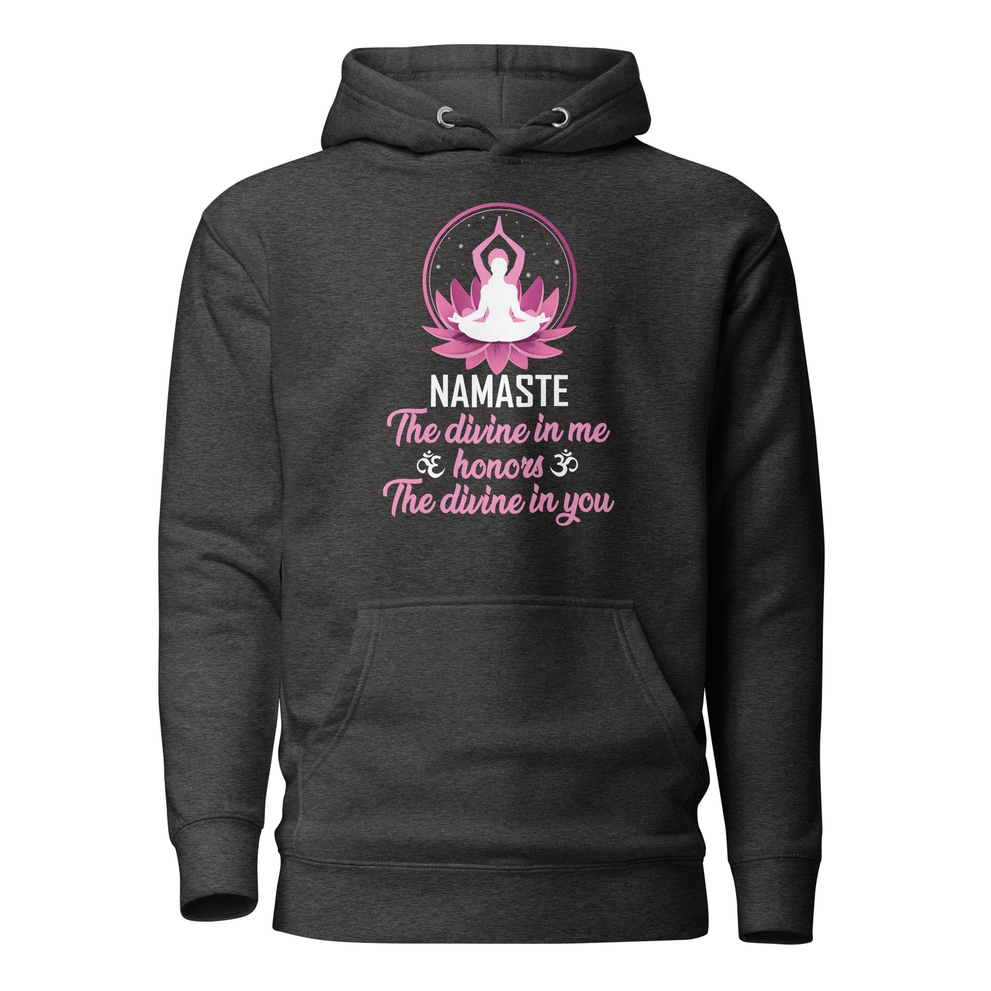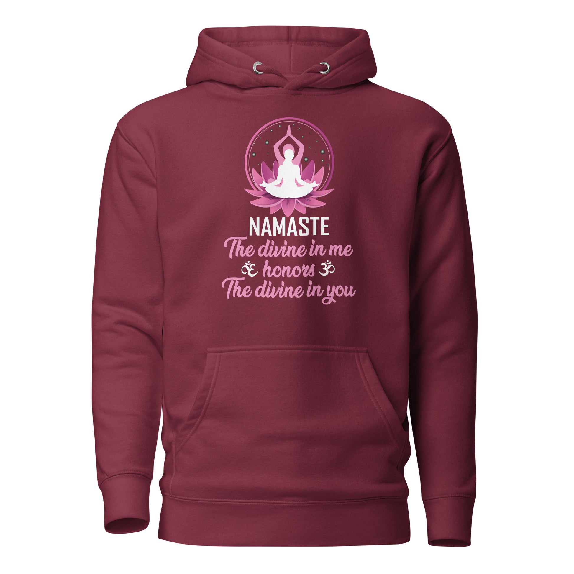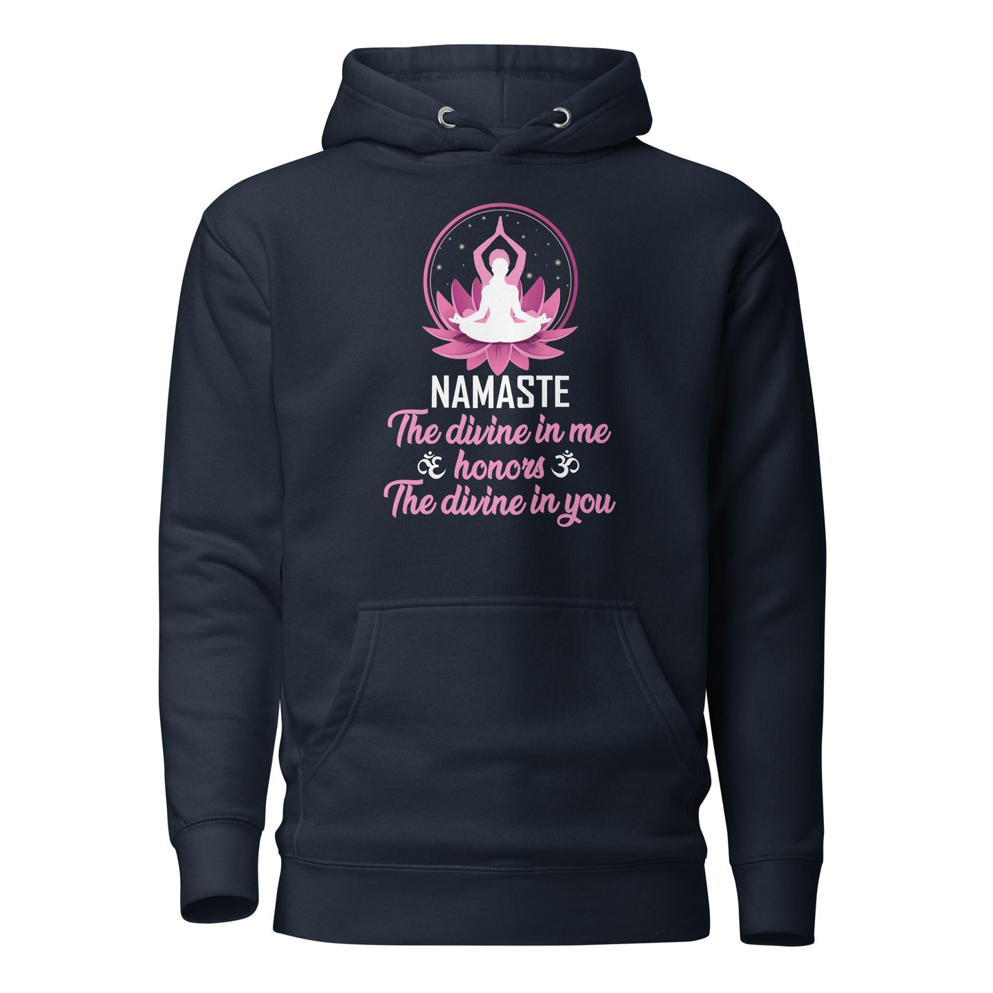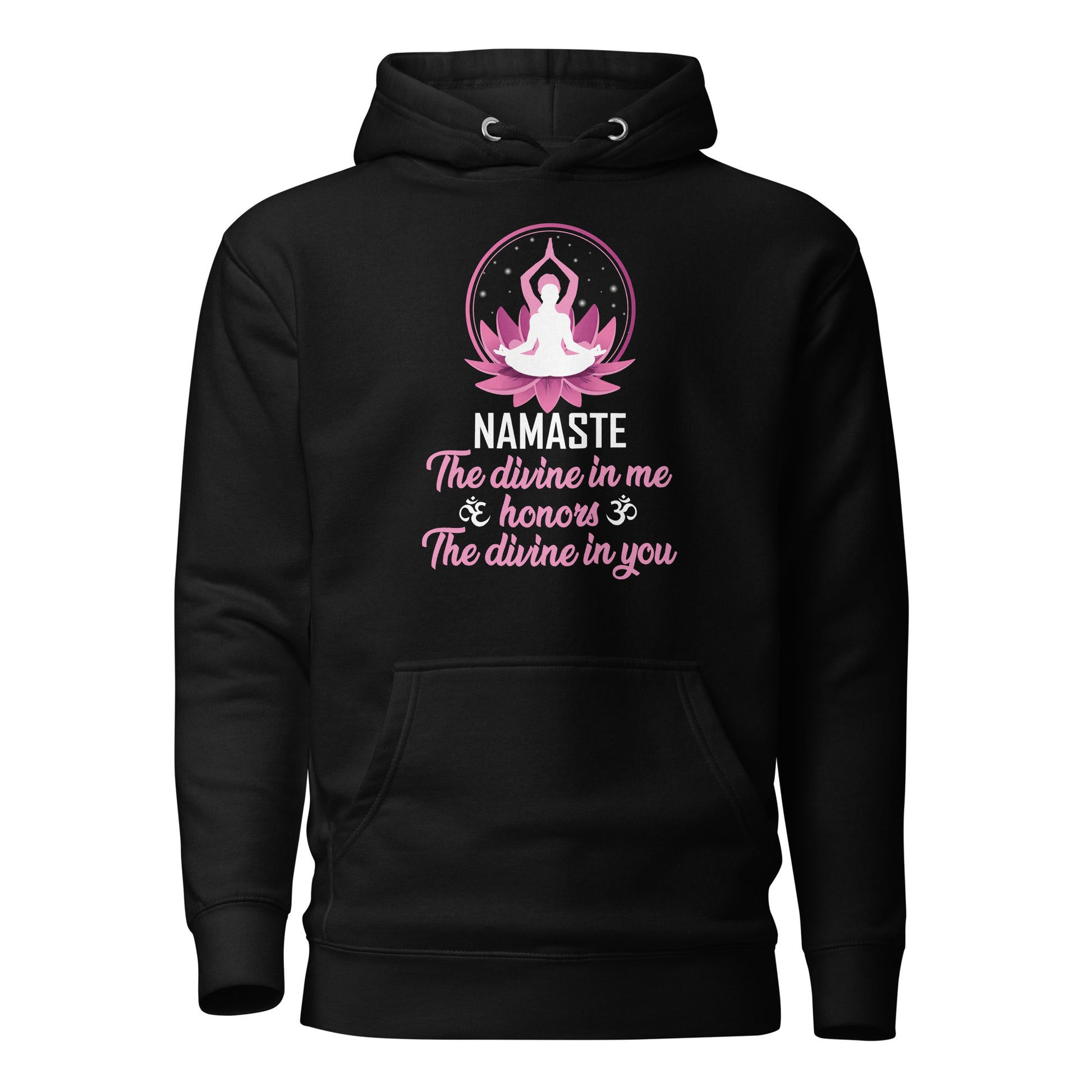 Wrap yourself in the Divine Harmony Hoodie, where every thread is infused with respect and mindfulness. This hoodie isn't just cozy; it carries a message deep as the breath you take before a meditative plunge. 'Namaste - The divine in me honors the divine in you' is not merely a statement; it's a mantra that vibrates with your every move. Whether you're greeting the sunrise with a sun salutation or simply sharing a smile across the street, let this hoodie be a reminder of the connection that weaves us all together. It's more than apparel; it's a way to wear your heart and soul on your sleeve. Who knew that the softest hoodie you'll ever own comes with such a cool design. You won't regret buying this classic streetwear piece of apparel with a convenient pouch pocket and warm hood for chilly evenings.