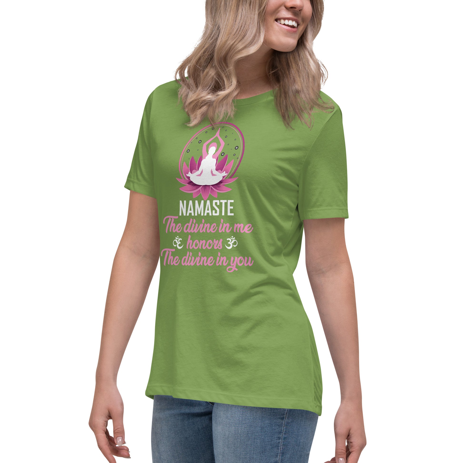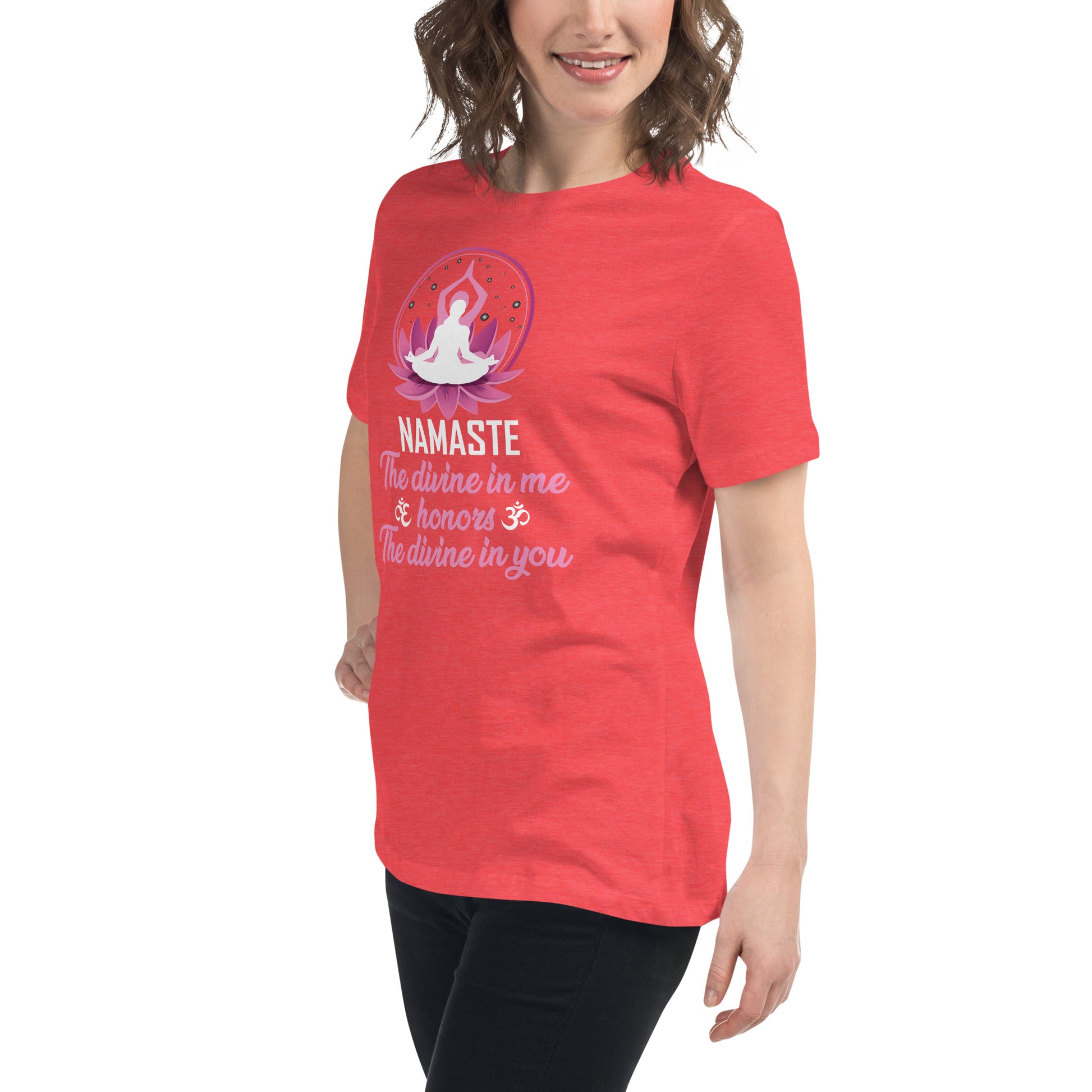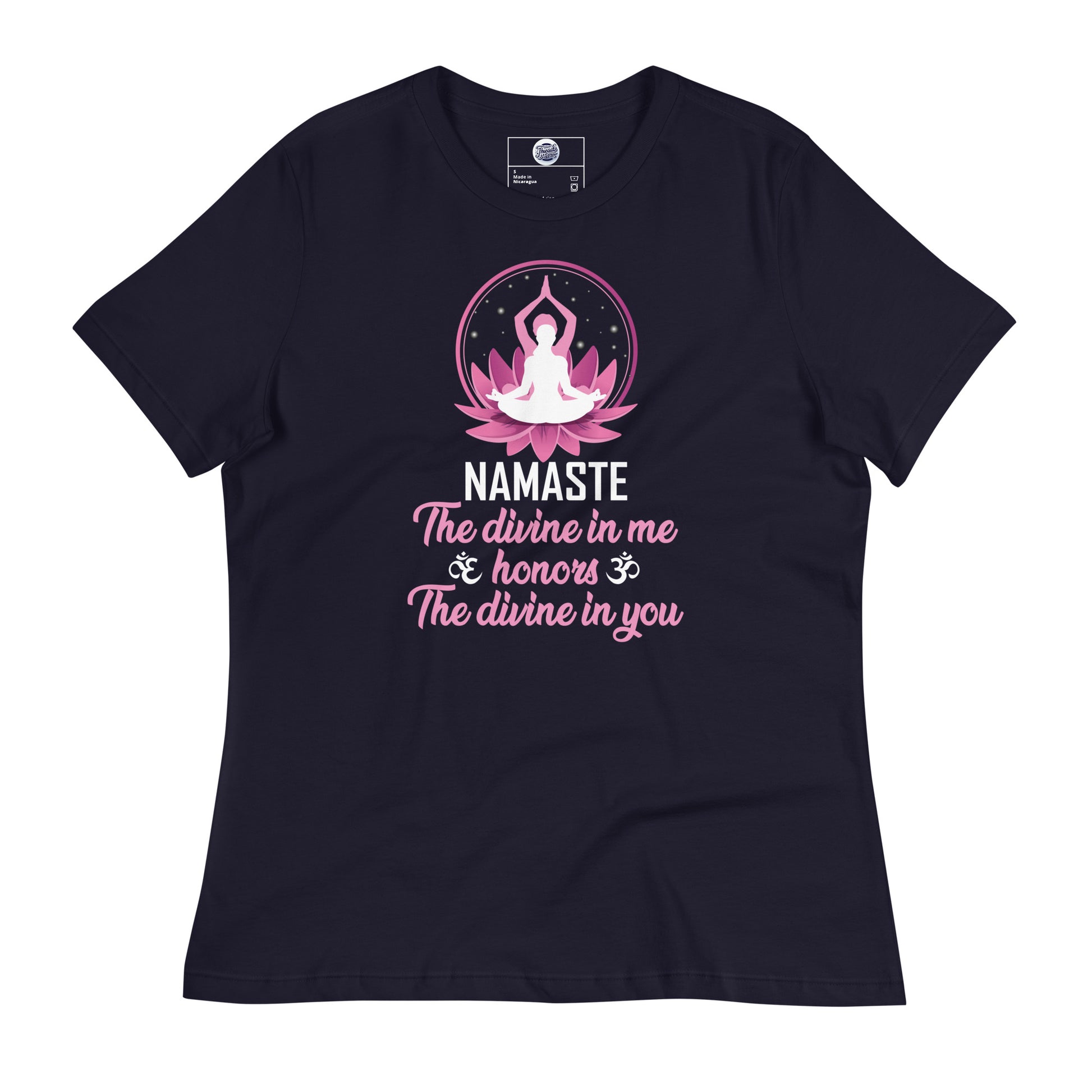 Dress in the essence of serenity with the Divine Harmony T-Shirt. This isn't just any tee; it's a symbol of unity and inner peace, eloquently sharing a universal truth: 'Namaste - The divine in me honors the divine in you.' It's a wearable reminder to live a life of recognition and respect for the spirit that connects us all. Light and comfortable, it's perfect for yoga sessions under the open sky or reflective moments at home. Let this T-shirt be a beacon of your commitment to harmony and mindful living. This just might be the softest and most comfortable women's t-shirt you'll ever own. Combine the relaxed fit and smooth fabric of this tee with jeans to create an effortless every-day outfit, or dress it up with a jacket and dress pants for a business casual look.
