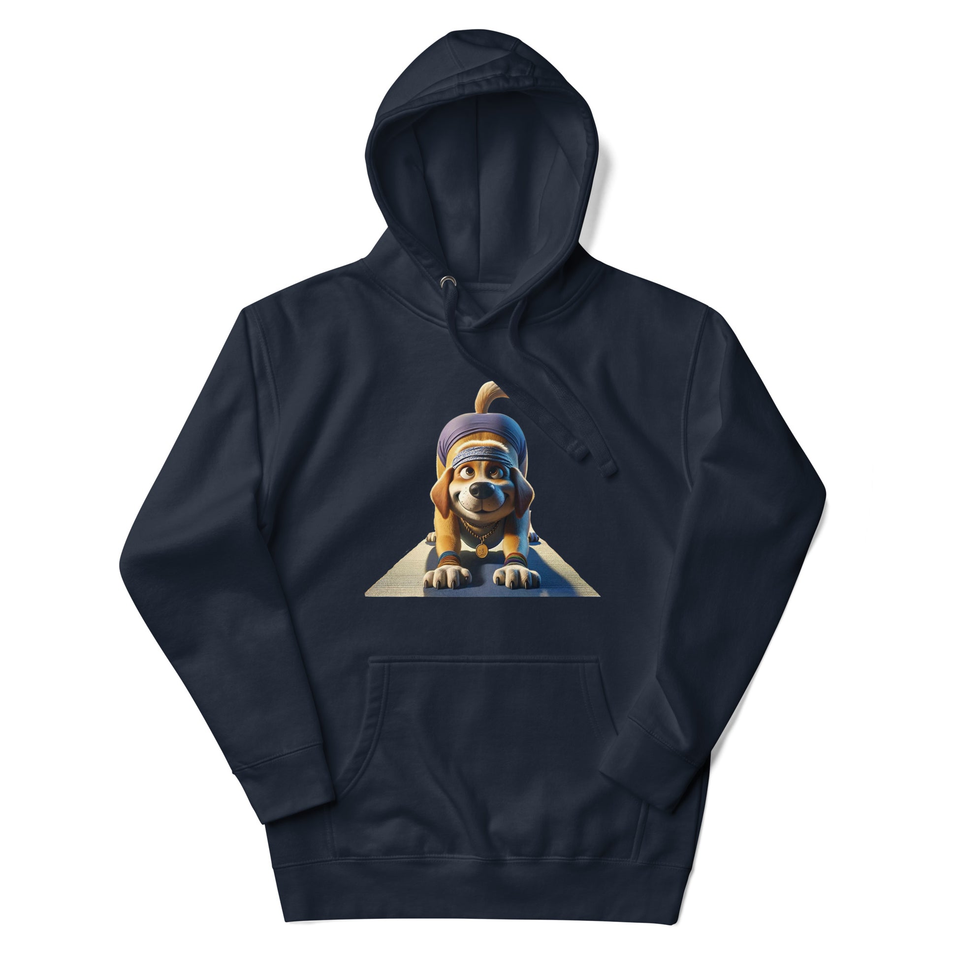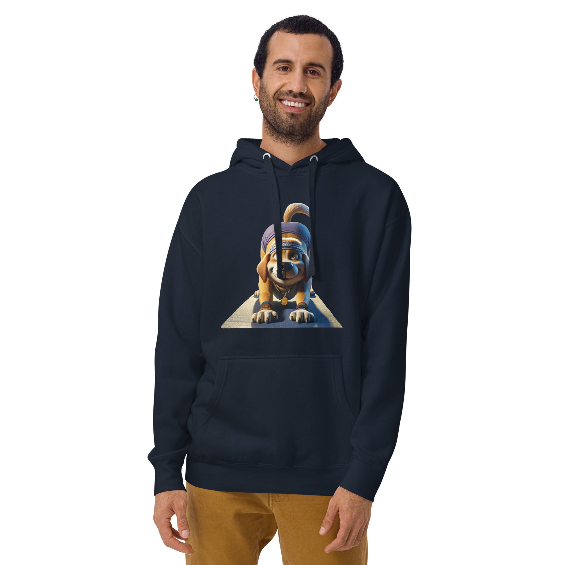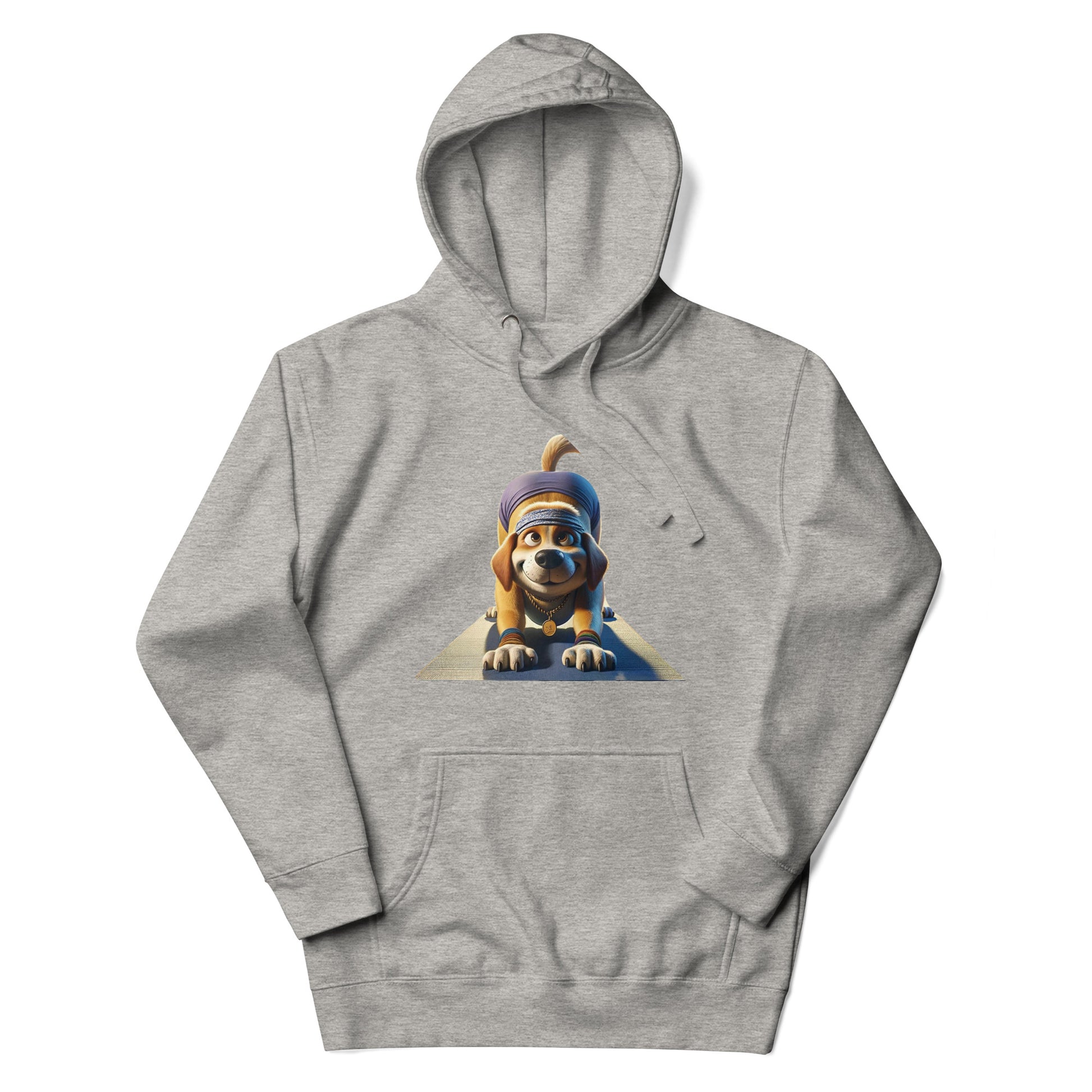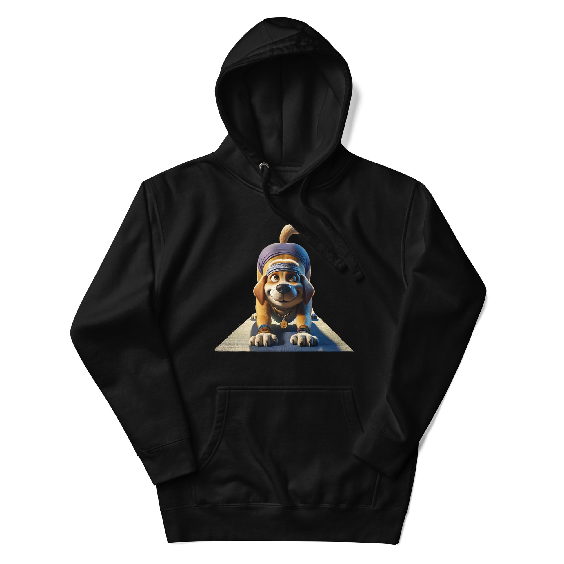 Embrace the chill and find your center with the 'Downward Dawg Hoodie'. Snuggle into serenity with our zen master pup leading the way to cozy enlightenment. Perfect for a cool-down session after hot yoga or a tranquil trail walk with your four-legged friend. It's your cuddly companion in the quest for calm and comfort. Who knew that the softest hoodie you'll ever own comes with such a cool design. You won't regret buying this classic streetwear piece of apparel with a convenient pouch pocket and warm hood for chilly evenings.