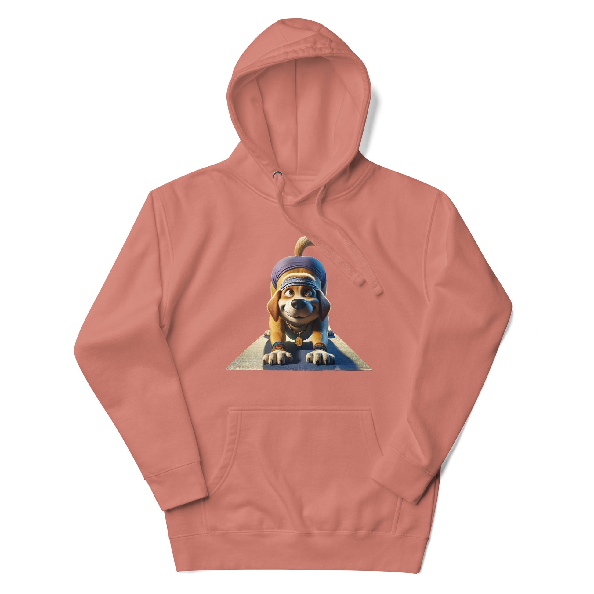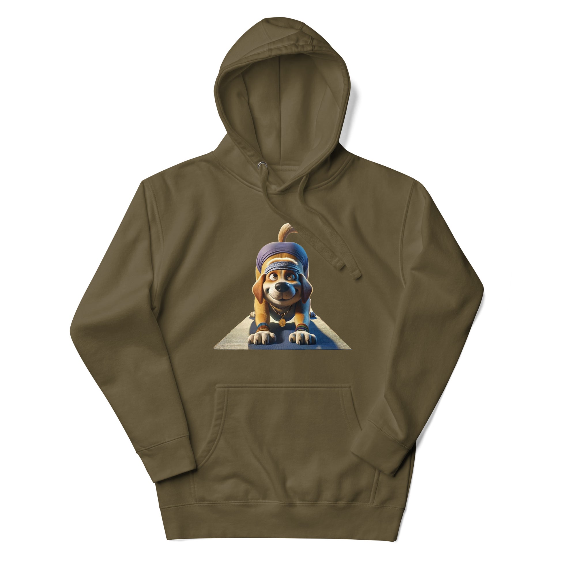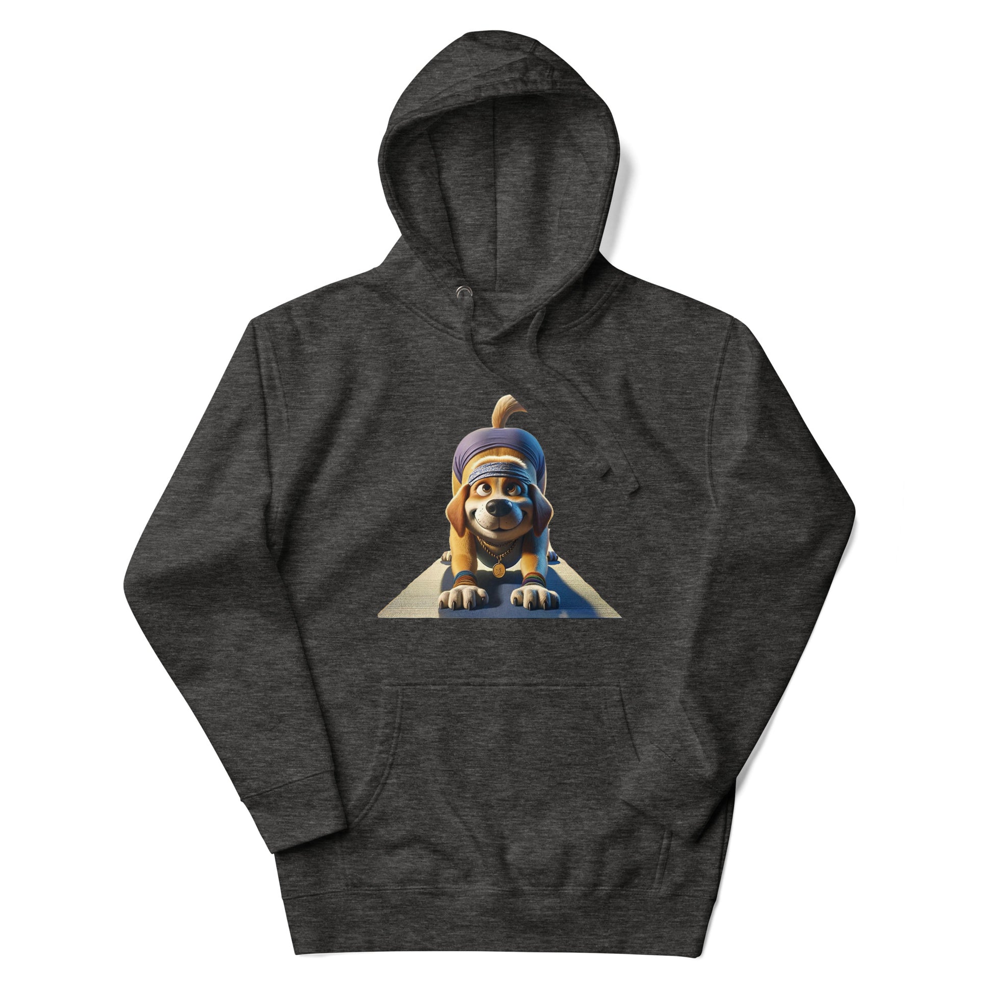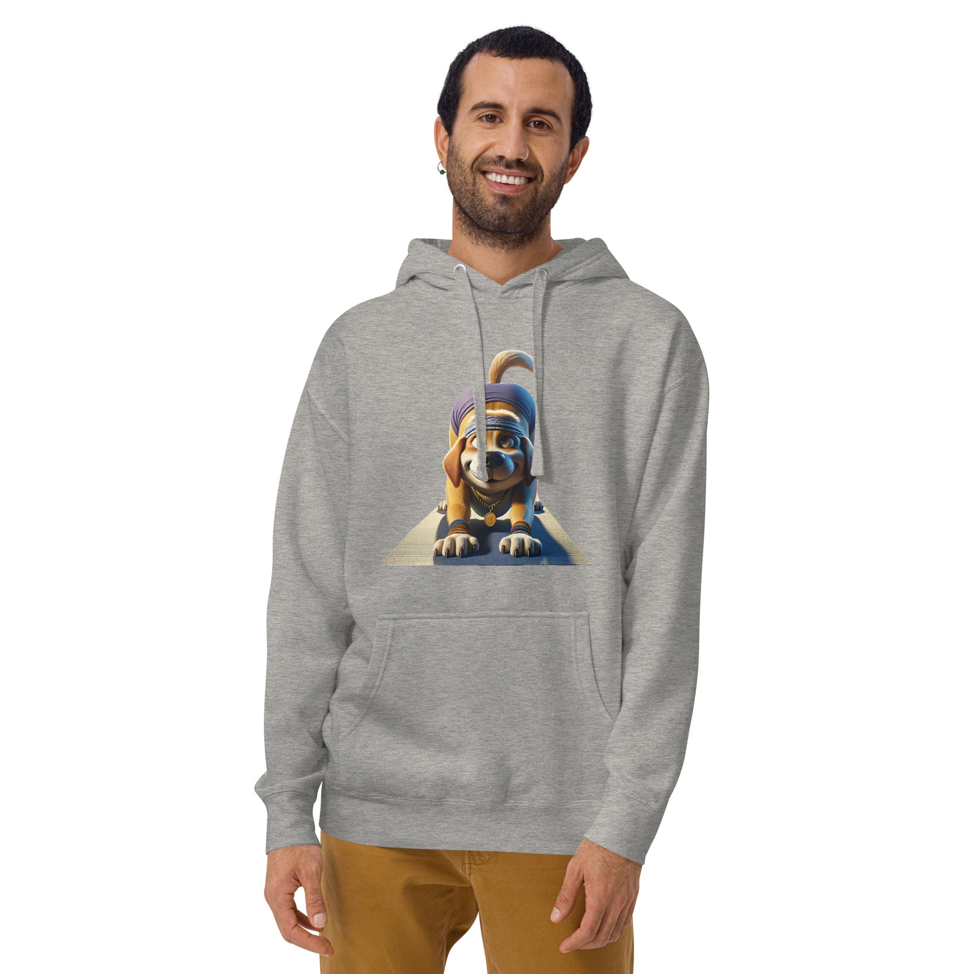 Embrace the chill and find your center with the 'Downward Dawg Hoodie'. Snuggle into serenity with our zen master pup leading the way to cozy enlightenment. Perfect for a cool-down session after hot yoga or a tranquil trail walk with your four-legged friend. It's your cuddly companion in the quest for calm and comfort. Who knew that the softest hoodie you'll ever own comes with such a cool design. You won't regret buying this classic streetwear piece of apparel with a convenient pouch pocket and warm hood for chilly evenings.
