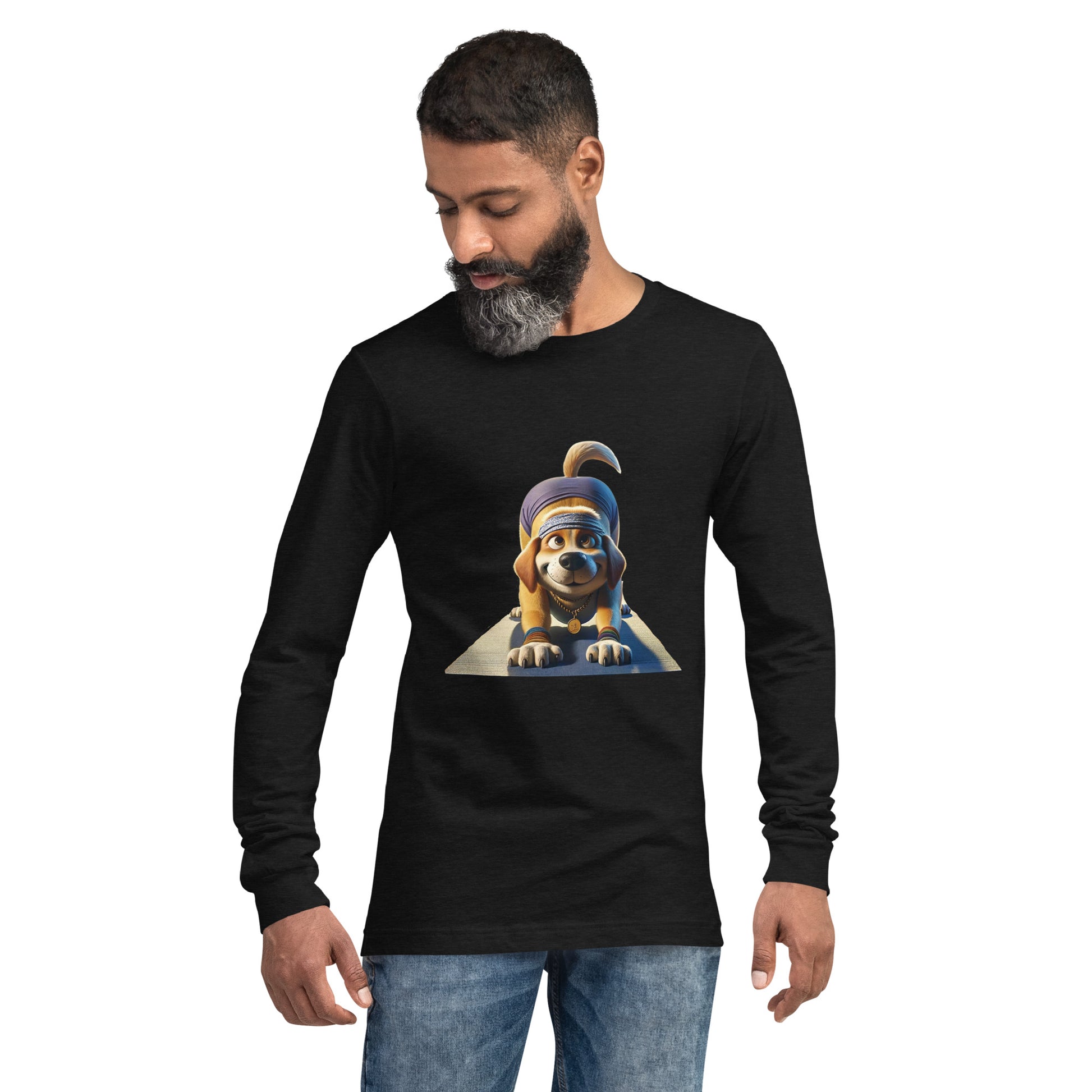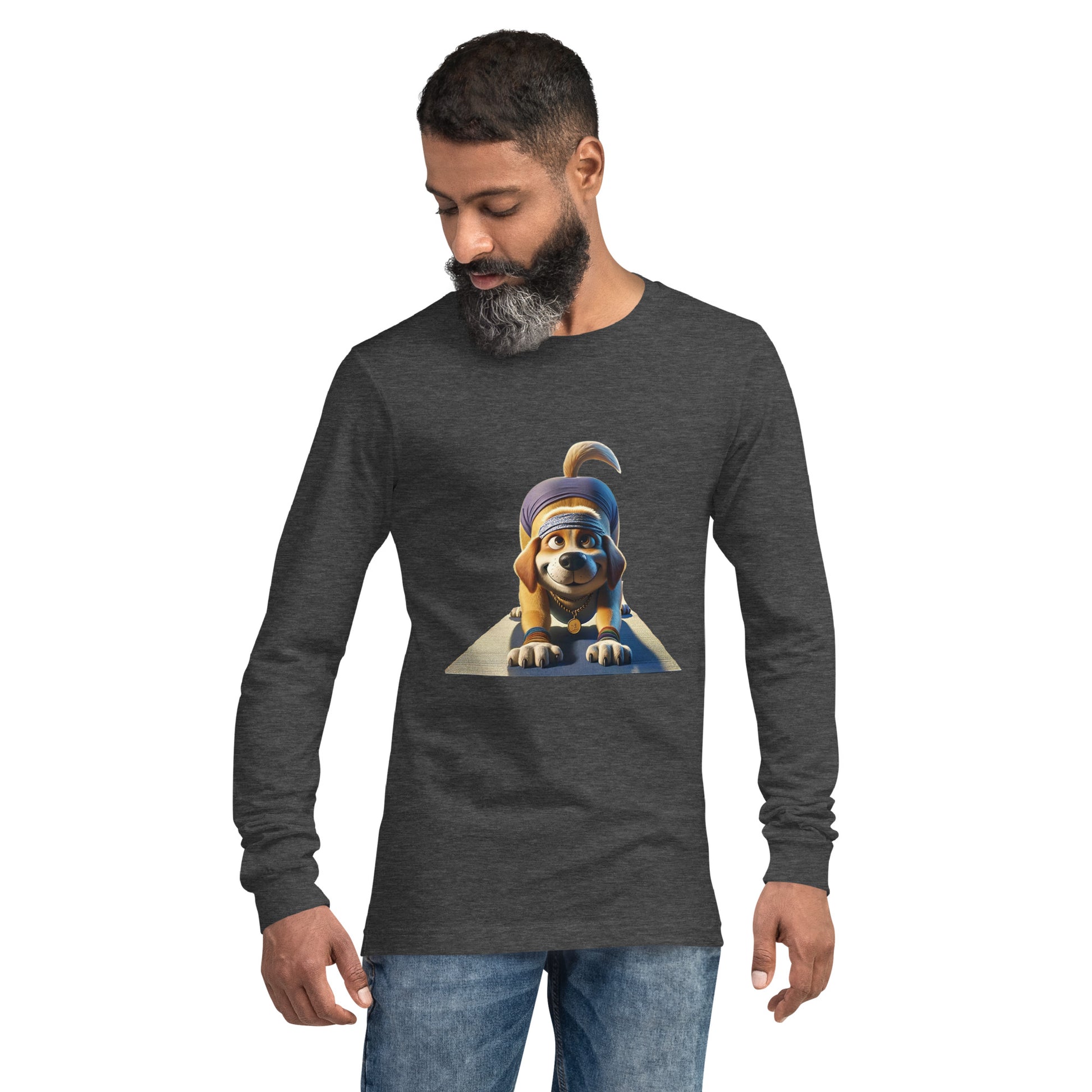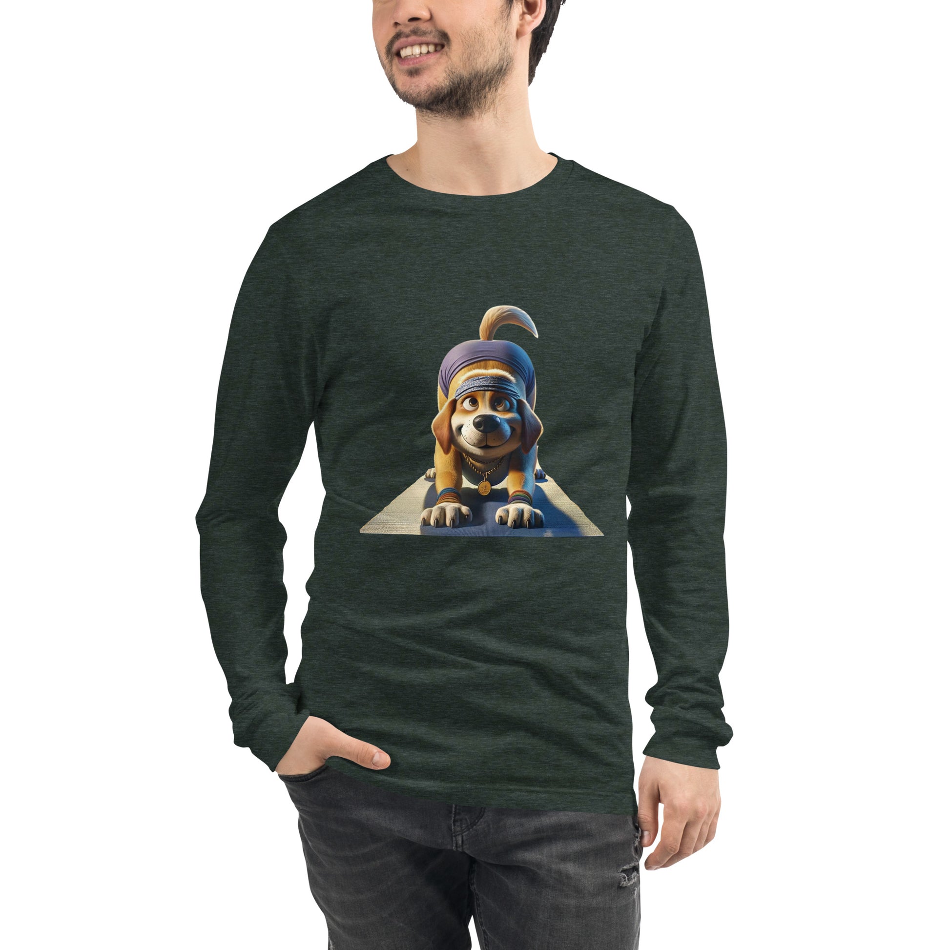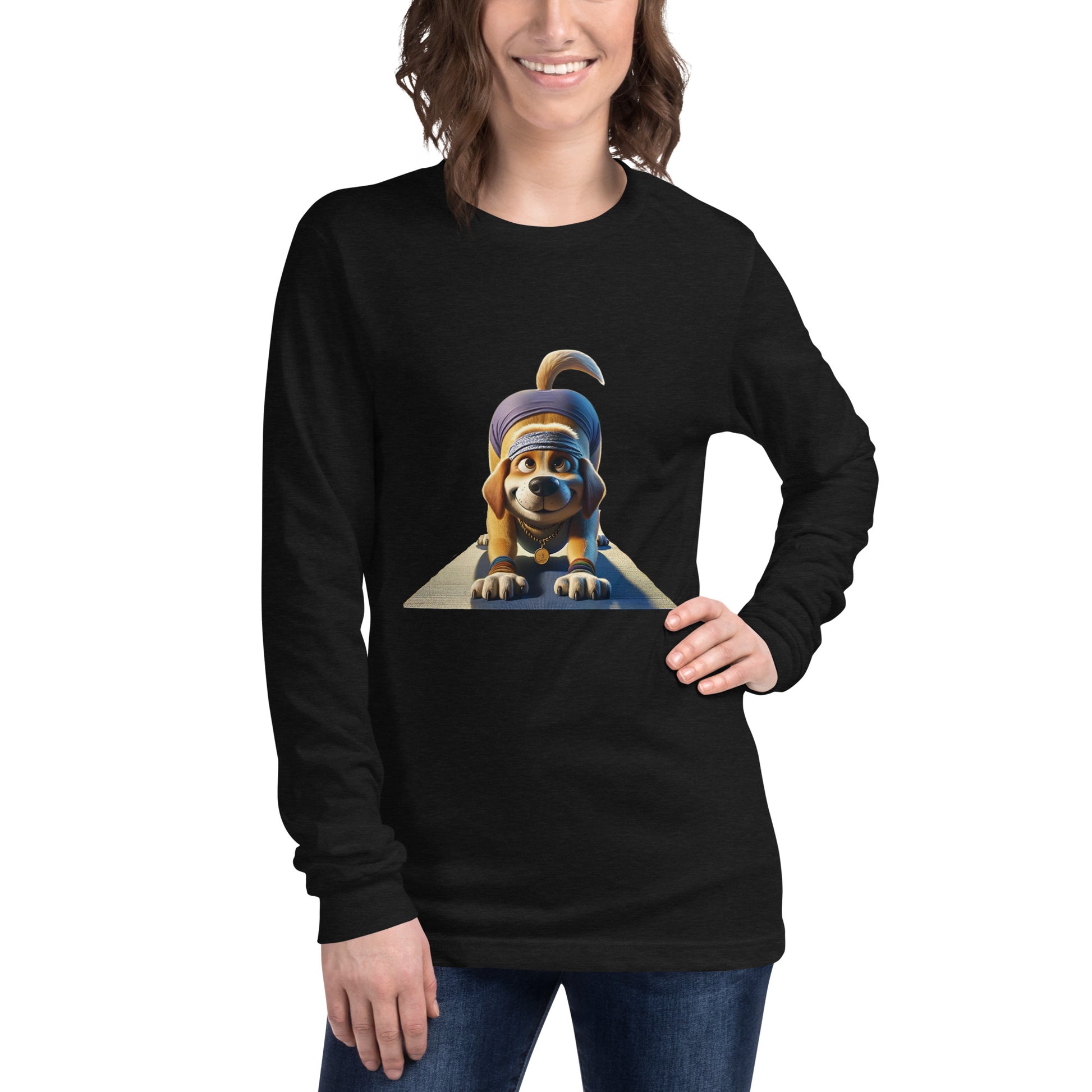 Get your cozy on with the 'Downward Dawg Sweatshirt'. This is where mindfulness meets snugness, and relaxation rules. Our serene canine yogi invites you to take a breath, take a break, and bask in the warmth of easygoing style. Ideal for those breezy evening meditations or just curling up with a good book. Enrich your wardrobe with a versatile long sleeve tee. For a casual look, combine it with your favorite jeans, and layer it with a button-up shirt, a zip-up hoodie, or a snazzy jacket. Dress it up with formal trousers or chinos to achieve a more professional look.