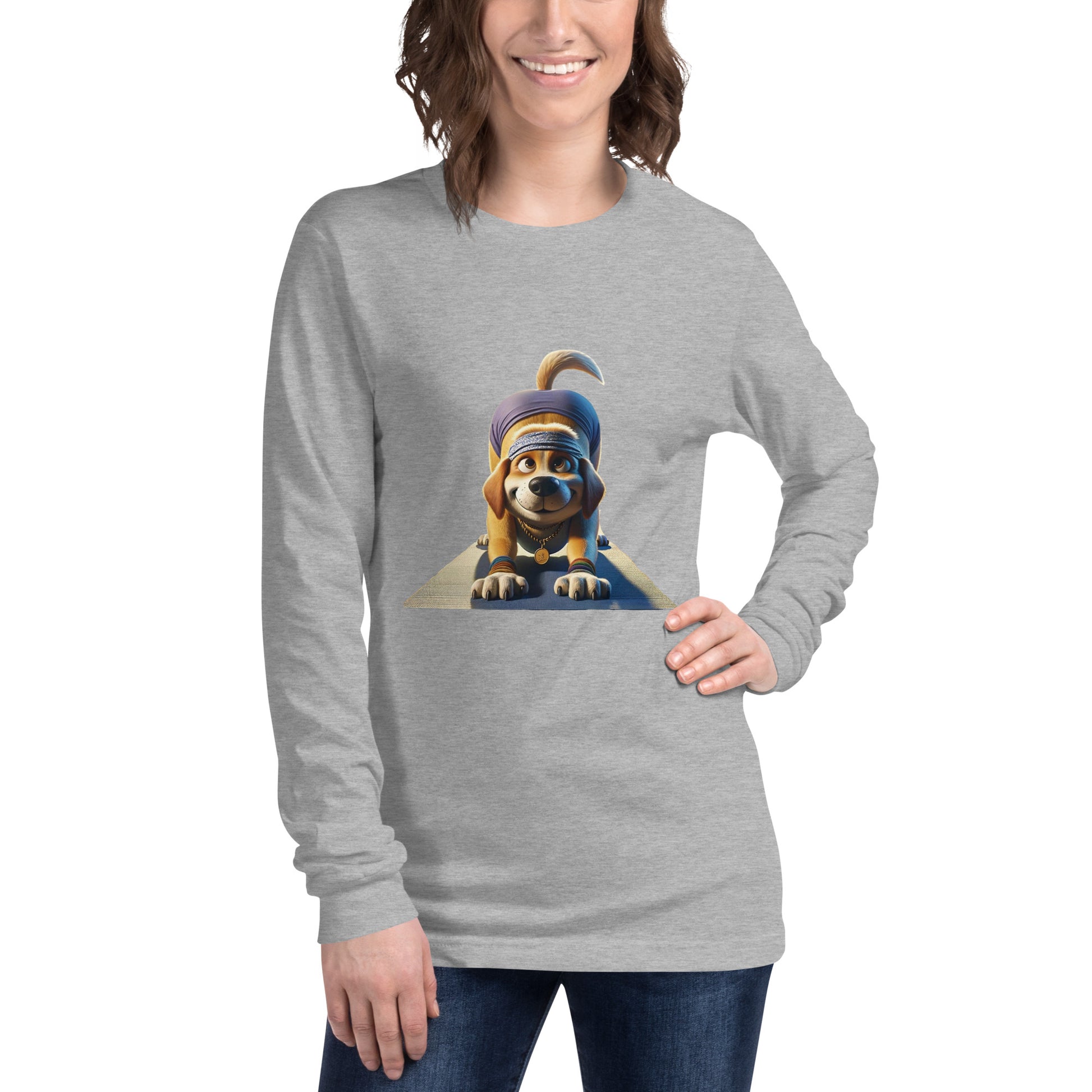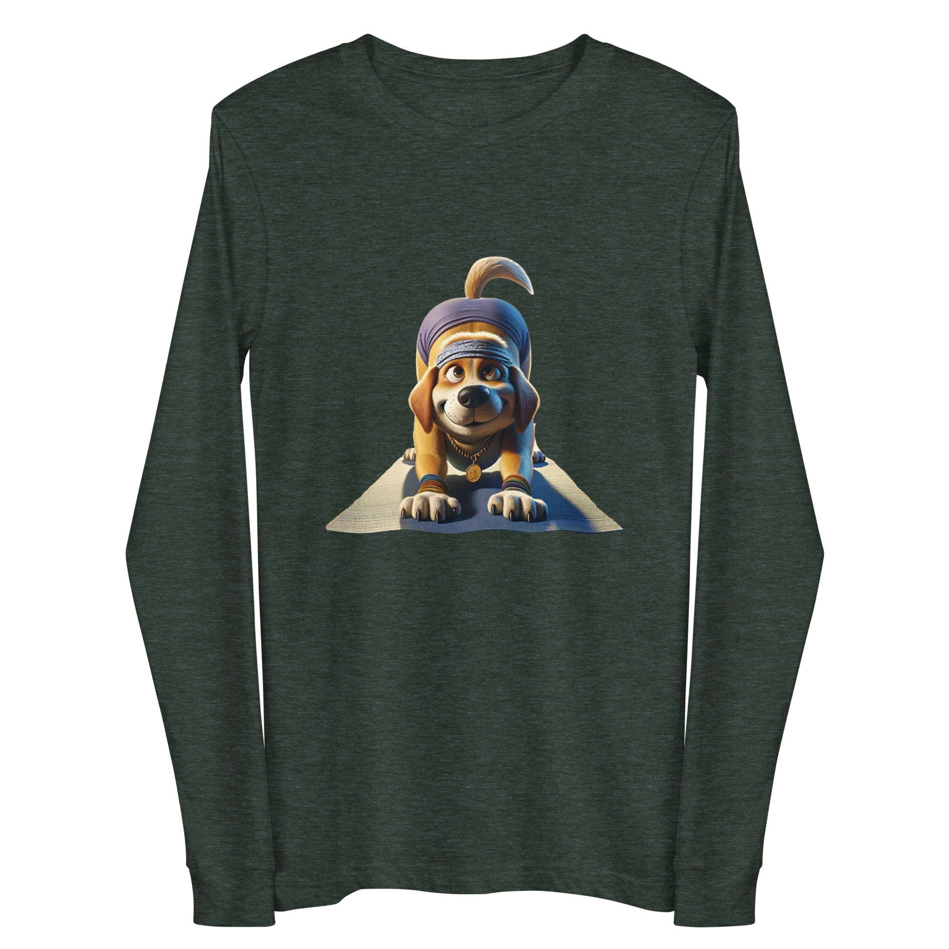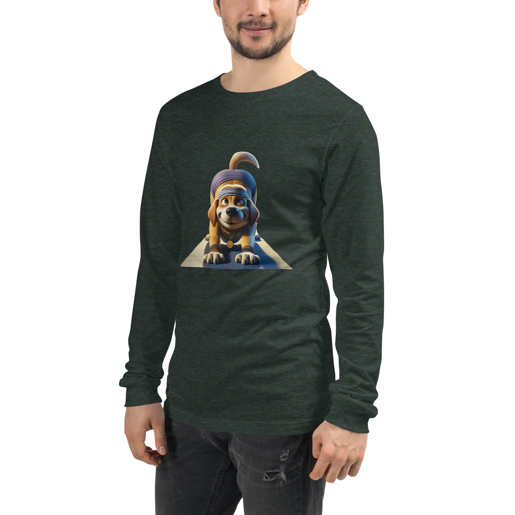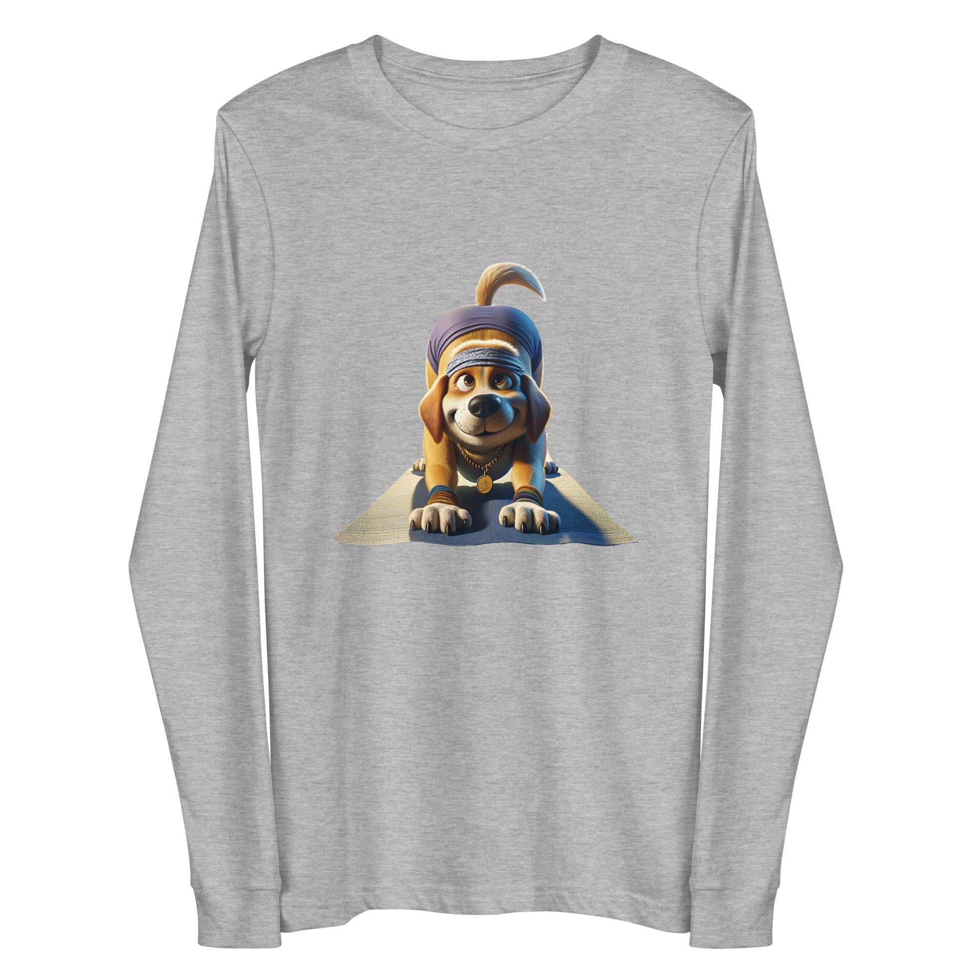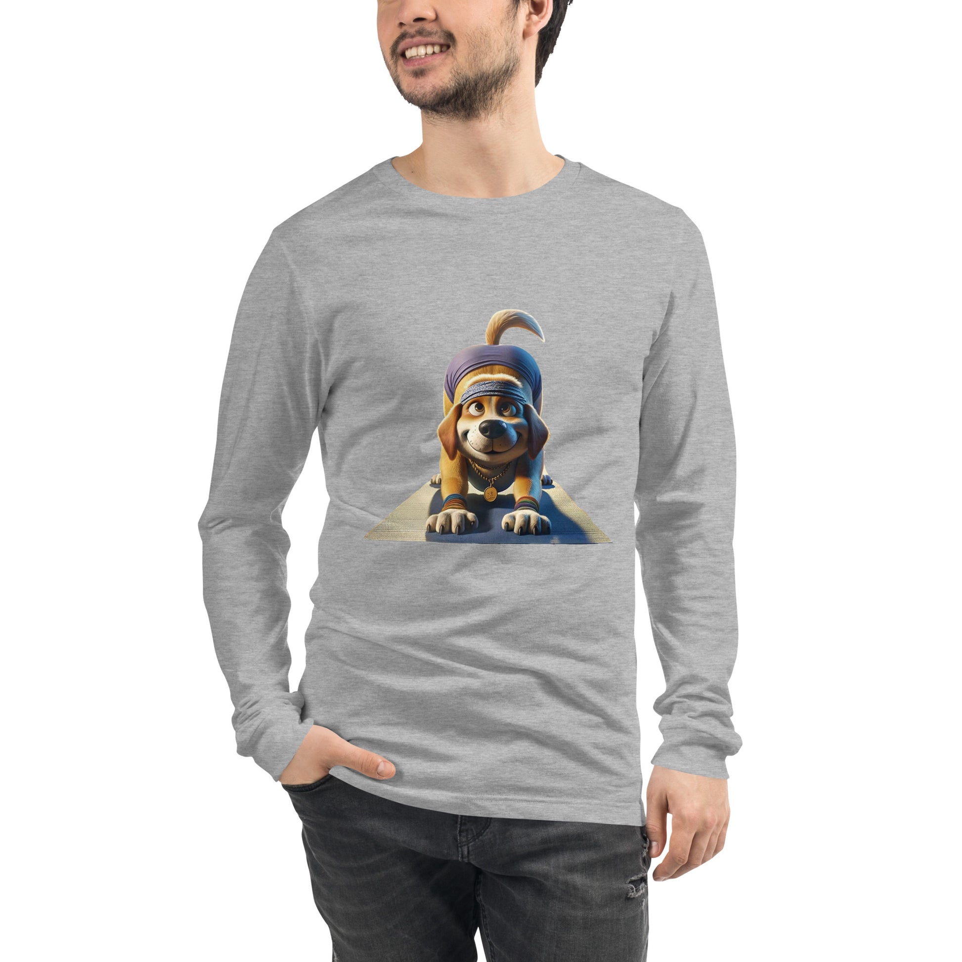 Get your cozy on with the 'Downward Dawg Sweatshirt'. This is where mindfulness meets snugness, and relaxation rules. Our serene canine yogi invites you to take a breath, take a break, and bask in the warmth of easygoing style. Ideal for those breezy evening meditations or just curling up with a good book. Enrich your wardrobe with a versatile long sleeve tee. For a casual look, combine it with your favorite jeans, and layer it with a button-up shirt, a zip-up hoodie, or a snazzy jacket. Dress it up with formal trousers or chinos to achieve a more professional look.
