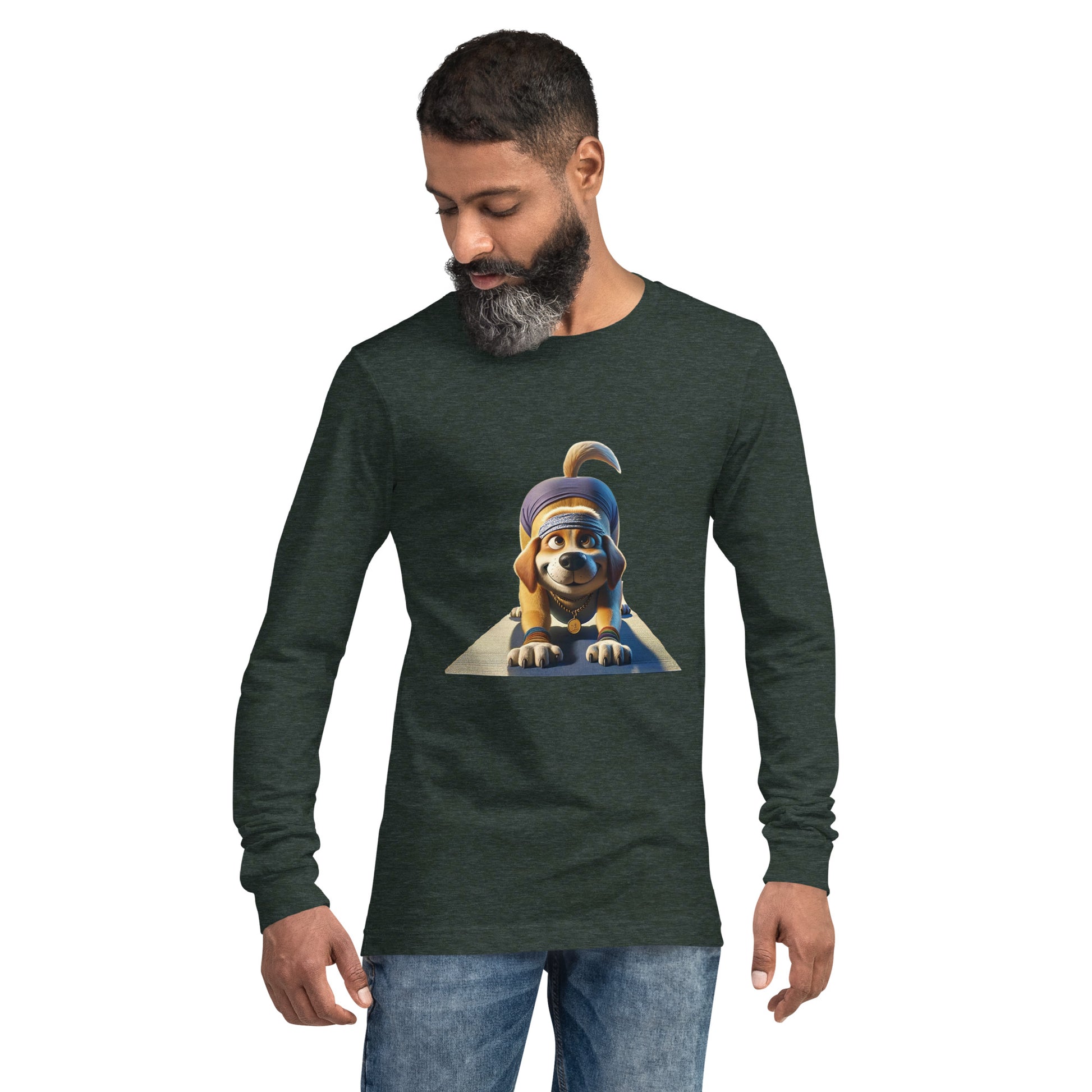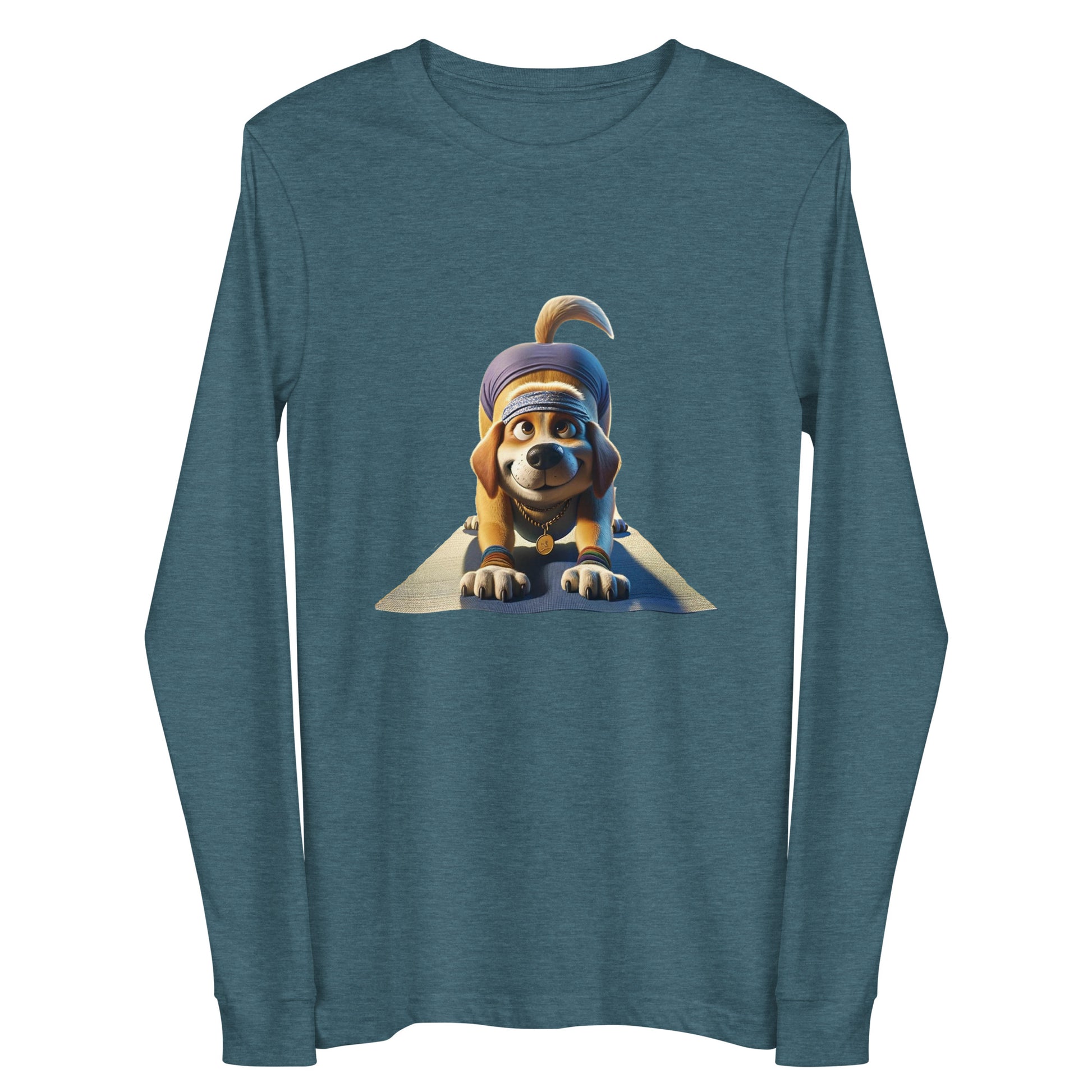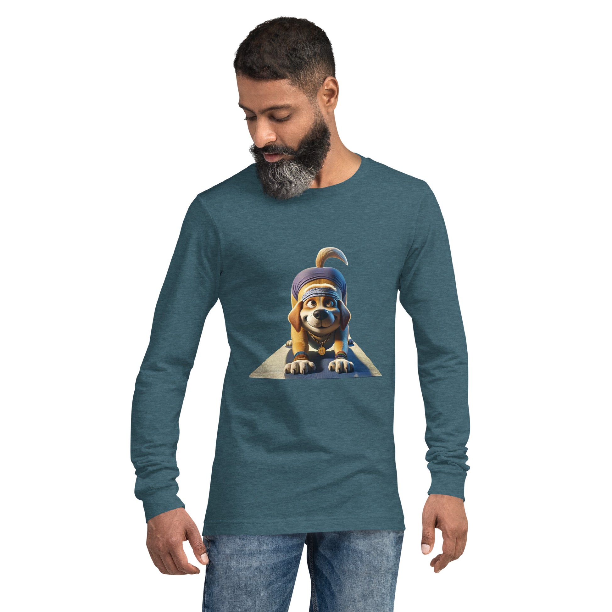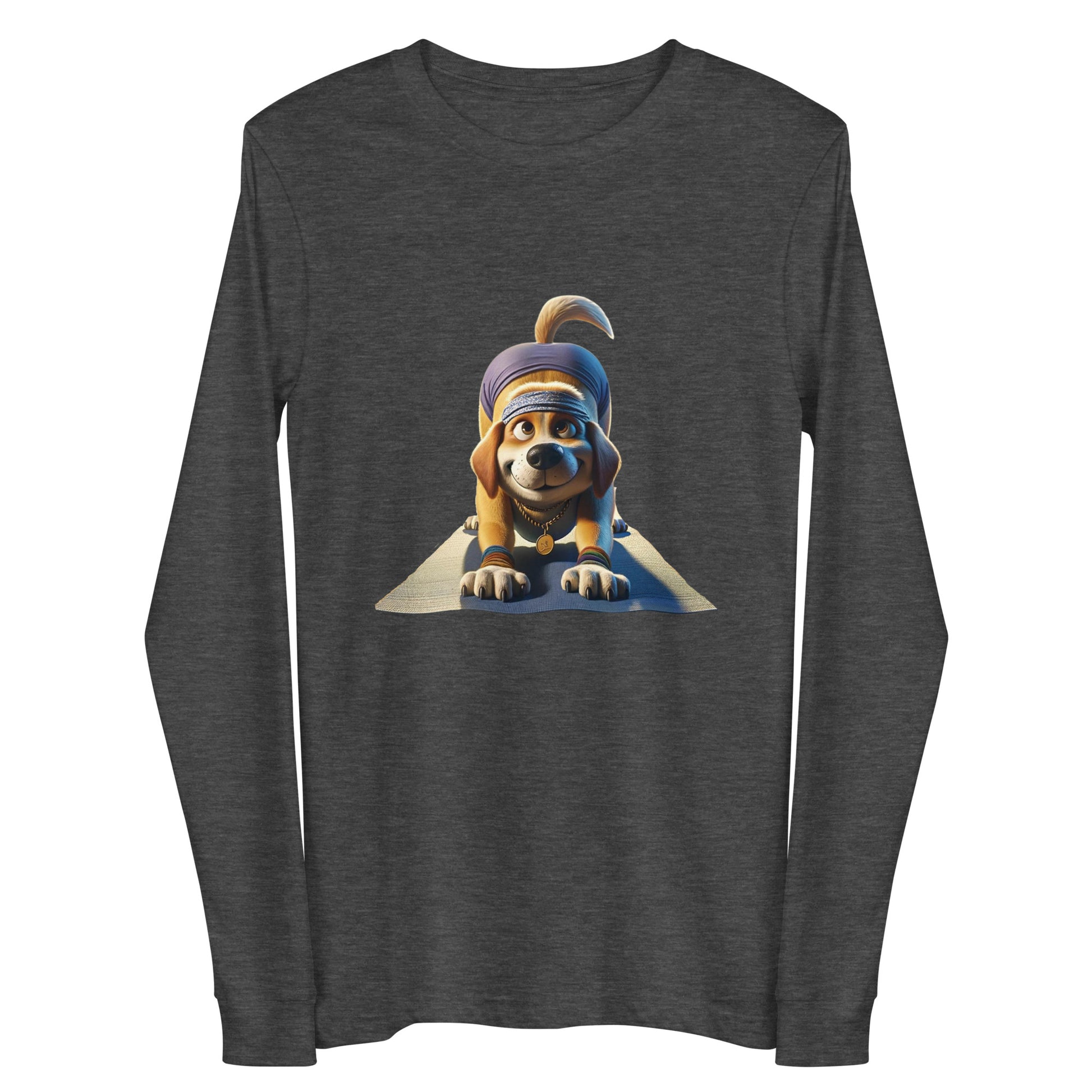 Get your cozy on with the 'Downward Dawg Sweatshirt'. This is where mindfulness meets snugness, and relaxation rules. Our serene canine yogi invites you to take a breath, take a break, and bask in the warmth of easygoing style. Ideal for those breezy evening meditations or just curling up with a good book. Enrich your wardrobe with a versatile long sleeve tee. For a casual look, combine it with your favorite jeans, and layer it with a button-up shirt, a zip-up hoodie, or a snazzy jacket. Dress it up with formal trousers or chinos to achieve a more professional look.