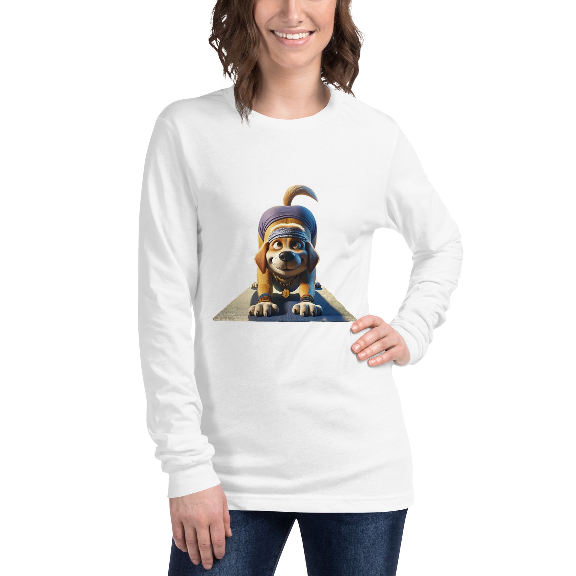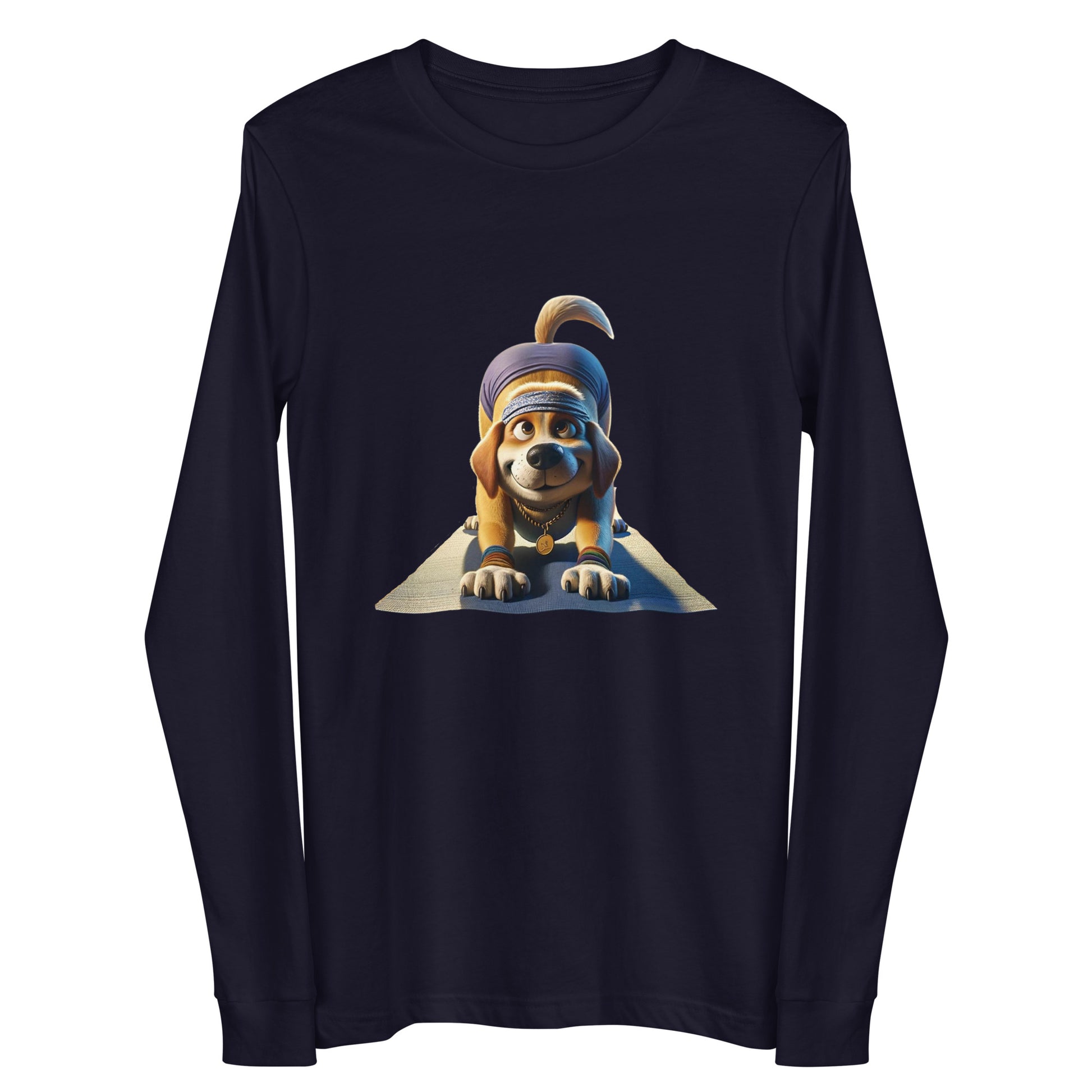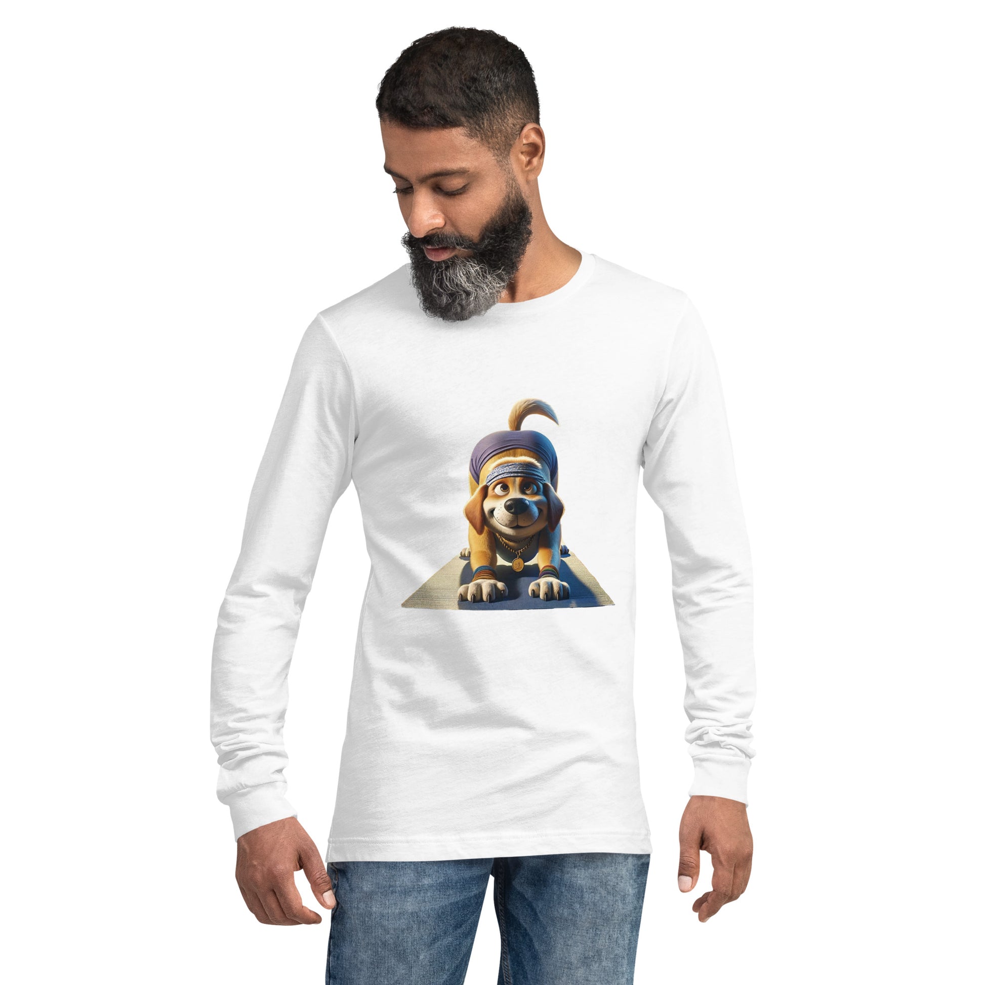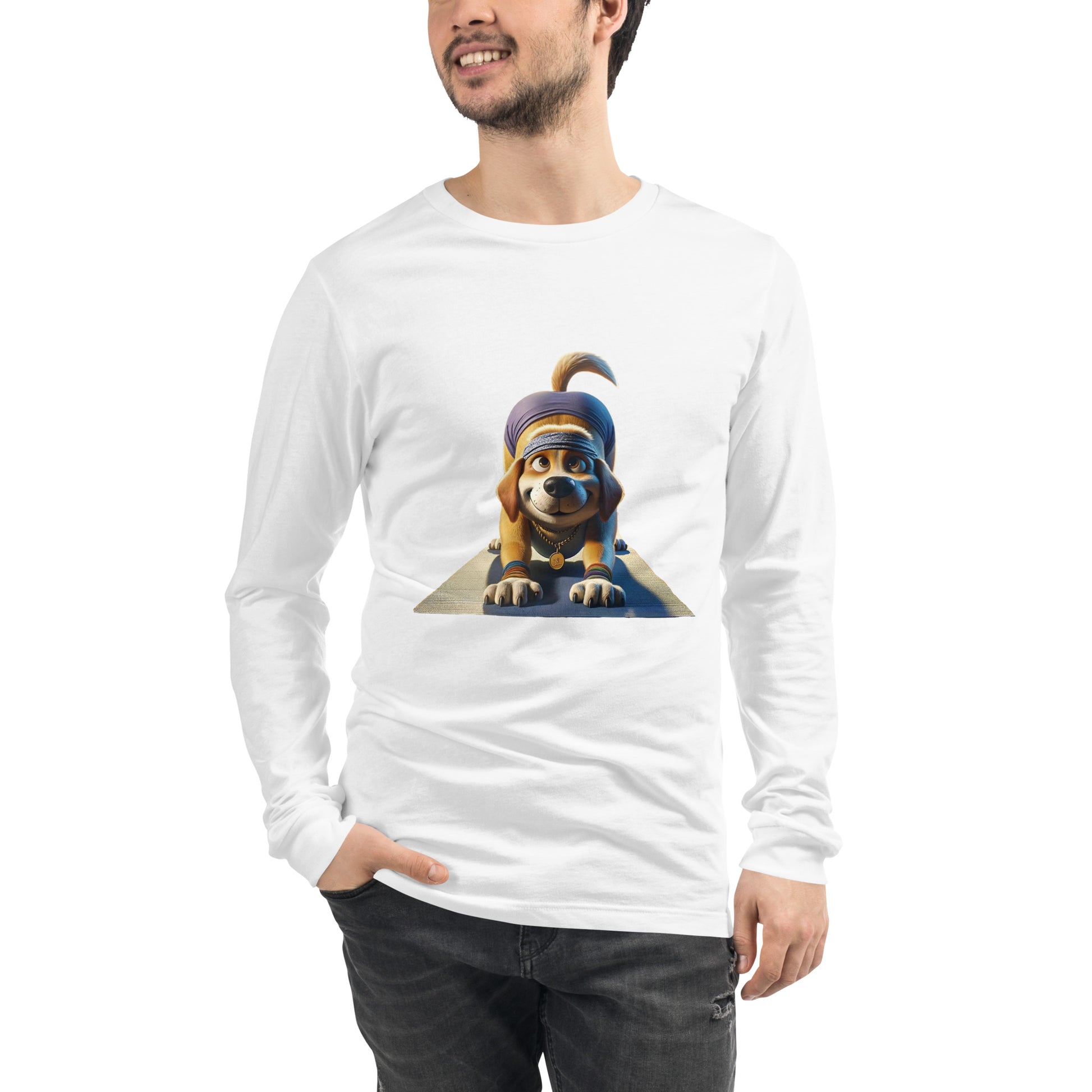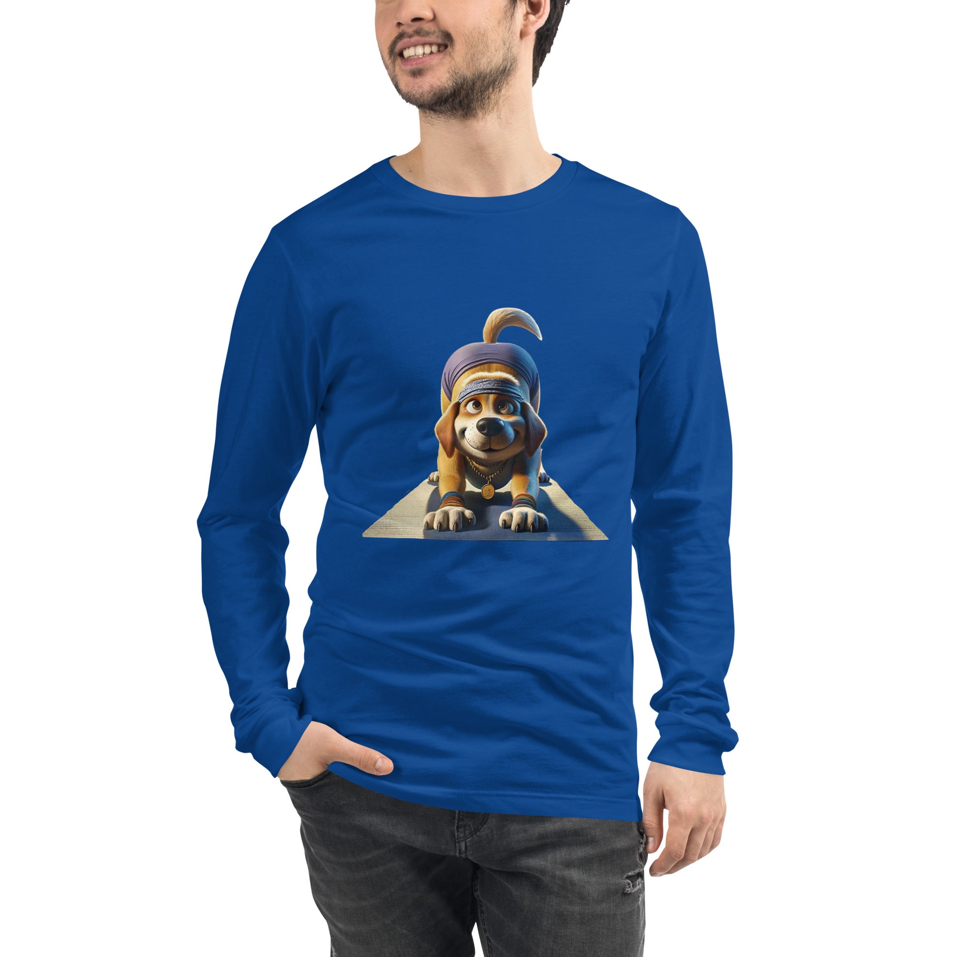 Get your cozy on with the 'Downward Dawg Sweatshirt'. This is where mindfulness meets snugness, and relaxation rules. Our serene canine yogi invites you to take a breath, take a break, and bask in the warmth of easygoing style. Ideal for those breezy evening meditations or just curling up with a good book. Enrich your wardrobe with a versatile long sleeve tee. For a casual look, combine it with your favorite jeans, and layer it with a button-up shirt, a zip-up hoodie, or a snazzy jacket. Dress it up with formal trousers or chinos to achieve a more professional look.