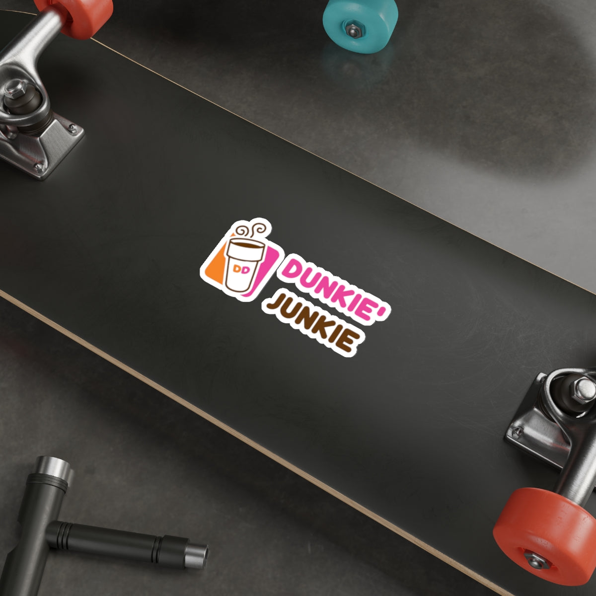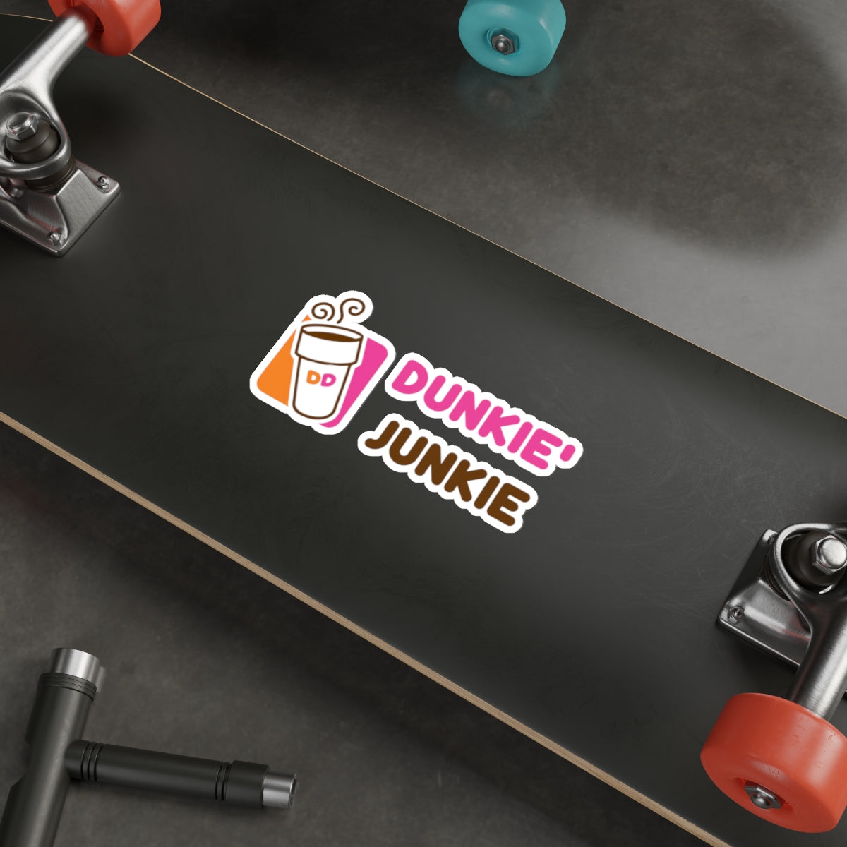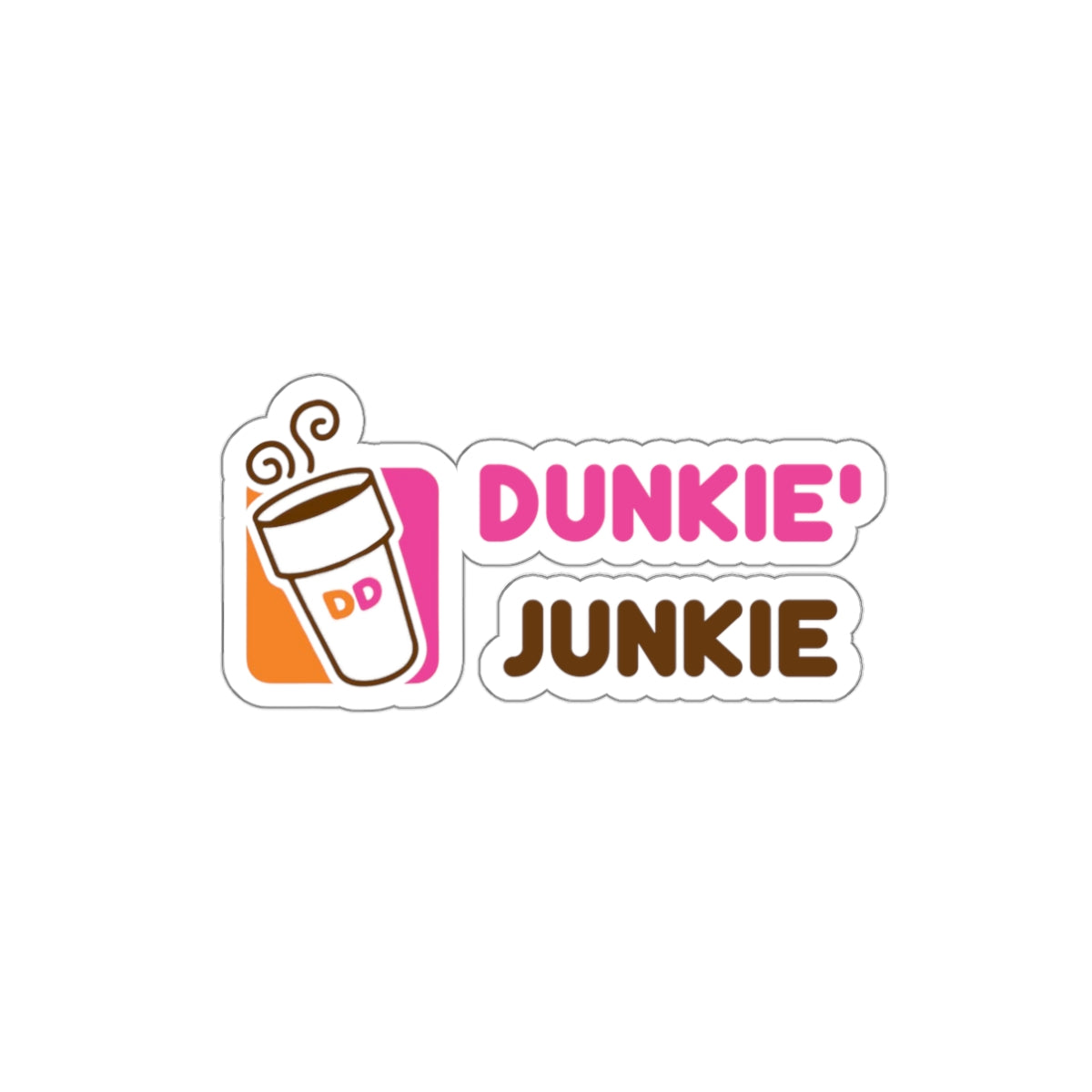 Peel, stick, and proclaim your love for that perfect pair with the 'Dunkie' Junkie Sticker. This vibrant decal is a little badge of honor for the sweet-toothed sippers and the espresso savorers. Adorn your laptop, water bottle, or office space with a pop of coffee-shop chic and a dash of donut delight. It's durable, delightful, and a tiny testament to your dedication to the dunk. Wherever you stick it, it's sure to brew up smiles and conversations.