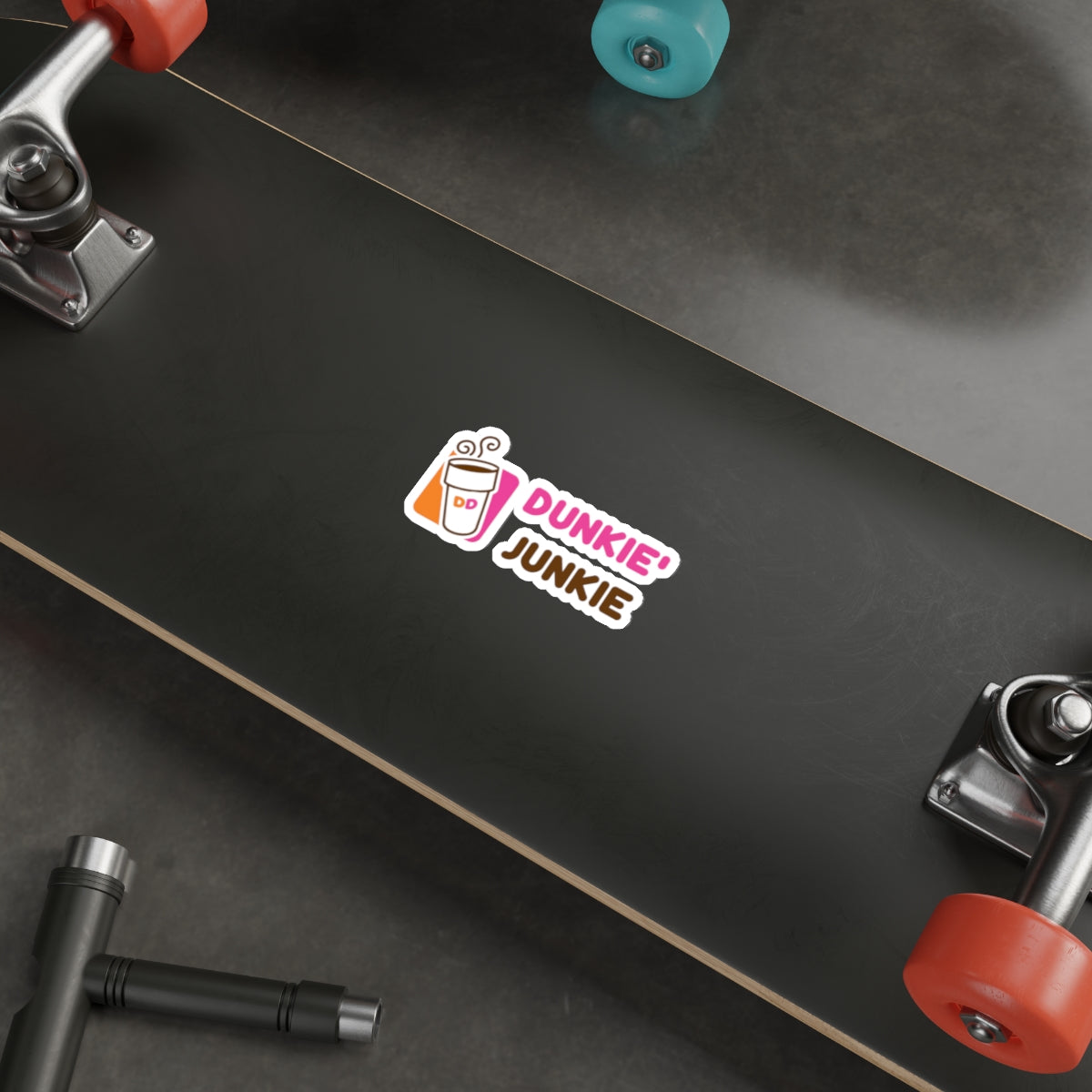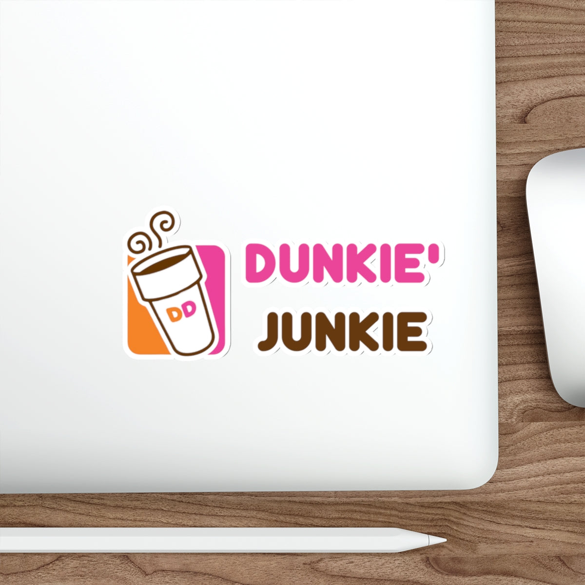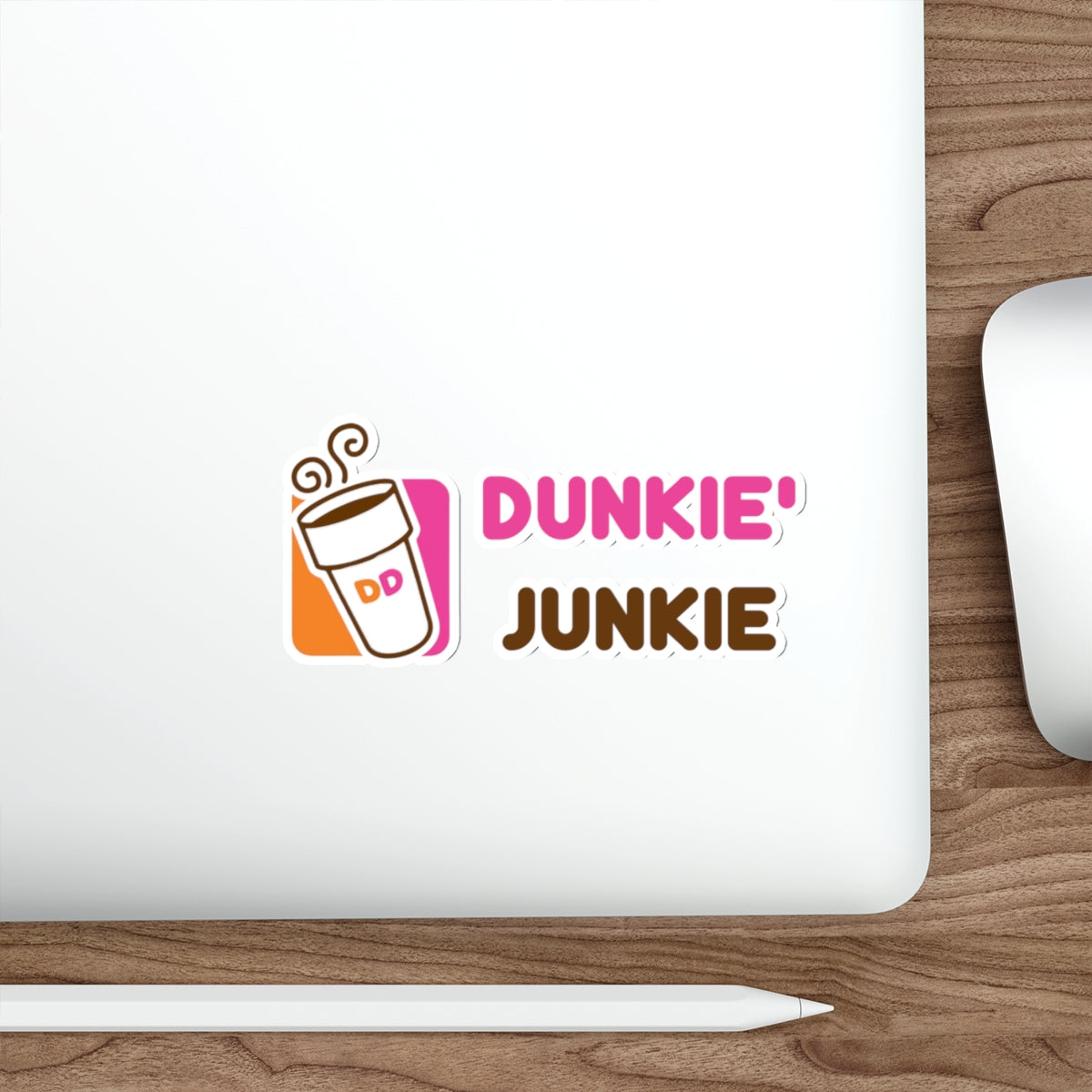 Peel, stick, and proclaim your love for that perfect pair with the 'Dunkie' Junkie Sticker. This vibrant decal is a little badge of honor for the sweet-toothed sippers and the espresso savorers. Adorn your laptop, water bottle, or office space with a pop of coffee-shop chic and a dash of donut delight. It's durable, delightful, and a tiny testament to your dedication to the dunk. Wherever you stick it, it's sure to brew up smiles and conversations.