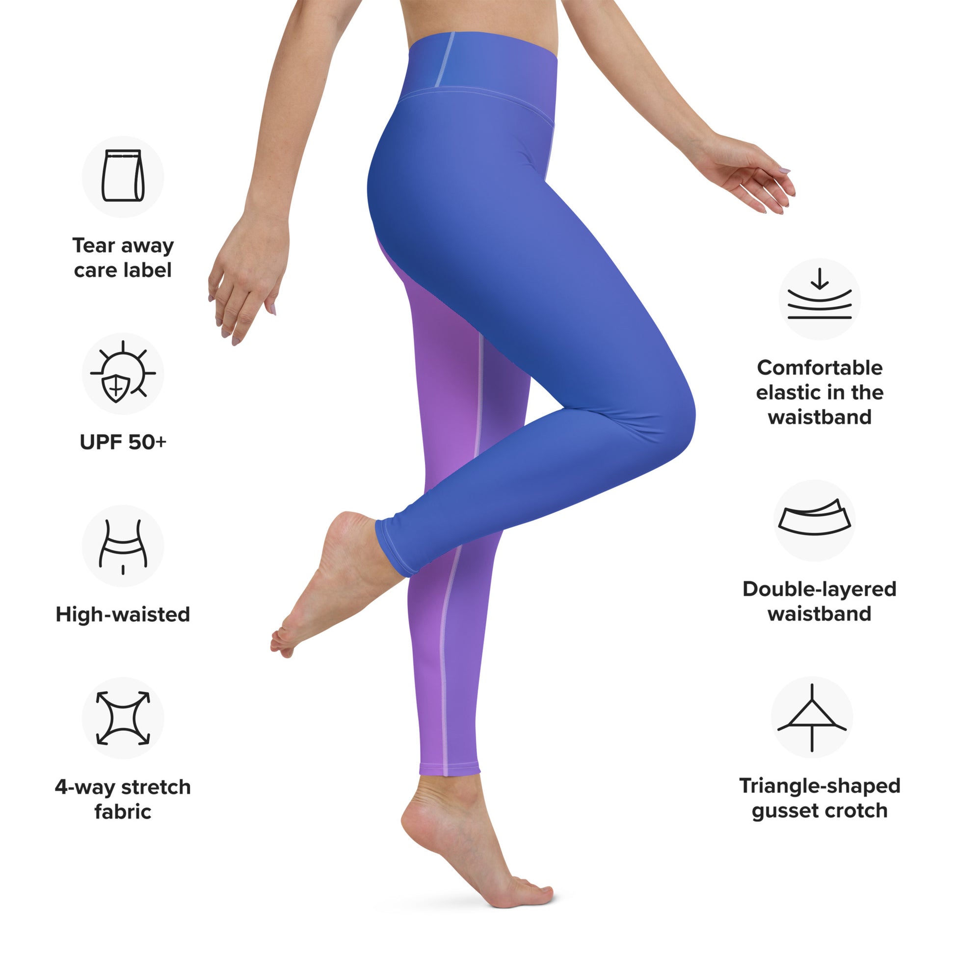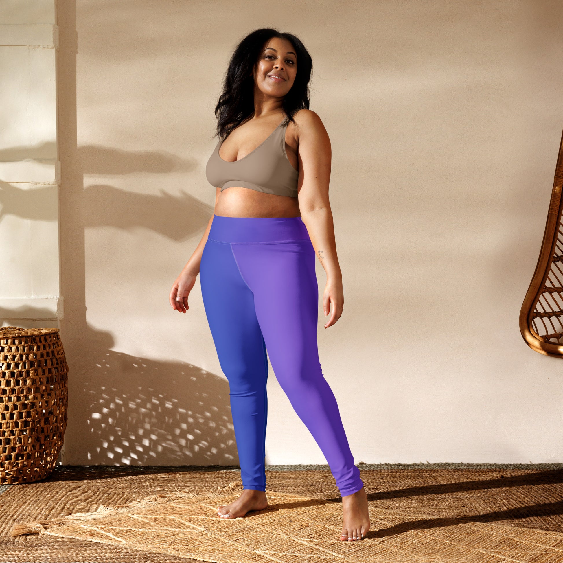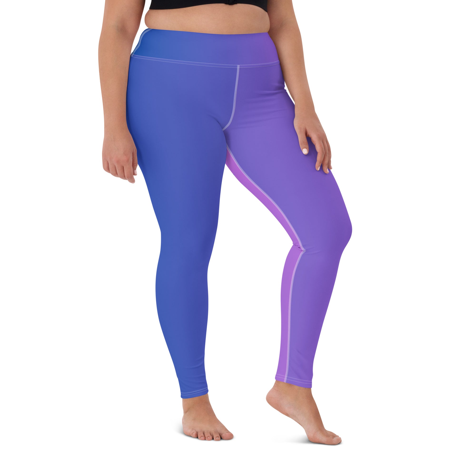 Embrace the gradient glow of early evening skies with our "Dusk Duo Leggings." Designed to capture the serene transition from day to night, these leggings offer a stylish symphony of color that compliments your every move. Whether it's a calming yoga session or a vigorous spin class, the high-waisted fit and supportive stretch fabric ensure comfort and flexibility for all your fitness endeavors. Super soft, stretchy, and comfortable yoga leggings. Order these to make sure your next yoga session is the best one ever!