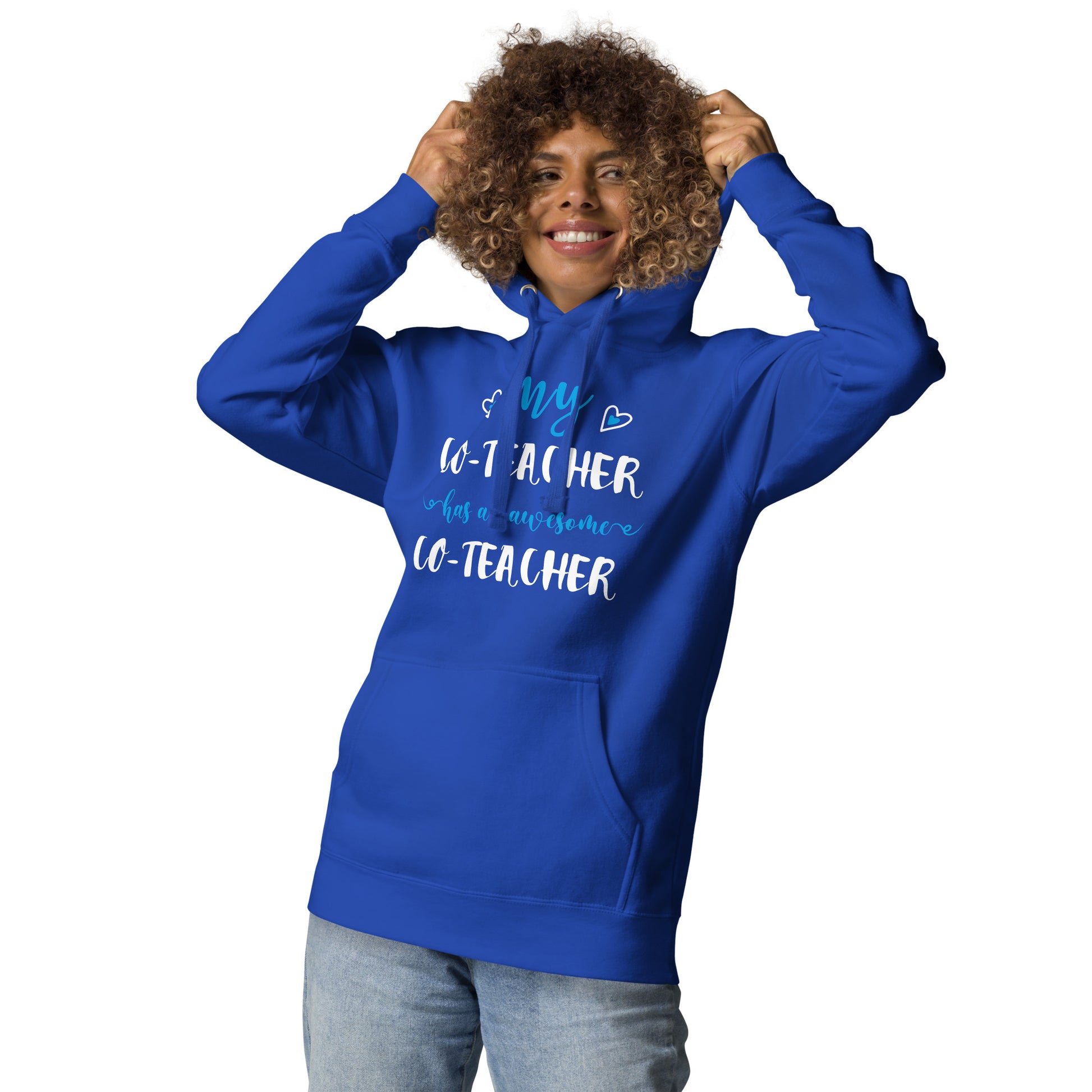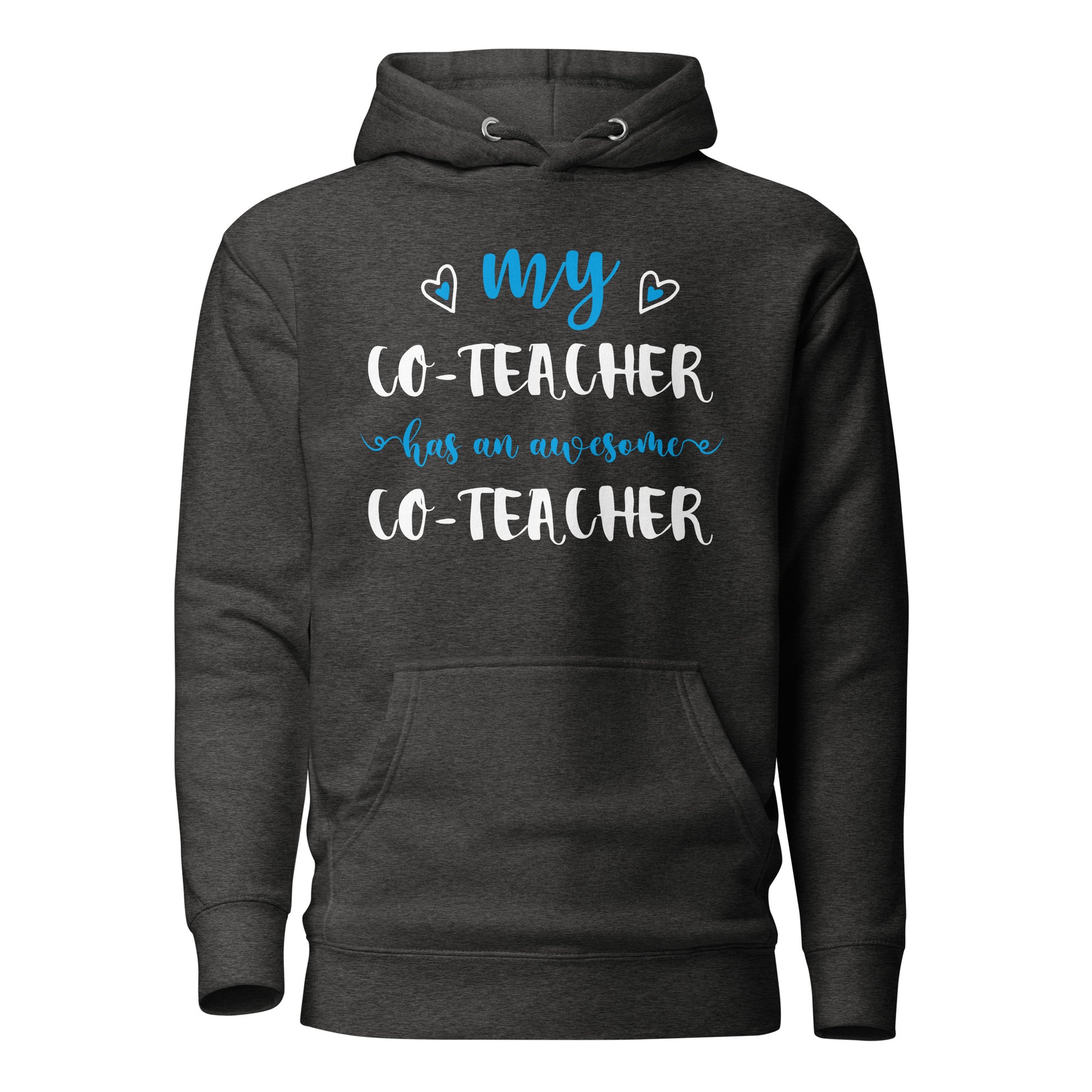 Double the teaching power with our "Dynamic Duo" hoodie, the perfect ode to the unstoppable team in the classroom! Flaunting the phrase "My Co-Teacher Has an Awesome Co-Teacher," this hoodie is a high-five in fabric form, celebrating the collaborative spirit that makes education twice as impactful. This hoodie isn't just a garment; it's a mutual admiration society, expressed in bold, playful letters that mirror the creativity and support shared between teaching partners. It's the wardrobe choice for educational conferences, casual Fridays, or that well-deserved after-school unwind. Whether you're lesson planning, grading papers, or leading the next generation, let this shirt be the emblem of your shared journey—because teamwork in teaching makes the dream work! Who knew that the softest hoodie you'll ever own comes with such a cool design. You won't regret buying this classic streetwear piece of apparel with a convenient pouch pocket and warm hood for chilly evenings.