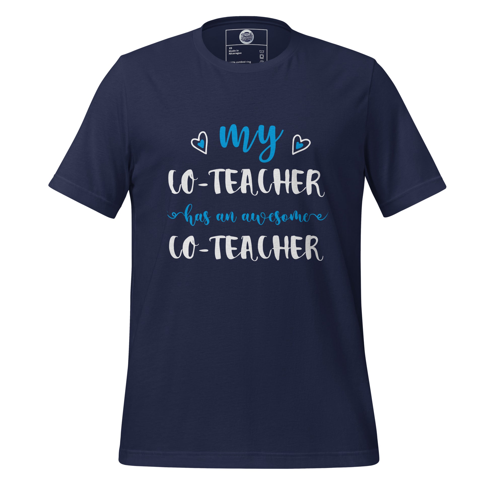 Double the teaching power with our "Dynamic Duo" Tee, the perfect ode to the unstoppable team in the classroom! Flaunting the phrase "My Co-Teacher Has an Awesome Co-Teacher," this shirt is a high-five in fabric form, celebrating the collaborative spirit that makes education twice as impactful. This tee isn't just a garment; it's a mutual admiration society, expressed in bold, playful letters that mirror the creativity and support shared between teaching partners. It's the wardrobe choice for educational conferences, casual Fridays, or that well-deserved after-school unwind. Whether you're lesson planning, grading papers, or leading the next generation, let this shirt be the emblem of your shared journey—because teamwork in teaching makes the dream work! This t-shirt is everything you've dreamed of and more. It feels soft and lightweight, with the right amount of stretch. It's comfortable and flattering for all.