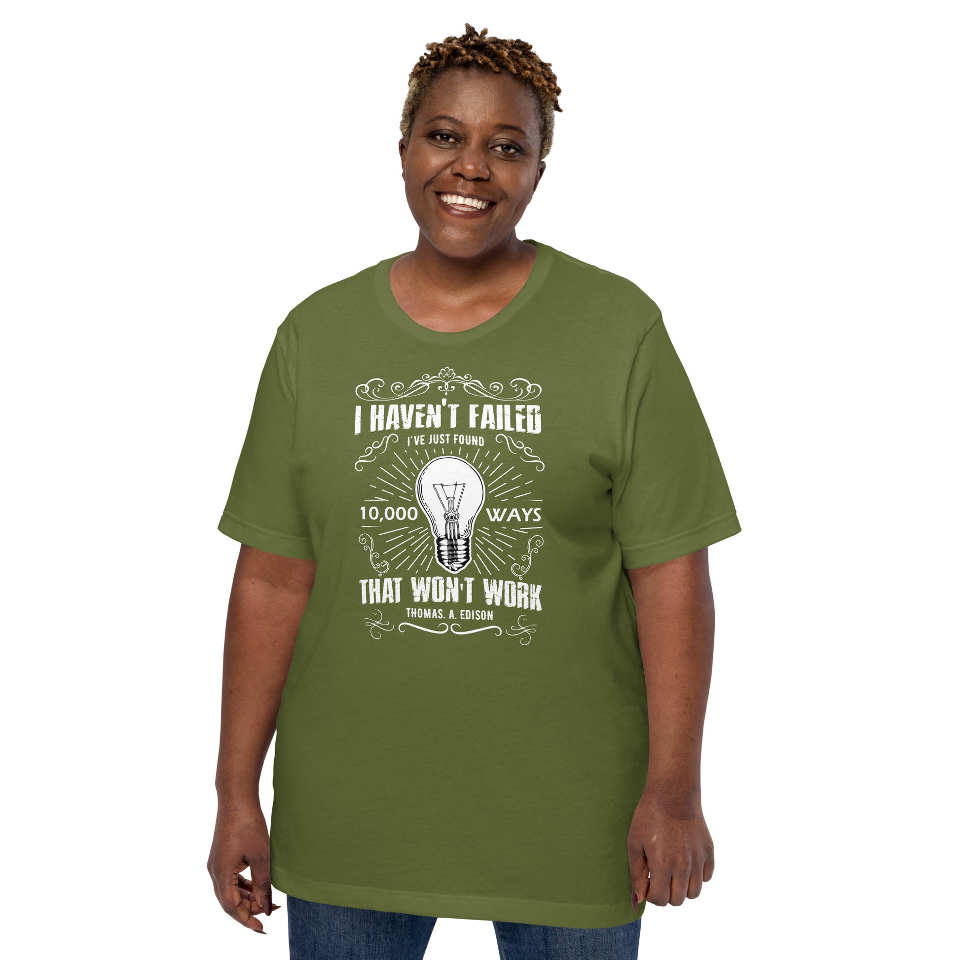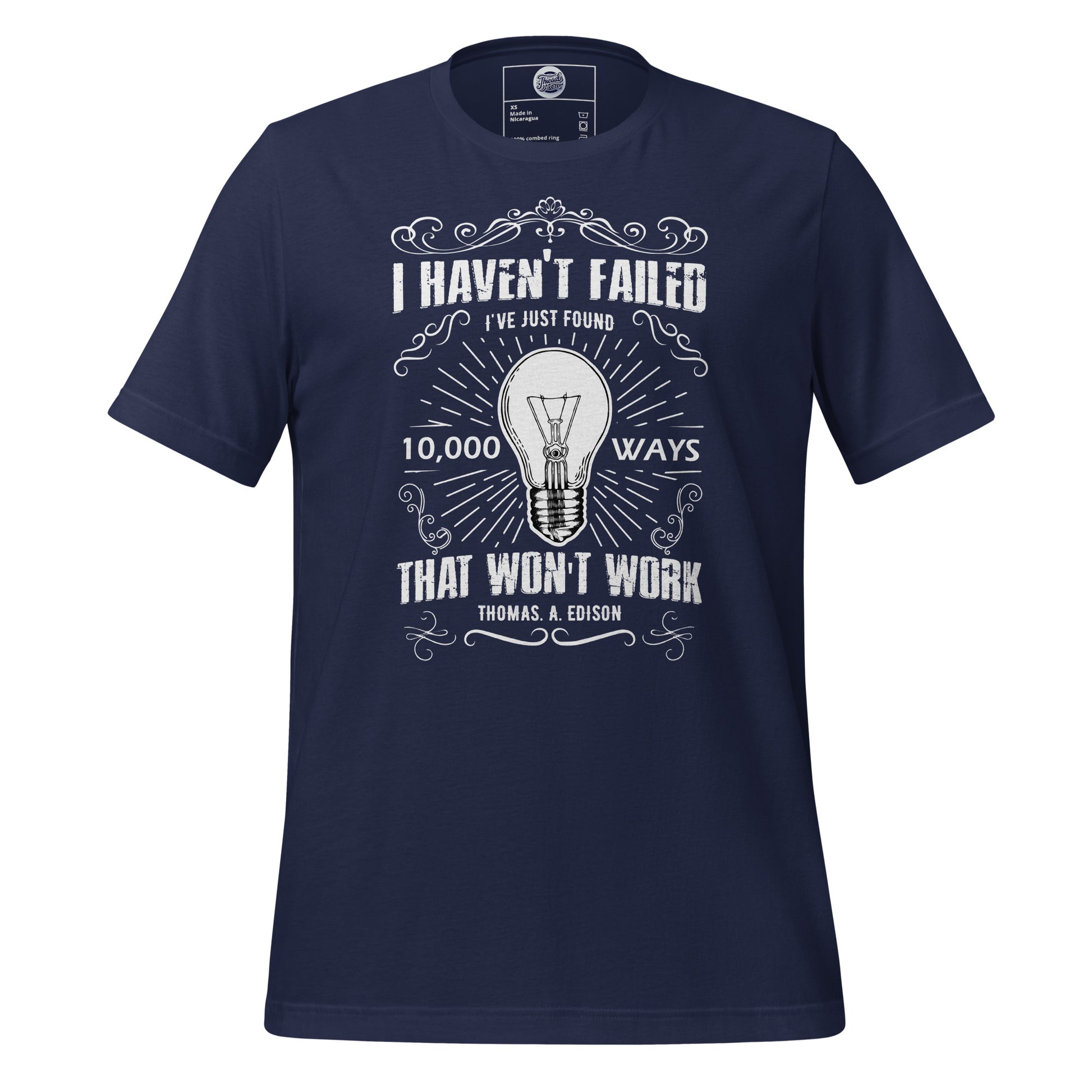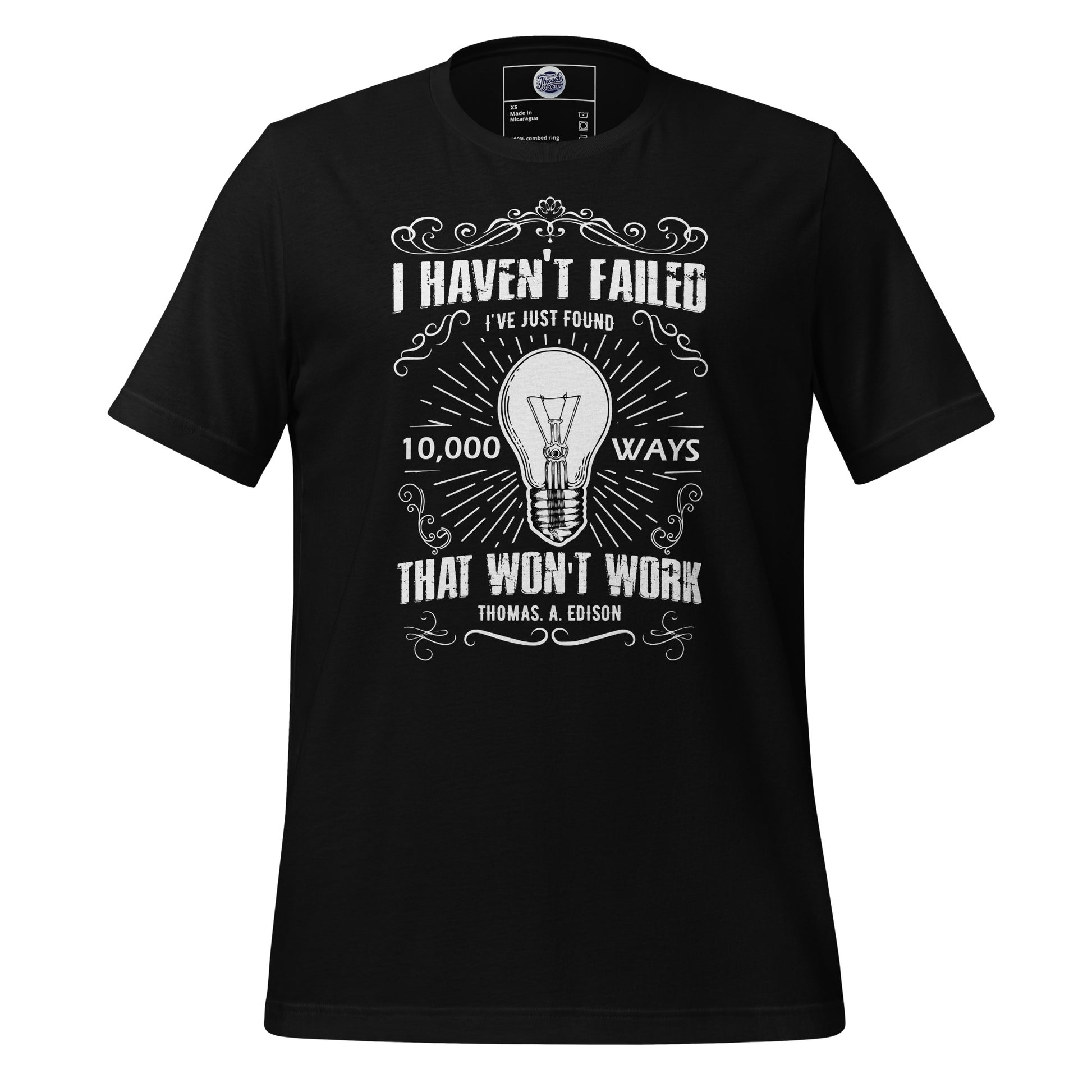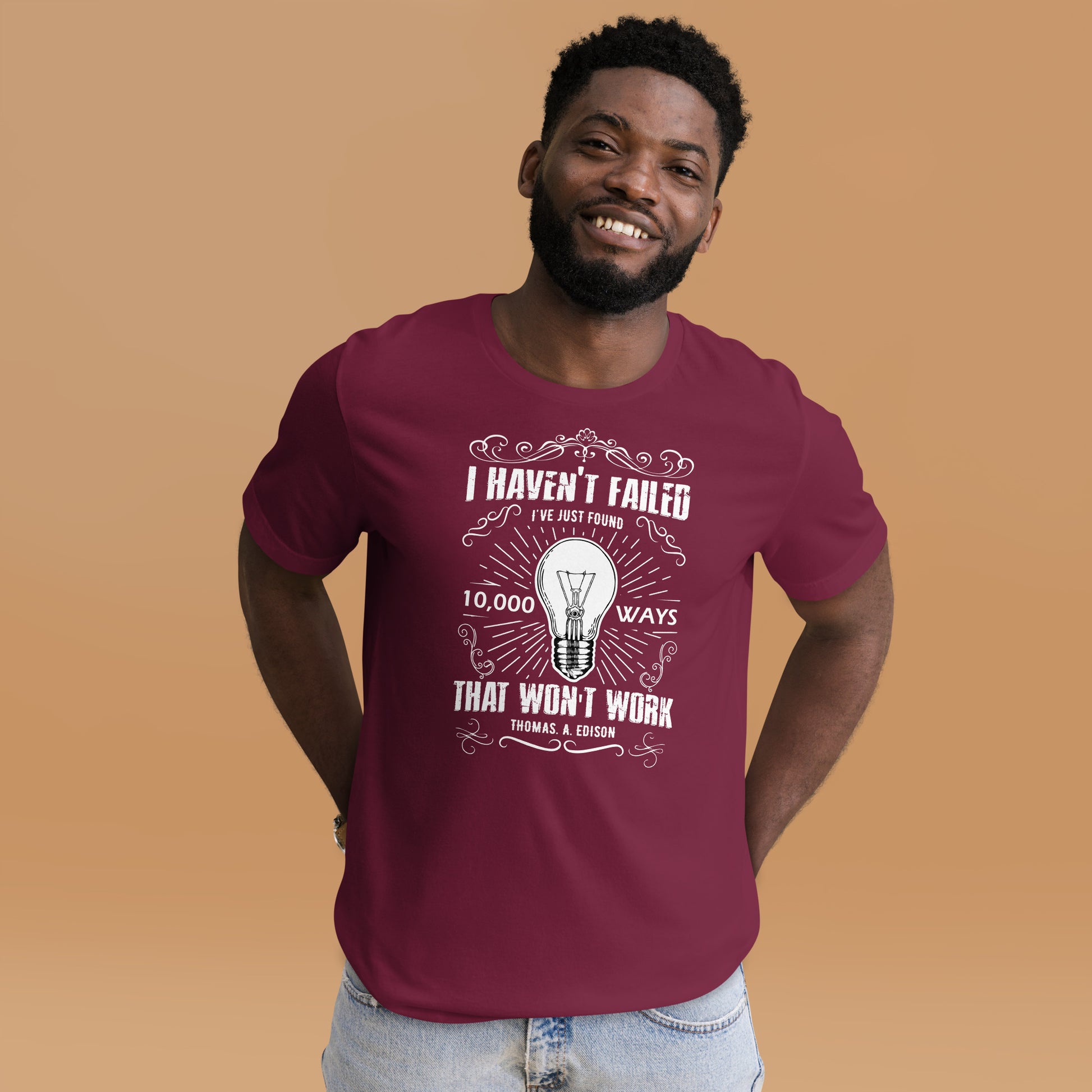 Ignite your wardrobe with the spark of perseverance with our "Edison's Epiphany" T-Shirt! This isn't just a tee, it's a wearable ode to trial and error, a beacon for the relentlessly determined. Adorn yourself in the wisdom of a man who knew that every 'oops' is a step towards a 'eureka!' Perfect for those brainstorming sessions, inventor’s workshops, or just lighting up the room with your presence. This t-shirt is everything you've dreamed of and more. It feels soft and lightweight, with the right amount of stretch. It's comfortable and flattering for all.