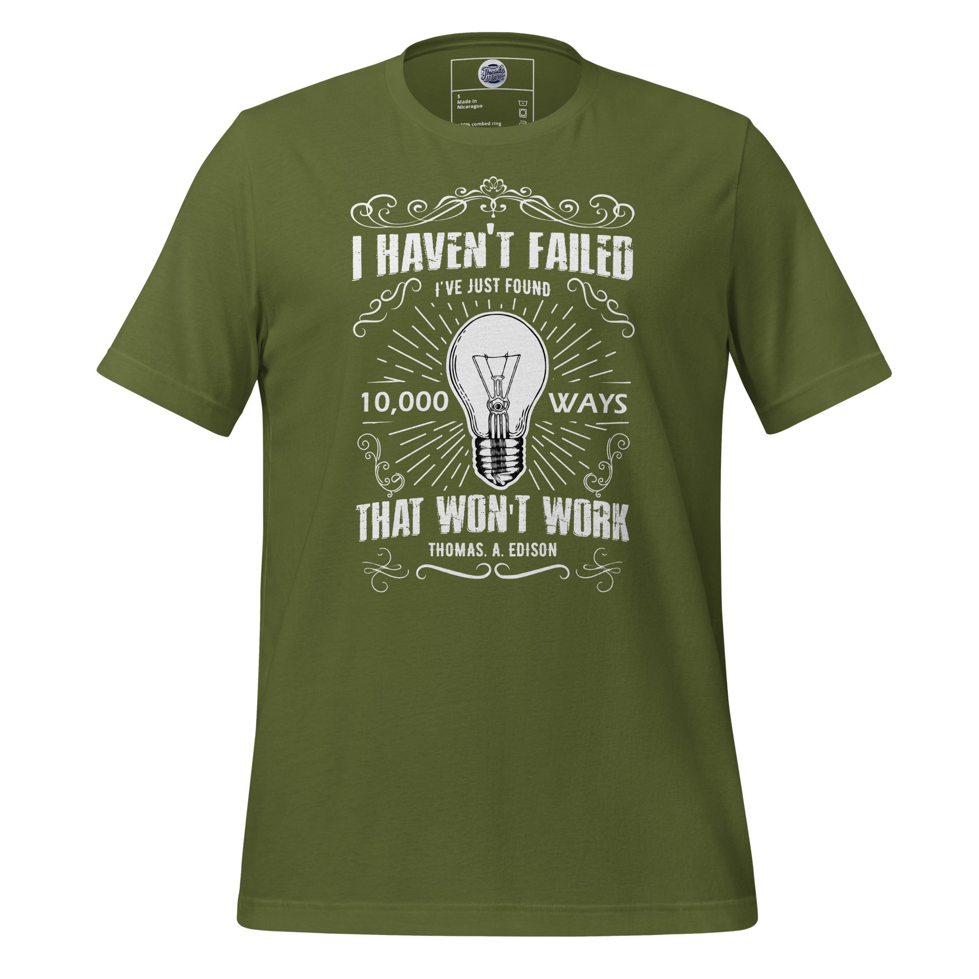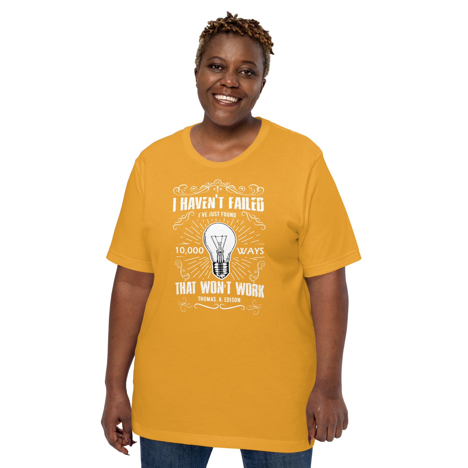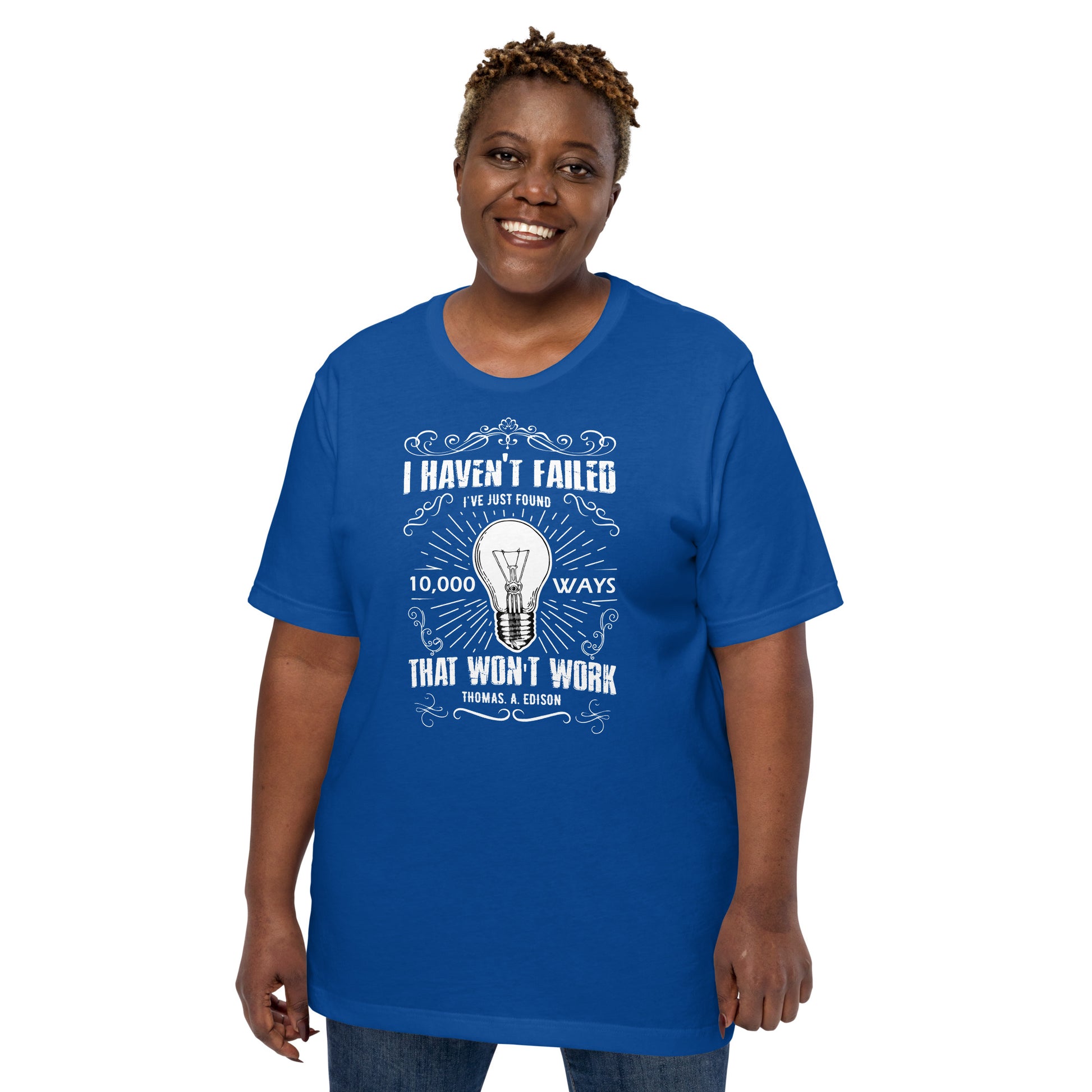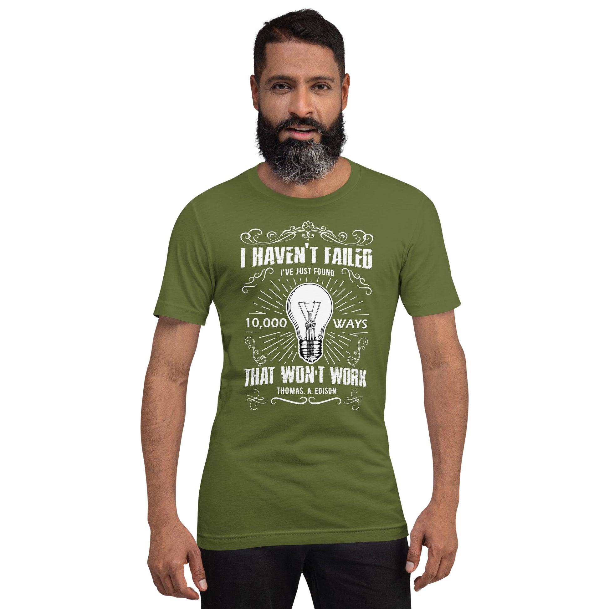 Ignite your wardrobe with the spark of perseverance with our "Edison's Epiphany" T-Shirt! This isn't just a tee, it's a wearable ode to trial and error, a beacon for the relentlessly determined. Adorn yourself in the wisdom of a man who knew that every 'oops' is a step towards a 'eureka!' Perfect for those brainstorming sessions, inventor’s workshops, or just lighting up the room with your presence. This t-shirt is everything you've dreamed of and more. It feels soft and lightweight, with the right amount of stretch. It's comfortable and flattering for all.