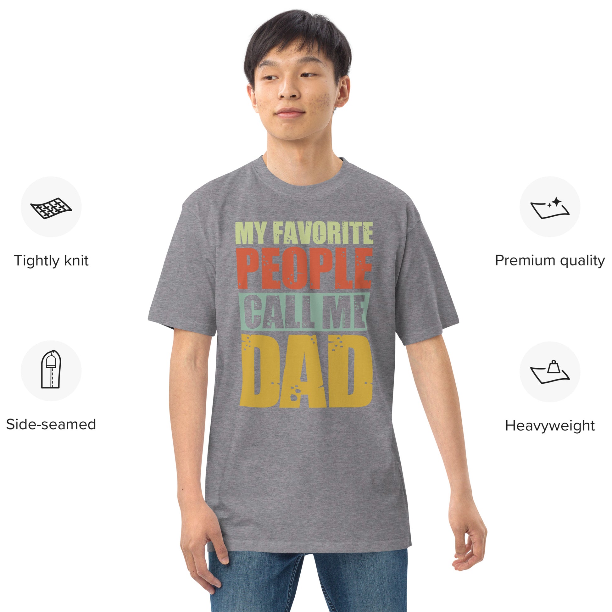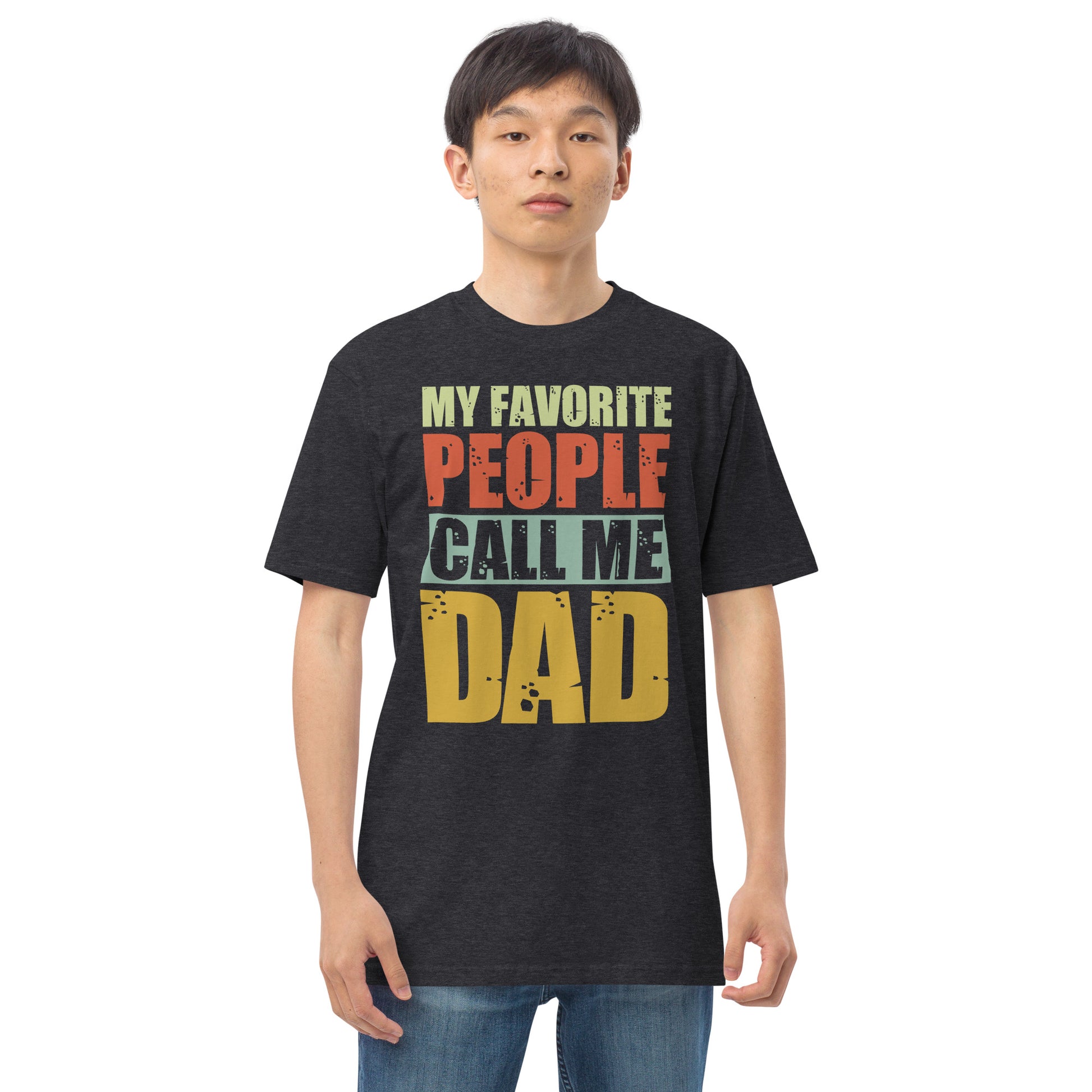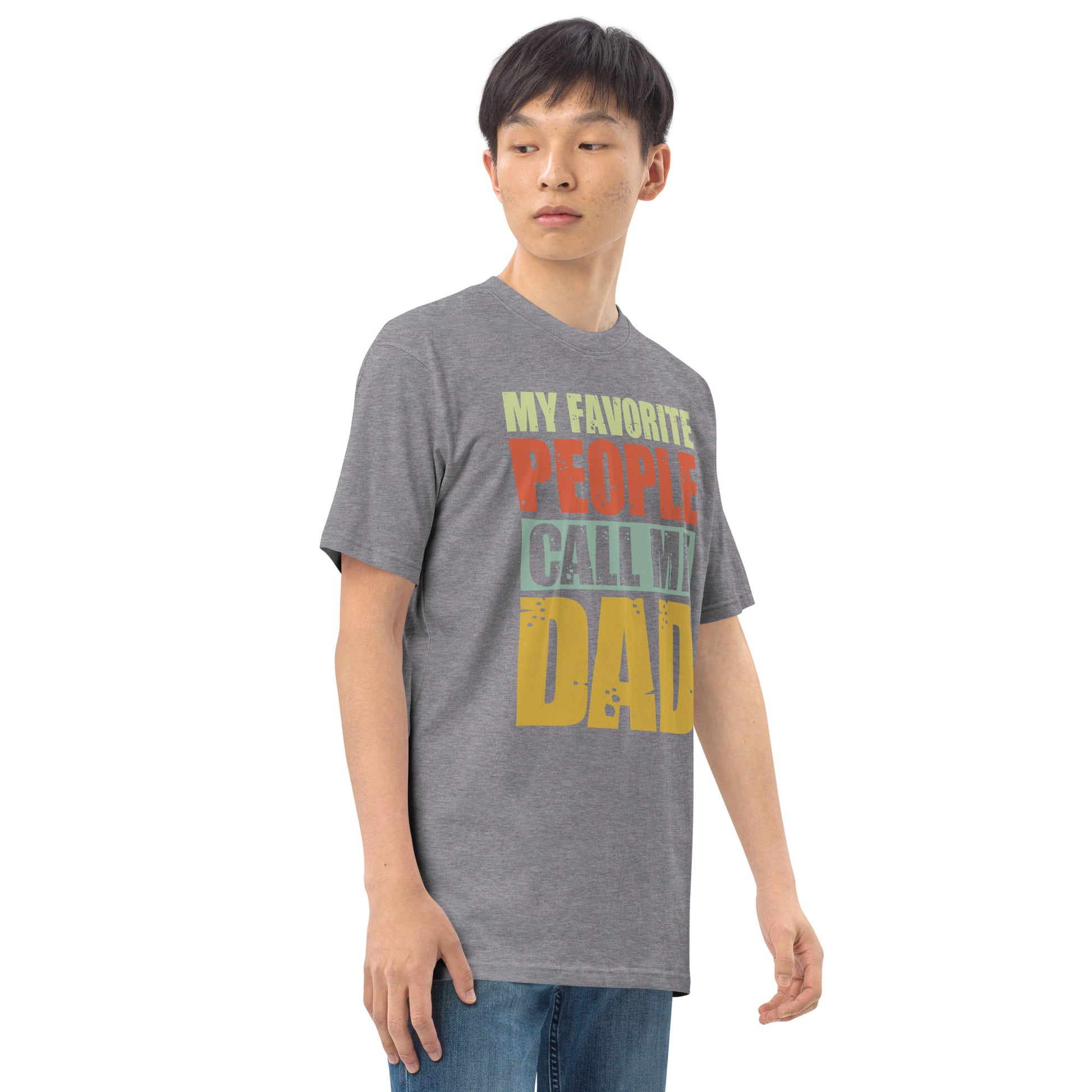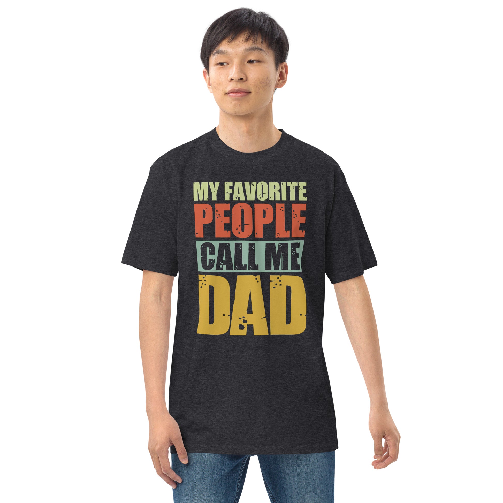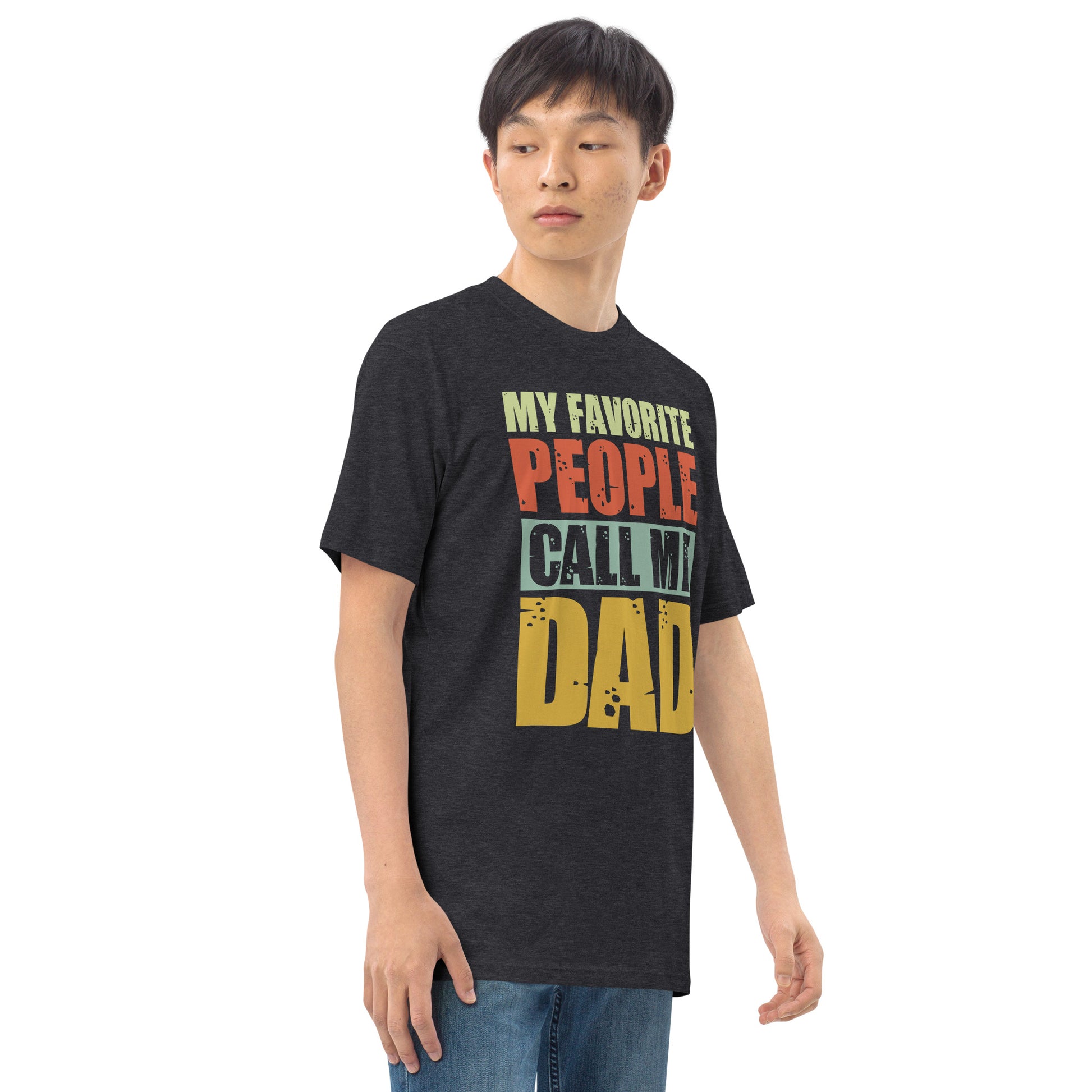 For the dad whose favorite people are his kids, this colorful and affectionate tee says it all. "My favorite people call me dad" – a sweet statement that's bound to warm hearts and invite smiles. Elevate your outfit with the men’s premium heavyweight tee. The tee has a structured, classy fit and is both durable and soft thanks to its ring-spun cotton material. Layer the t-shirt or wear it on its own and enjoy great looks with little effort!