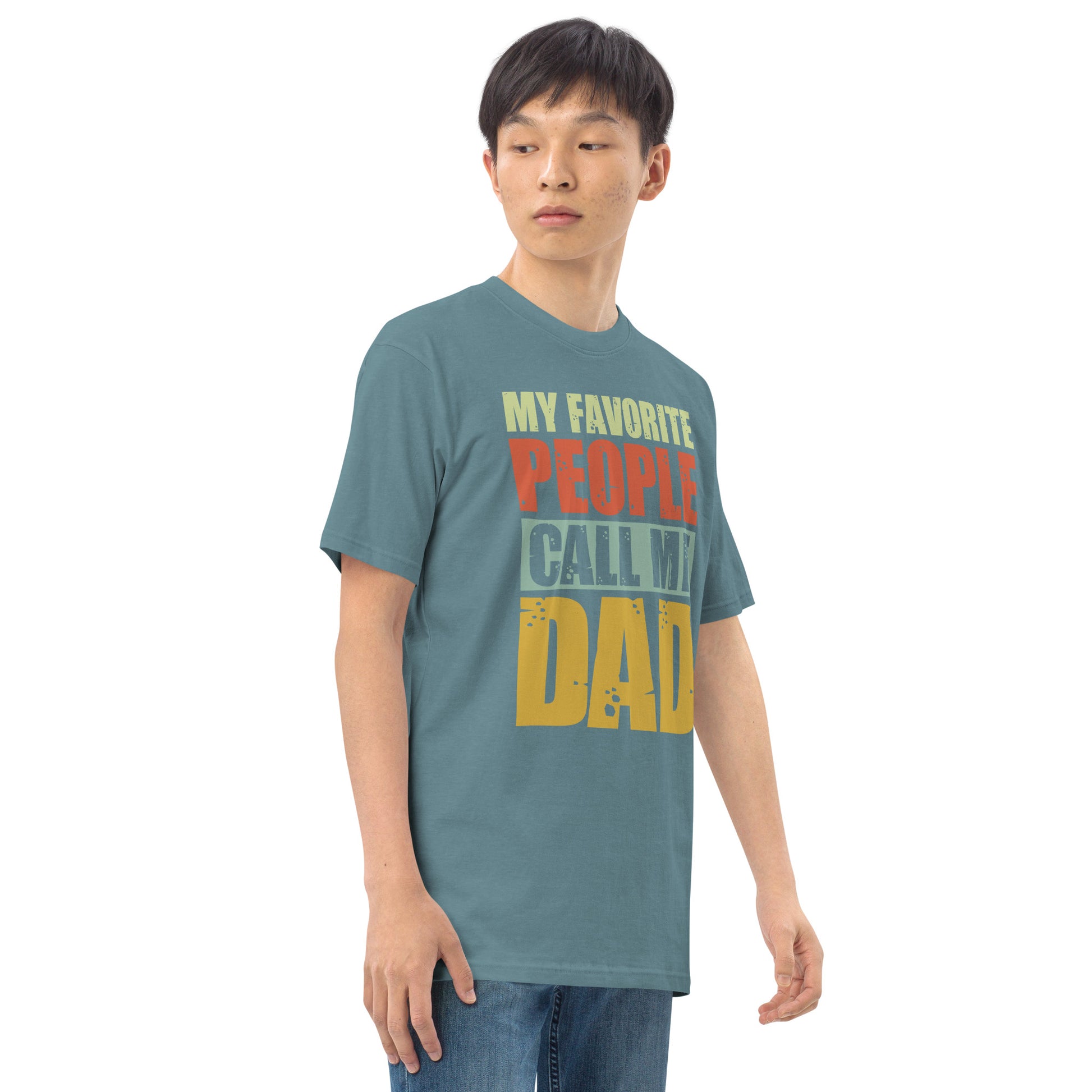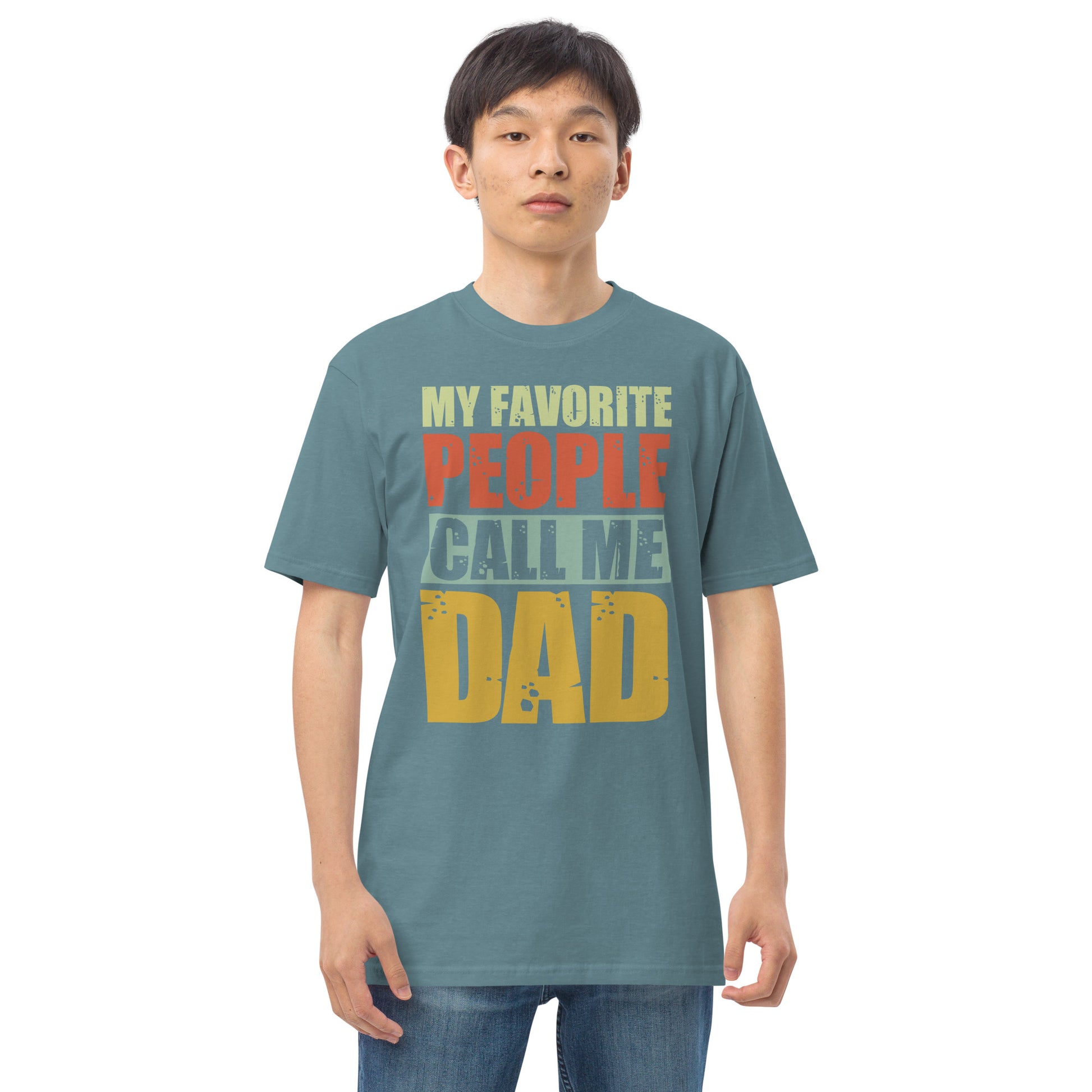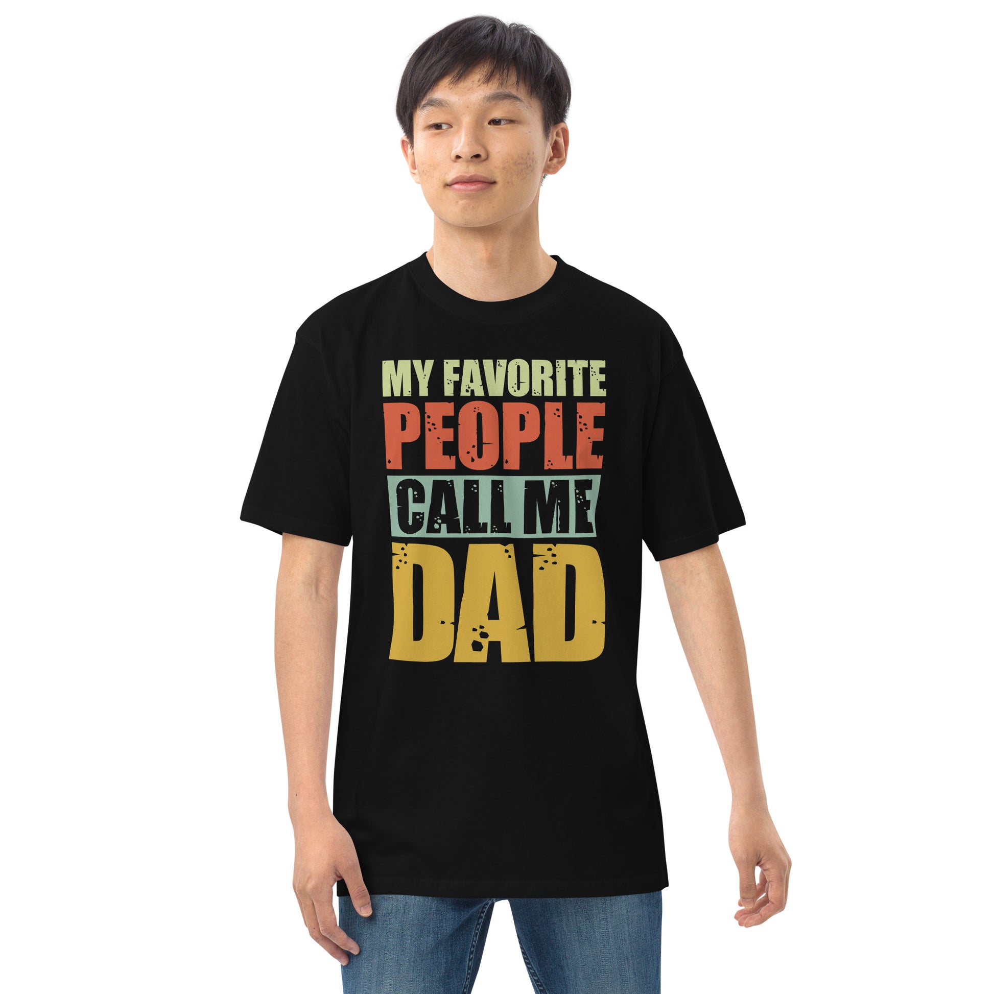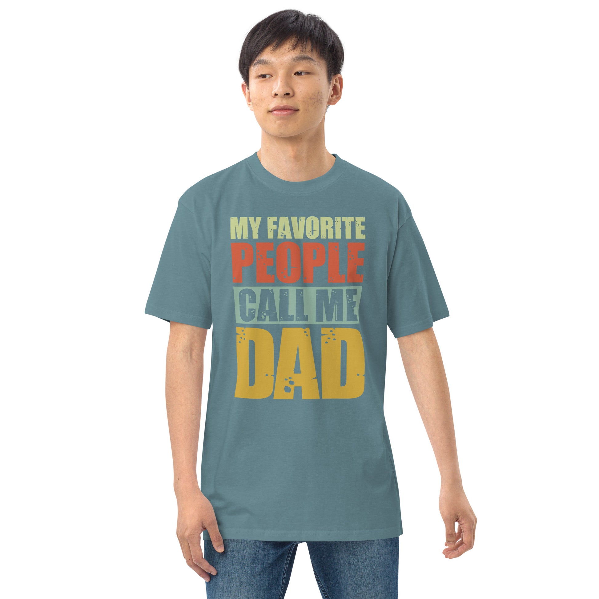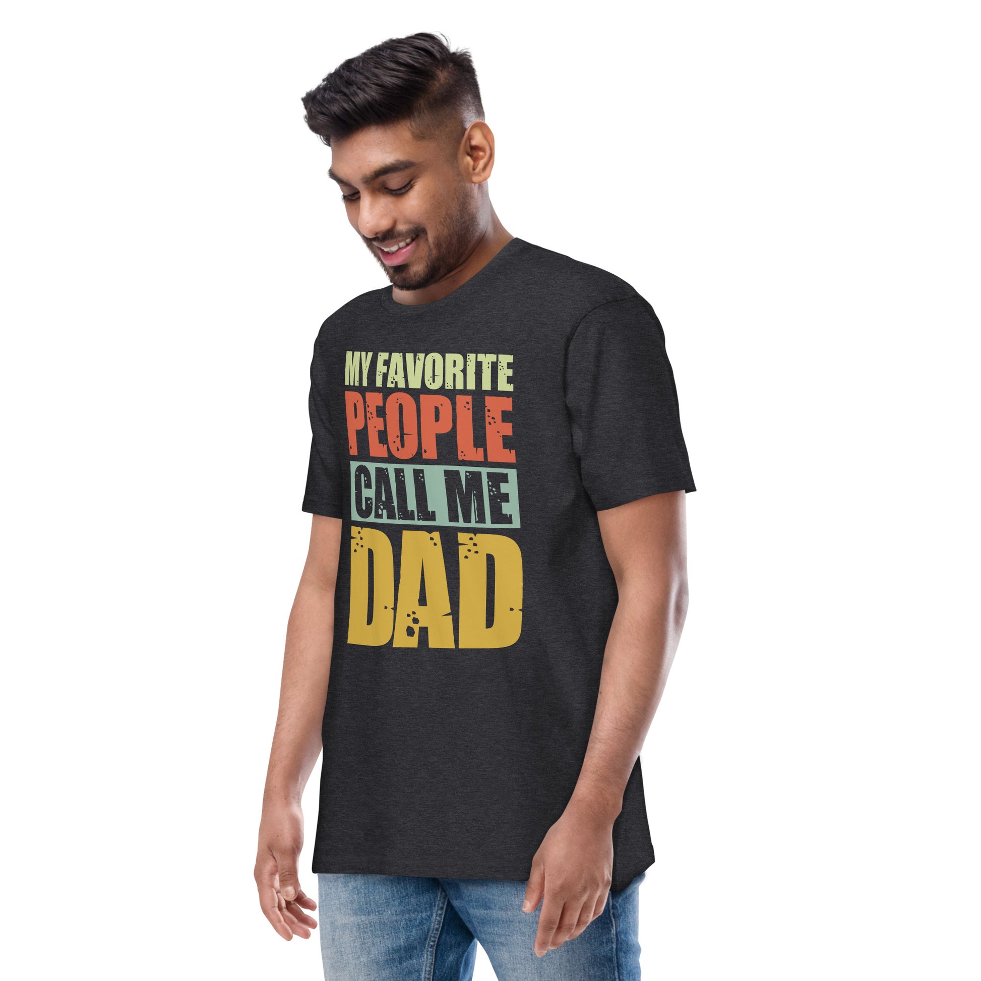 For the dad whose favorite people are his kids, this colorful and affectionate tee says it all. "My favorite people call me dad" – a sweet statement that's bound to warm hearts and invite smiles. Elevate your outfit with the men’s premium heavyweight tee. The tee has a structured, classy fit and is both durable and soft thanks to its ring-spun cotton material. Layer the t-shirt or wear it on its own and enjoy great looks with little effort!