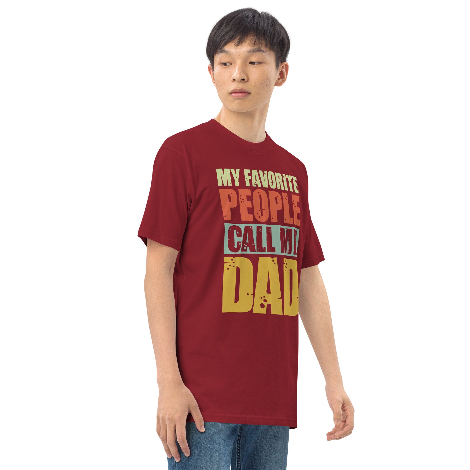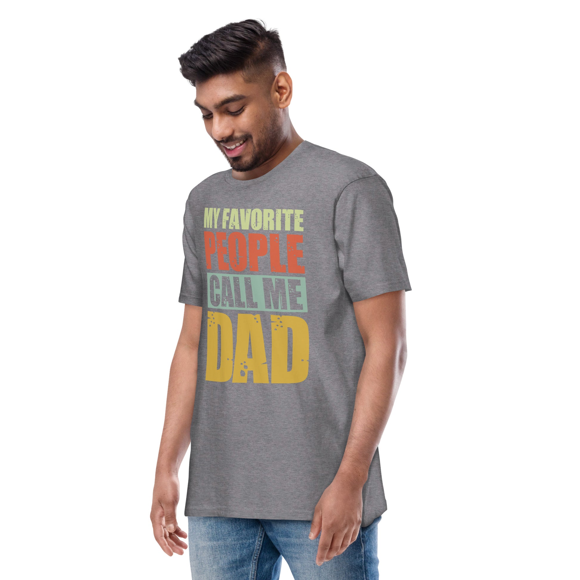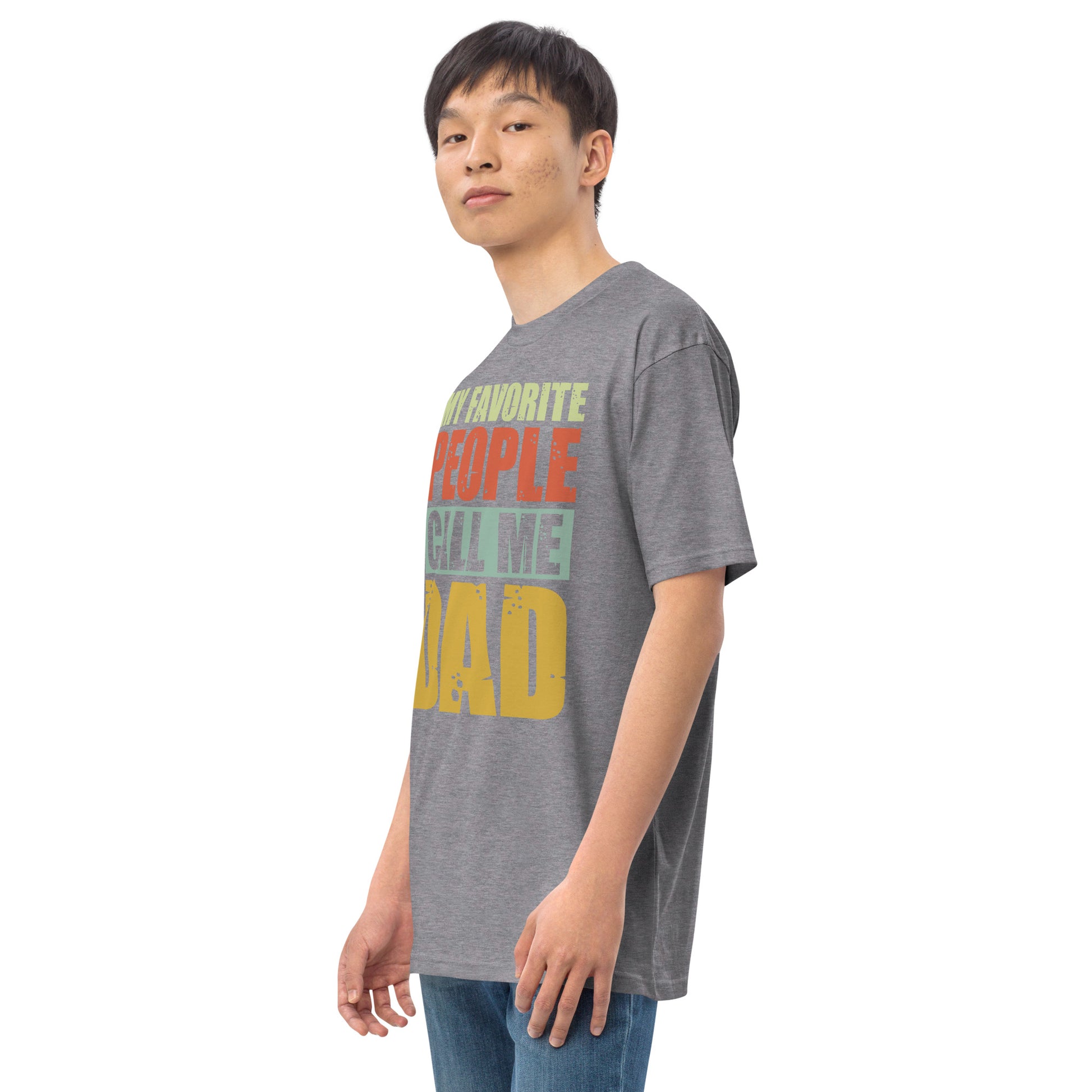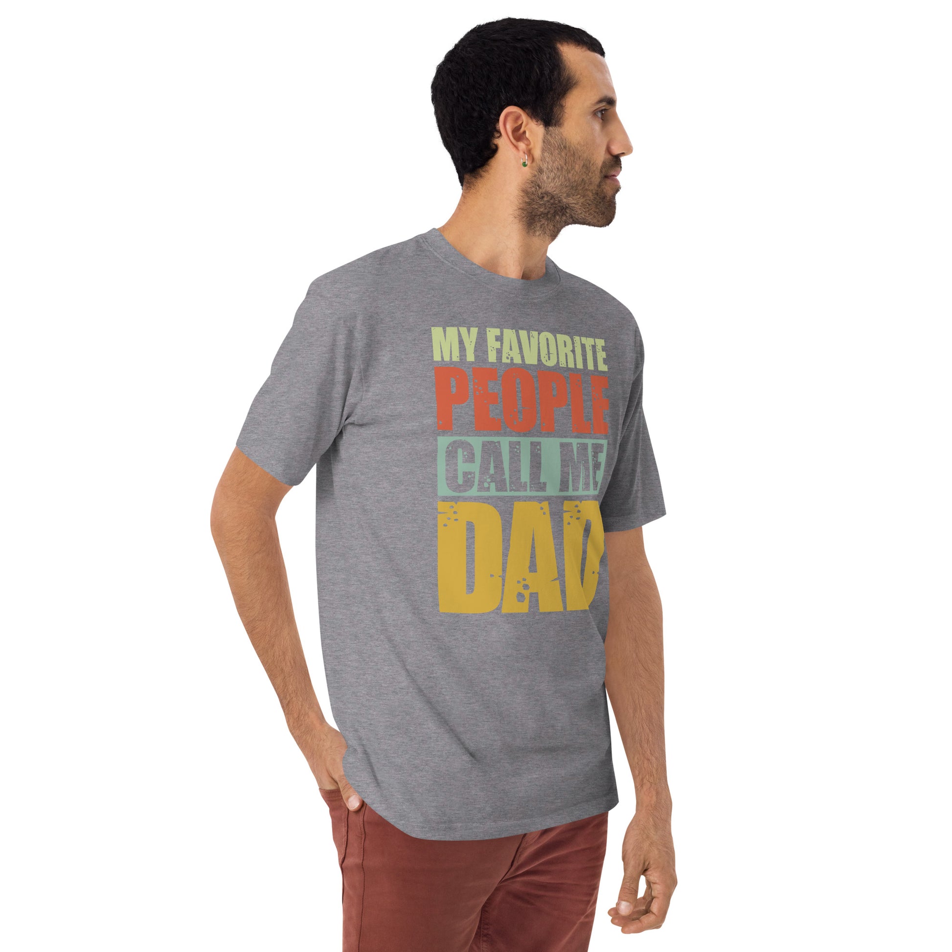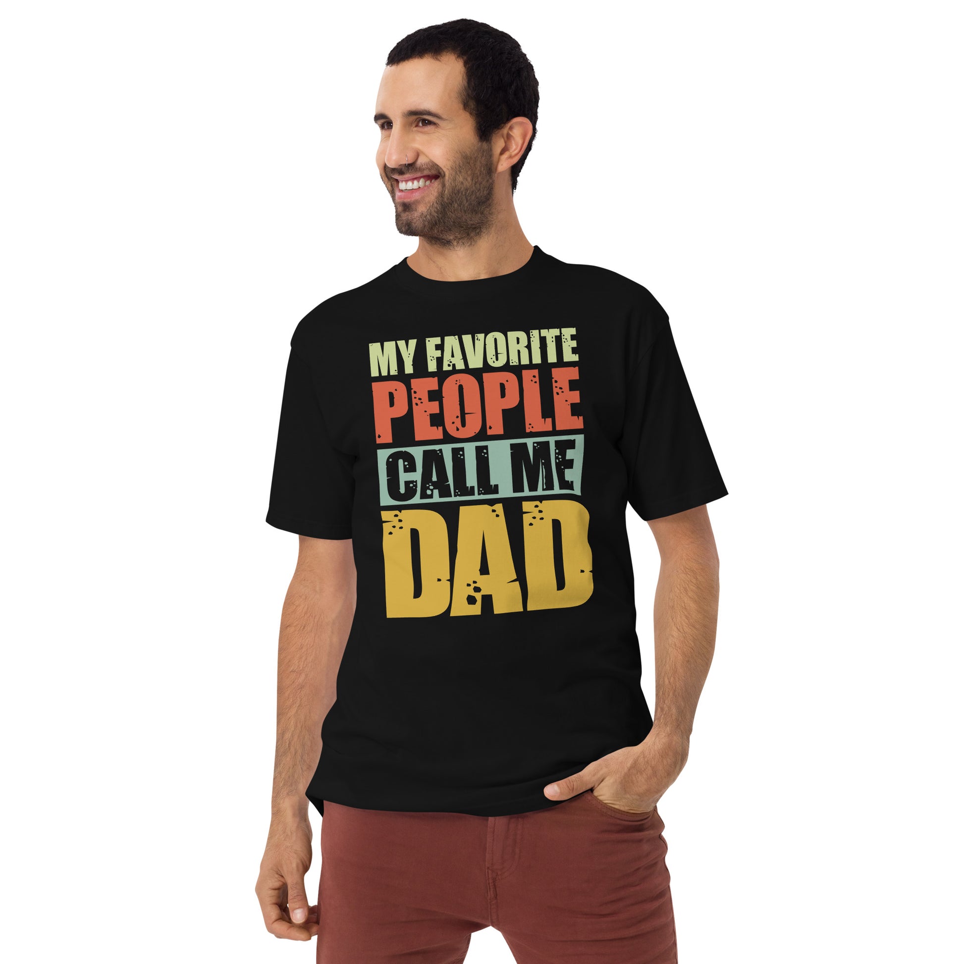 For the dad whose favorite people are his kids, this colorful and affectionate tee says it all. "My favorite people call me dad" – a sweet statement that's bound to warm hearts and invite smiles. Elevate your outfit with the men’s premium heavyweight tee. The tee has a structured, classy fit and is both durable and soft thanks to its ring-spun cotton material. Layer the t-shirt or wear it on its own and enjoy great looks with little effort!
