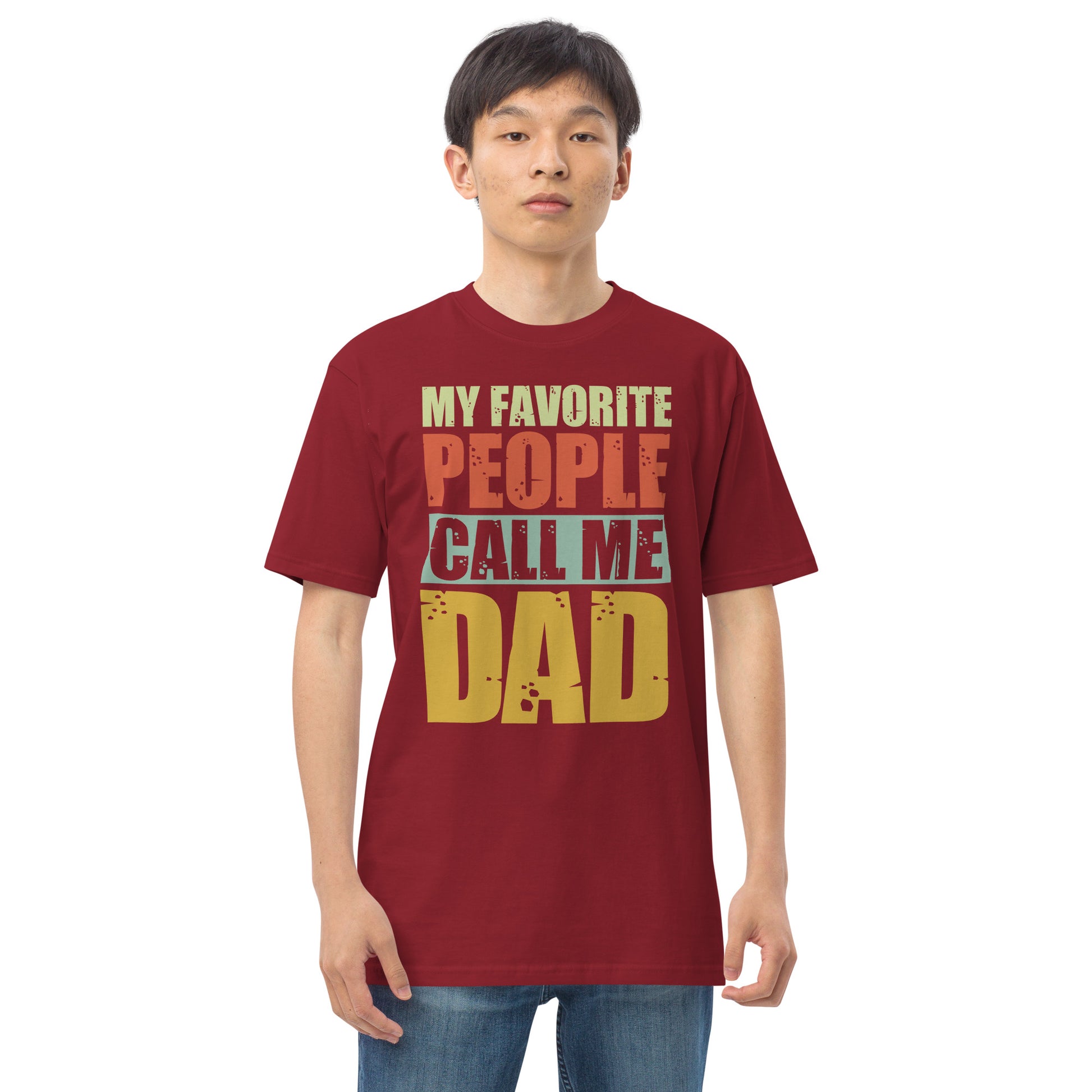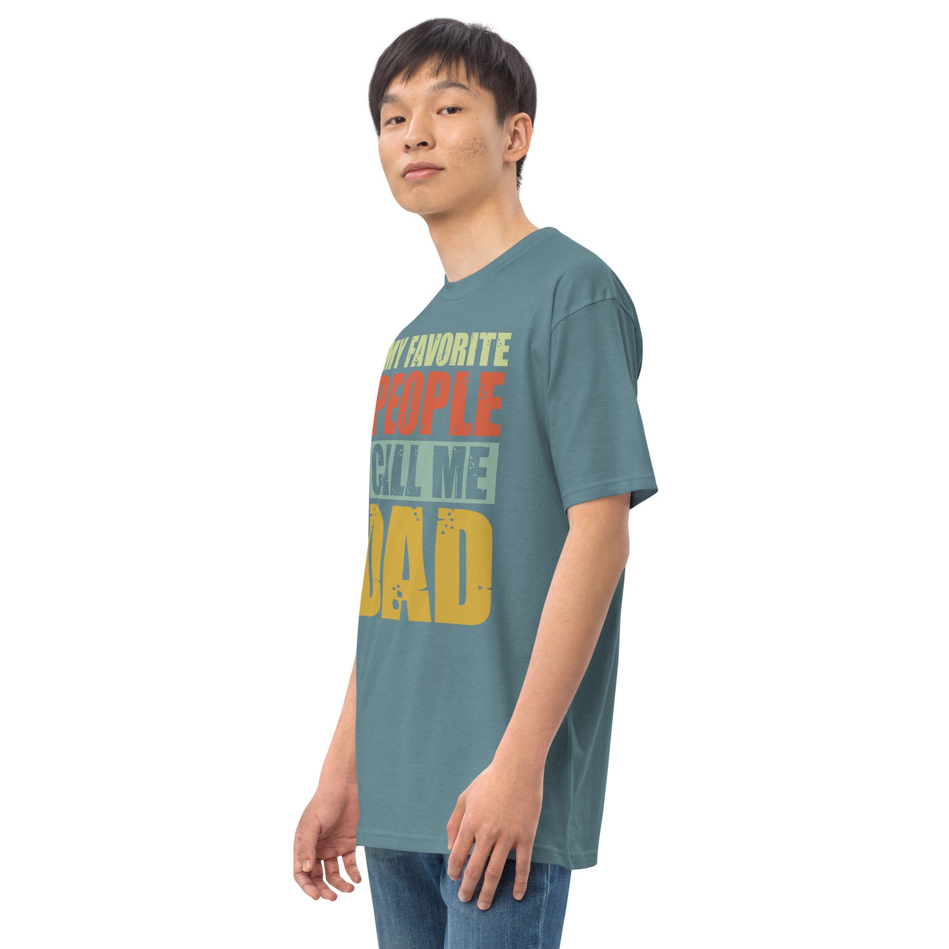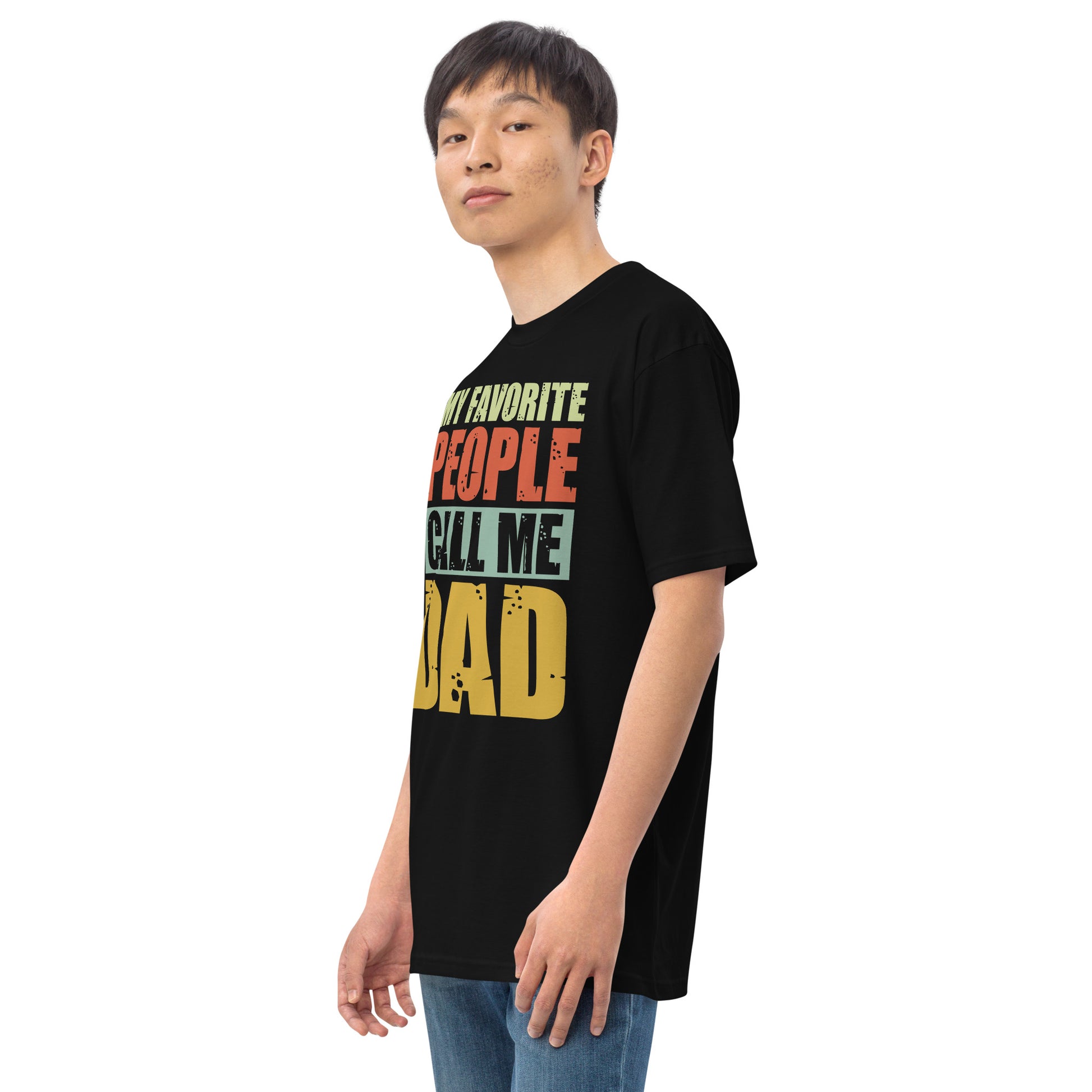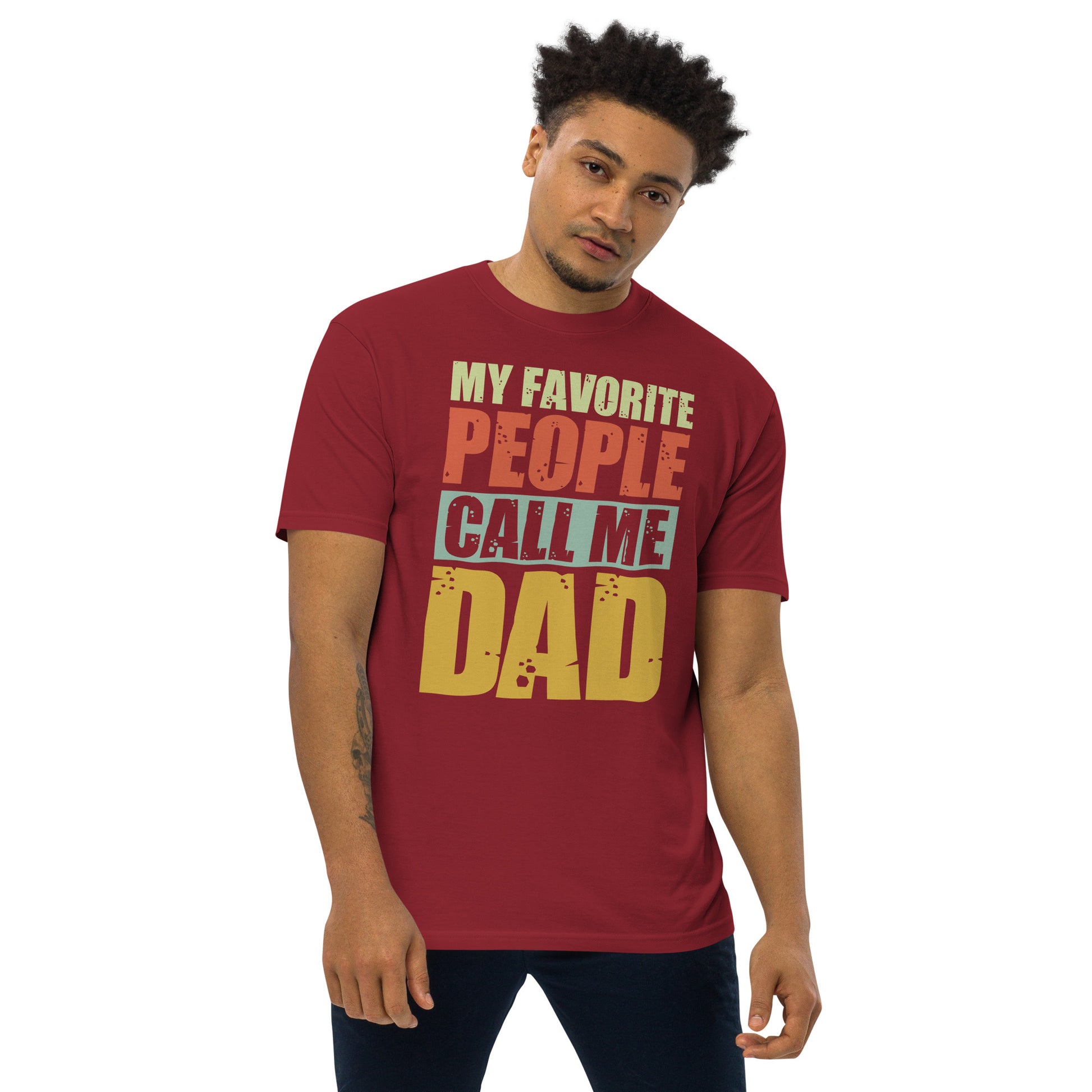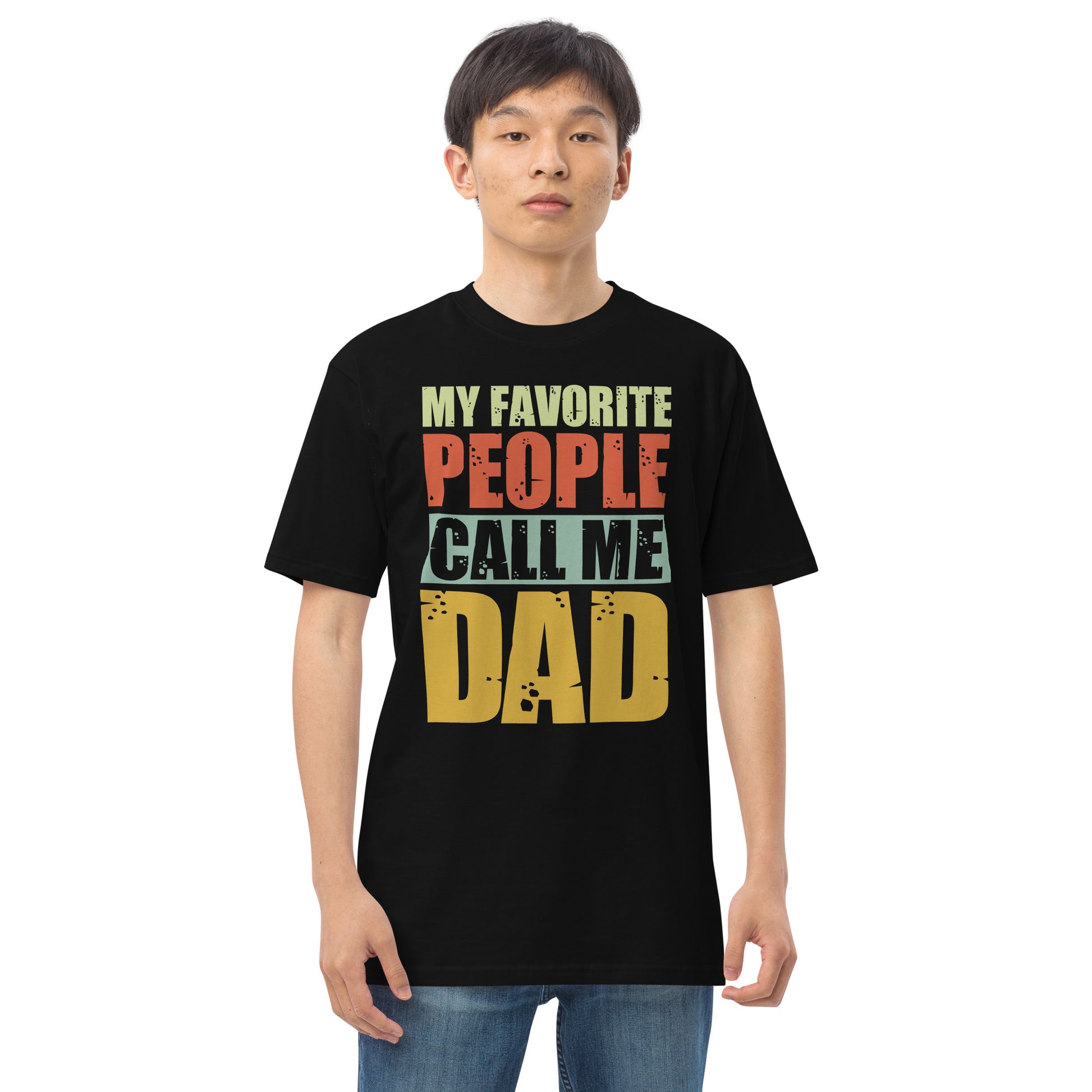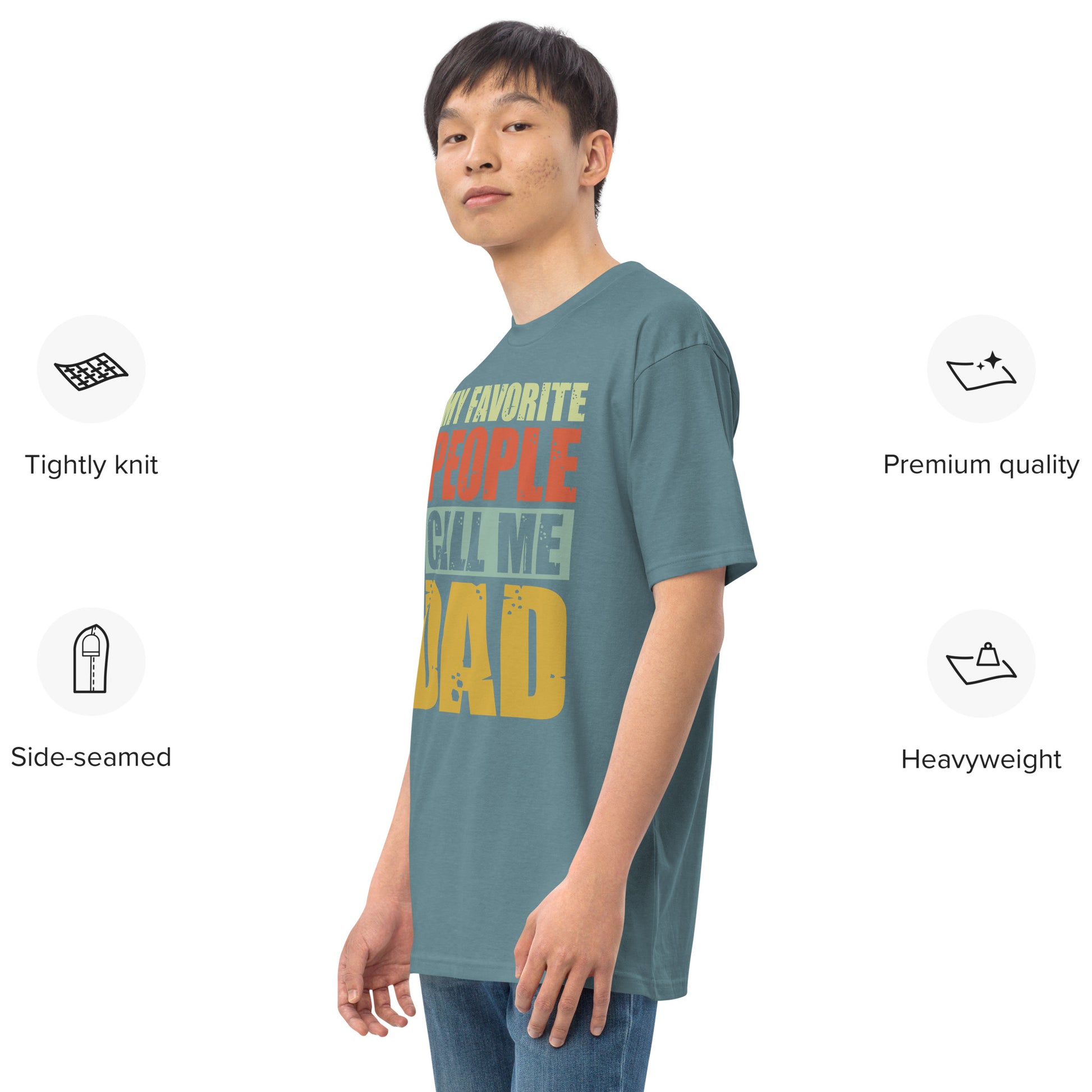 For the dad whose favorite people are his kids, this colorful and affectionate tee says it all. "My favorite people call me dad" – a sweet statement that's bound to warm hearts and invite smiles. Elevate your outfit with the men’s premium heavyweight tee. The tee has a structured, classy fit and is both durable and soft thanks to its ring-spun cotton material. Layer the t-shirt or wear it on its own and enjoy great looks with little effort!