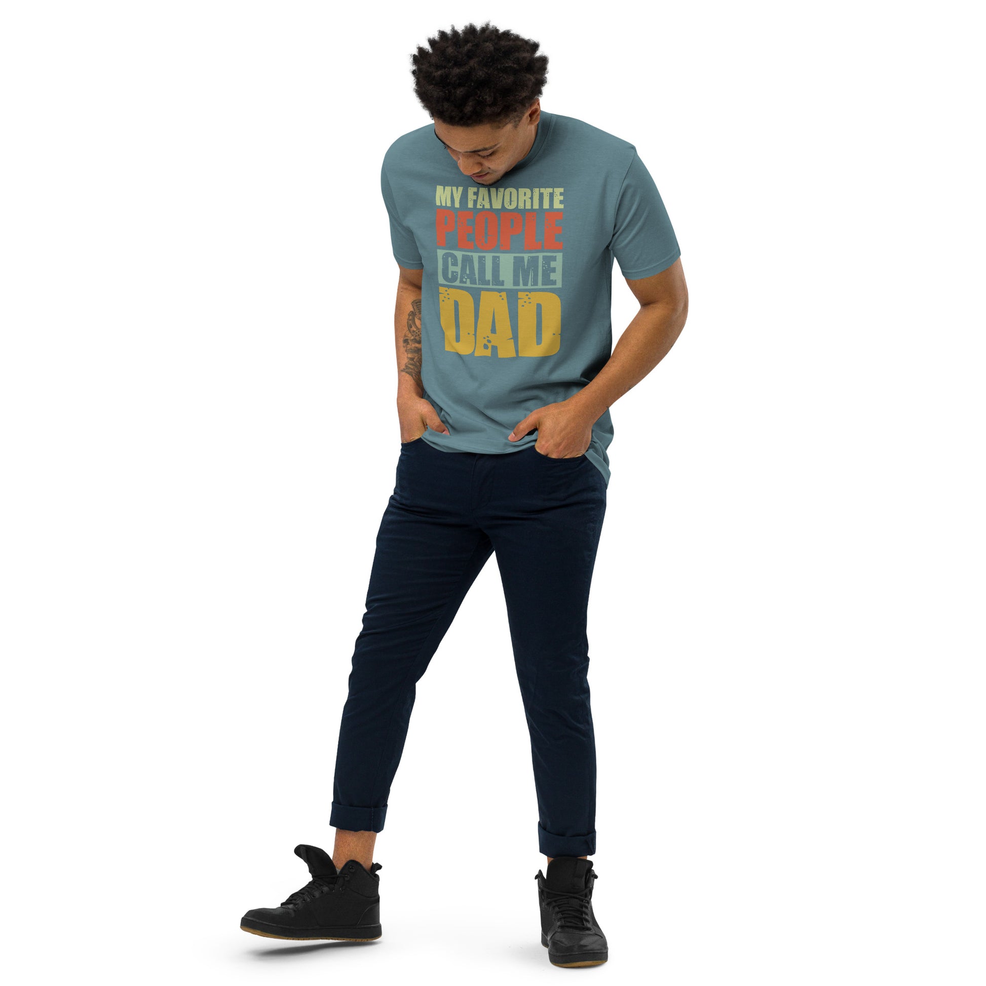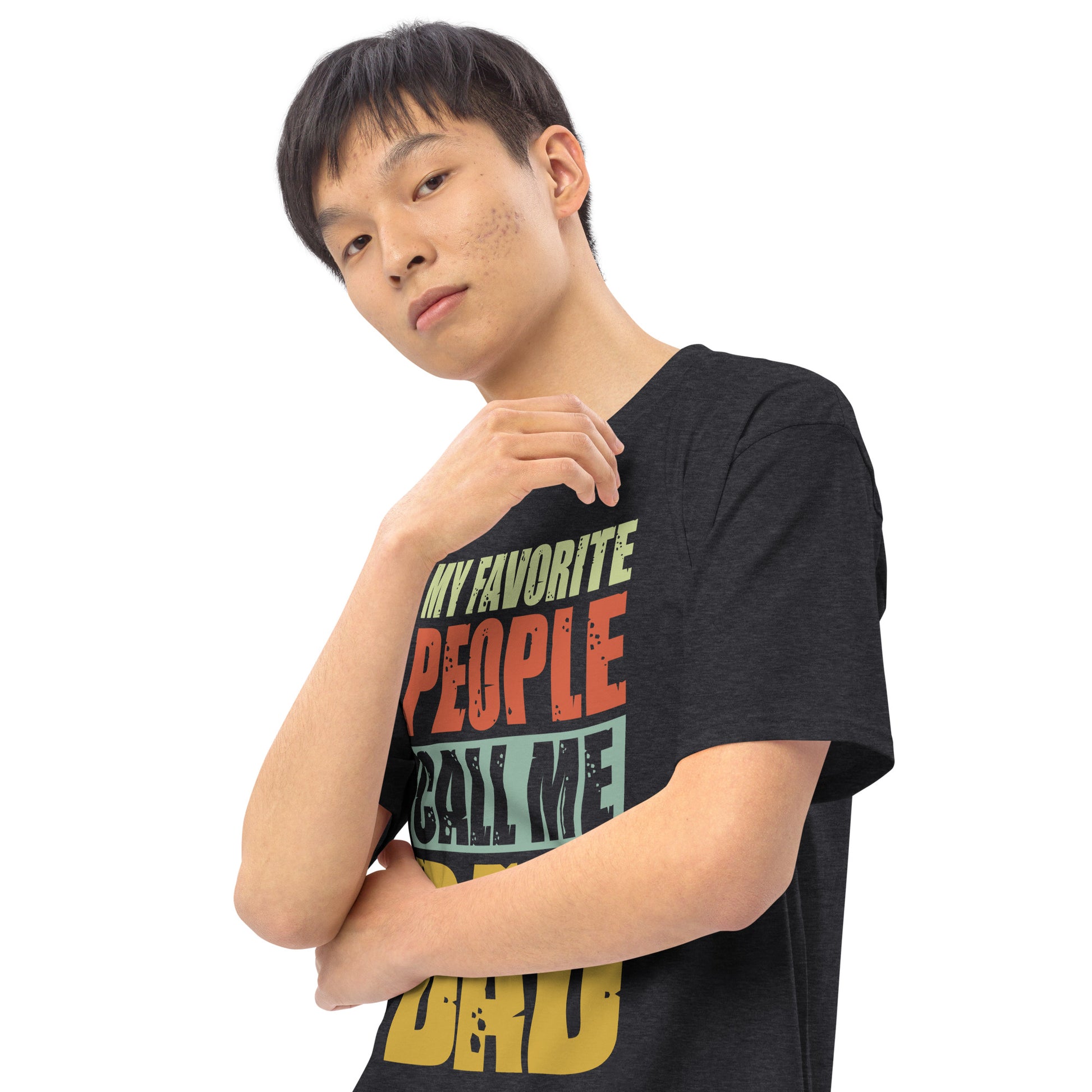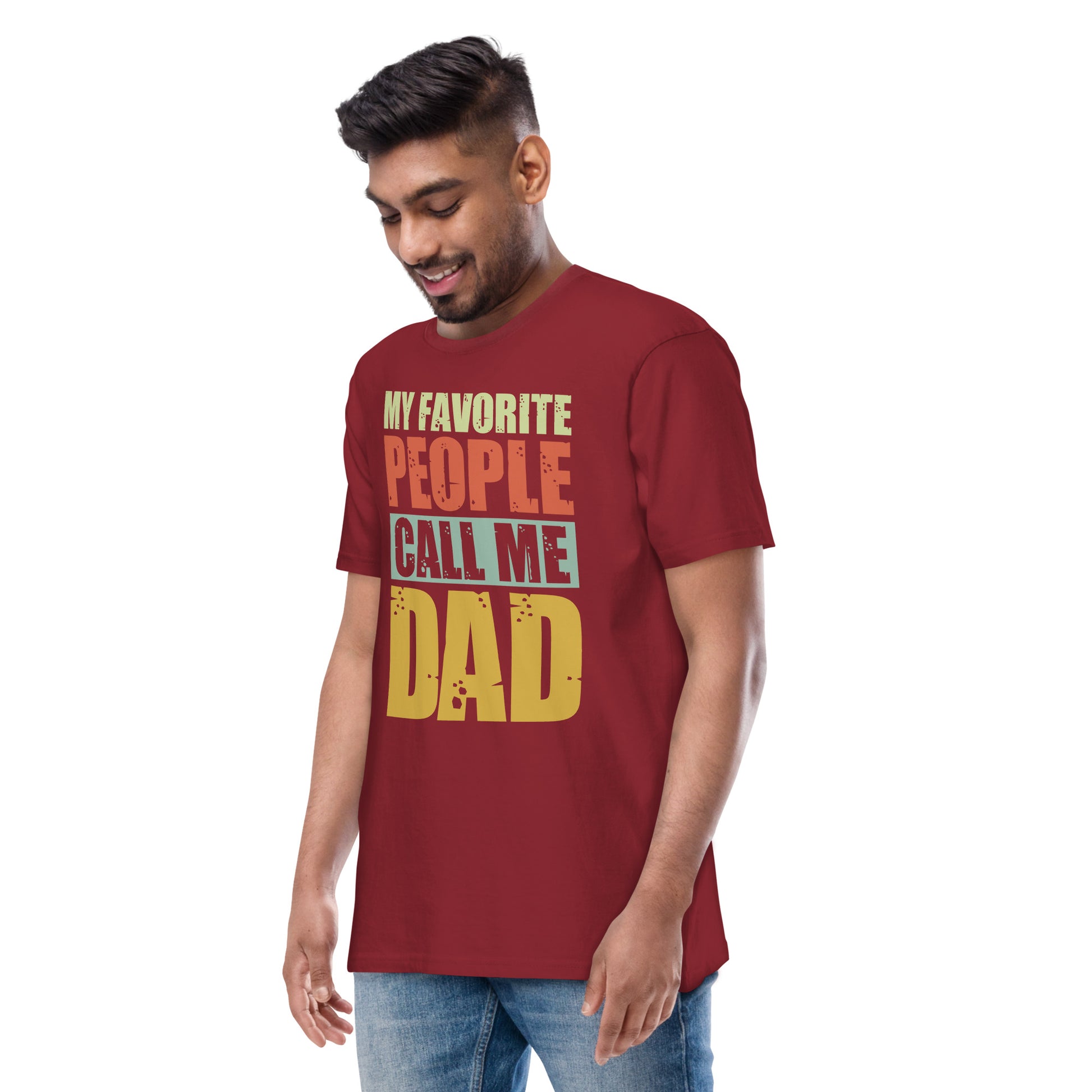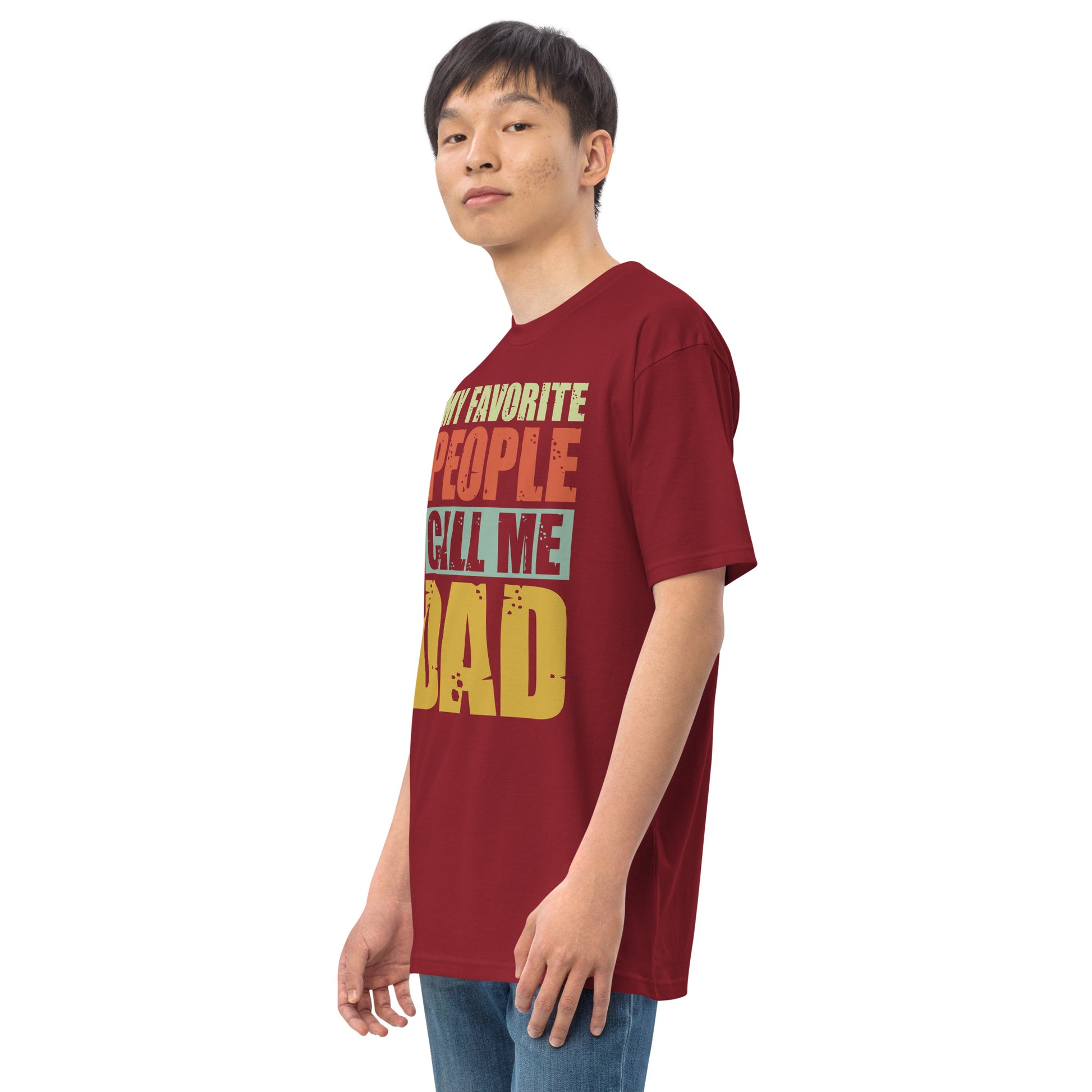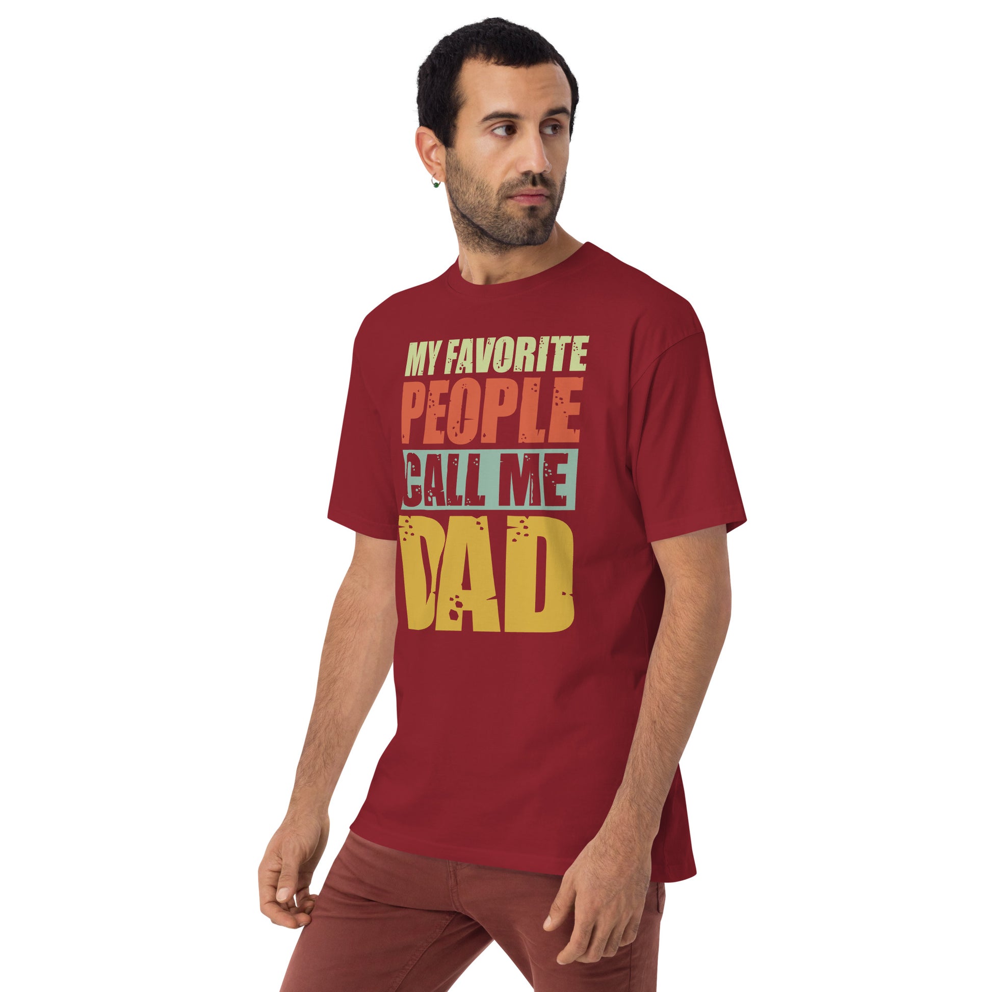For the dad whose favorite people are his kids, this colorful and affectionate tee says it all. "My favorite people call me dad" – a sweet statement that's bound to warm hearts and invite smiles. Elevate your outfit with the men’s premium heavyweight tee. The tee has a structured, classy fit and is both durable and soft thanks to its ring-spun cotton material. Layer the t-shirt or wear it on its own and enjoy great looks with little effort!