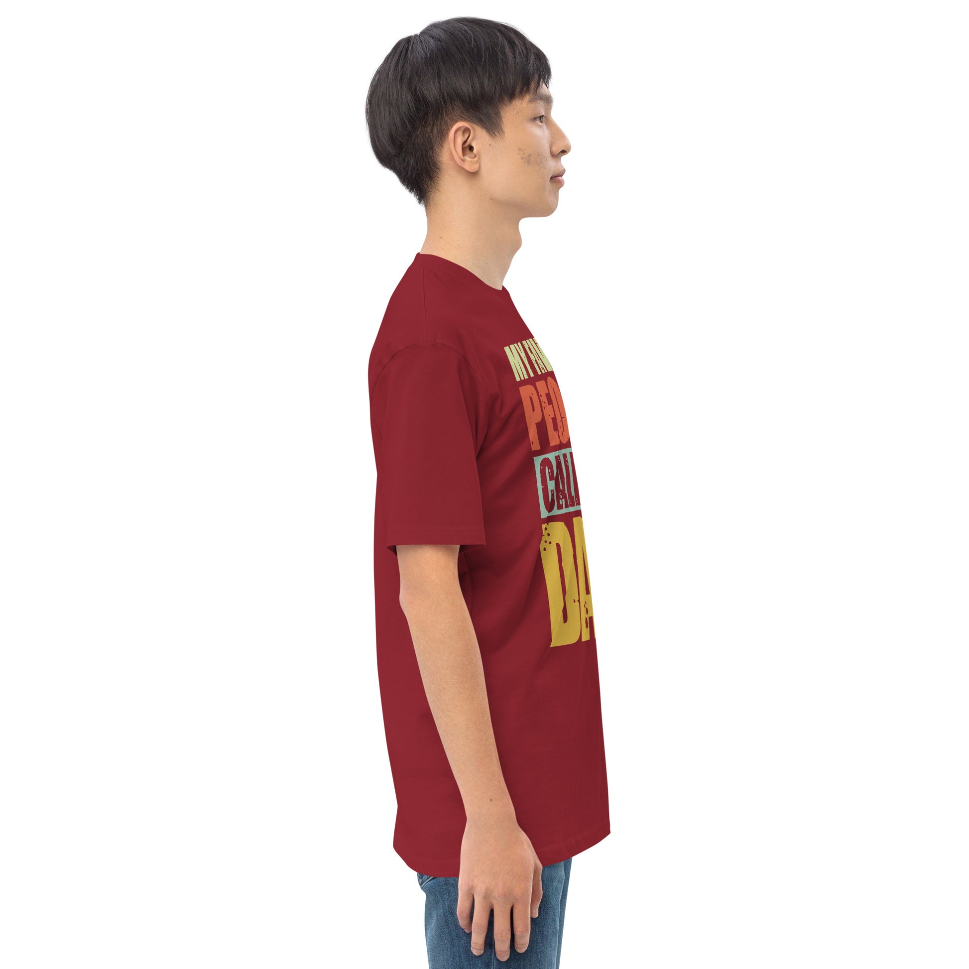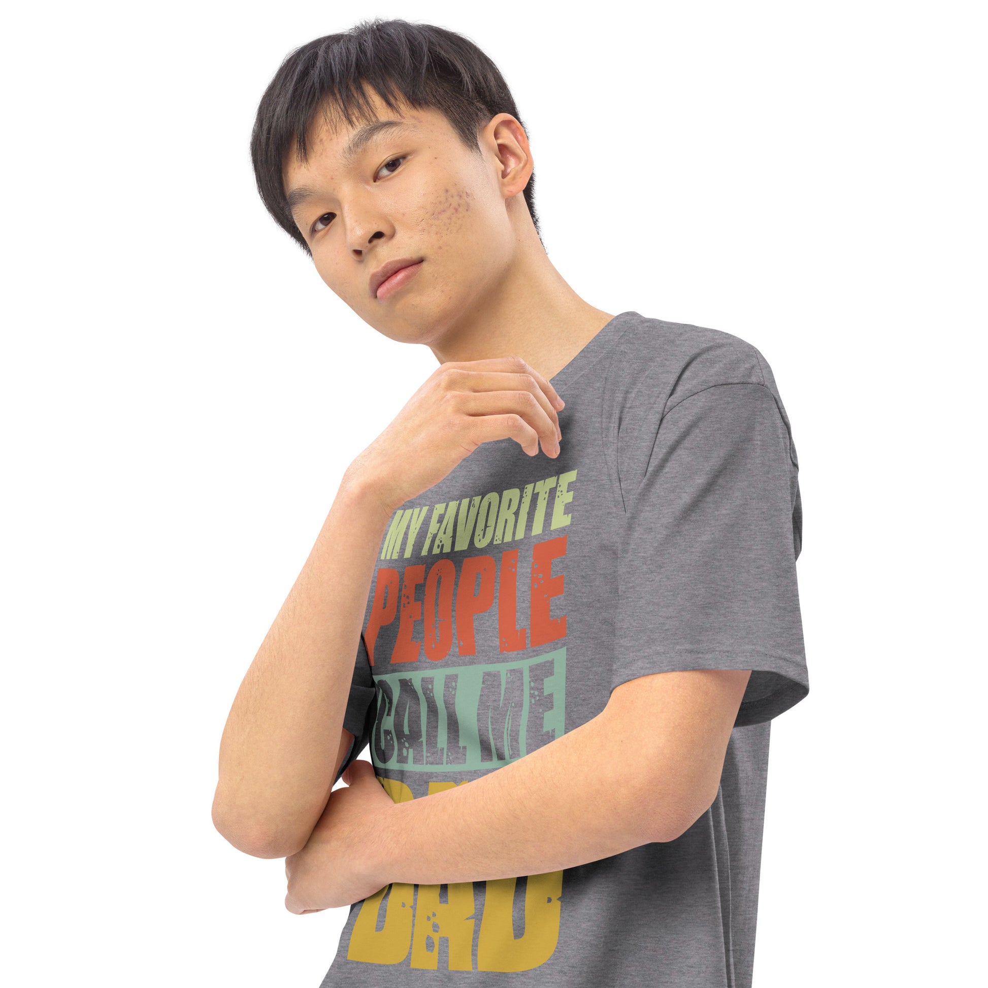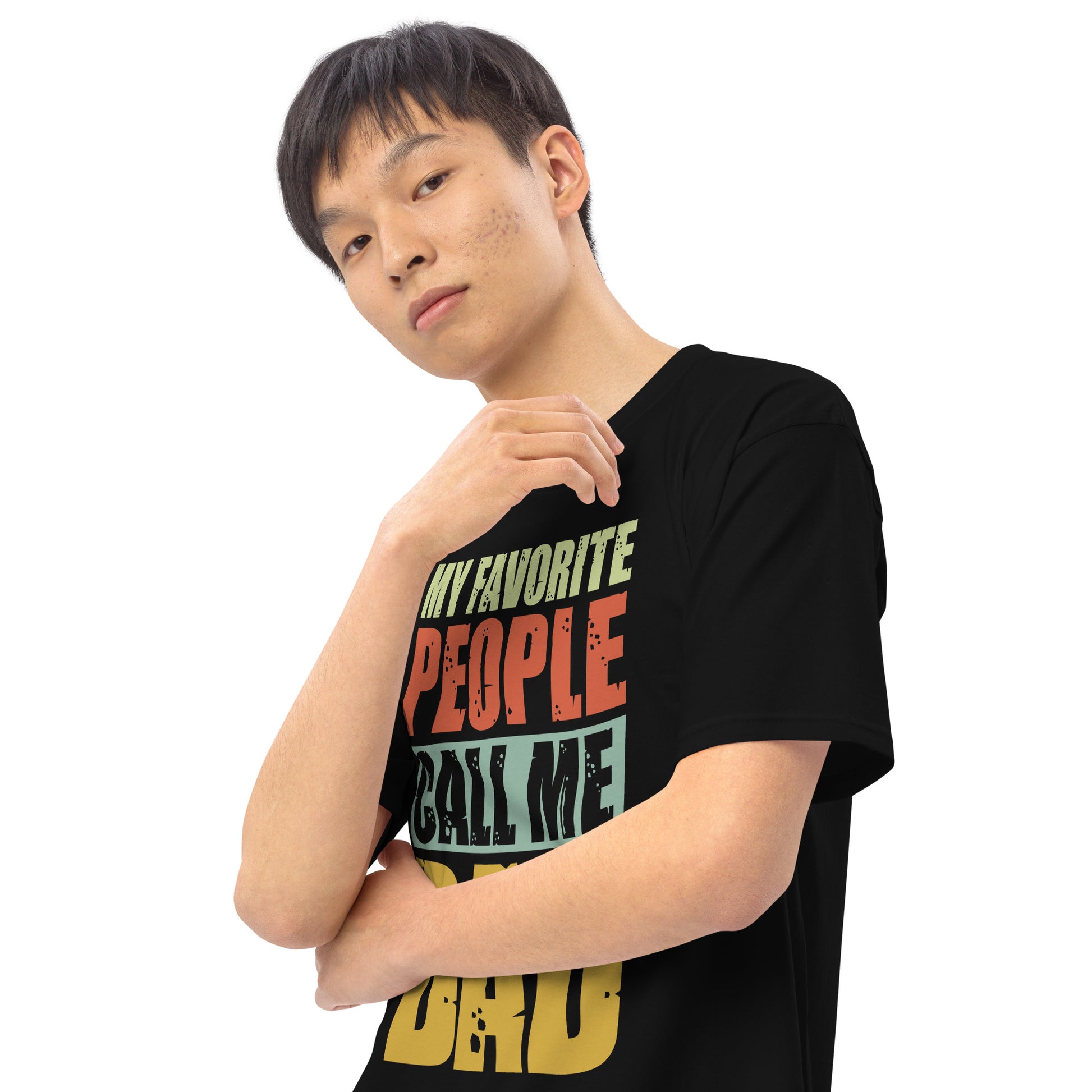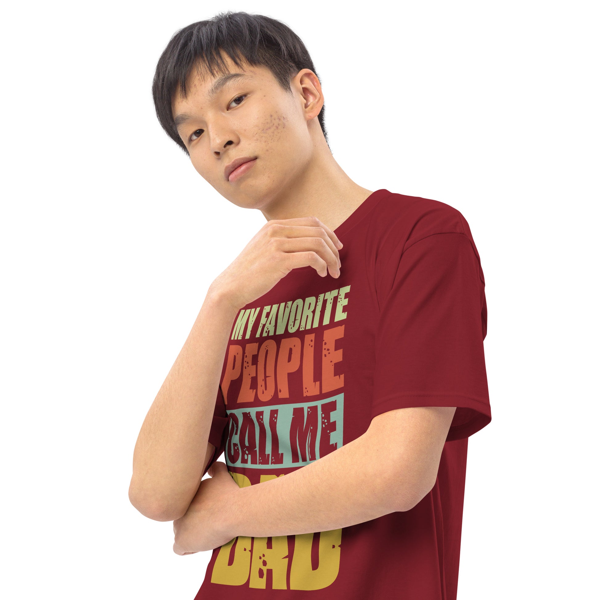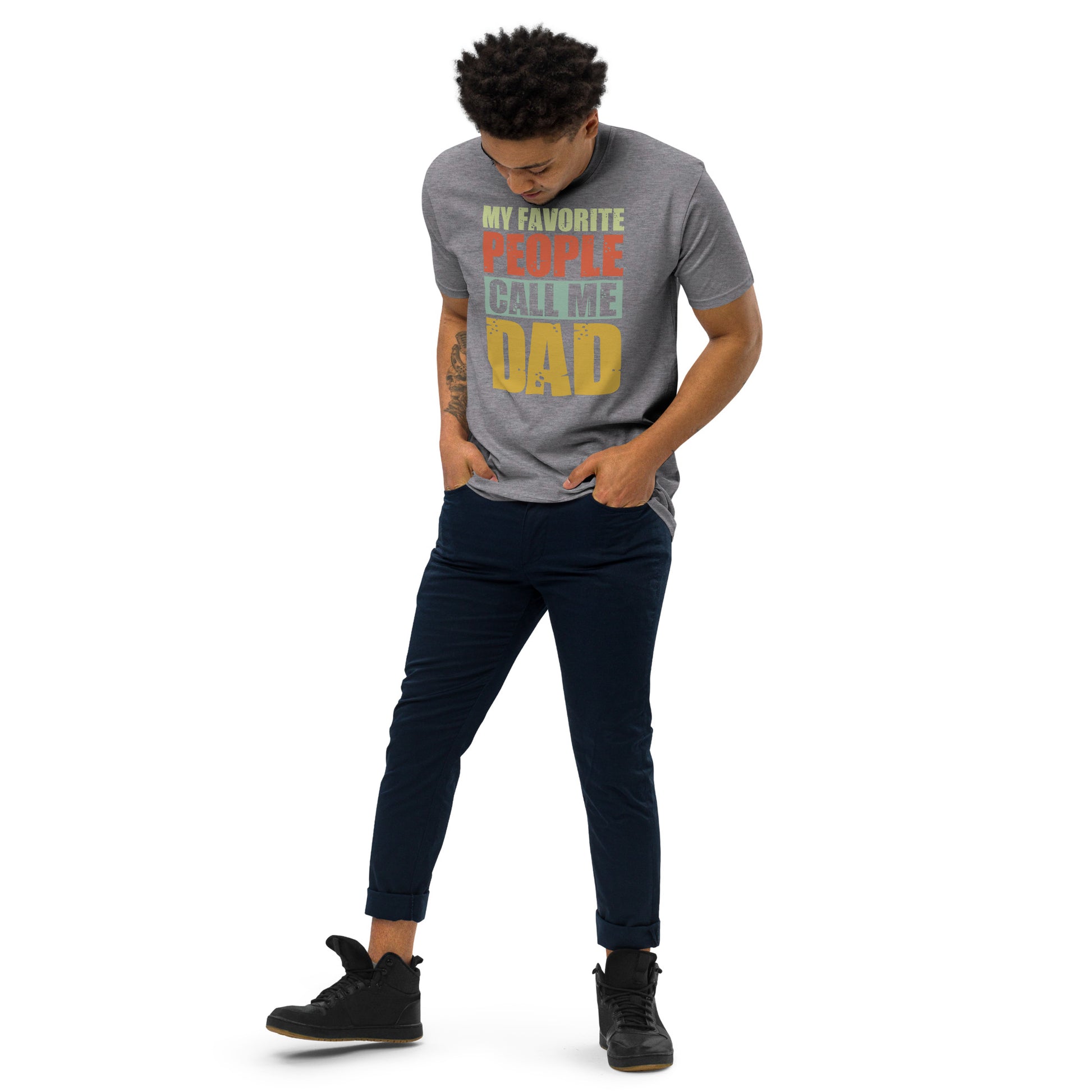 For the dad whose favorite people are his kids, this colorful and affectionate tee says it all. "My favorite people call me dad" – a sweet statement that's bound to warm hearts and invite smiles. Elevate your outfit with the men’s premium heavyweight tee. The tee has a structured, classy fit and is both durable and soft thanks to its ring-spun cotton material. Layer the t-shirt or wear it on its own and enjoy great looks with little effort!