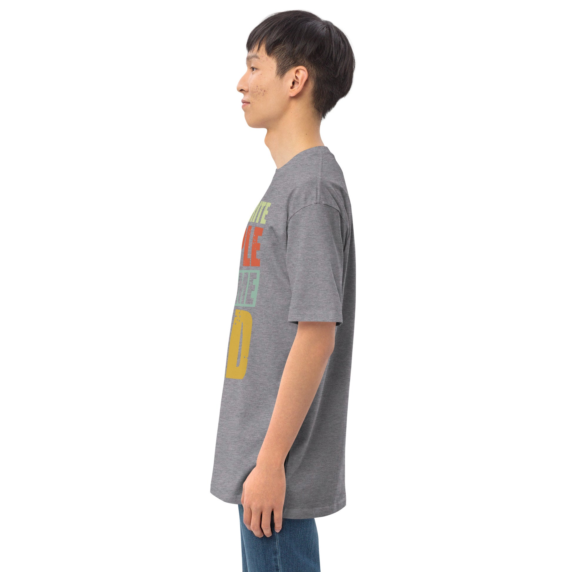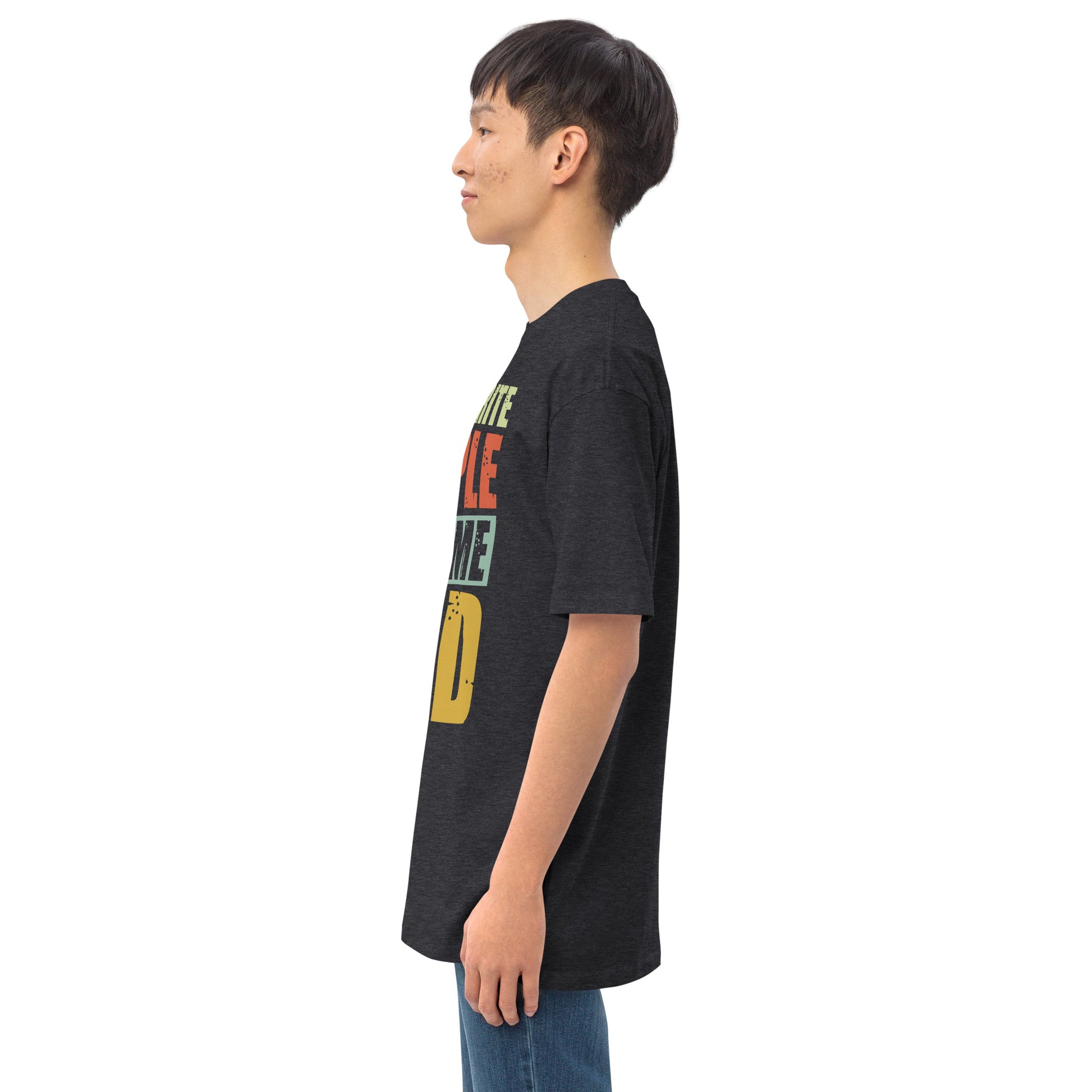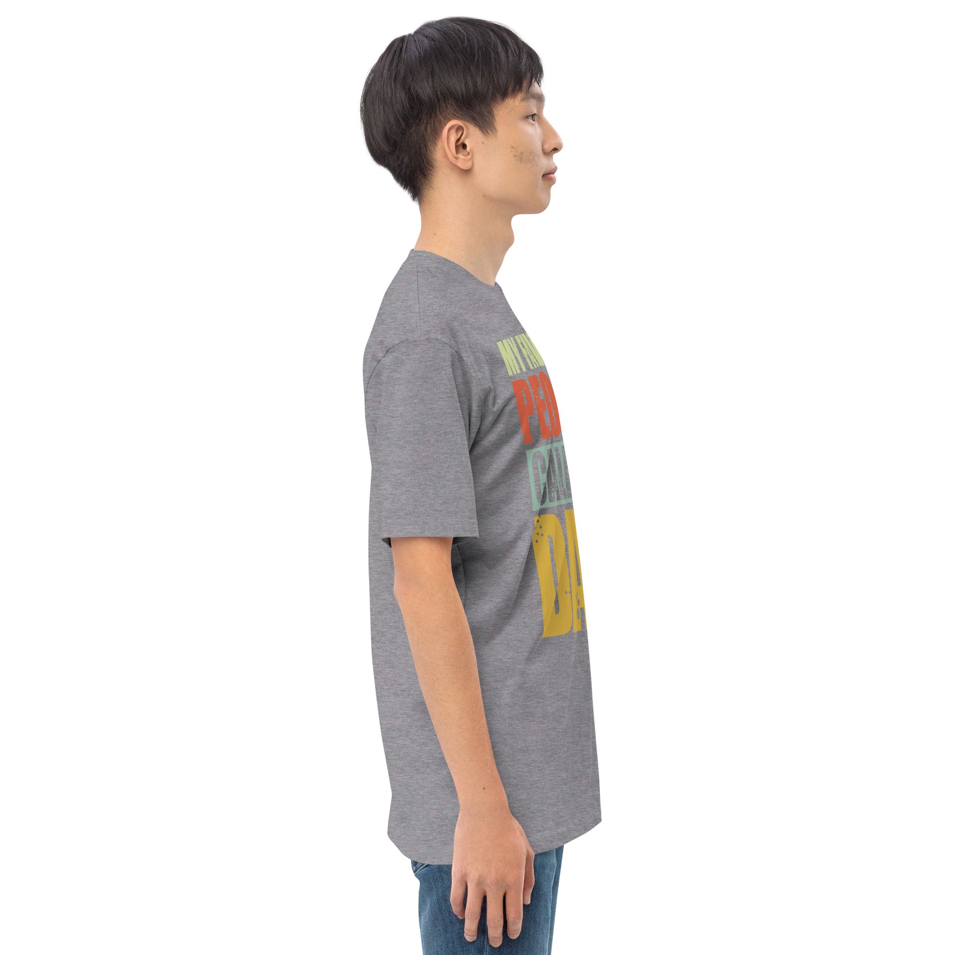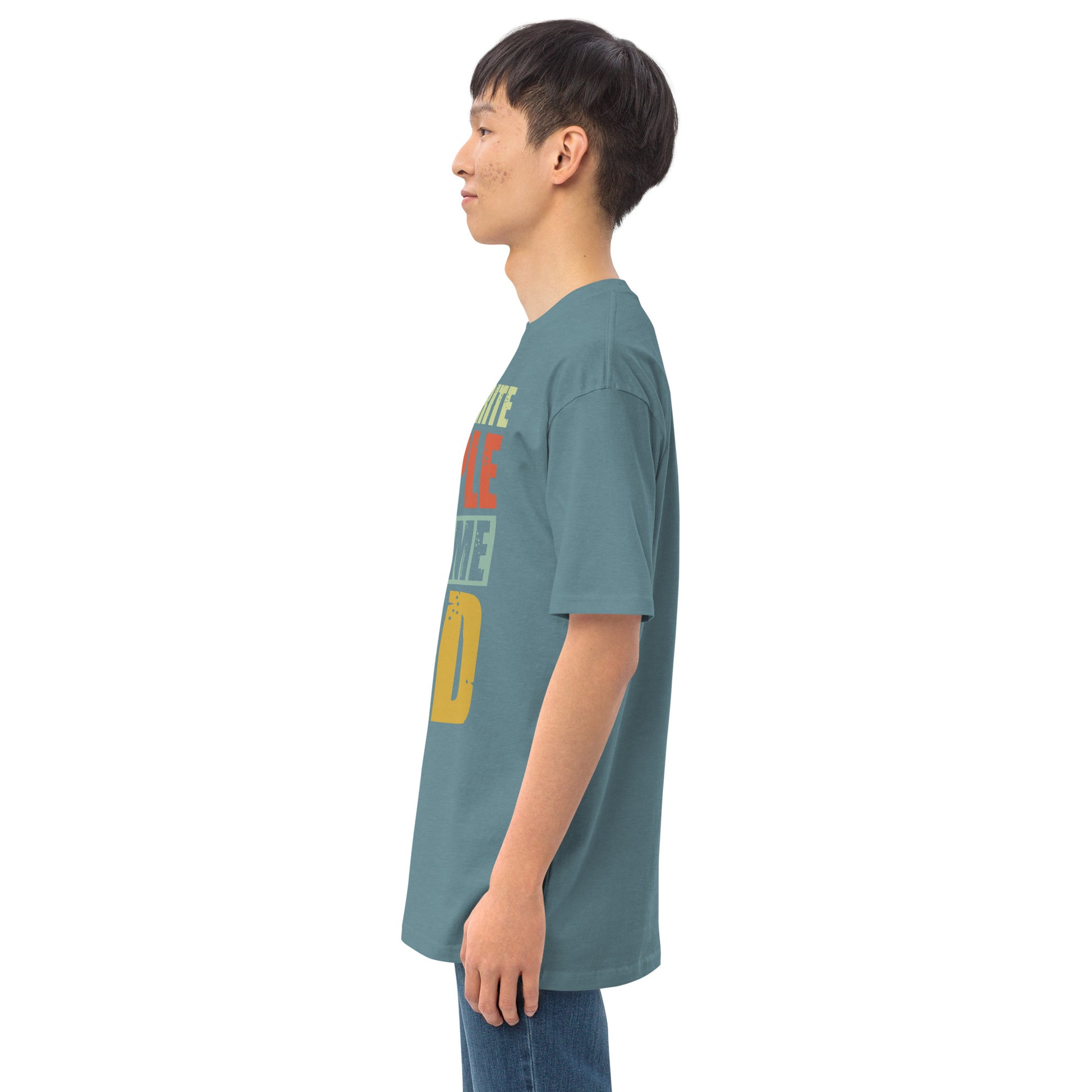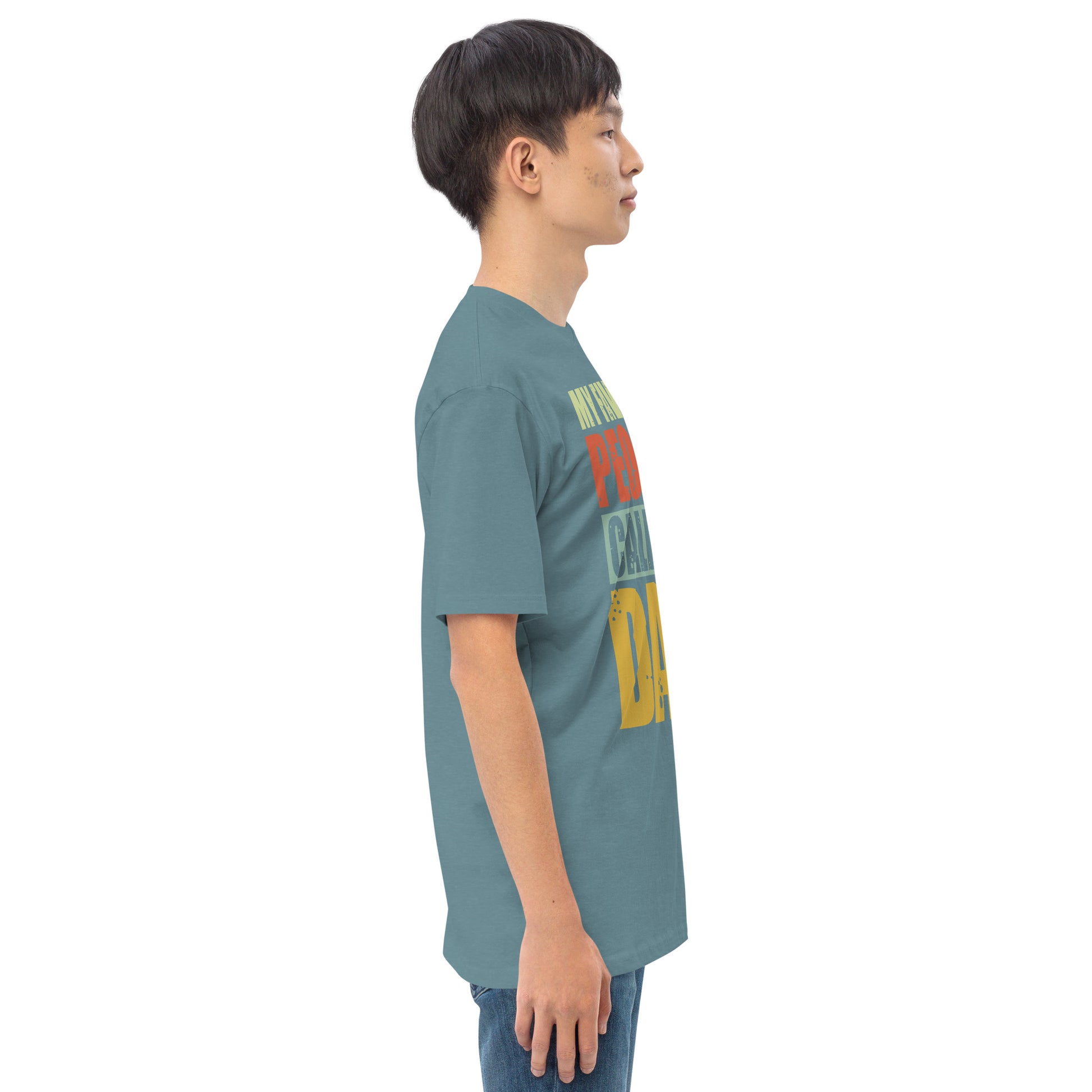 For the dad whose favorite people are his kids, this colorful and affectionate tee says it all. "My favorite people call me dad" – a sweet statement that's bound to warm hearts and invite smiles. Elevate your outfit with the men’s premium heavyweight tee. The tee has a structured, classy fit and is both durable and soft thanks to its ring-spun cotton material. Layer the t-shirt or wear it on its own and enjoy great looks with little effort!