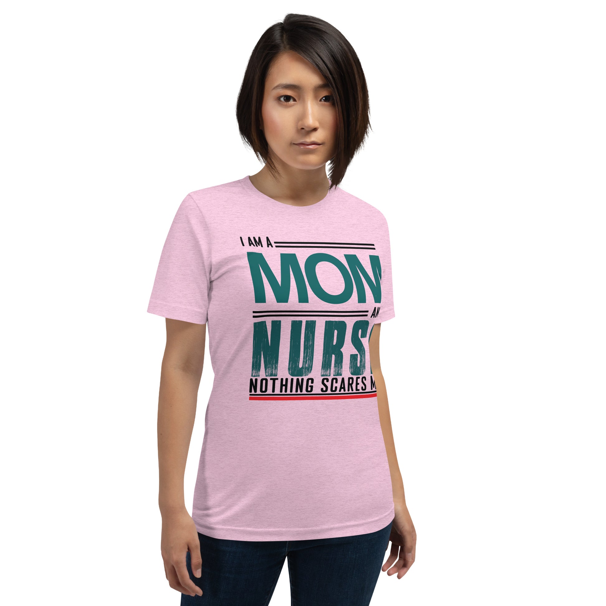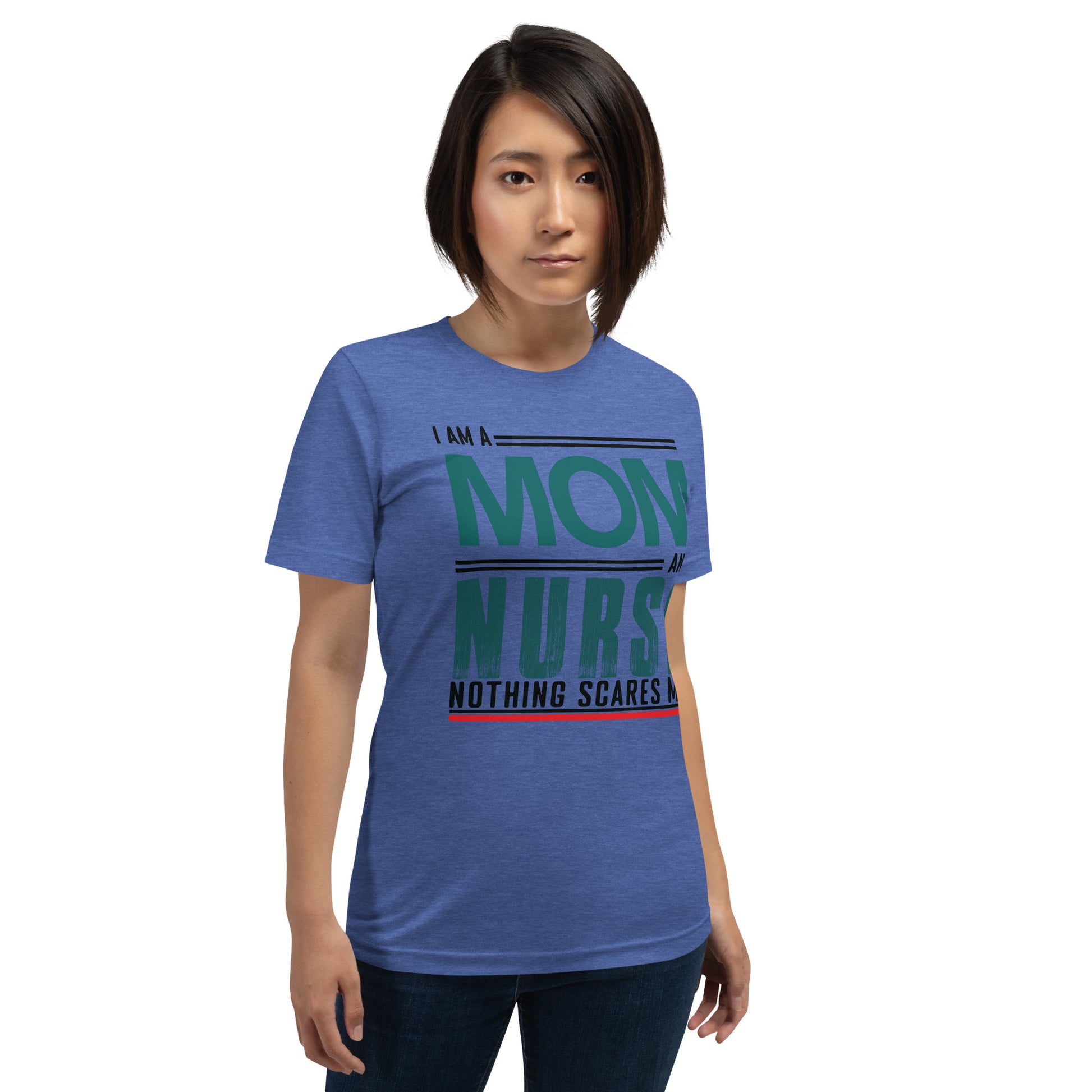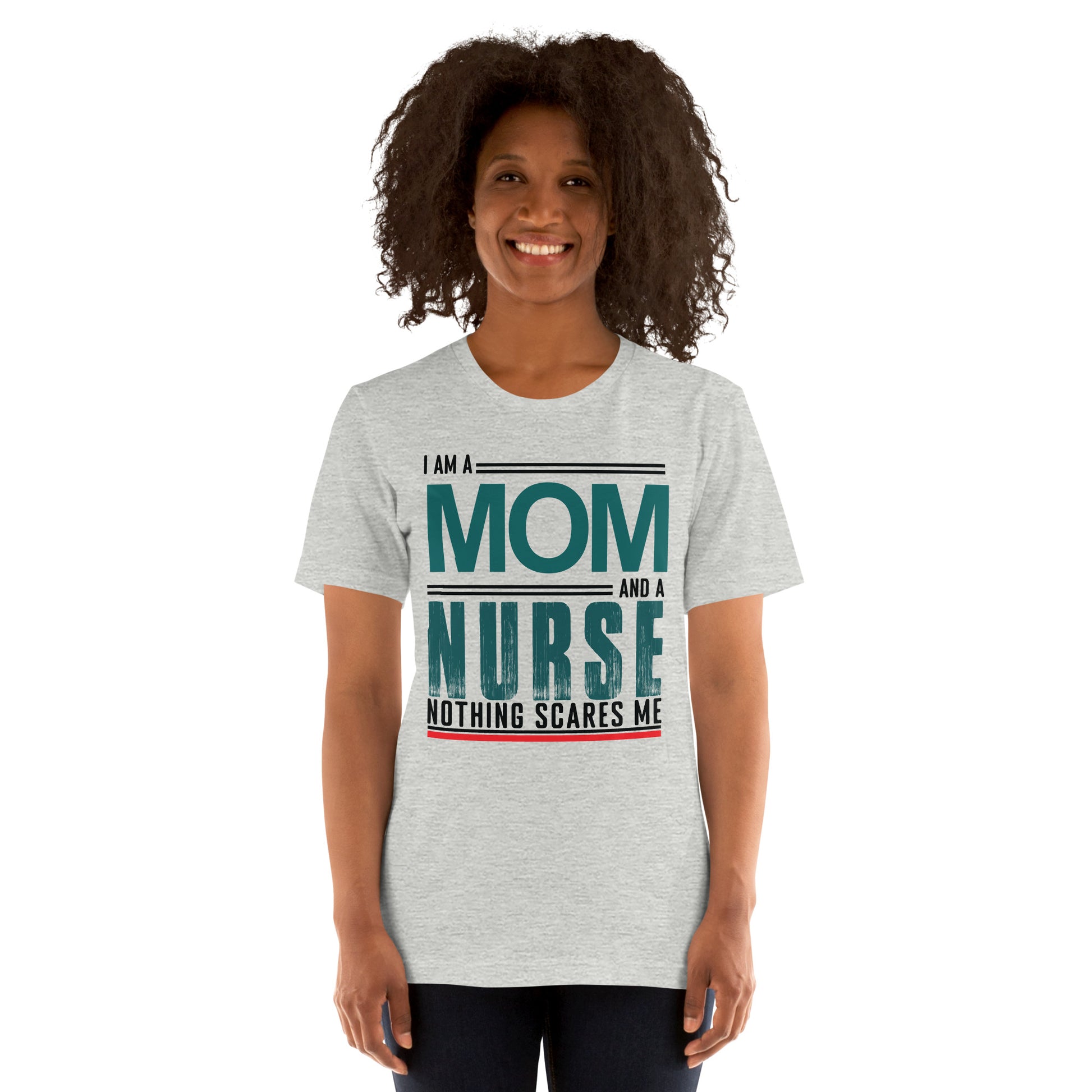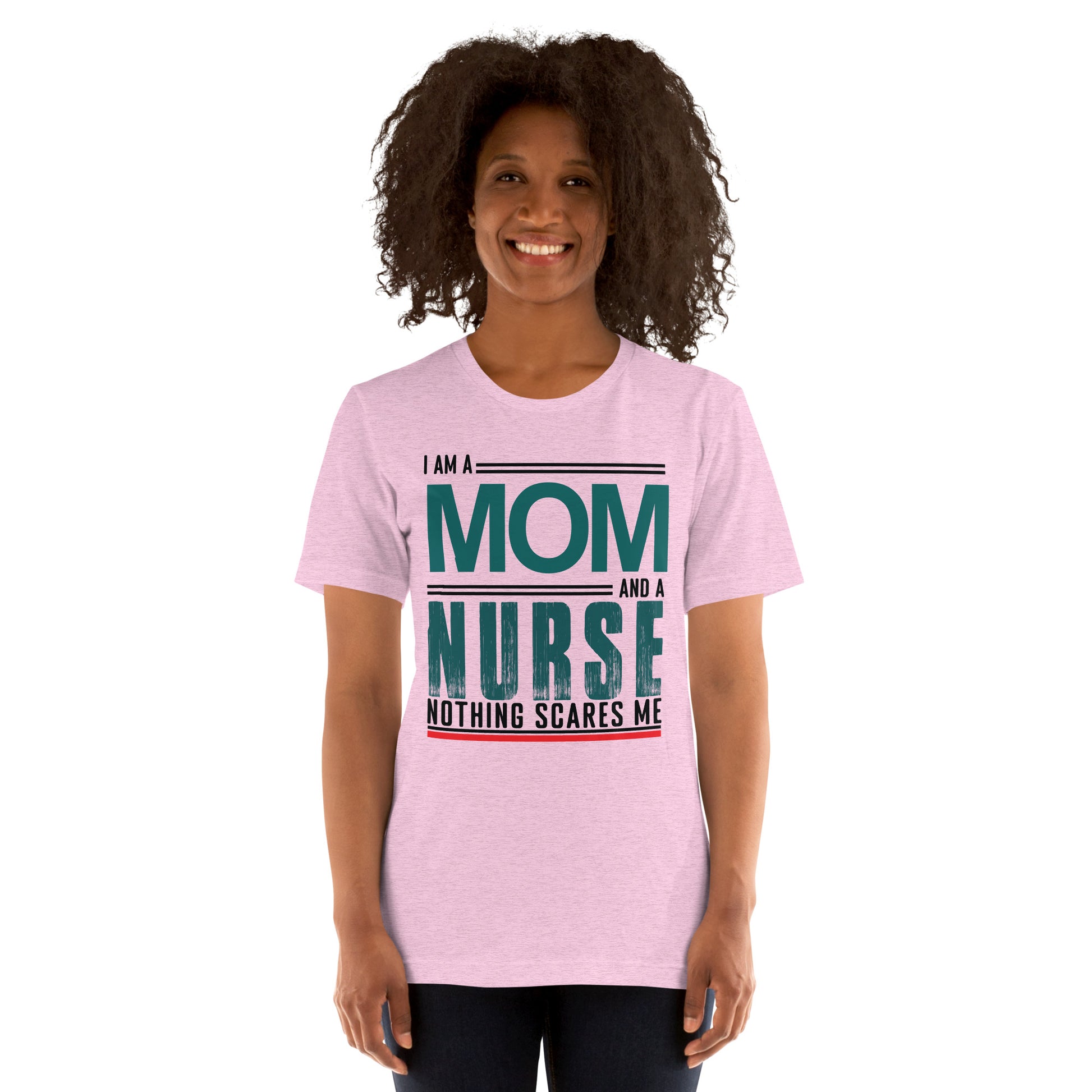 The "Fearless Mom-Nurse Tee" is for the superhero in scrubs, the champion of care, the mother who manages mayhem both at home and in the hospital. This shirt celebrates the double-duty courage that comes with being a mom and a nurse, where every day is an adventure and nothing, absolutely nothing, is too daunting. Wear it with pride, wear it with strength, for you are the epitome of bravery in every heartbeat. This t-shirt is everything you've dreamed of and more. It feels soft and lightweight, with the right amount of stretch. It's comfortable and flattering for all.