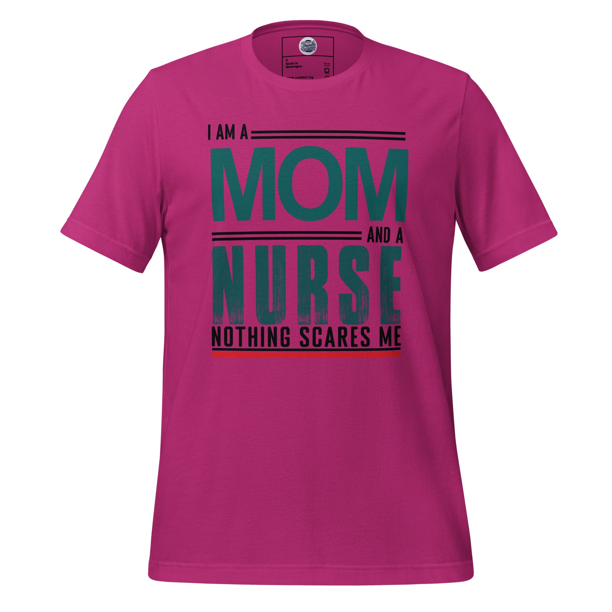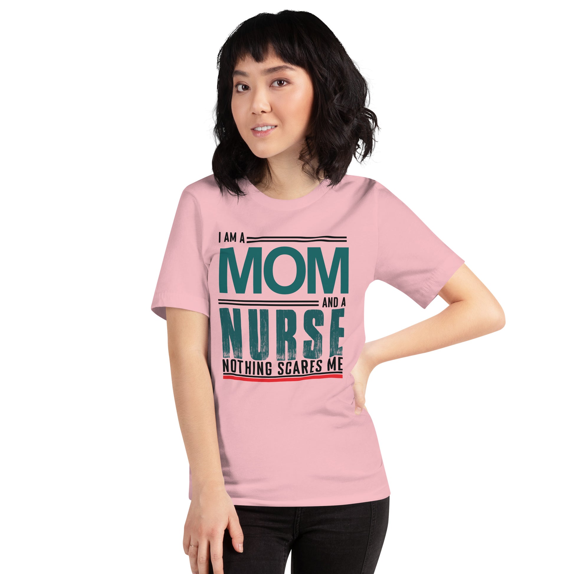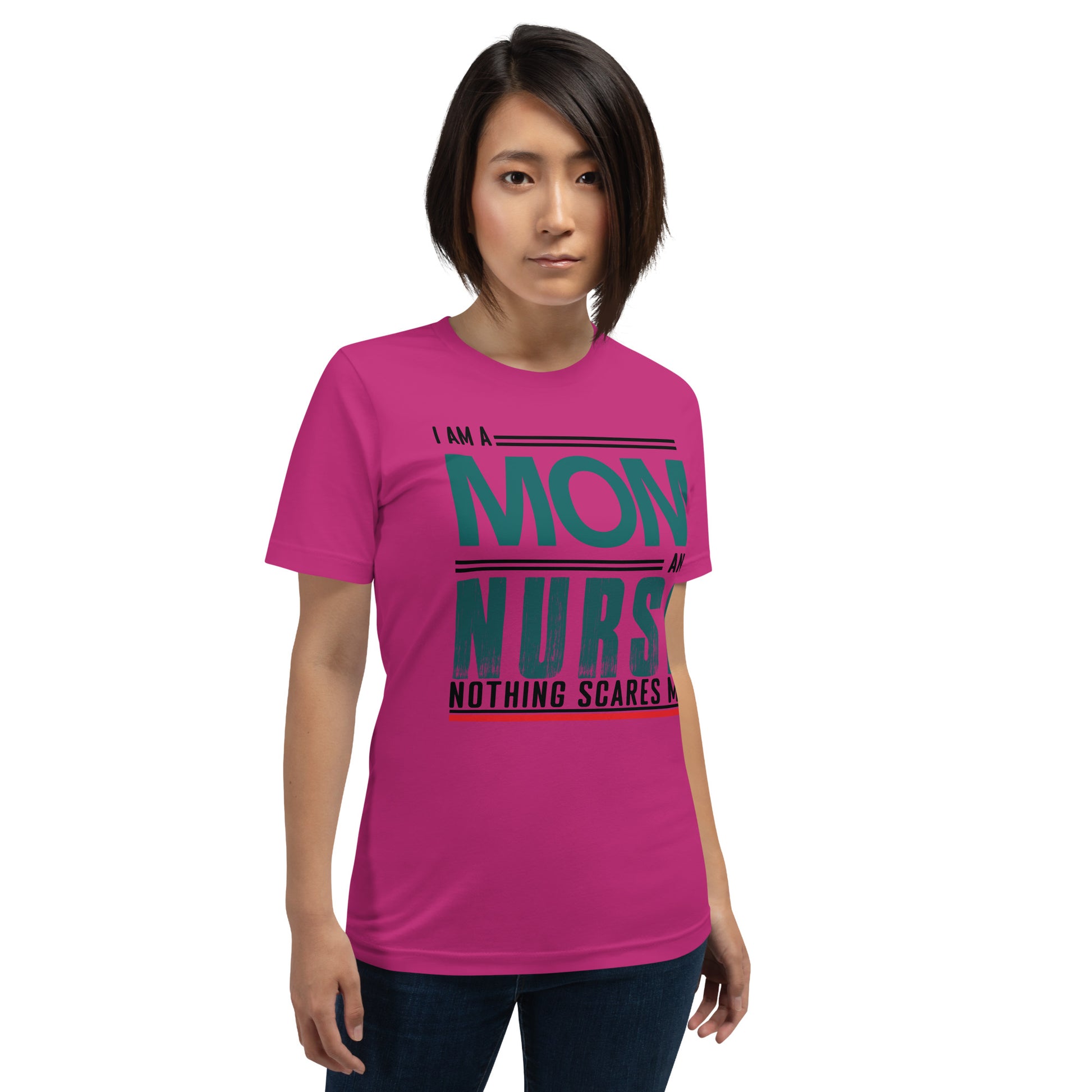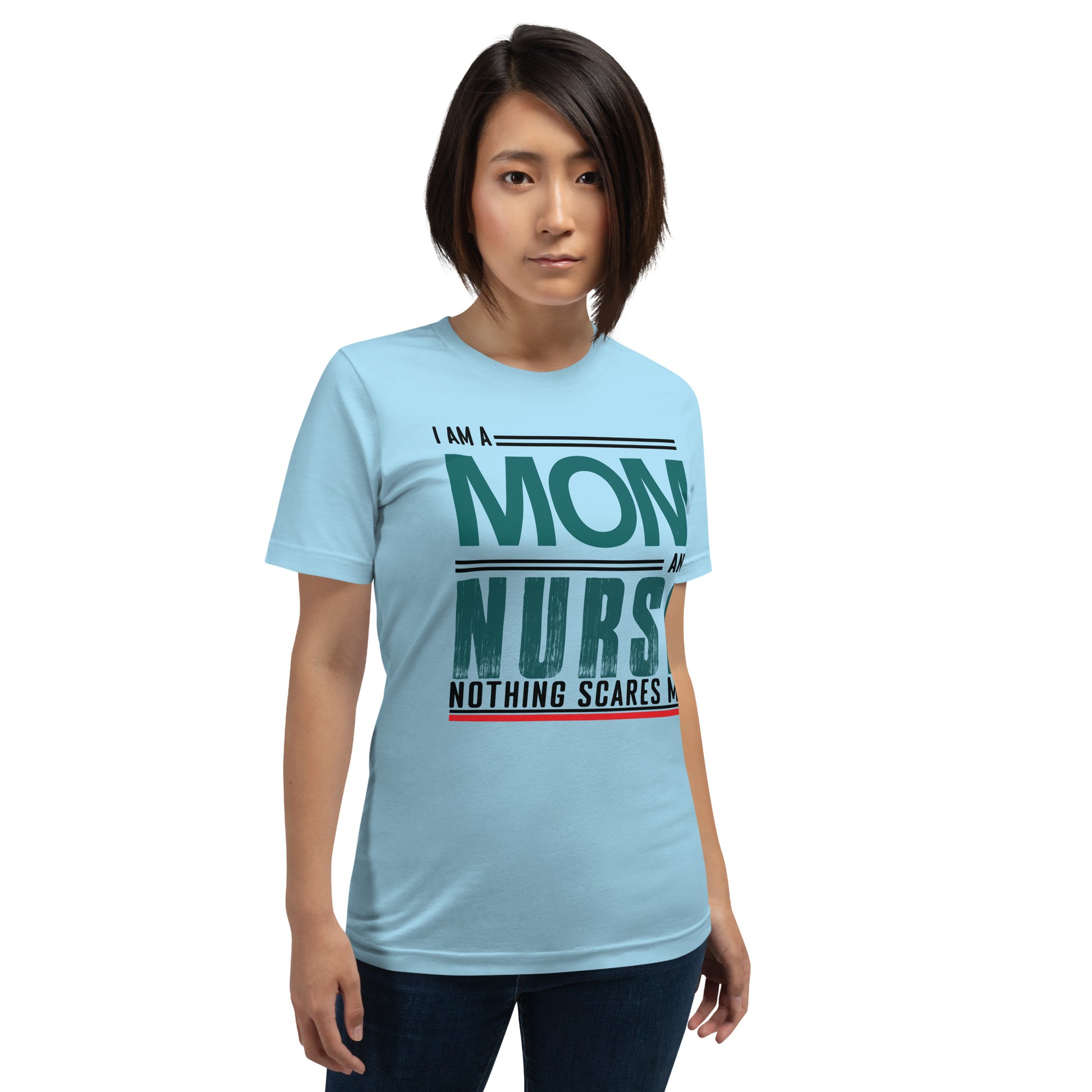 The "Fearless Mom-Nurse Tee" is for the superhero in scrubs, the champion of care, the mother who manages mayhem both at home and in the hospital. This shirt celebrates the double-duty courage that comes with being a mom and a nurse, where every day is an adventure and nothing, absolutely nothing, is too daunting. Wear it with pride, wear it with strength, for you are the epitome of bravery in every heartbeat. This t-shirt is everything you've dreamed of and more. It feels soft and lightweight, with the right amount of stretch. It's comfortable and flattering for all.