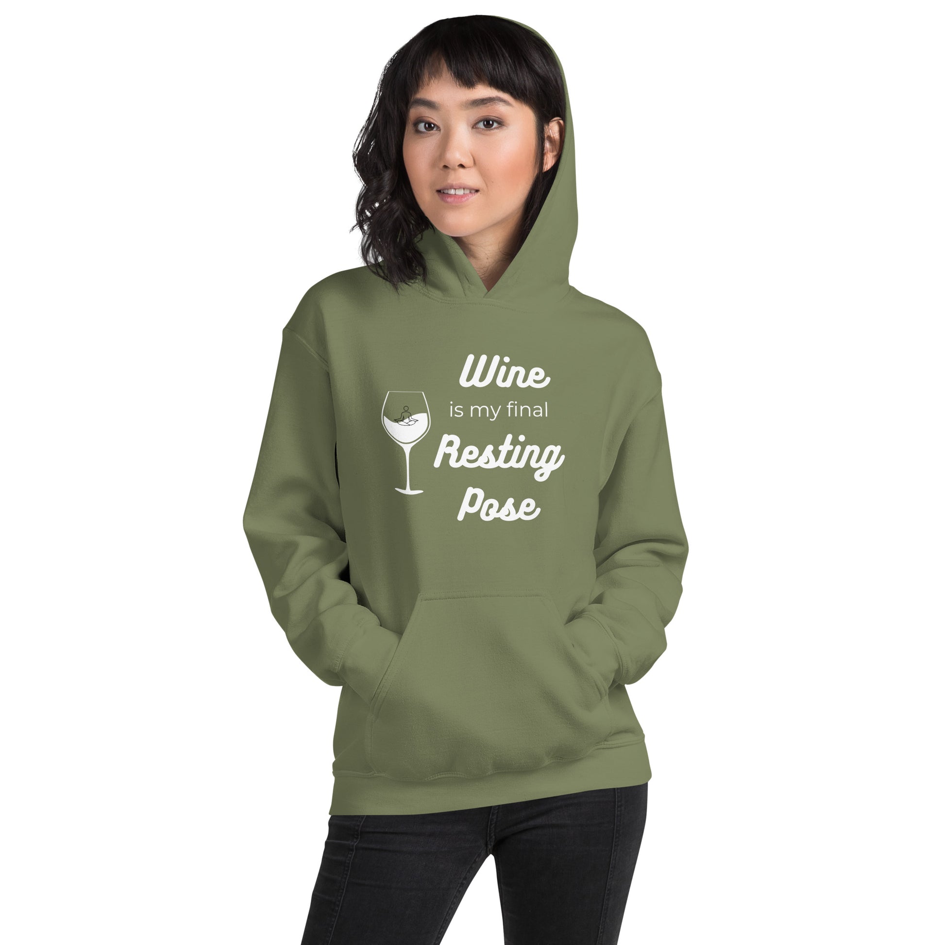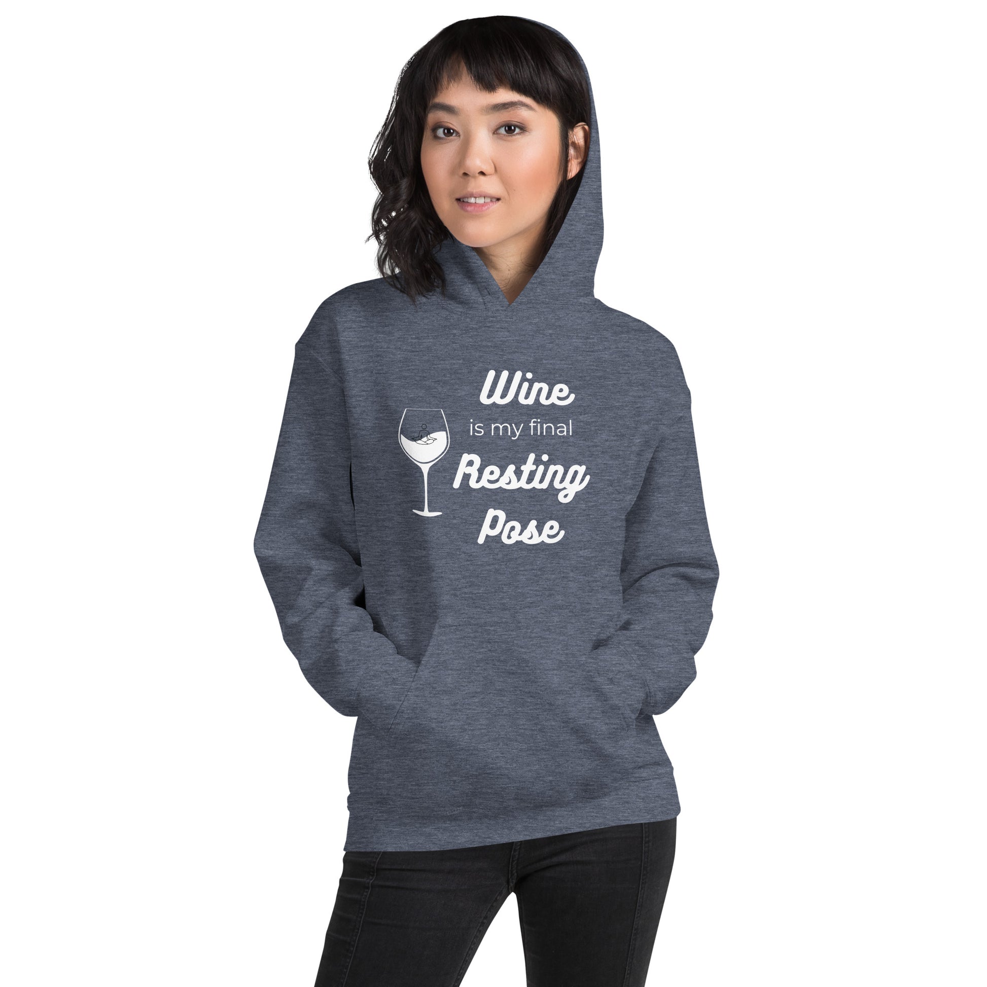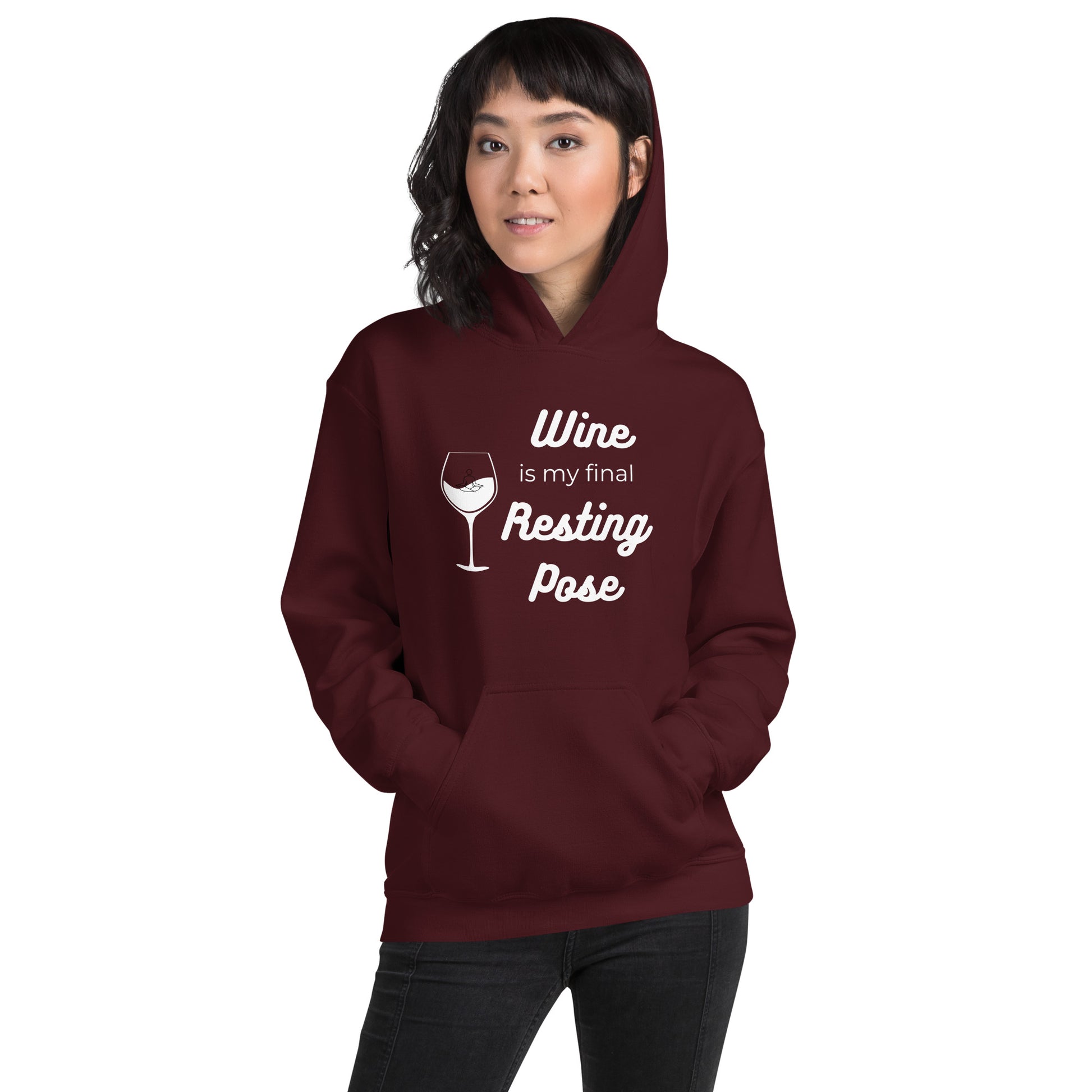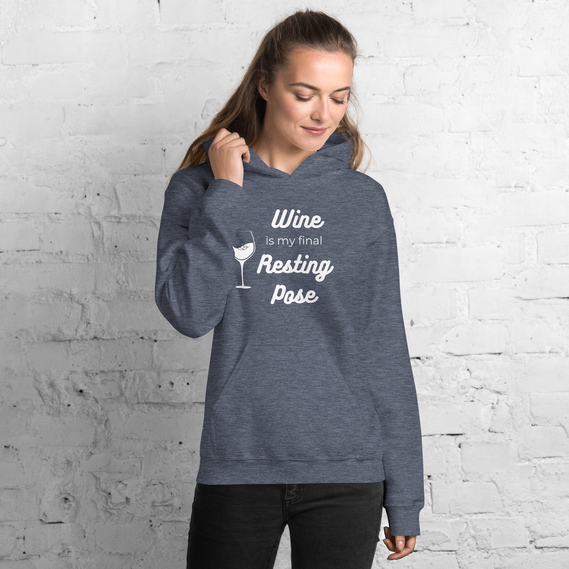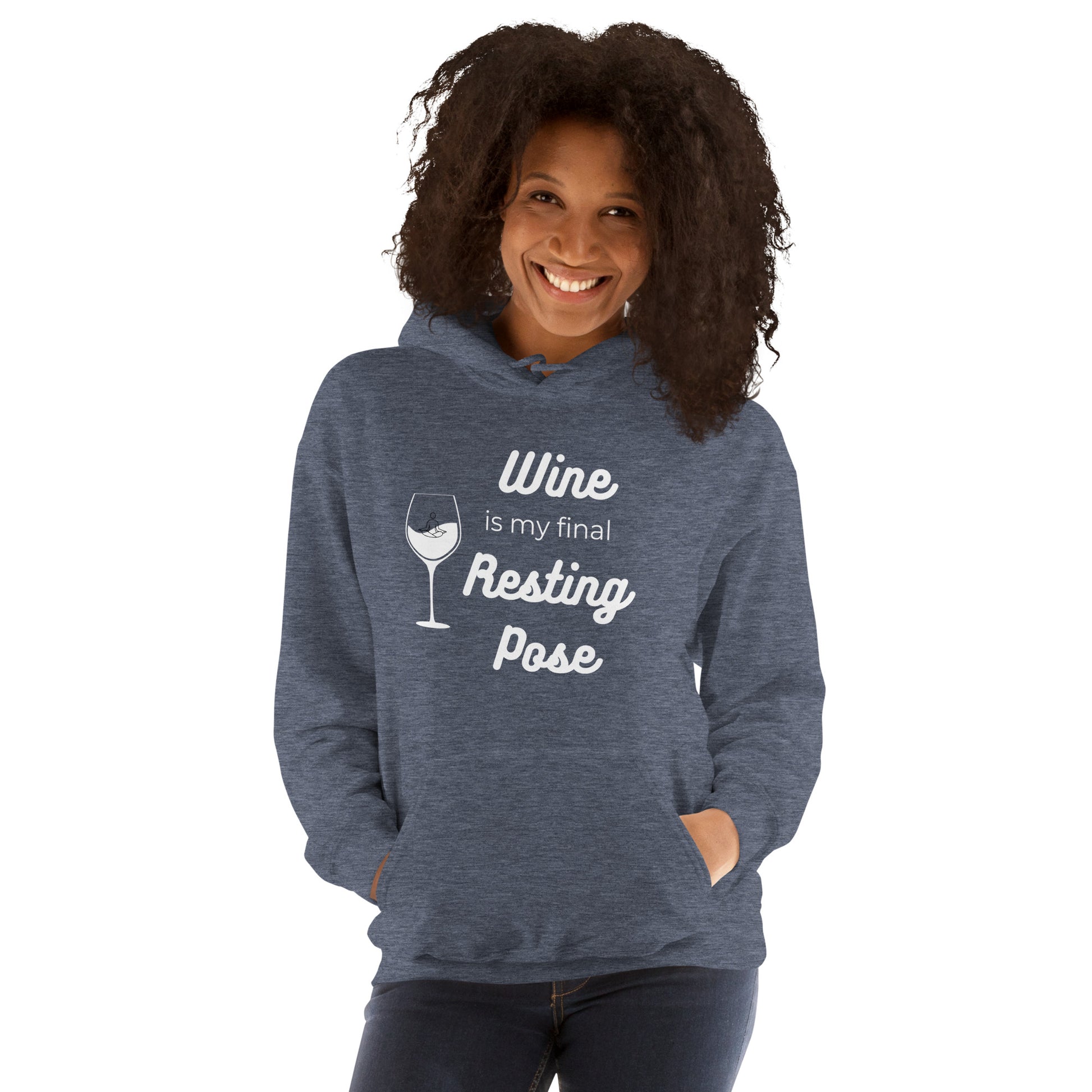 Get ready to find your zen in the Final Resting Pose Hoodie. This is for the mindful merrymaker, the one who contemplates life's deep questions with a wine glass in hand. Our hoodie is a warm embrace on a cool evening and a nod to those who know the best kind of therapy starts with a 'pop!' Cozy, clever, and a conversation starter – it's your perfect partner in wine! Everyone needs a cozy go-to hoodie to curl up in, so go for one that's soft, smooth, and stylish. It's the perfect choice for cooler evenings!