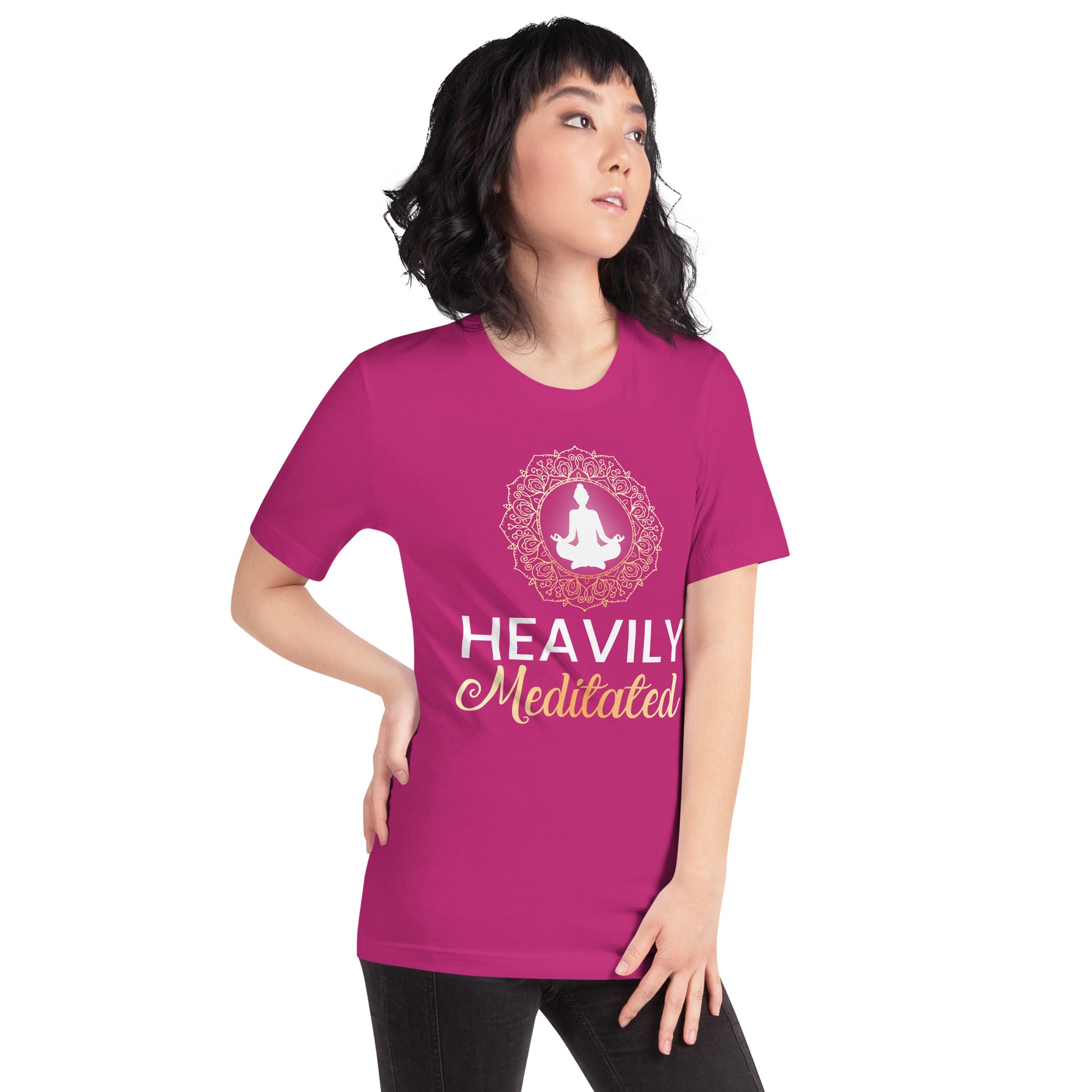 Float through your day with our 'Heavily Meditated' T-Shirt, a perfect blend of humor and peace for the inward explorer. This tee isn't just a piece of fabric; it's a statement that you're serious about your chill. With a whimsical quip that meditation enthusiasts will nod to, it's ideal for those moments of mindfulness or simply for making a light-hearted impression. It’s your go-to for a dose of calm in the chaos of daily life, a wearable reminder to breathe deeply and smile more. This t-shirt is everything you've dreamed of and more. It feels soft and lightweight, with the right amount of stretch. It's comfortable and flattering for all.