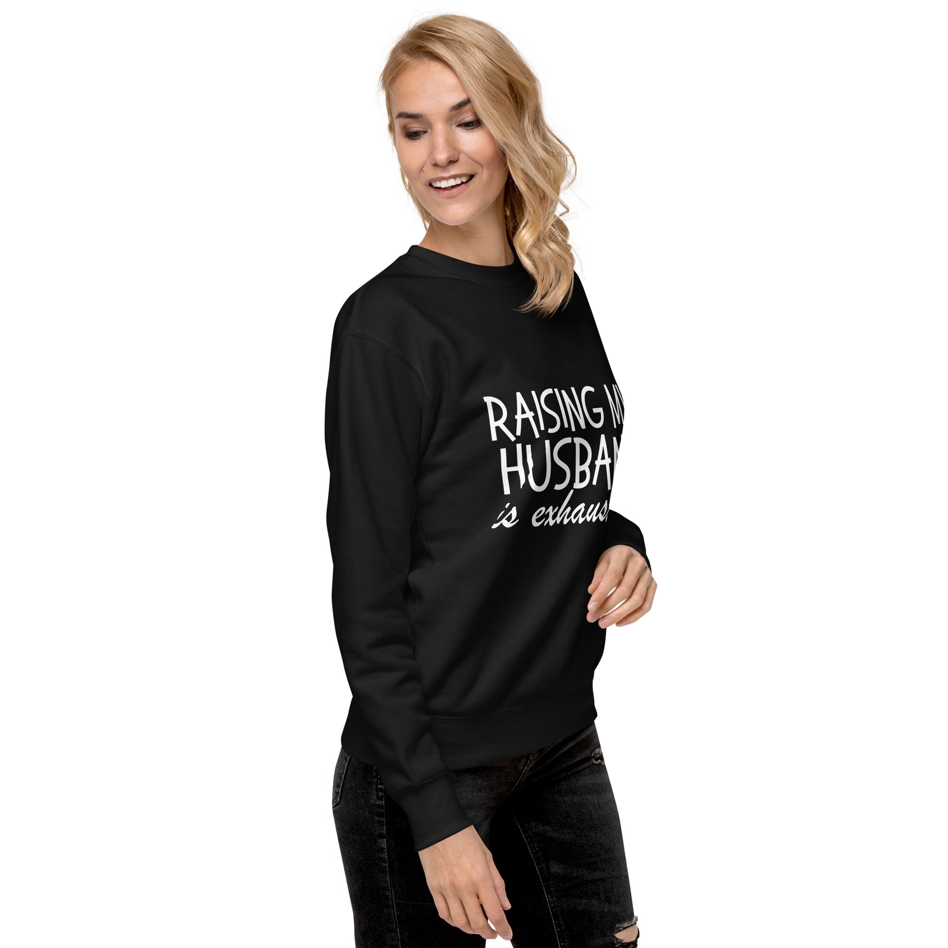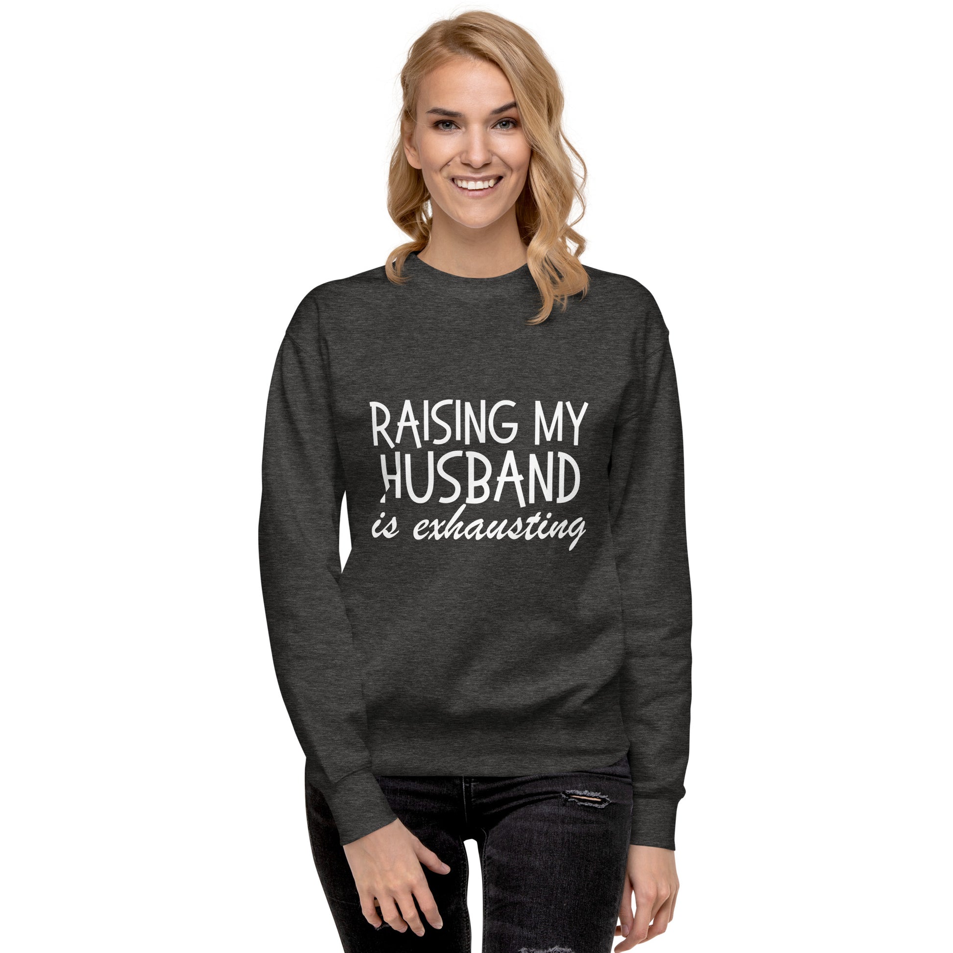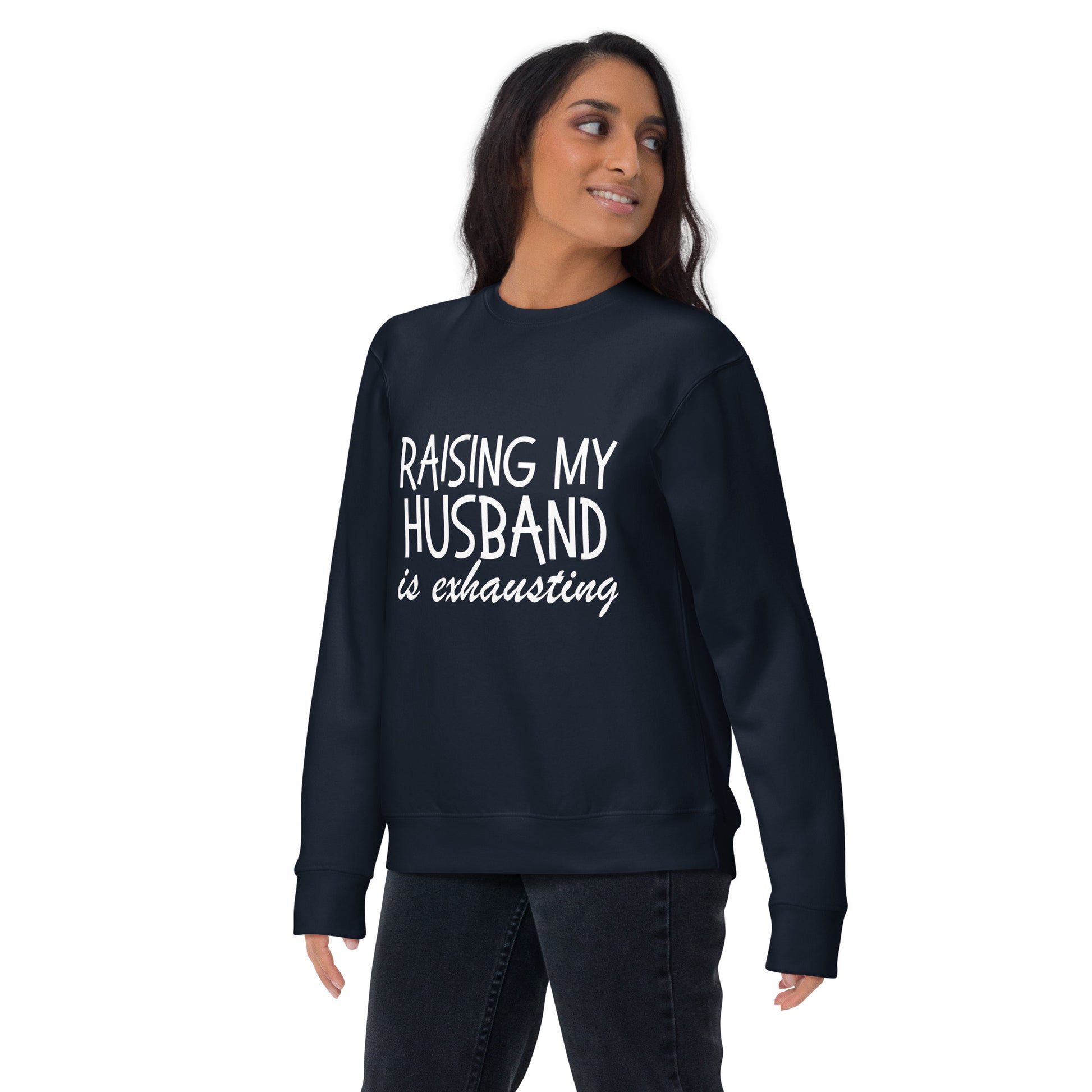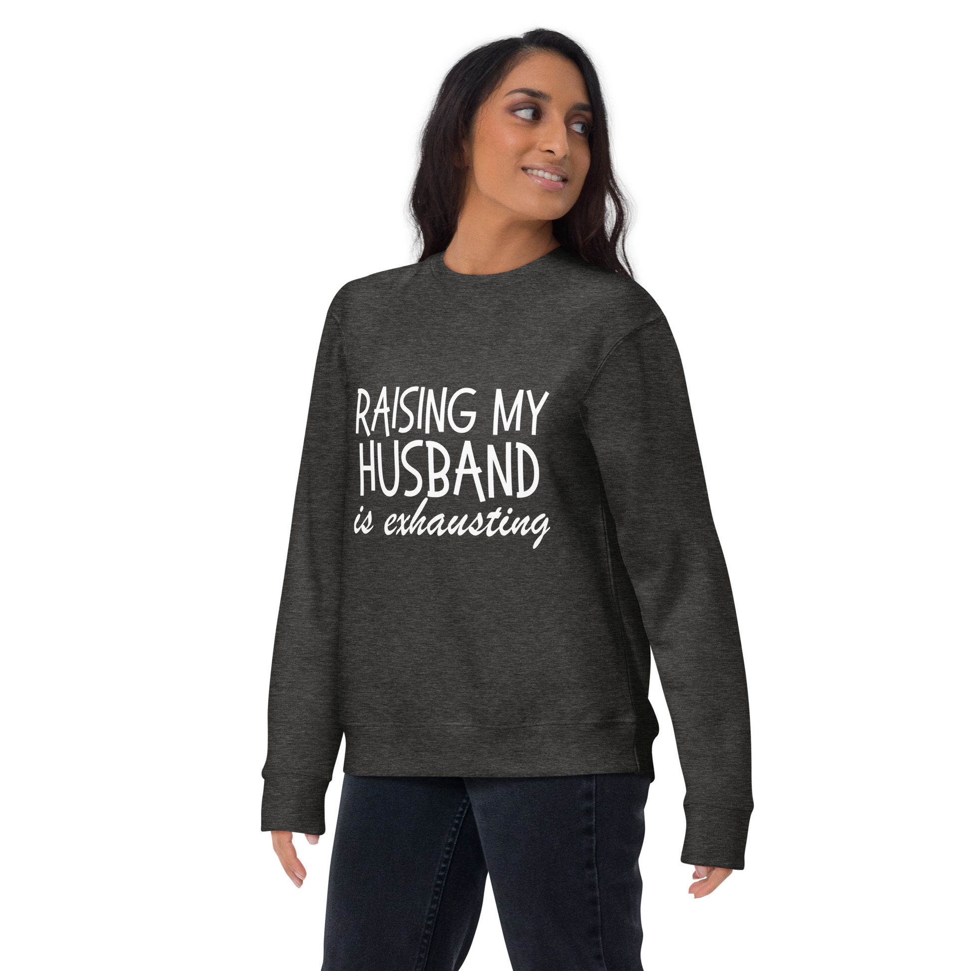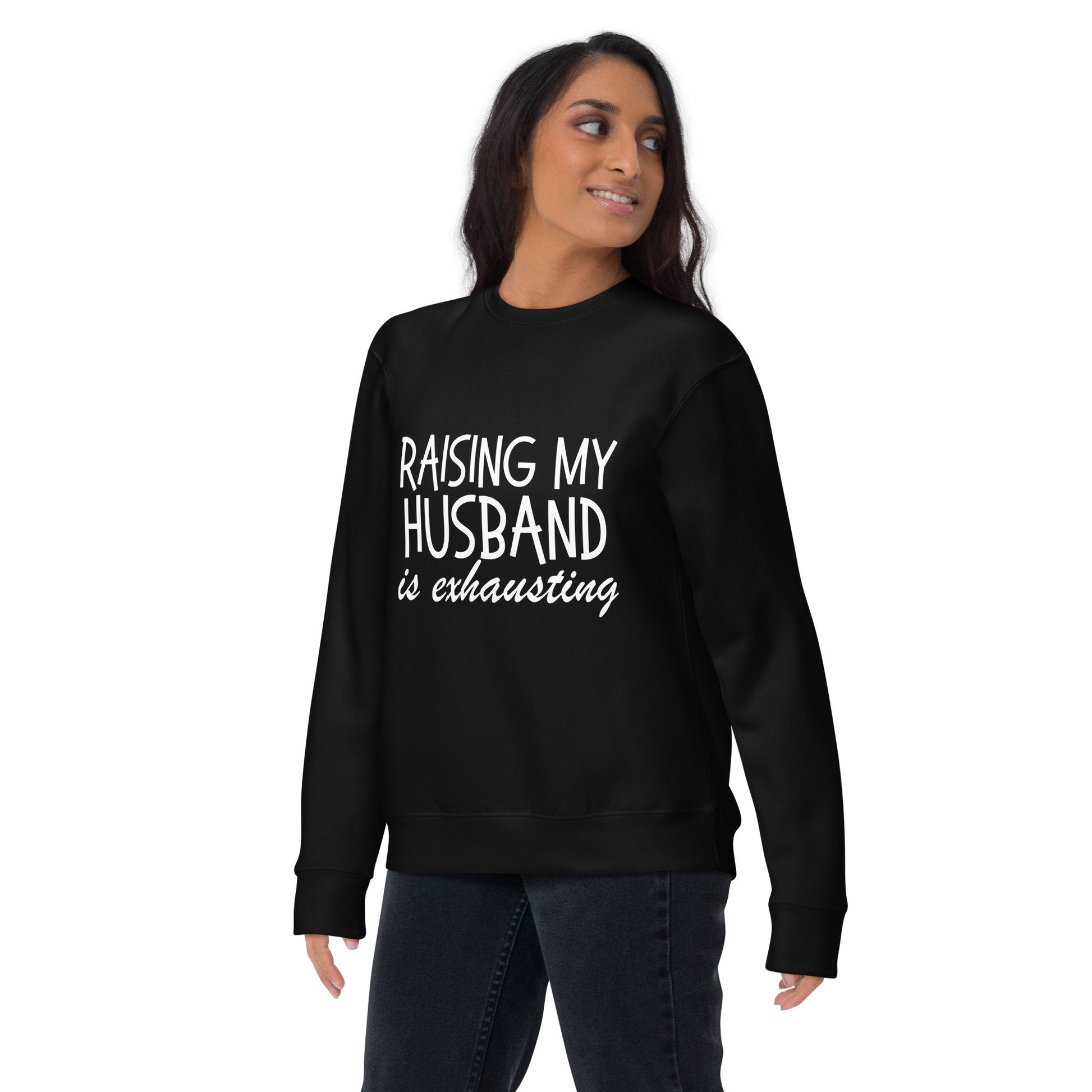 Get ready to channel your inner matrimonial guru with our "Husband Whisperer" line. Whether you're donning our Hoodie, cozying up in our Sweatshirt, or keeping it casual with the T-Shirt, each piece is a testament to the side-splitting journey of spousal enlightenment. It's the perfect wardrobe staple for those who've mastered the art of 'husbandry' and possess the humor to show it off. Strike a chord in the harmony of marriage with a sly wink and a nod to the unsung heroism of spouses everywhere. Ideal for a laugh-out-loud gift or just a casual day out, these garments are sure to be conversation starters. Disclaimer: Laughter-induced abs are a possible side effect. Rock a classic sweatshirt silhouette with ribbed crew neck, long sleeve cuffs, and a flat hem. Layer it up or wear it on its own for a contemporary streetwear look. With the soft fleece inside and comfortable fit, it’s sure to become your favorite everyday sweater right away!• 100% cotton face