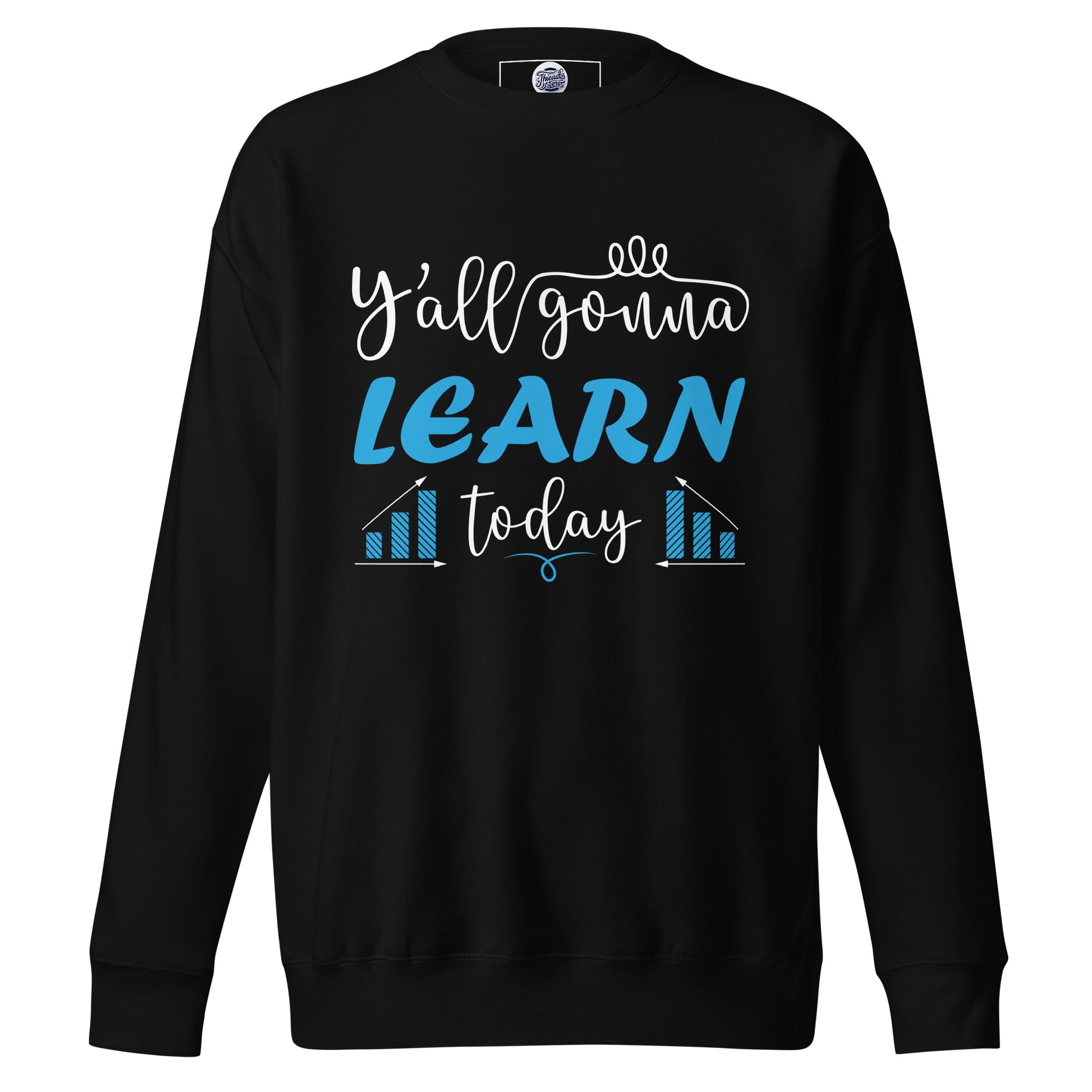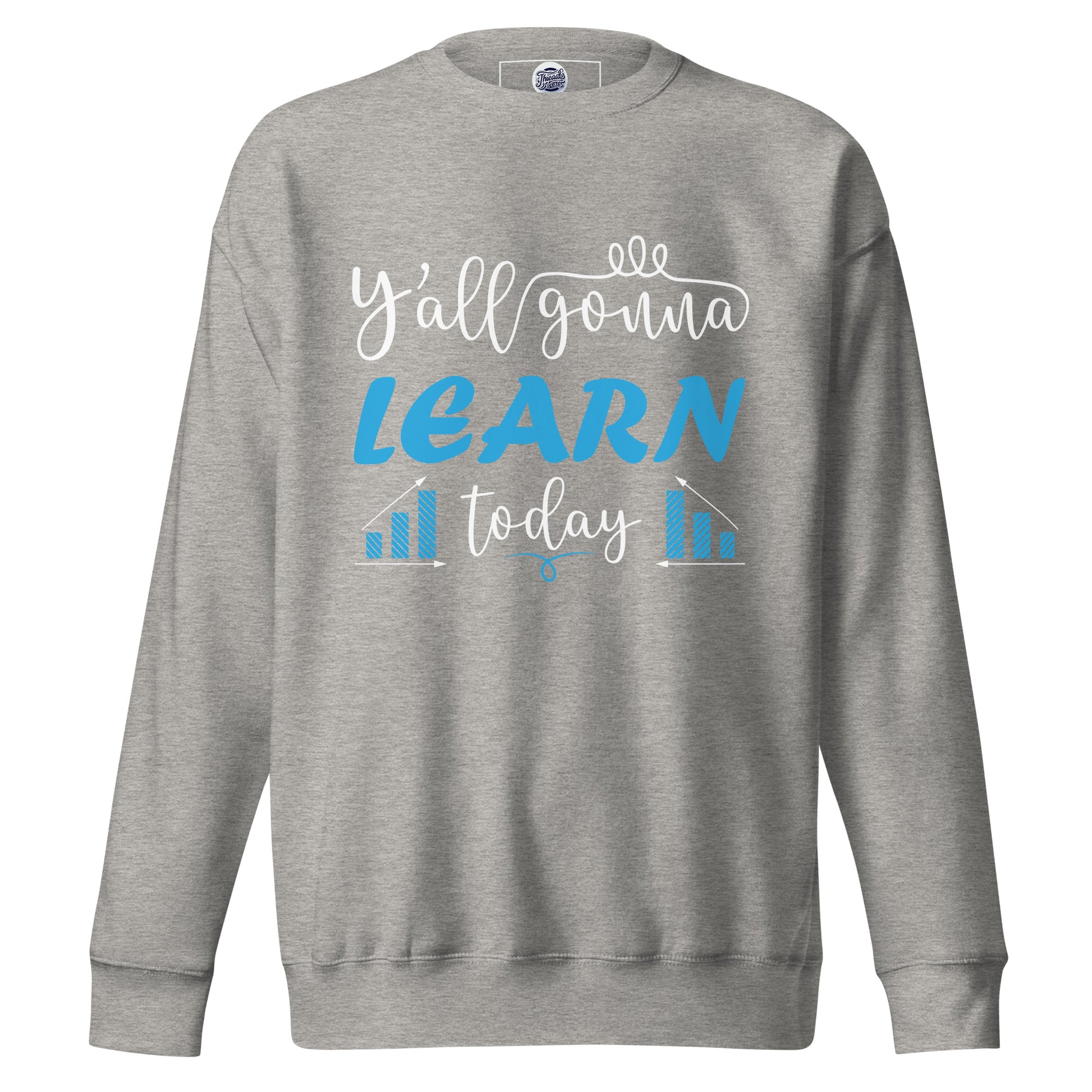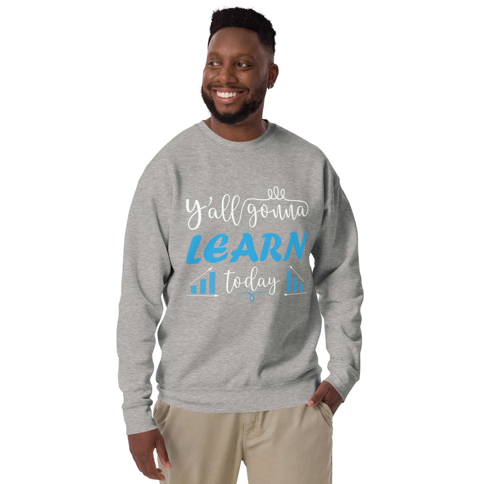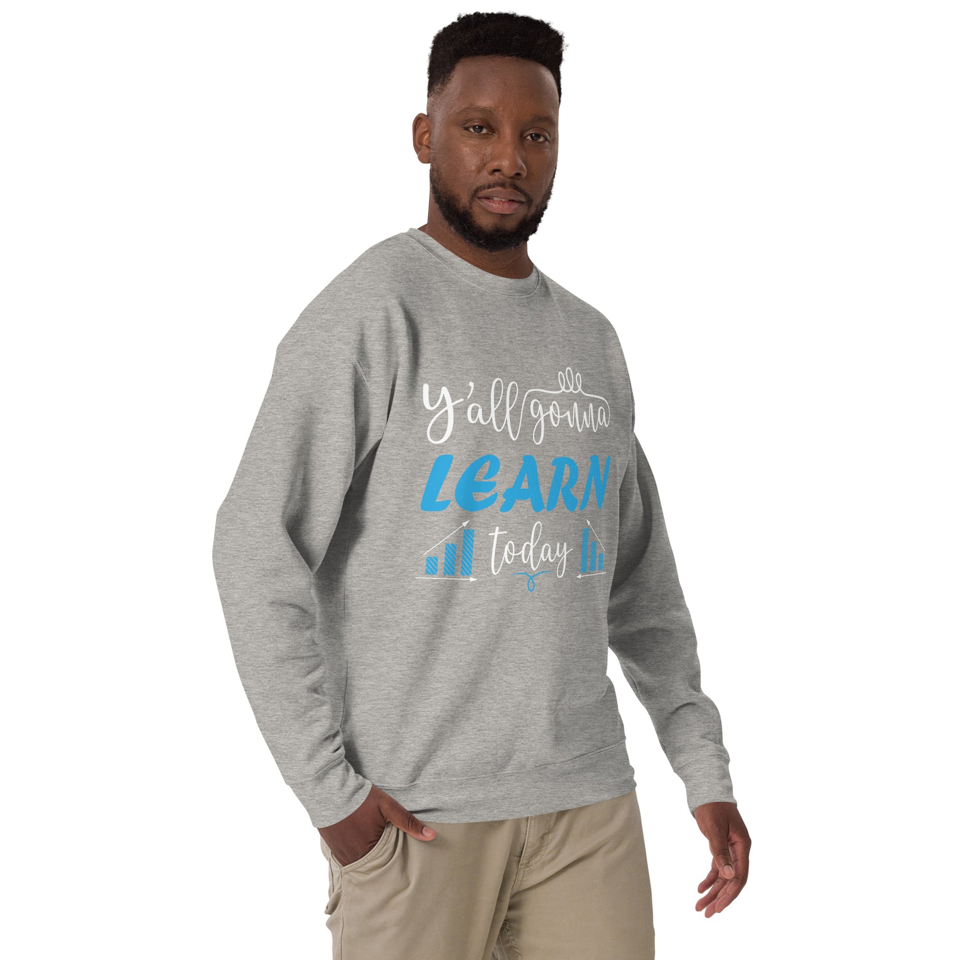 Embrace the charm of the classroom with our "Learn Today" sweatshirt, where wit meets wisdom in a cozy package. It's all about making a statement before the lesson begins with a playful "Y'all Gonna Learn Today." This sweatshirt marries comfort with a dash of down-home humor, perfect for the educator who brings a touch of colloquial charm to the serious business of learning. Whether you're leading a bustling classroom, grading papers on a quiet porch, or inspiring young minds with the gift of gab, this top is a lighthearted nod to the joy of teaching and the unique flair you bring to it. Don this sweatshirt and let your students know that education can be as enjoyable as a sunny day down South, with a side of serious scholarship. Rock a classic sweatshirt silhouette with ribbed crew neck, long sleeve cuffs, and a flat hem. Layer it up or wear it on its own for a contemporary streetwear look. With the soft fleece inside and comfortable fit, it’s sure to become your favorite everyday sweater right away!