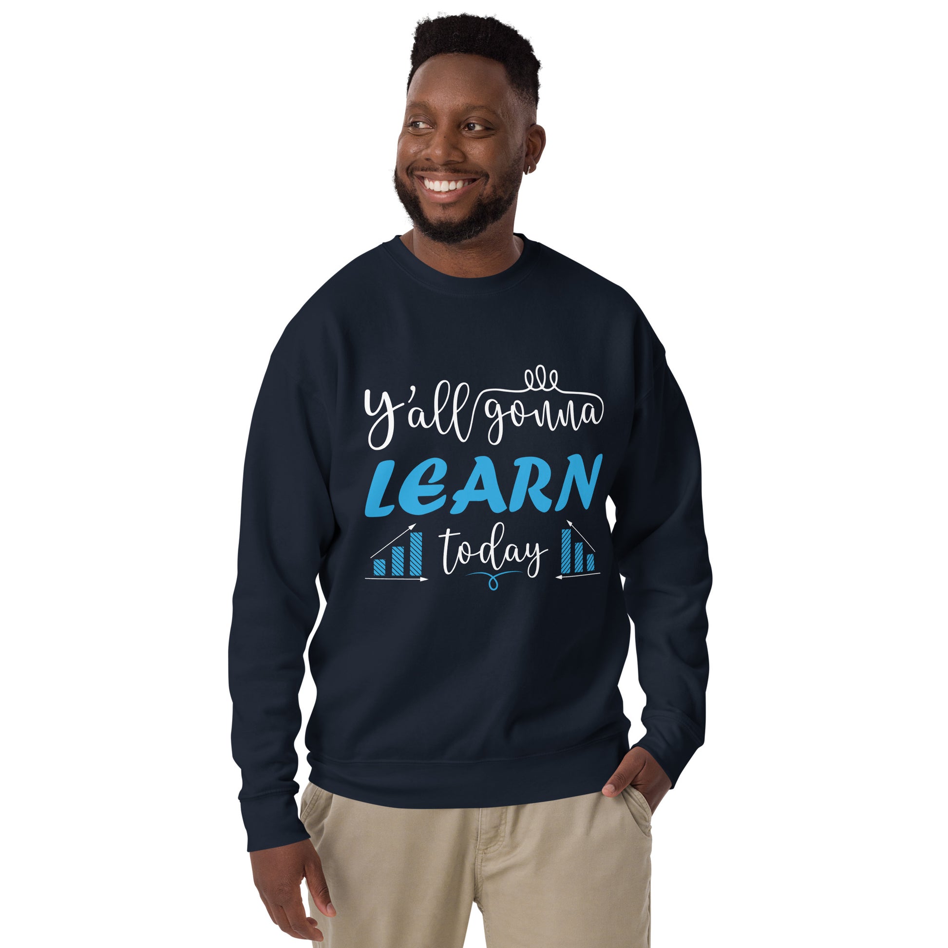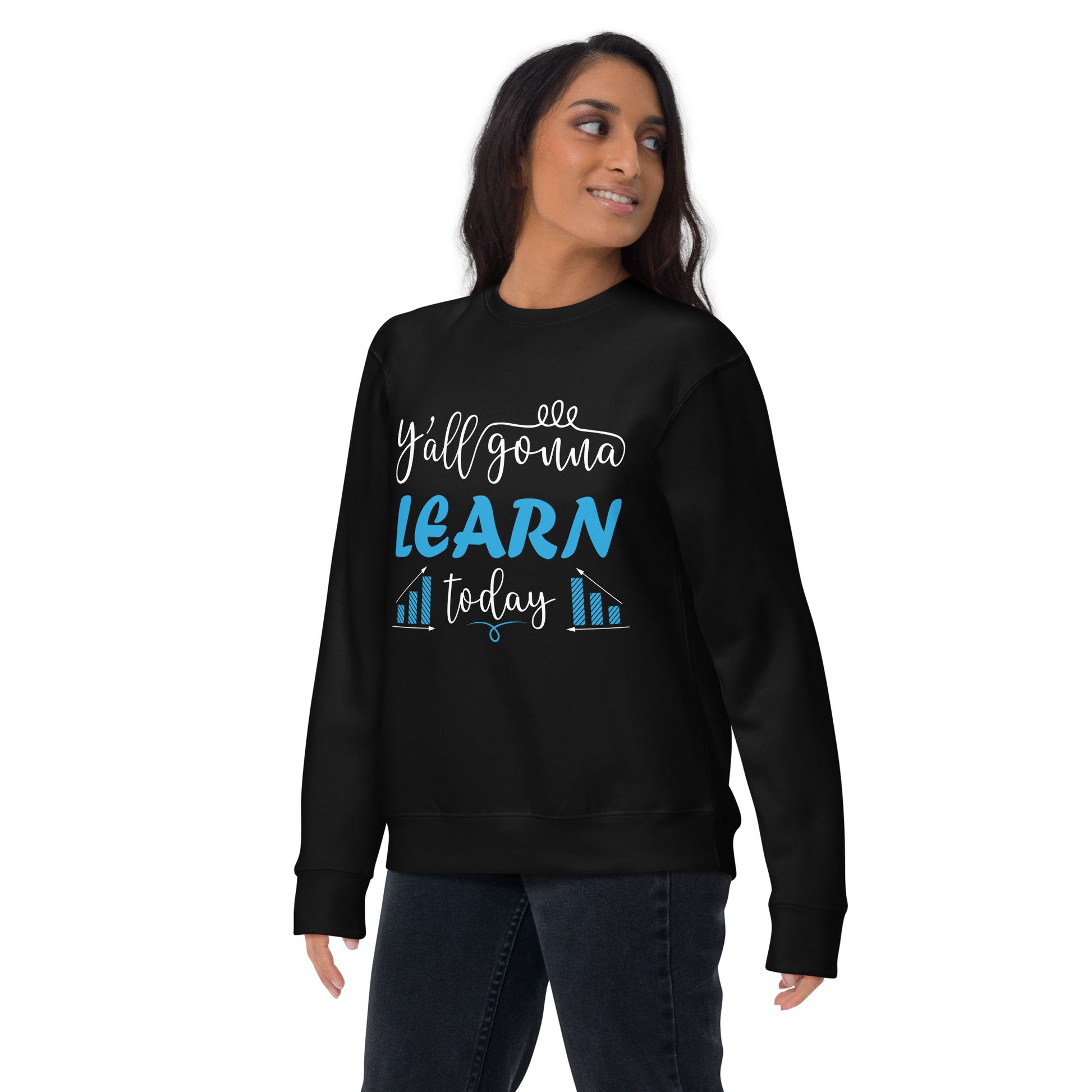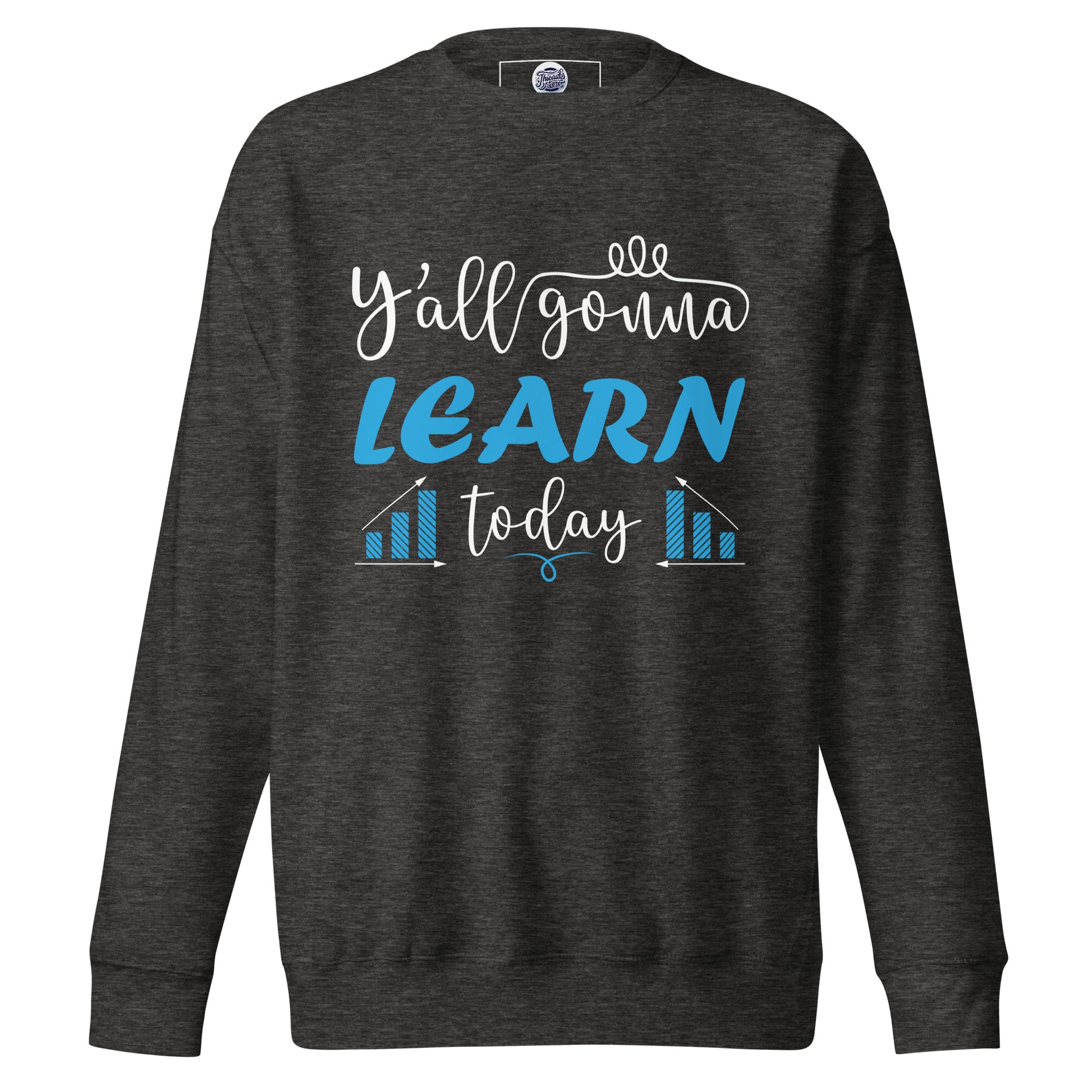 Embrace the charm of the classroom with our "Learn Today" sweatshirt, where wit meets wisdom in a cozy package. It's all about making a statement before the lesson begins with a playful "Y'all Gonna Learn Today." This sweatshirt marries comfort with a dash of down-home humor, perfect for the educator who brings a touch of colloquial charm to the serious business of learning. Whether you're leading a bustling classroom, grading papers on a quiet porch, or inspiring young minds with the gift of gab, this top is a lighthearted nod to the joy of teaching and the unique flair you bring to it. Don this sweatshirt and let your students know that education can be as enjoyable as a sunny day down South, with a side of serious scholarship. Rock a classic sweatshirt silhouette with ribbed crew neck, long sleeve cuffs, and a flat hem. Layer it up or wear it on its own for a contemporary streetwear look. With the soft fleece inside and comfortable fit, it’s sure to become your favorite everyday sweater right away!