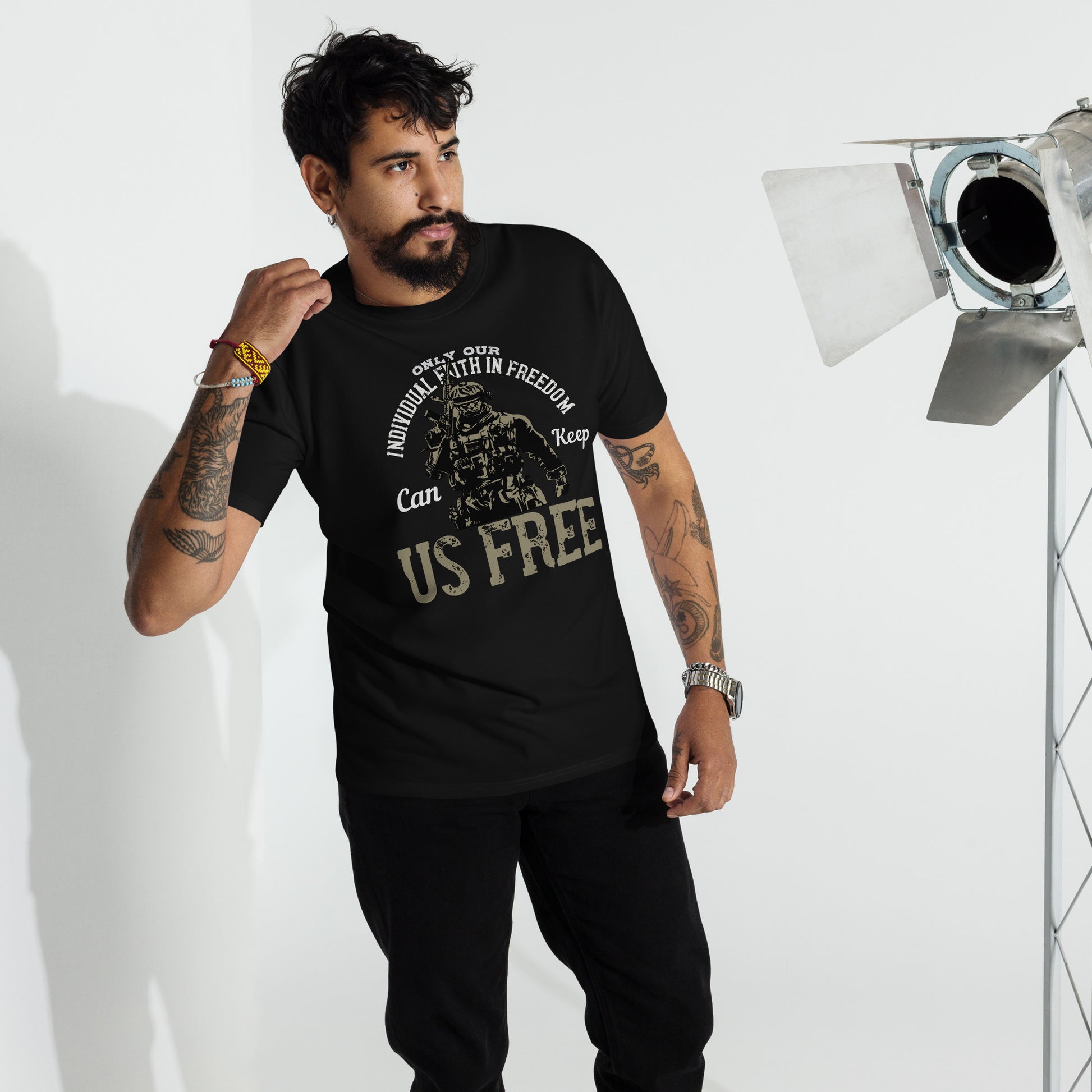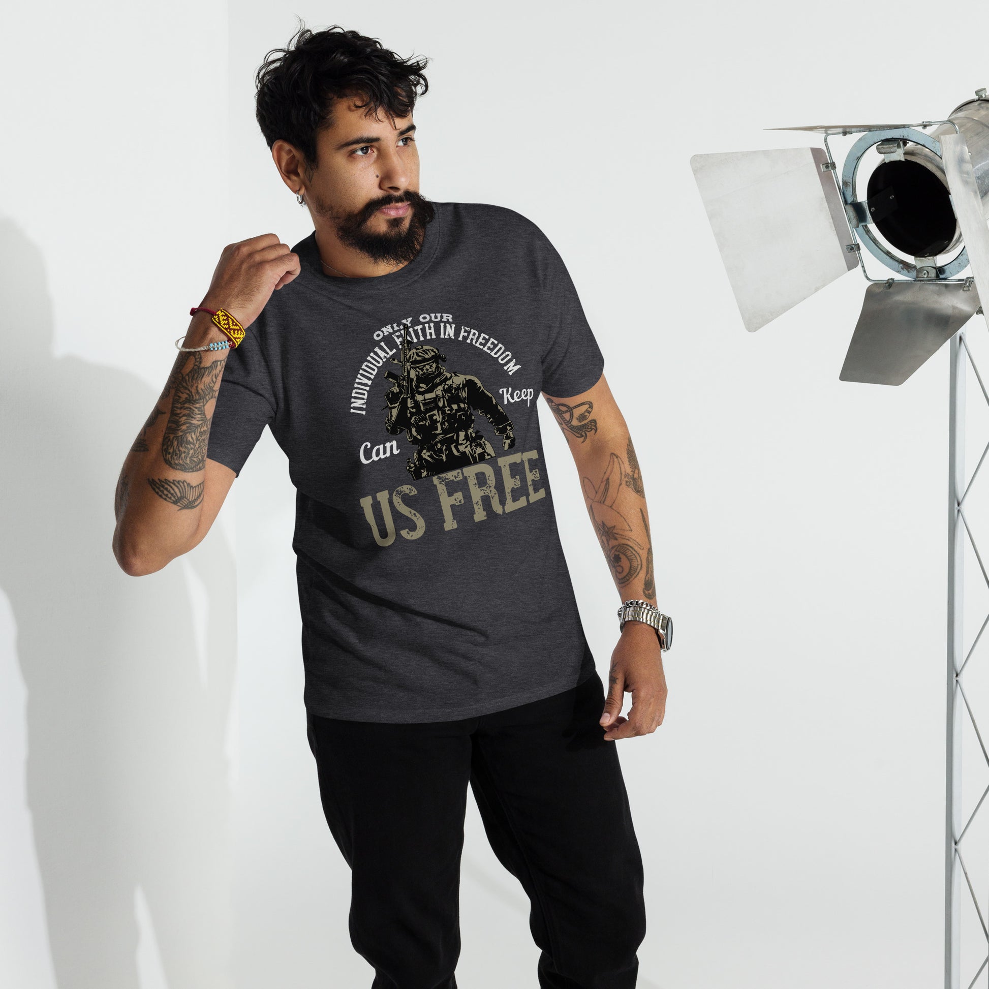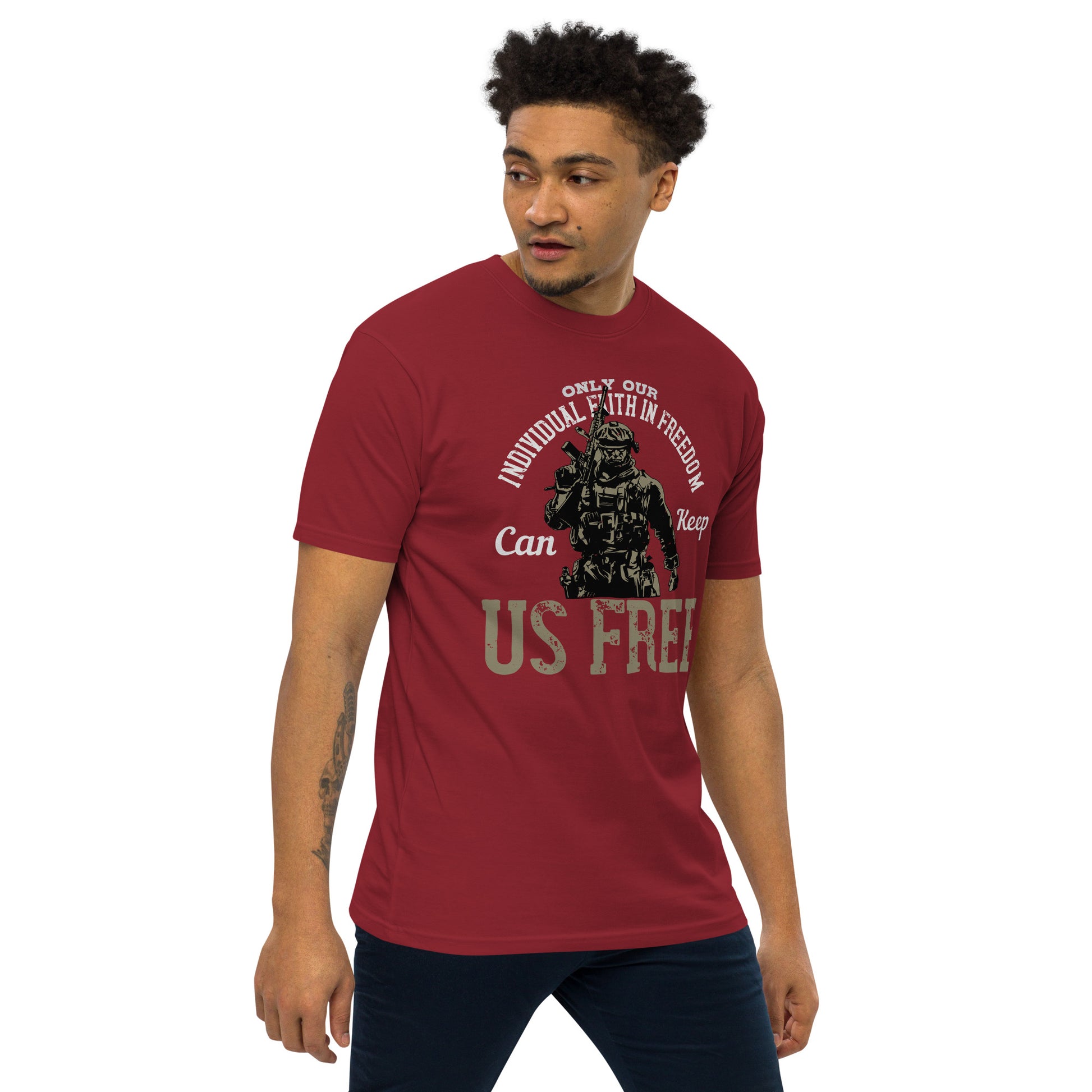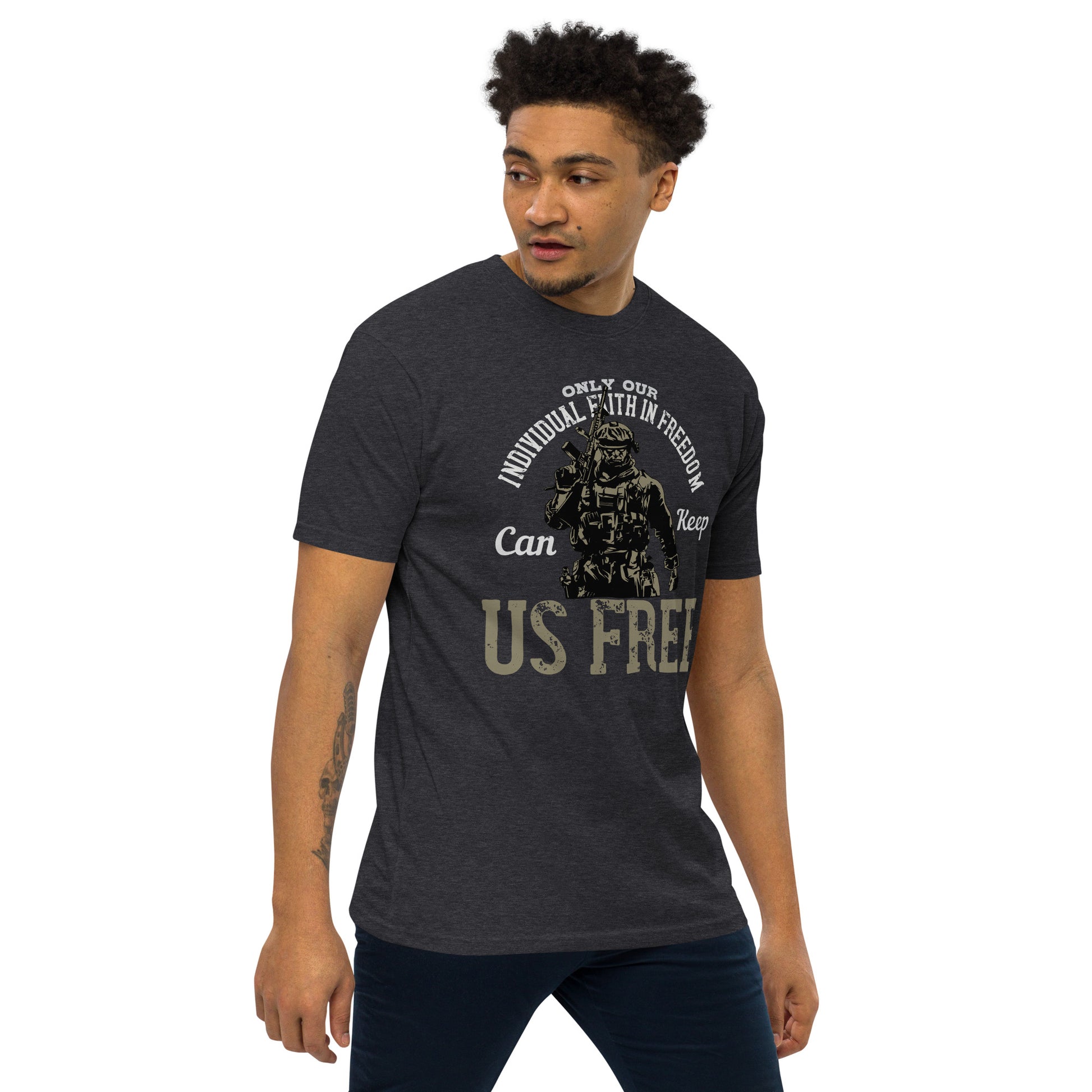Get ready to ignite giggles and nods of approval with our "Liberty Threads" T-Shirt! It's not just a piece of fabric; it's a conversation starter, a statement piece, and possibly the most patriotic hug your torso will ever experience. Crafted for the free-spirited and the humor-lovers, this shirt is where Uncle Sam meets stand-up comedy. It's perfect for BBQs, fireworks, or just lounging around as you practice your freedom to do absolutely nothing. Proudly wear it and watch heads turn, smiles form, and possibly eagles shed a tear of pride. Embrace your rights in style and comfort, but remember - freedom isn't free, but our shipping always is! Elevate your outfit with the men’s premium heavyweight tee. The tee has a structured, classy fit and is both durable and soft thanks to its ring-spun cotton material. Layer the t-shirt or wear it on its own and enjoy great looks with little effort!