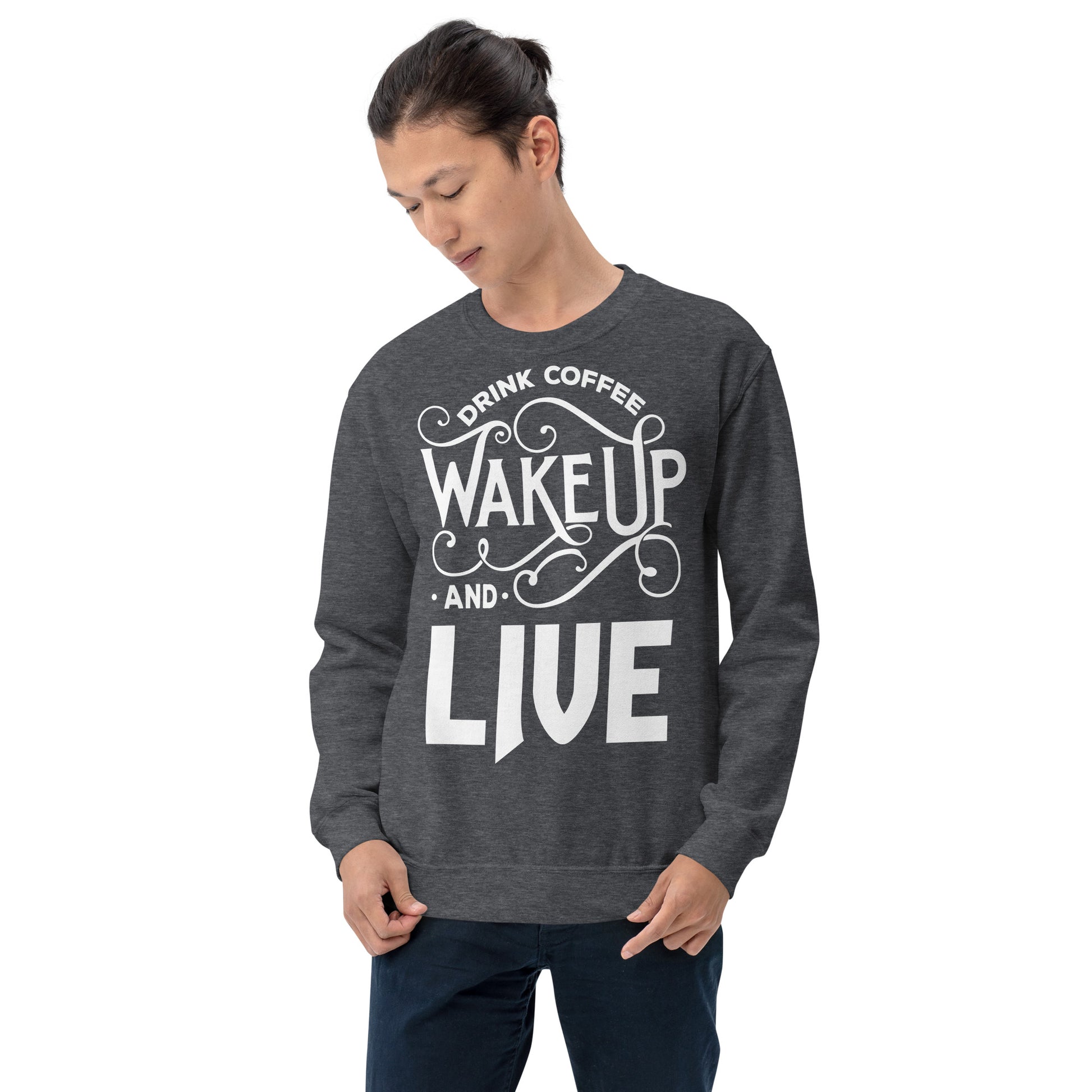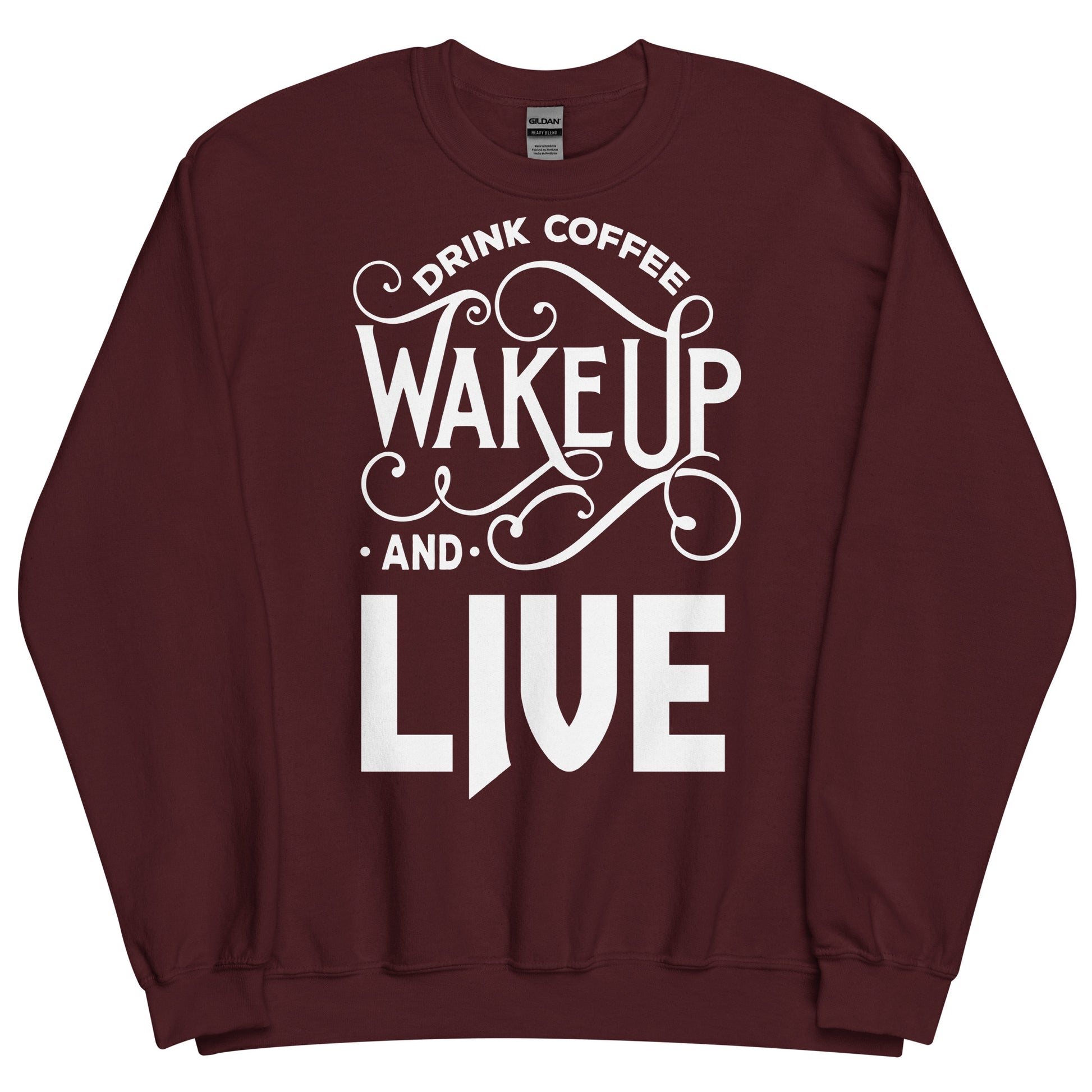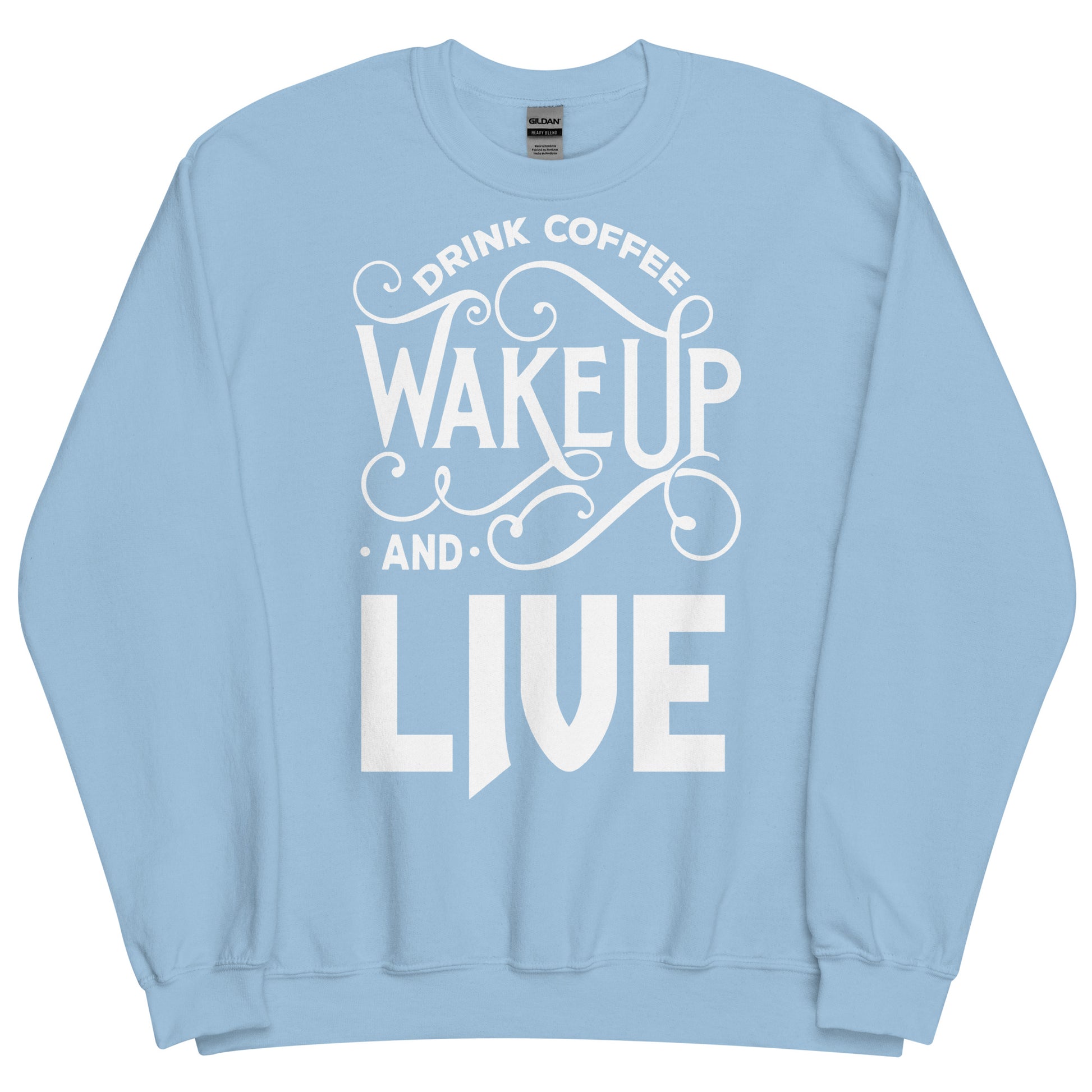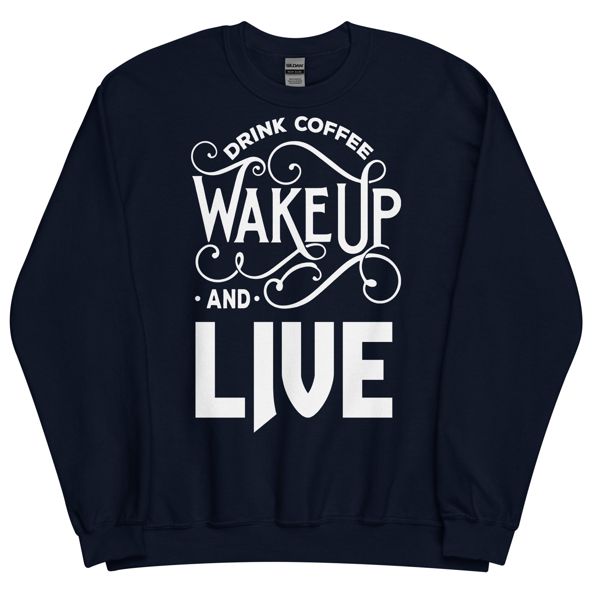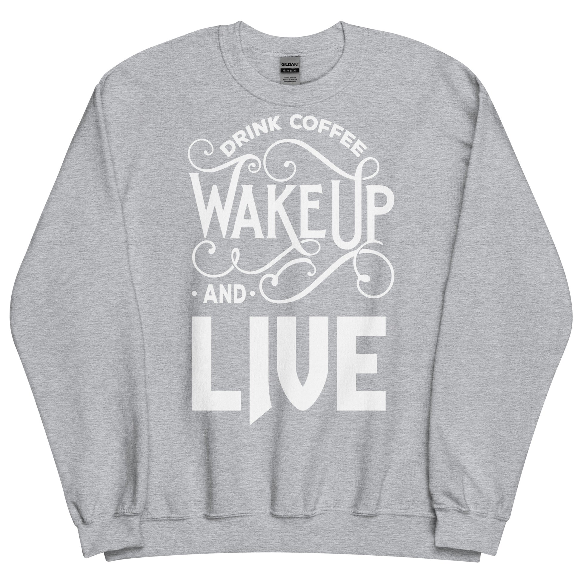 Embrace the mantra that sets the tone for life's grand adventure with our "Livewire Espresso Sweatshirt". This is for the spirited souls who sip their coffee and seize the day, for those who understand that life begins after coffee. With an uplifting message that encourages you to "Drink Coffee, Wake Up, and LIVE", it's not just attire—it's your armor as you charge into the fray of everyday life. This sweatshirt is a cozy reminder to kick start your mornings with a caffeine jolt and live each moment to the fullest. A sturdy and warm sweatshirt bound to keep you warm in the colder months. A pre-shrunk, classic fit sweater that’s made with air-jet spun yarn for a soft feel.